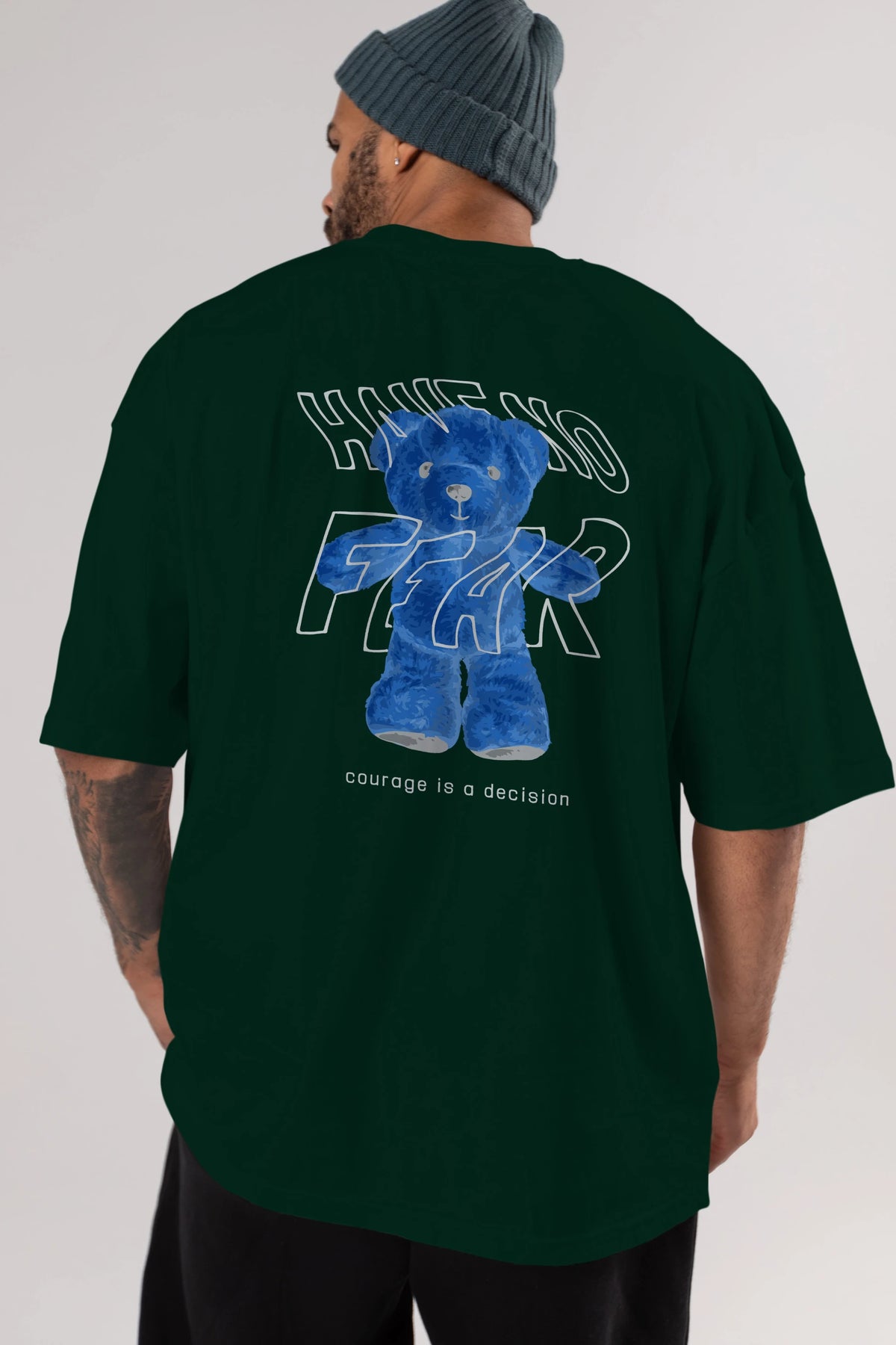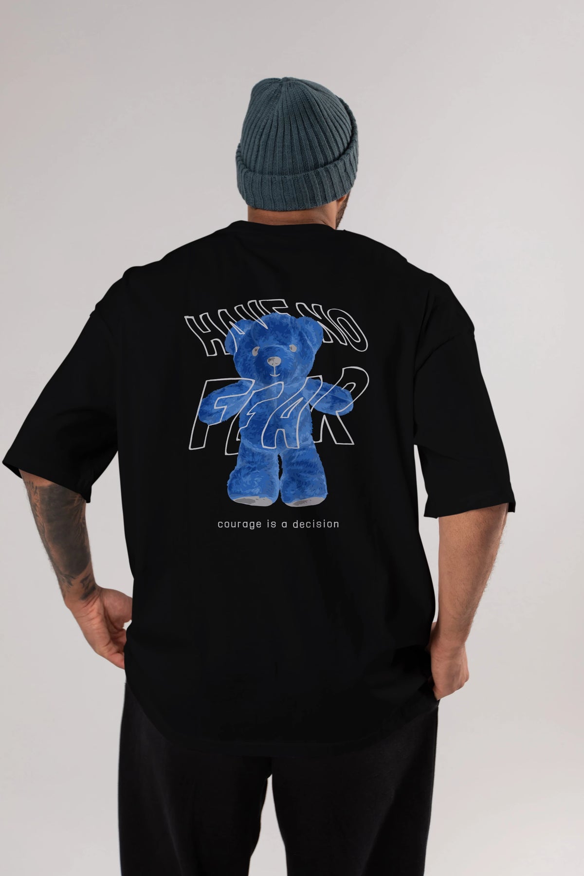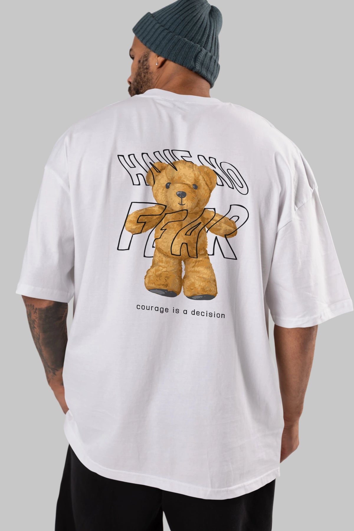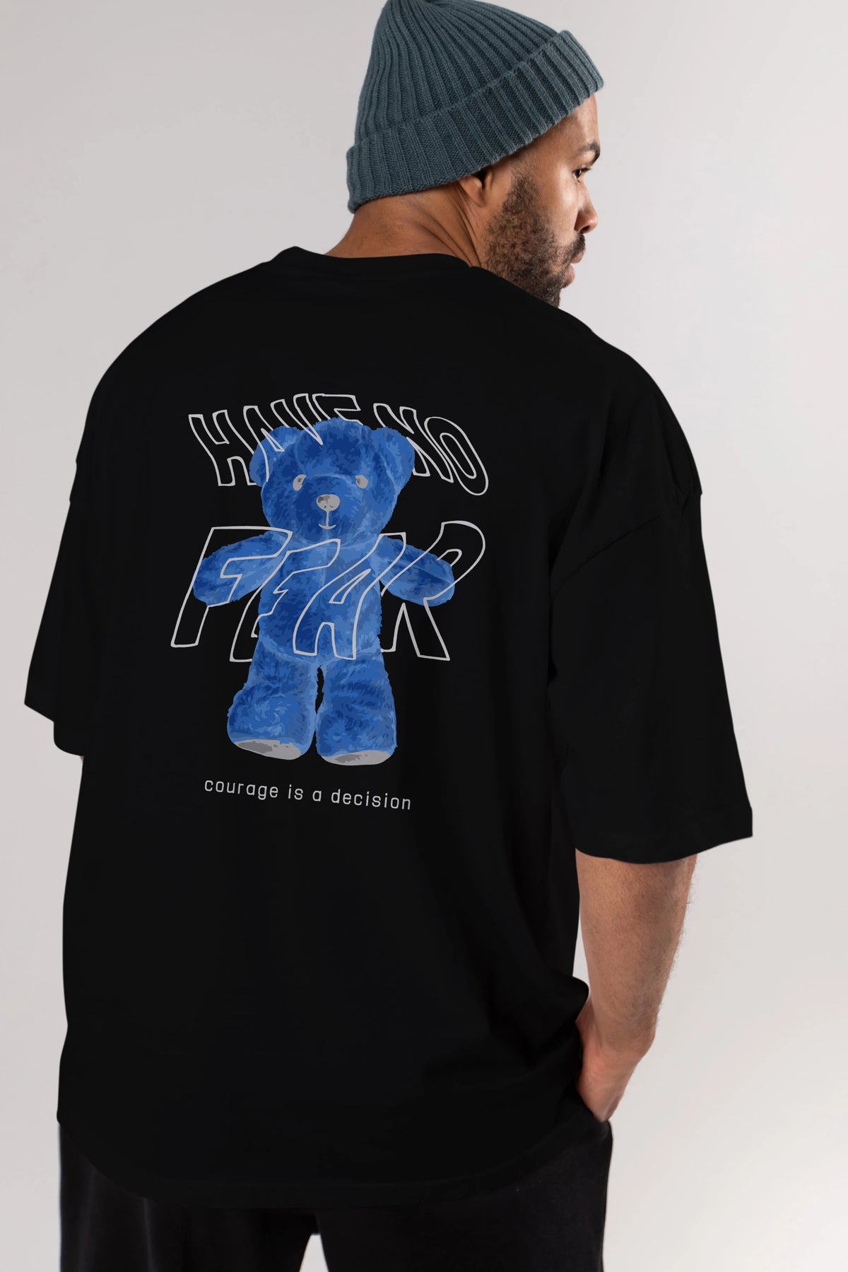 Have no Fear Bear Arka Baskılı Oversize t-shirt Erkek Kadın Unisex