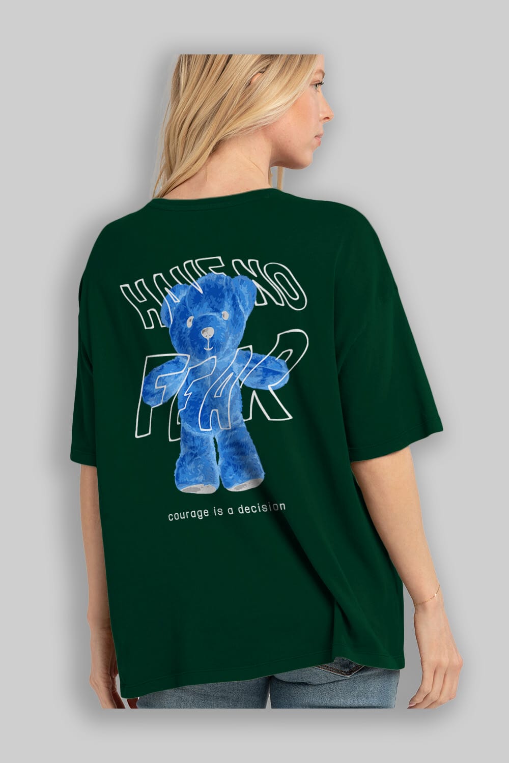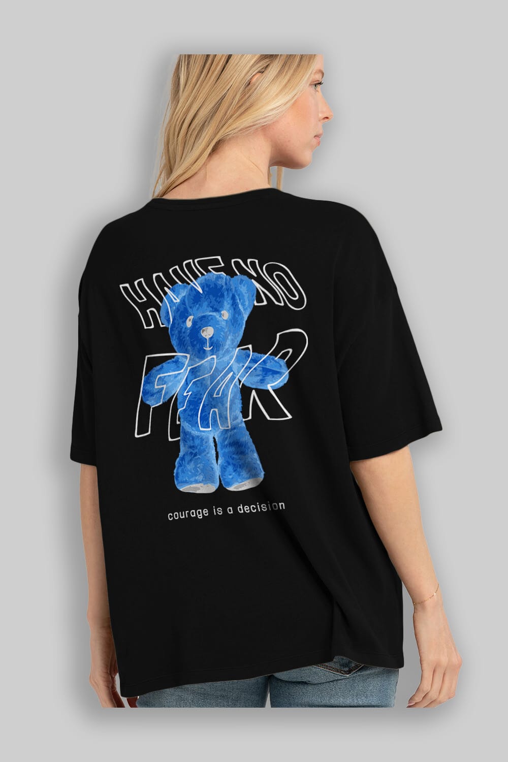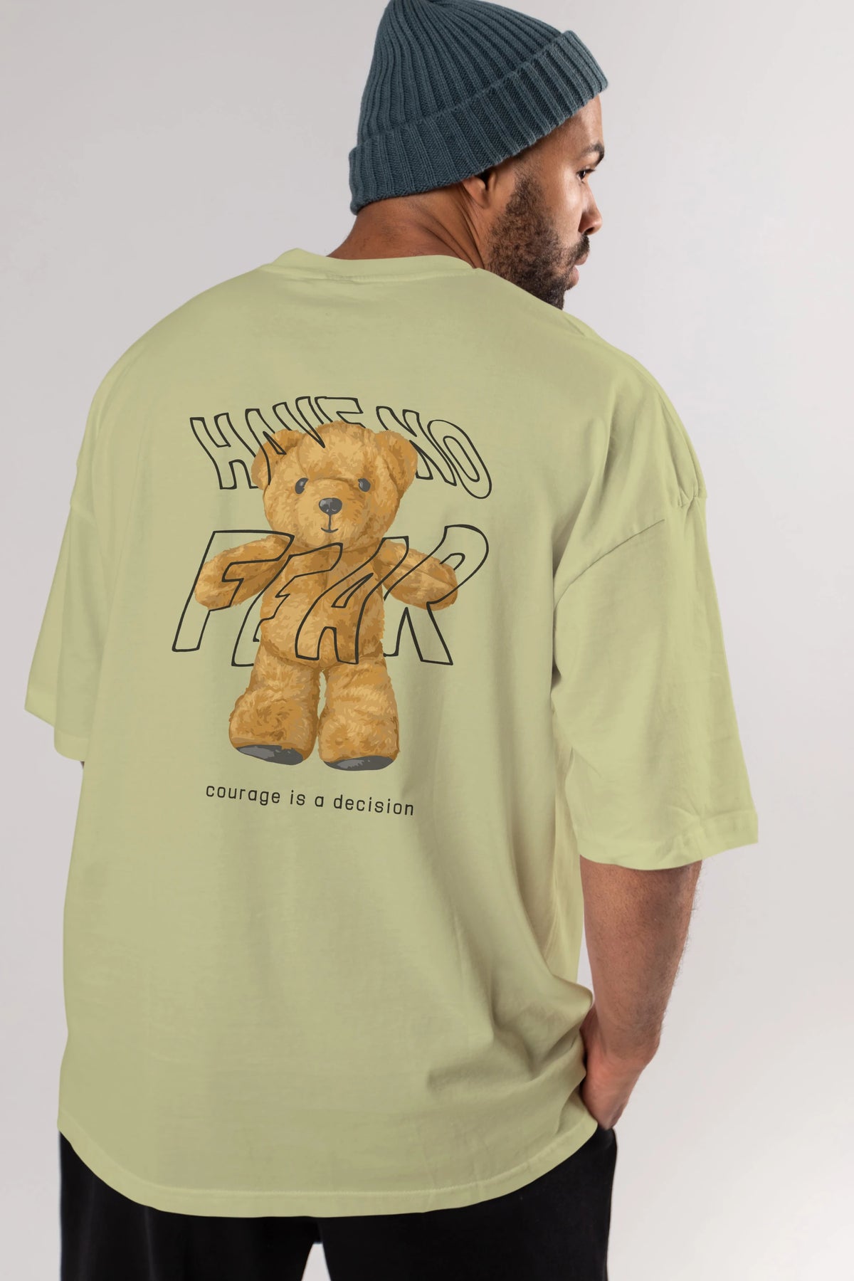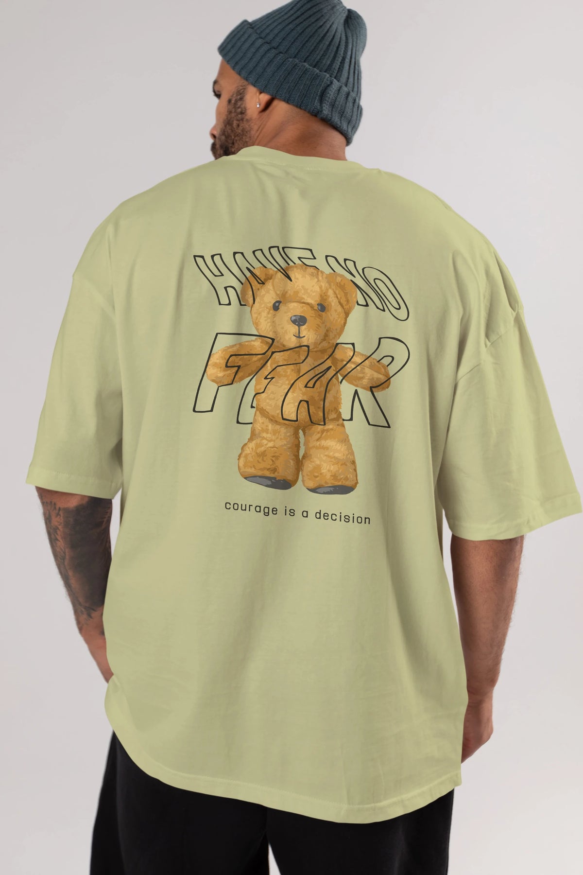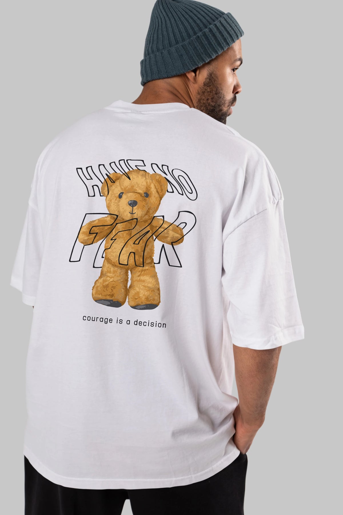 Have no Fear Bear Arka Baskılı Oversize t-shirt Erkek Kadın Unisex