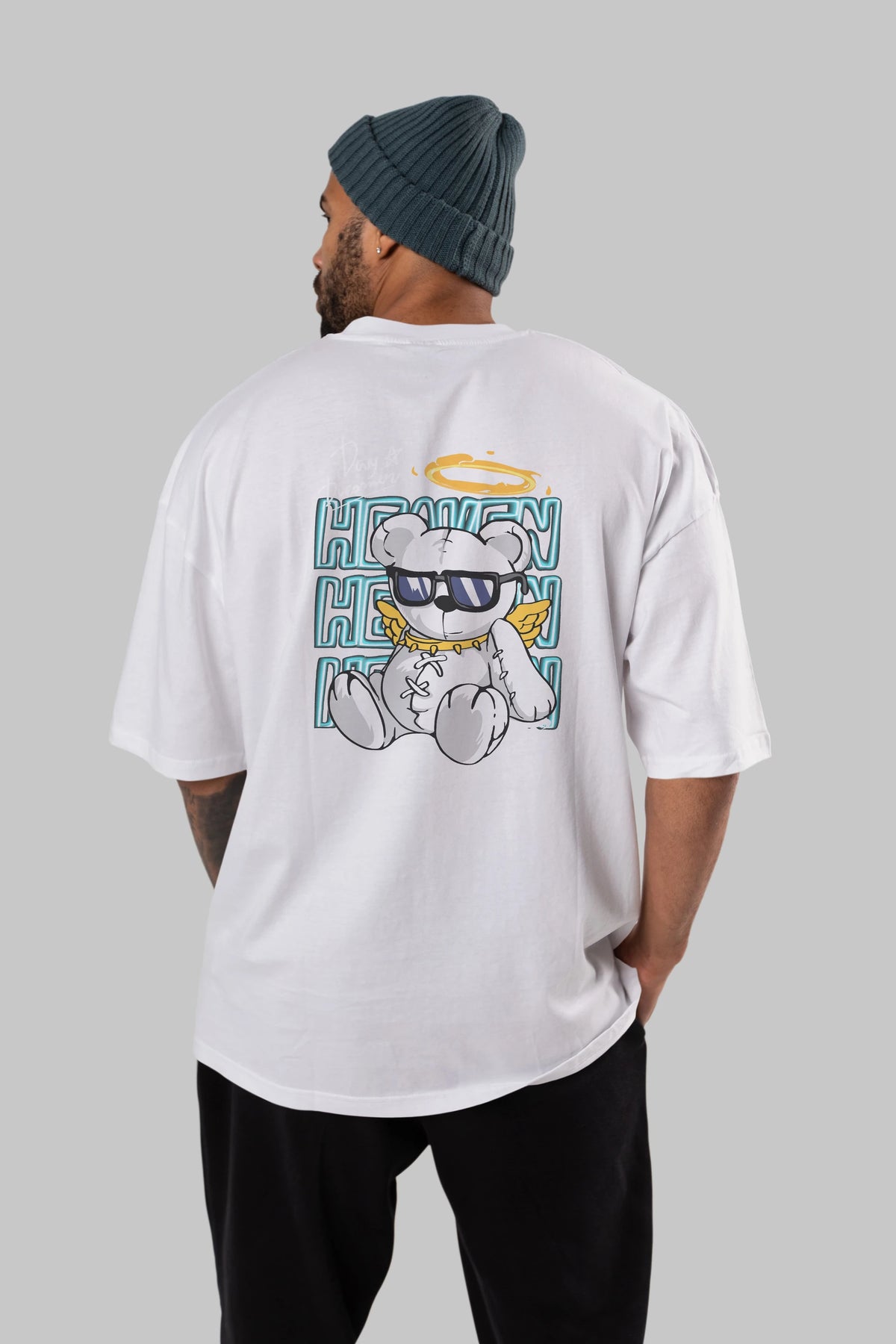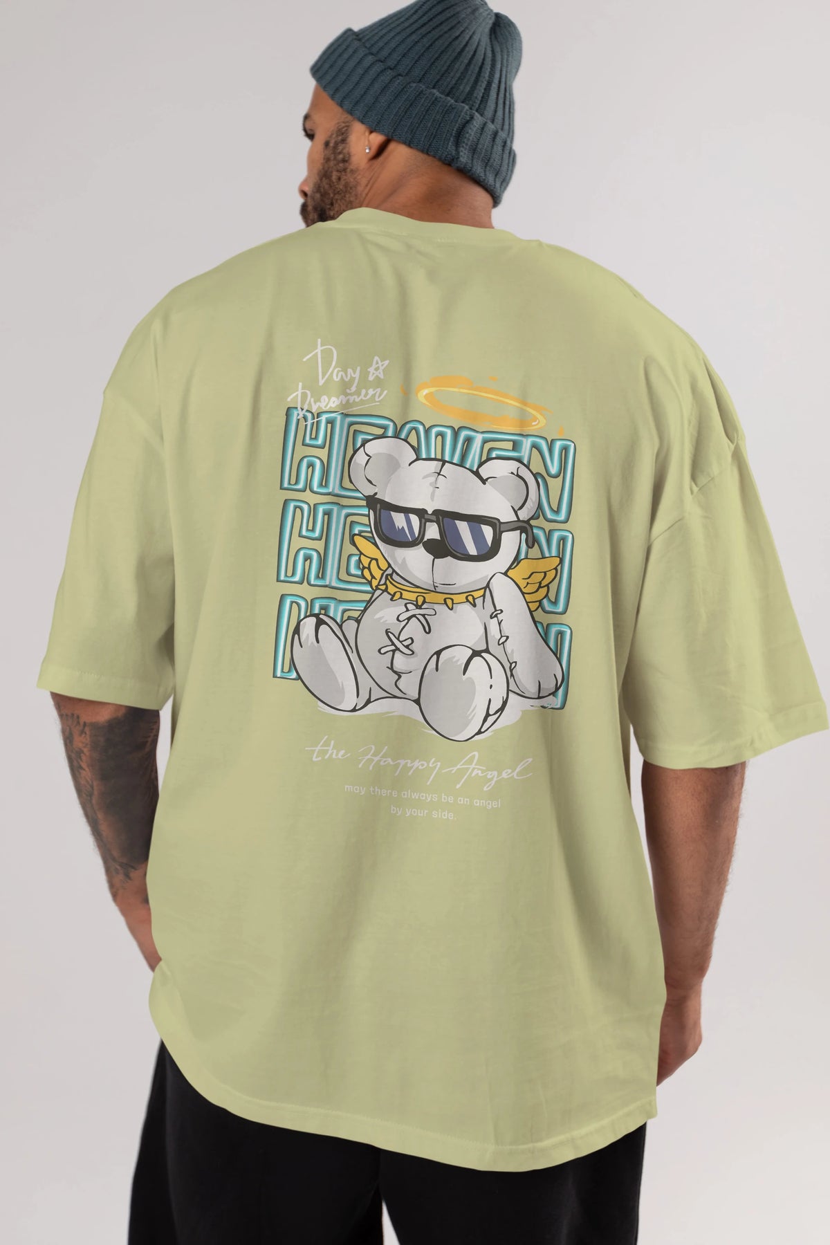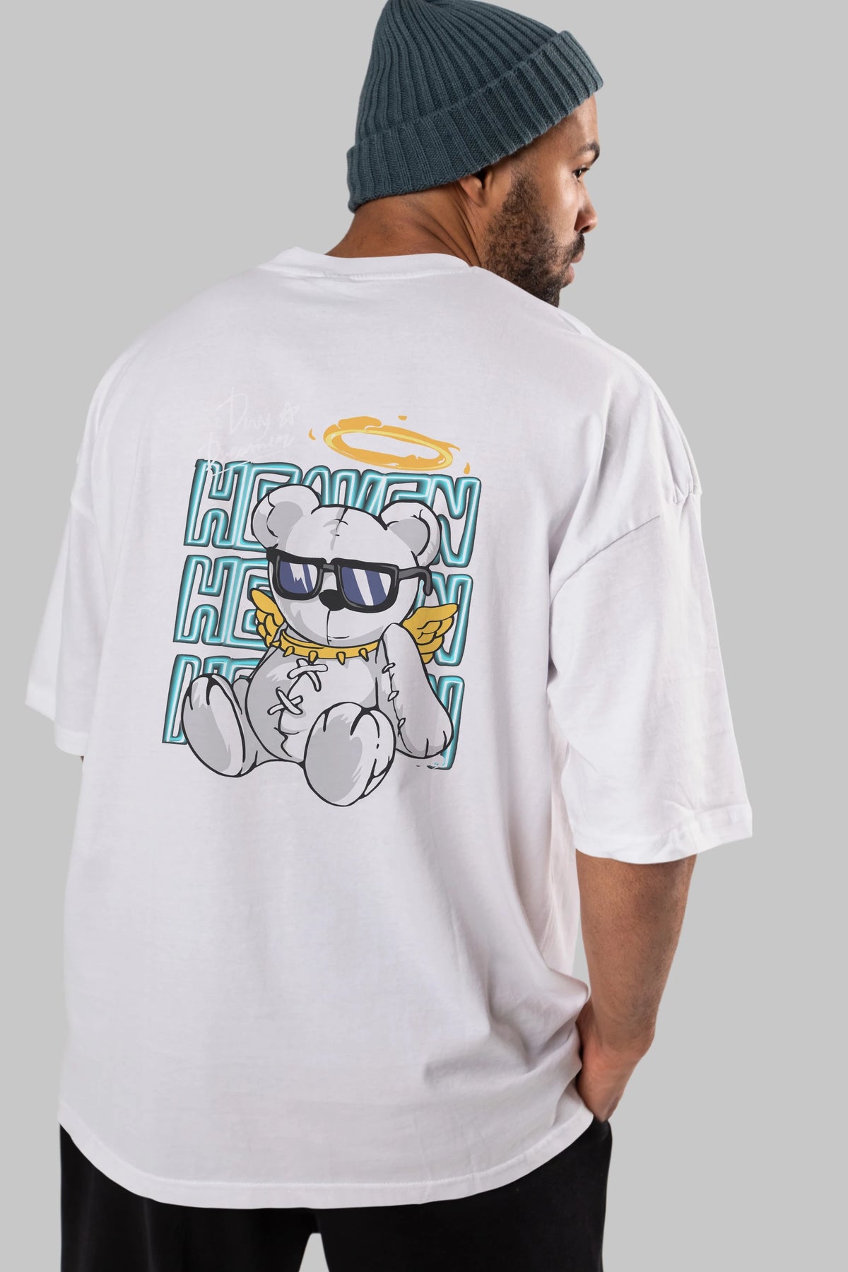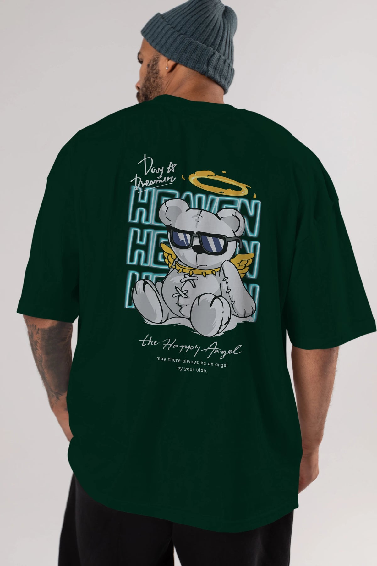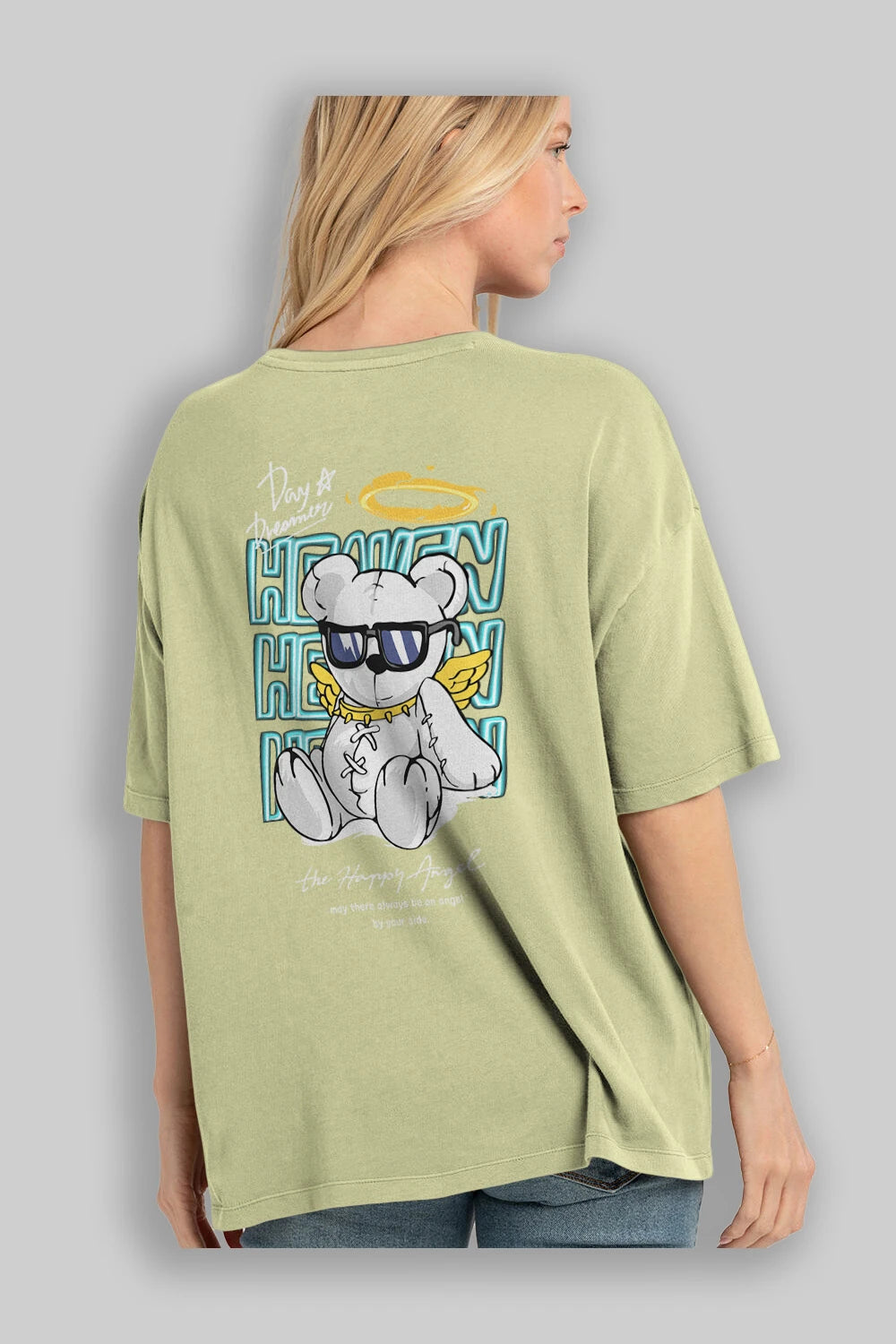 Heaven Bear Arka Baskılı Oversize t-shirt Erkek Kadın Unisex