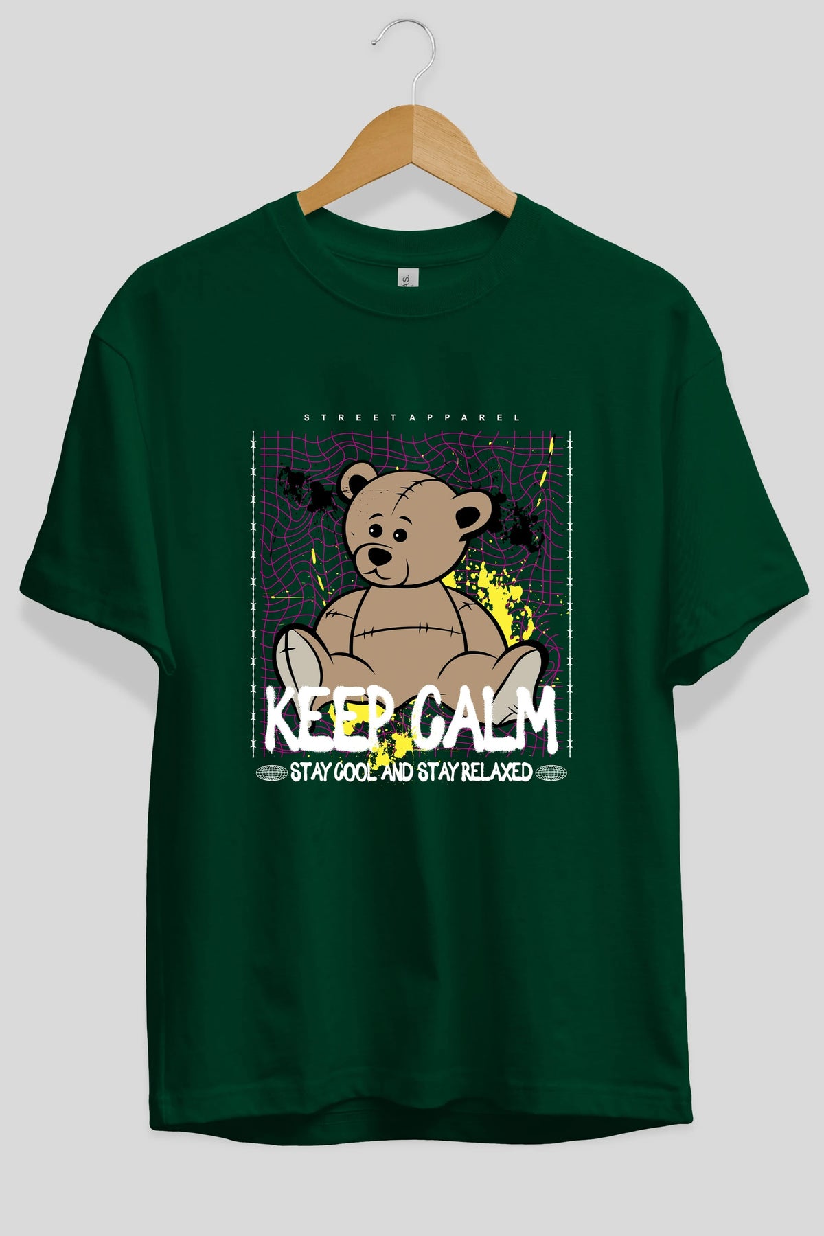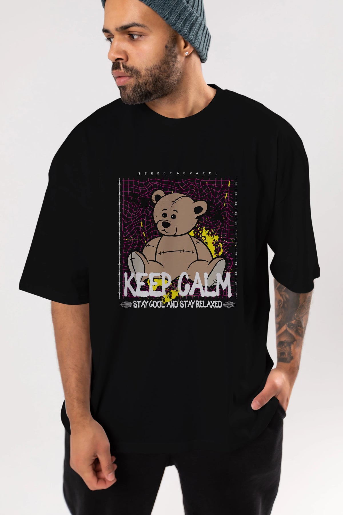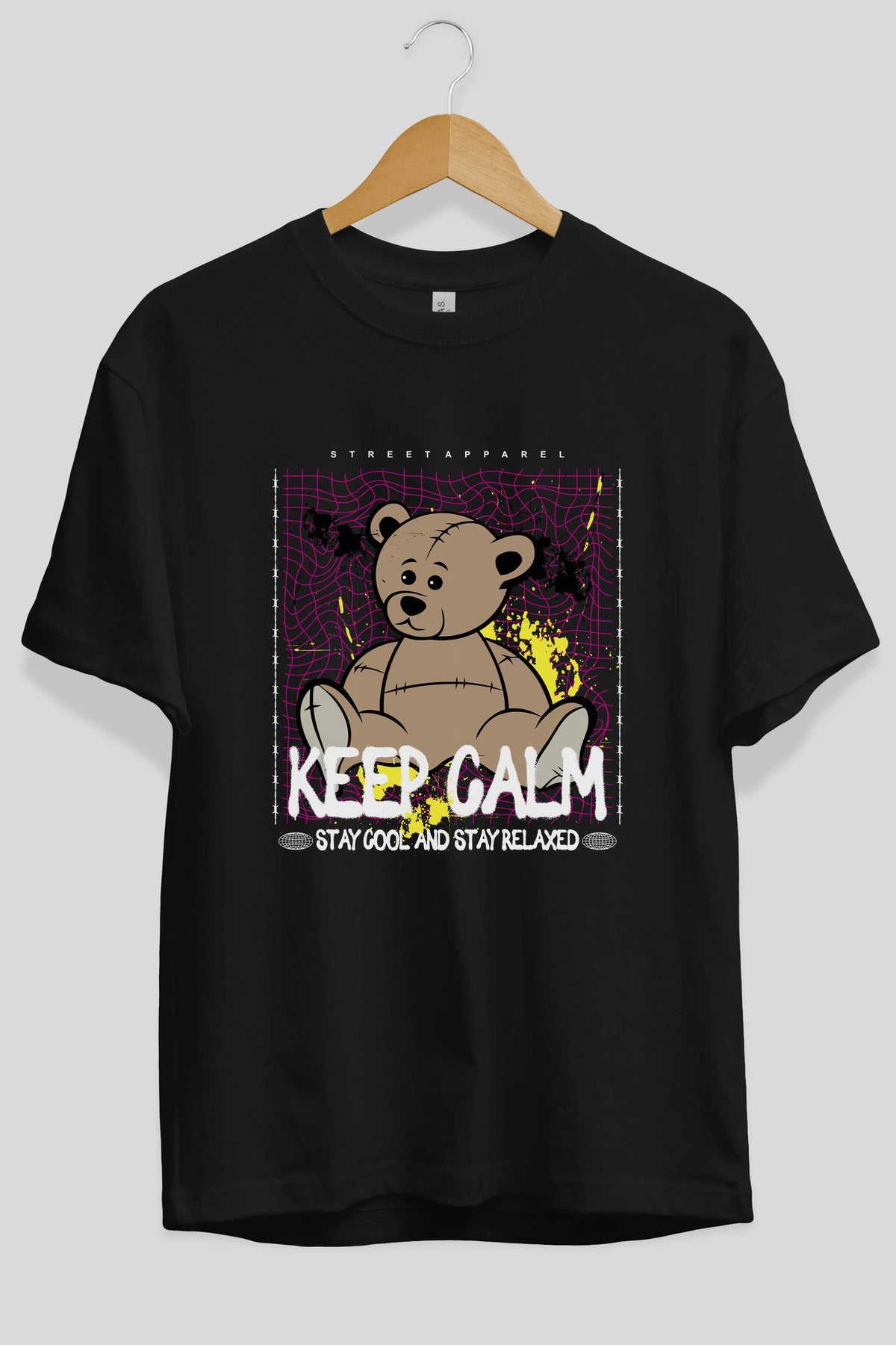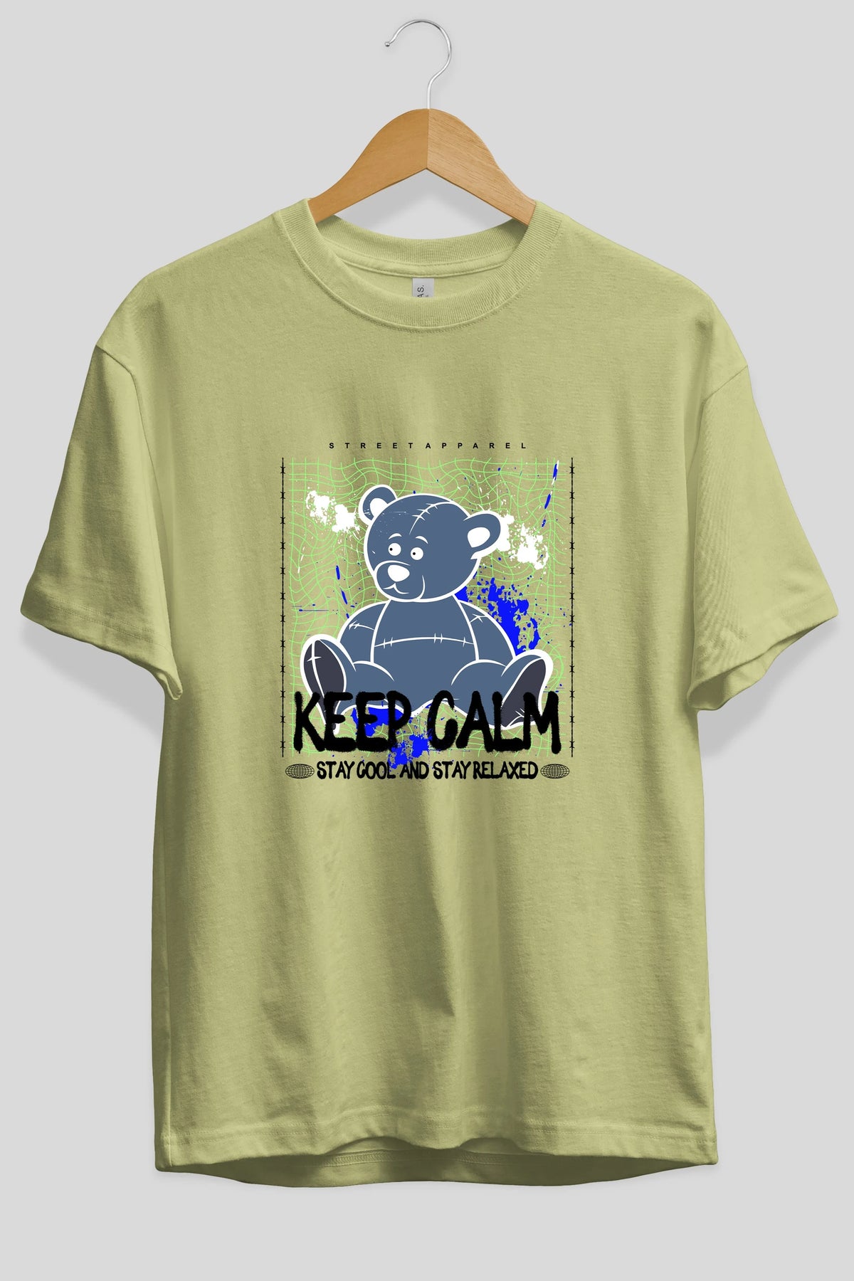 Keep Calm Bear Ön Baskılı Oversize t-shirt Erkek Kadın Unisex