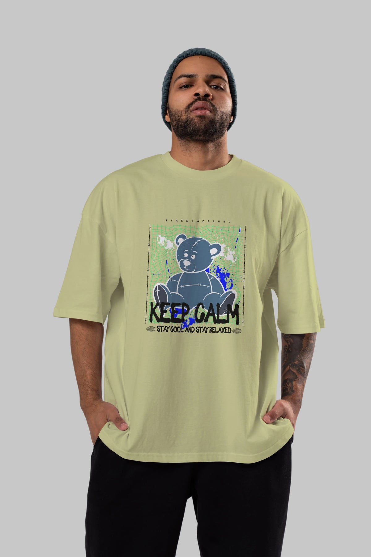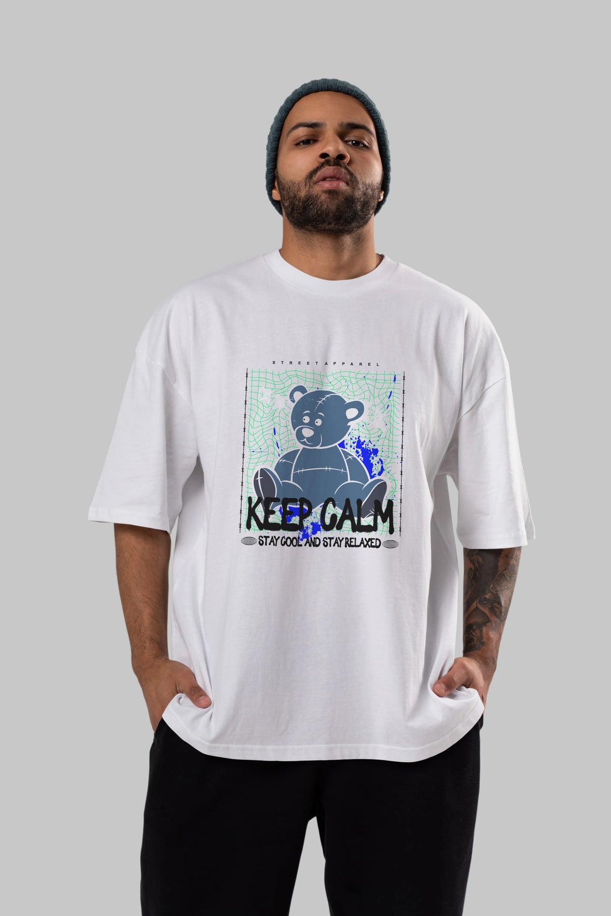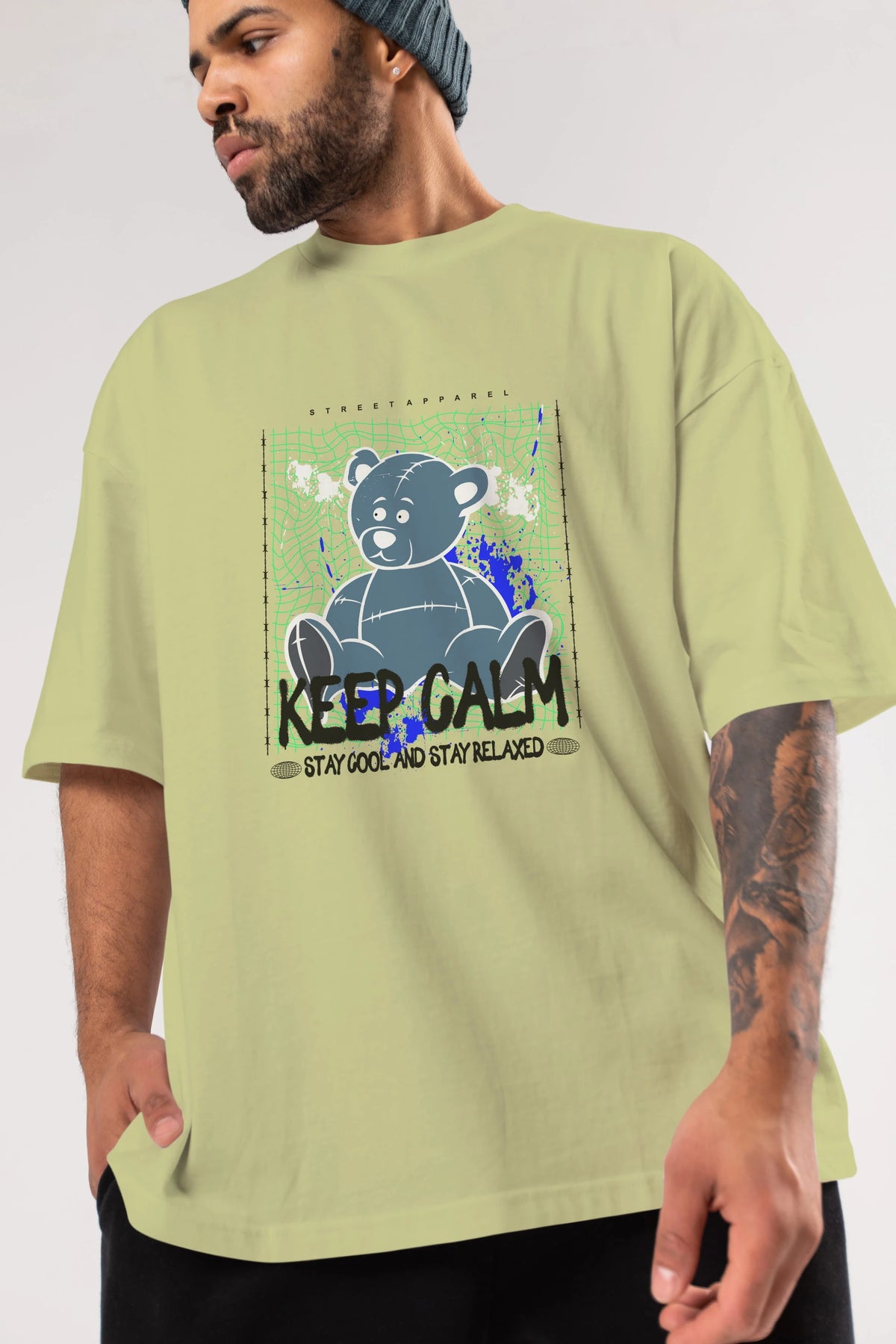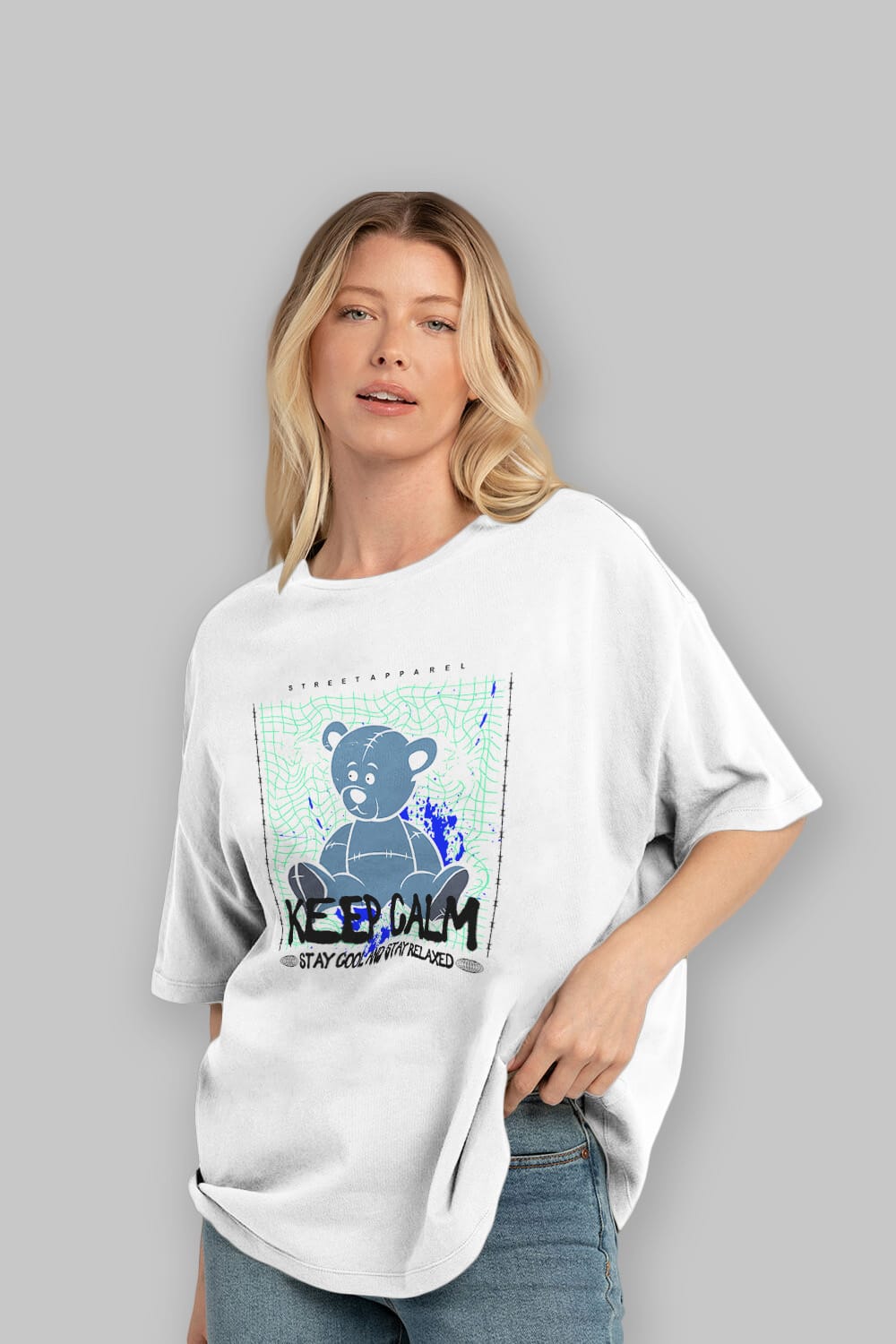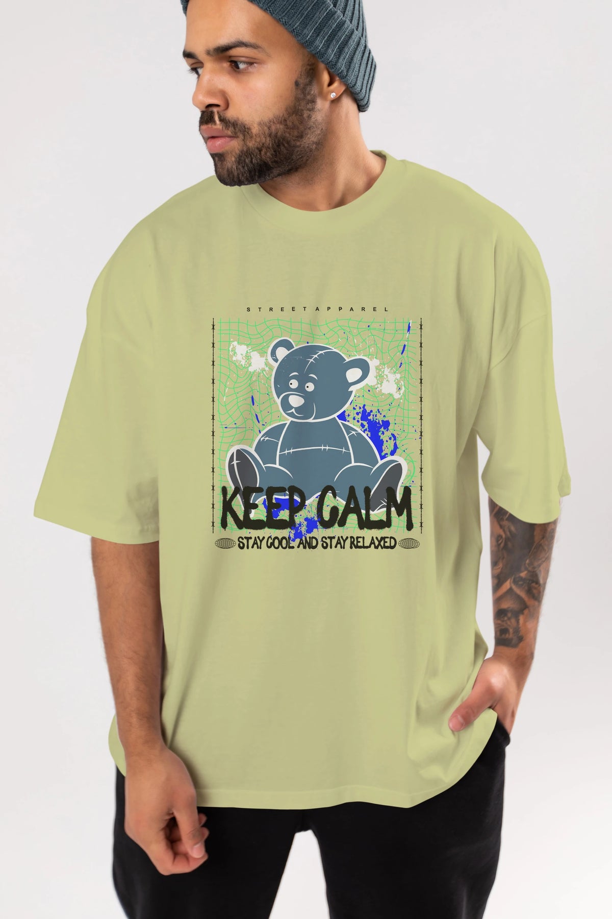 Keep Calm Bear Ön Baskılı Oversize t-shirt Erkek Kadın Unisex