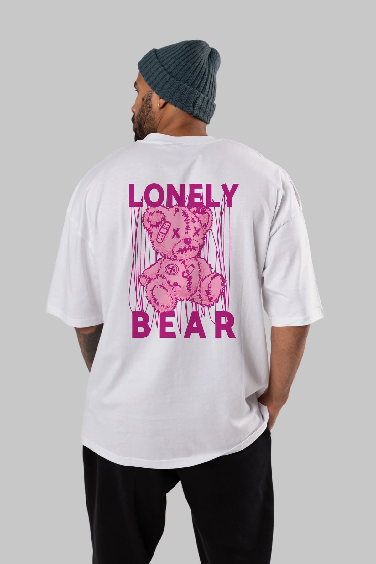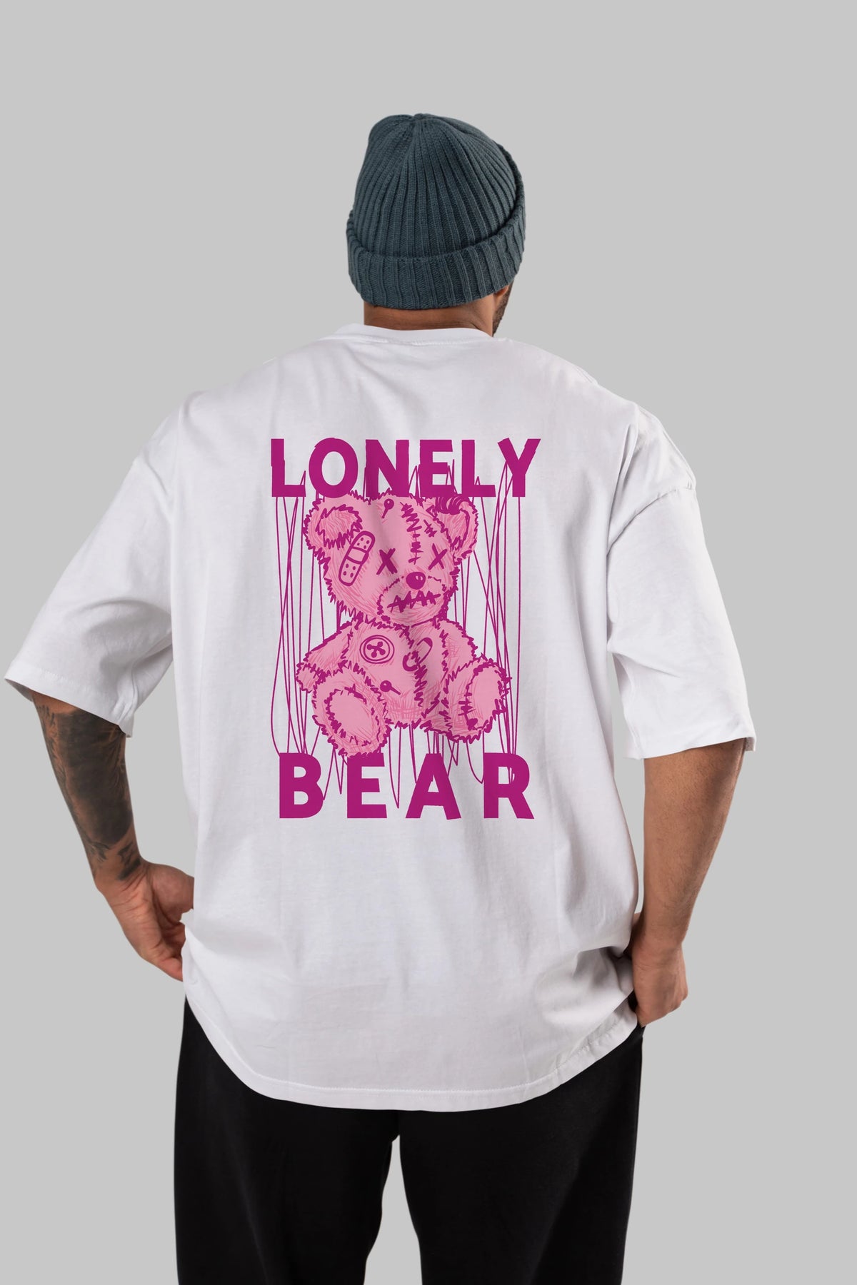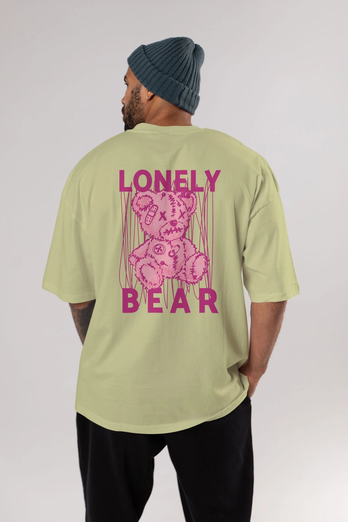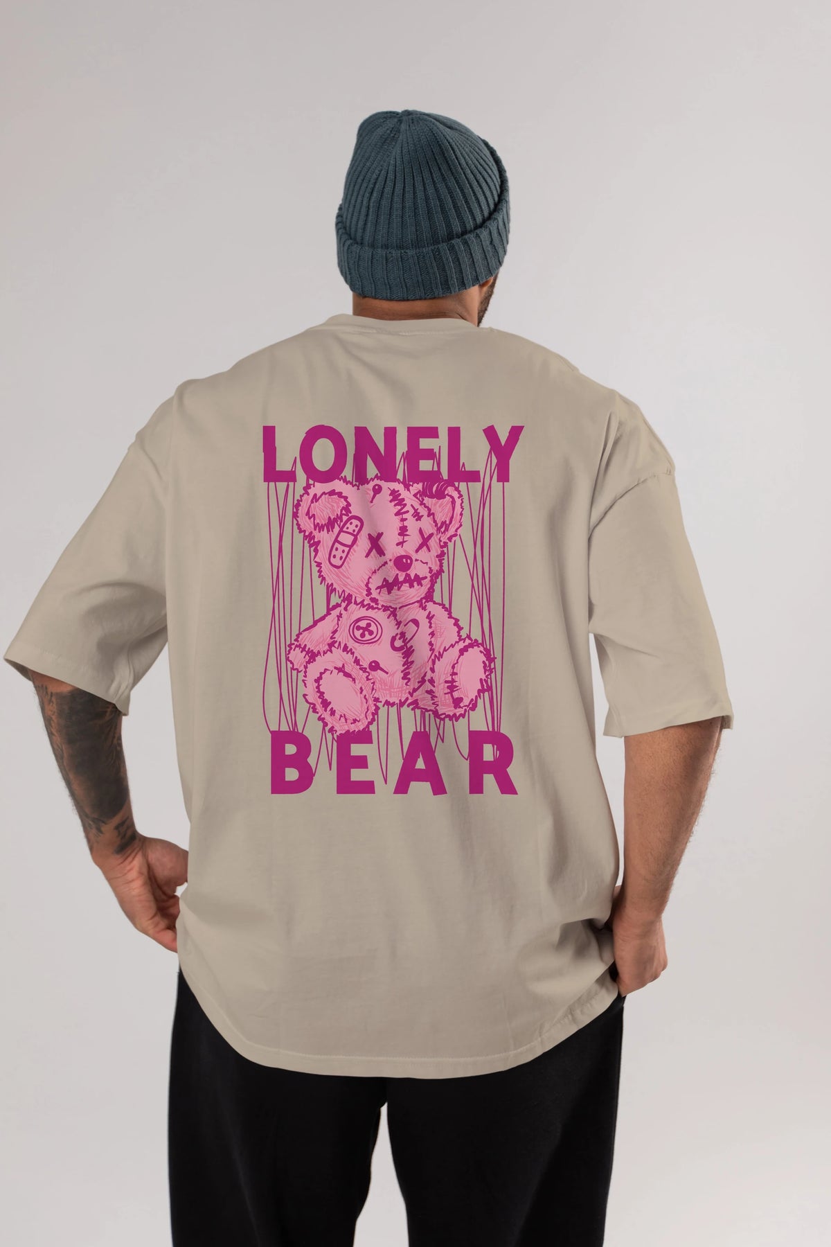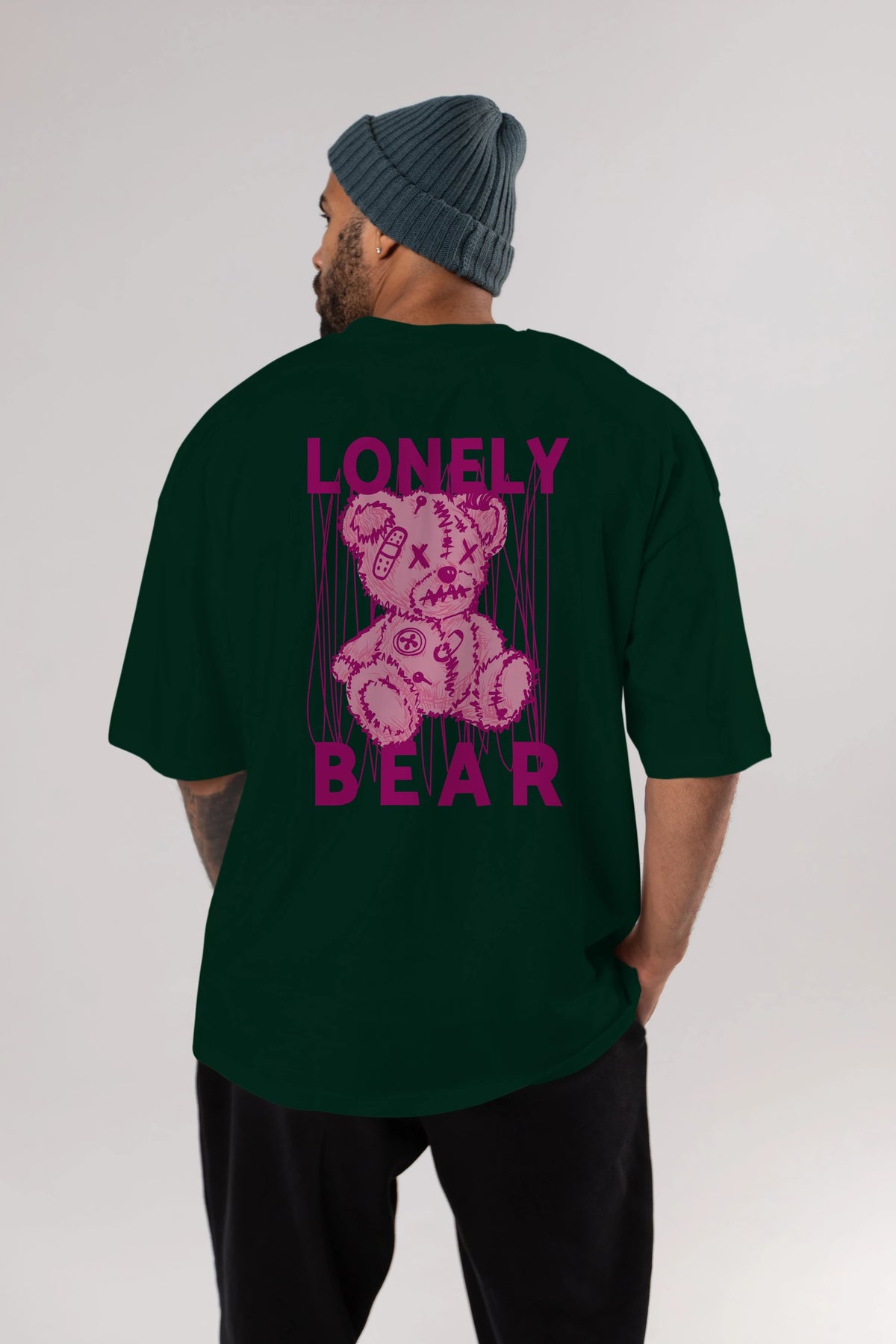 Lonely Bear Arka Baskılı Oversize t-shirt Erkek Kadın Unisex