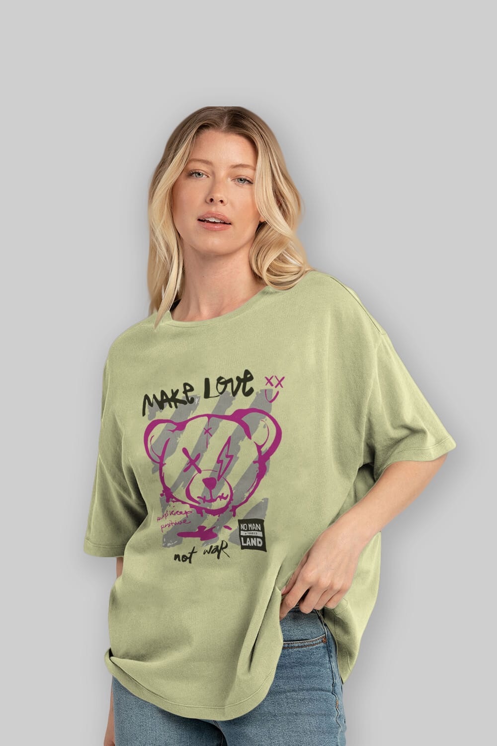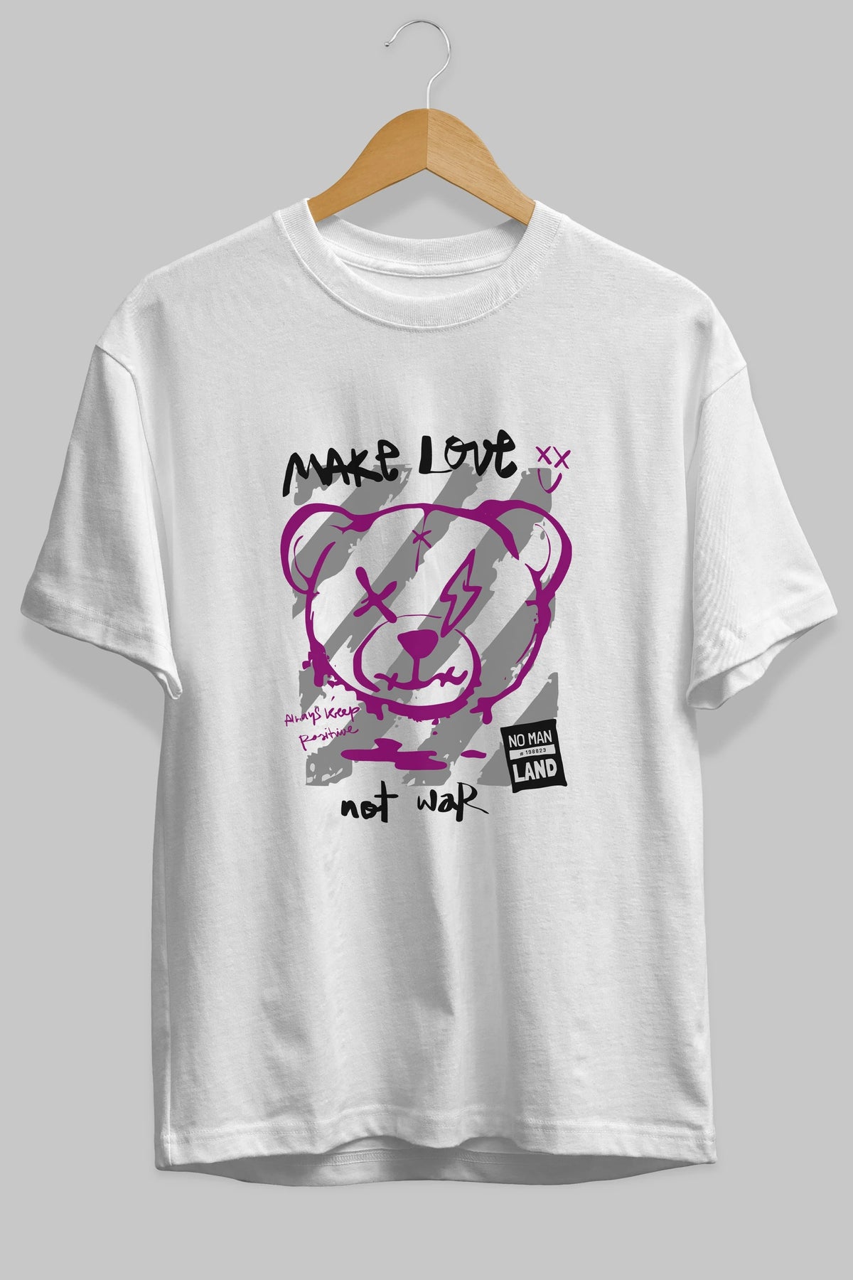 Make Love Bear Ön Baskılı Oversize t-shirt Erkek Kadın Unisex
