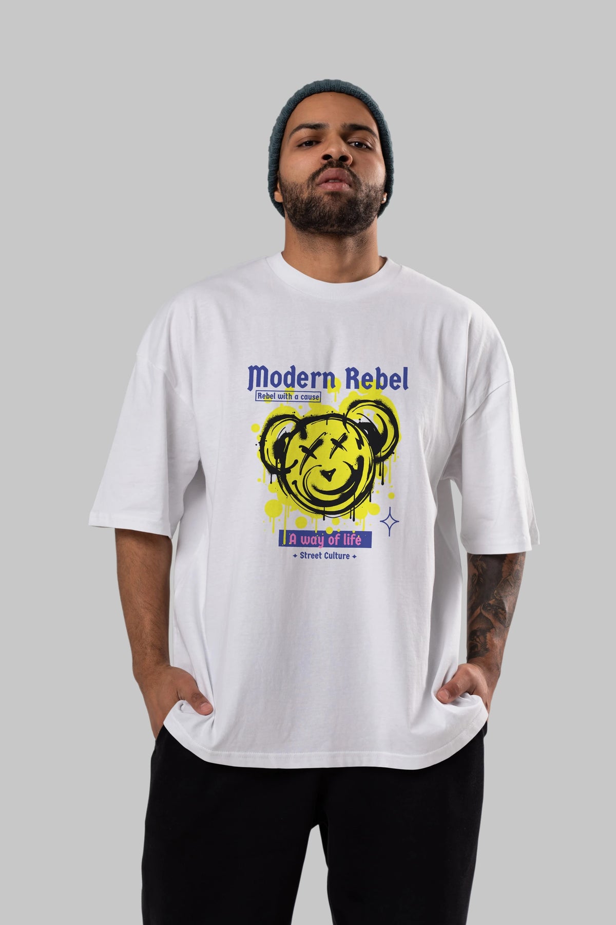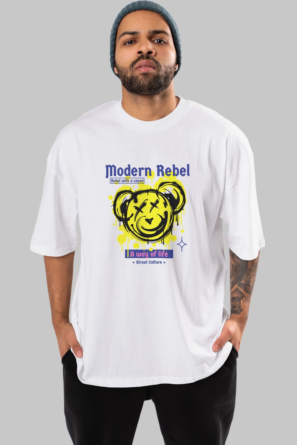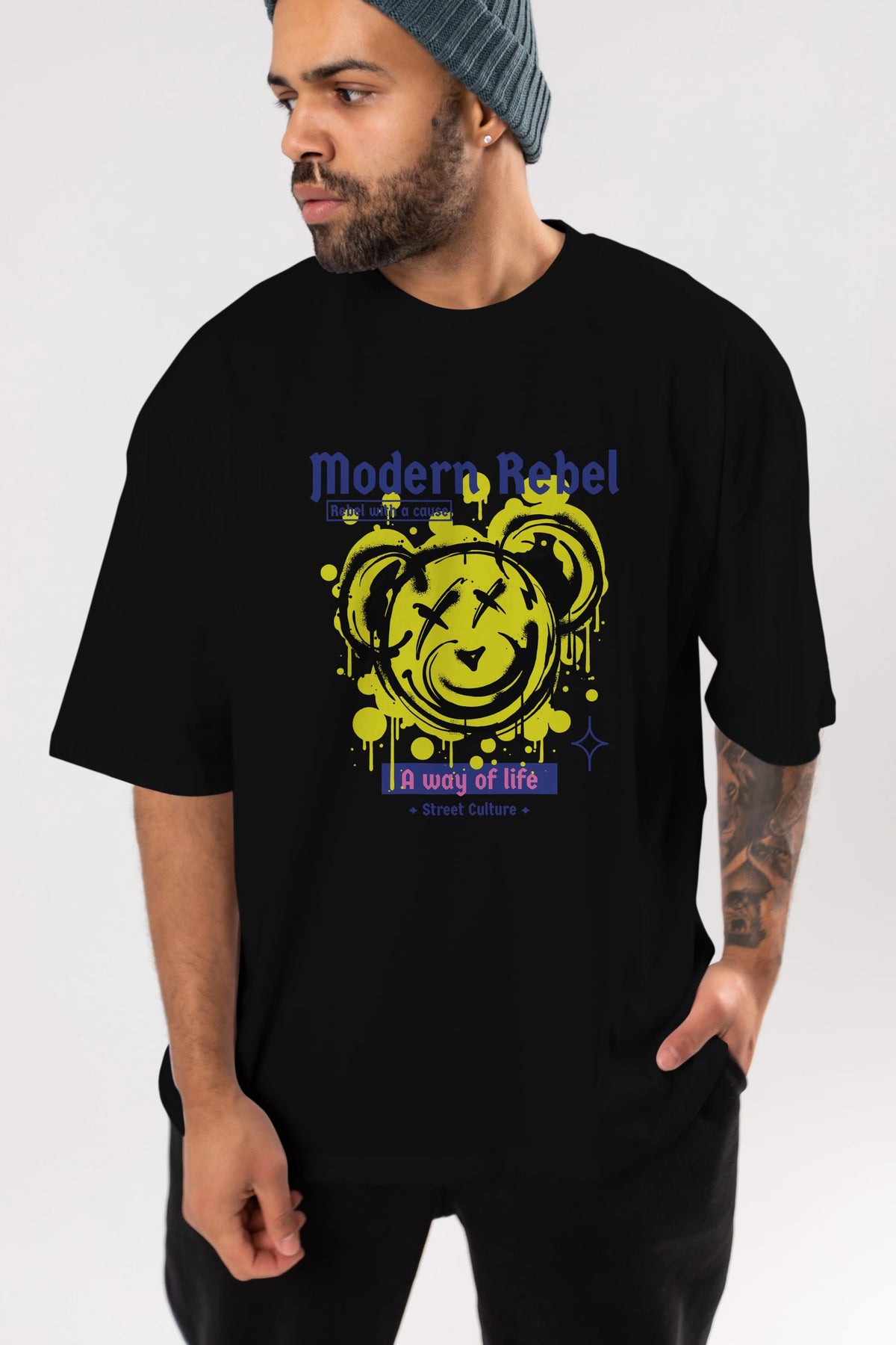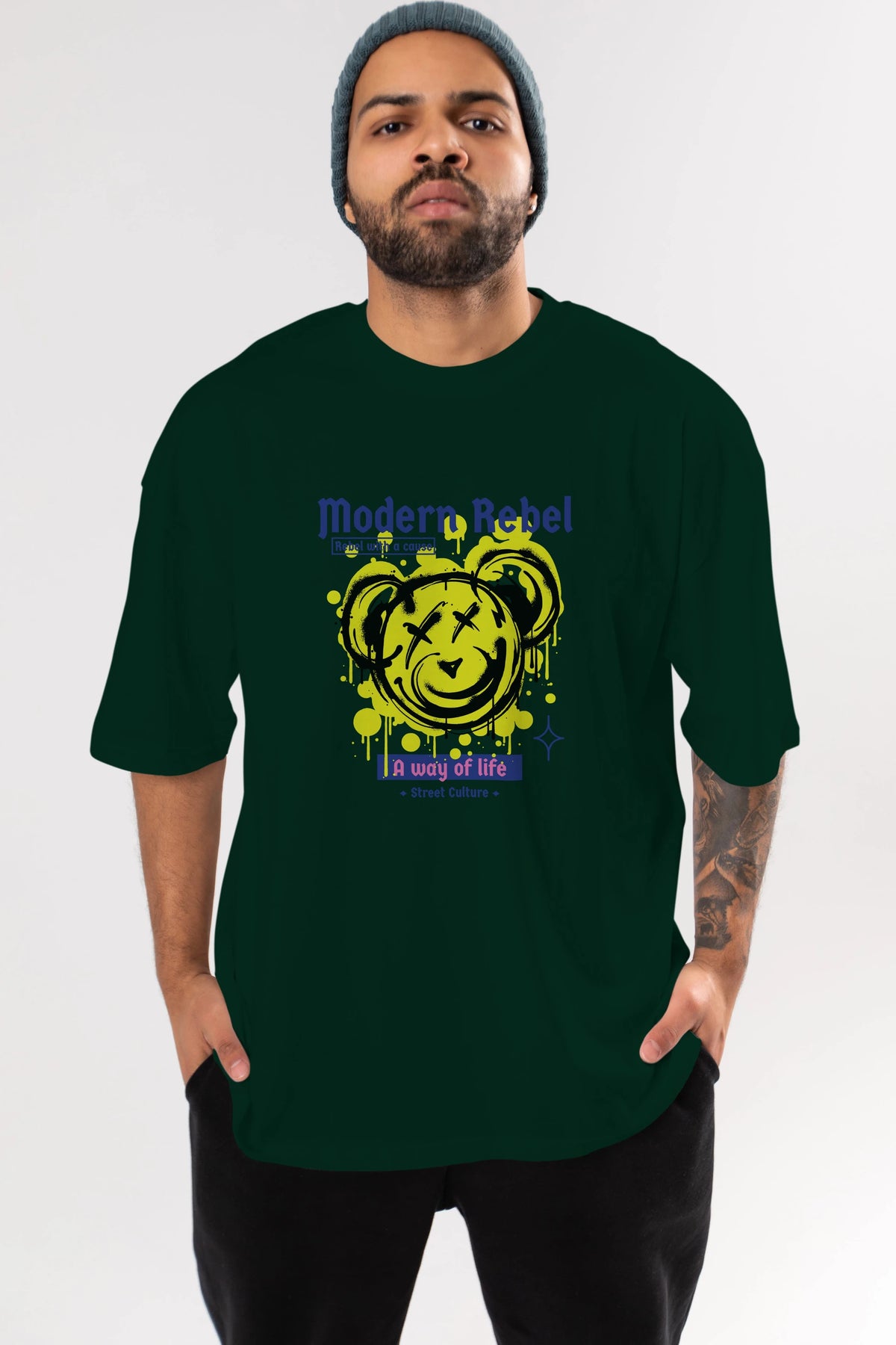 Modern Rebel Bear Ön Baskılı Oversize t-shirt Erkek Kadın Unisex
