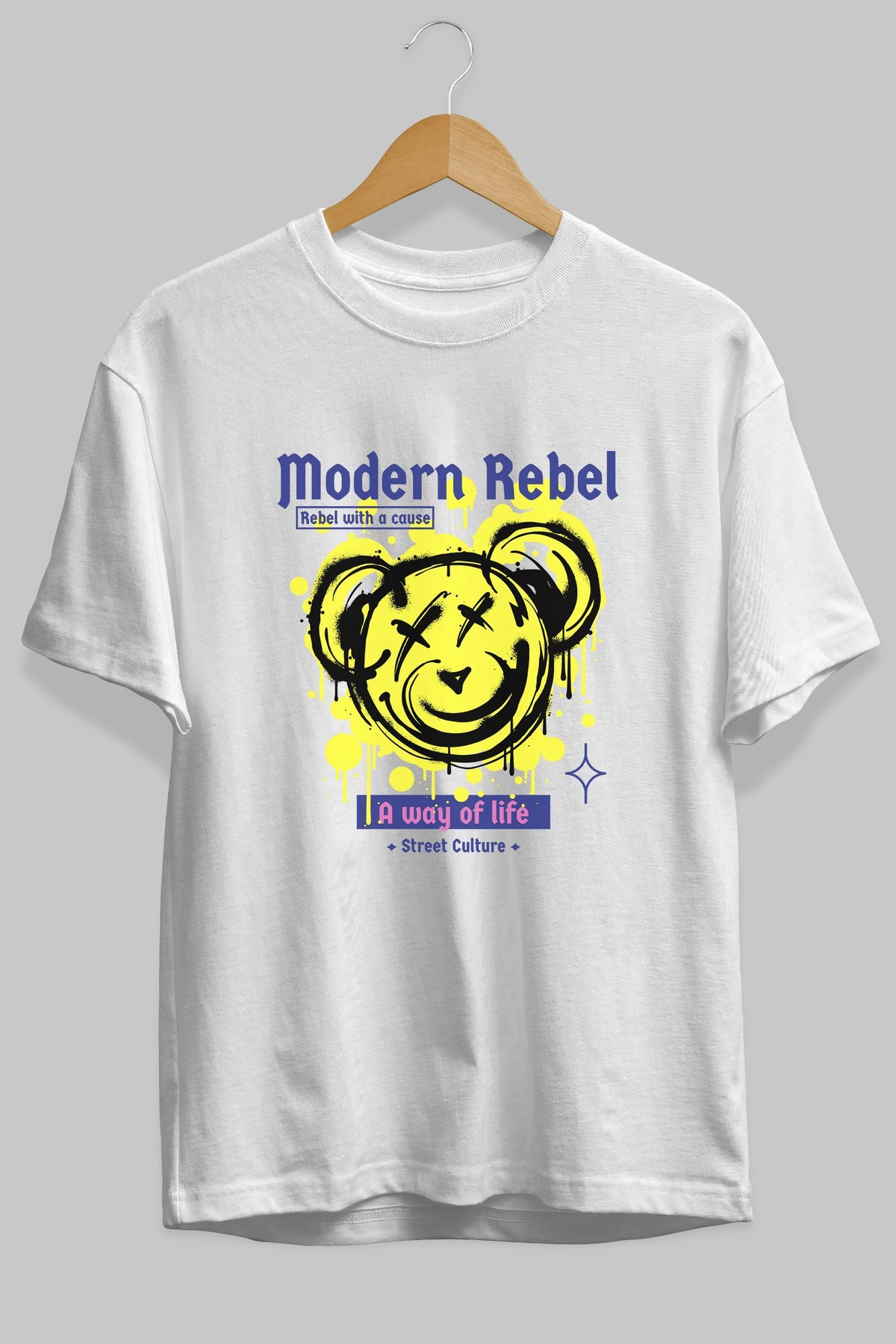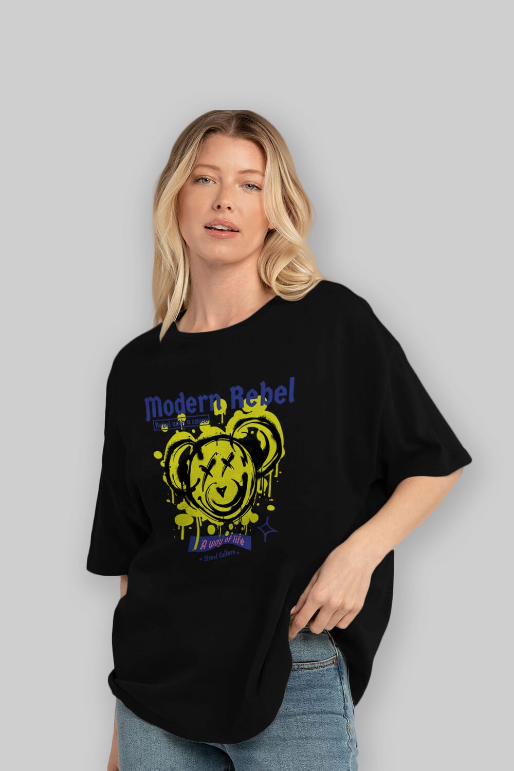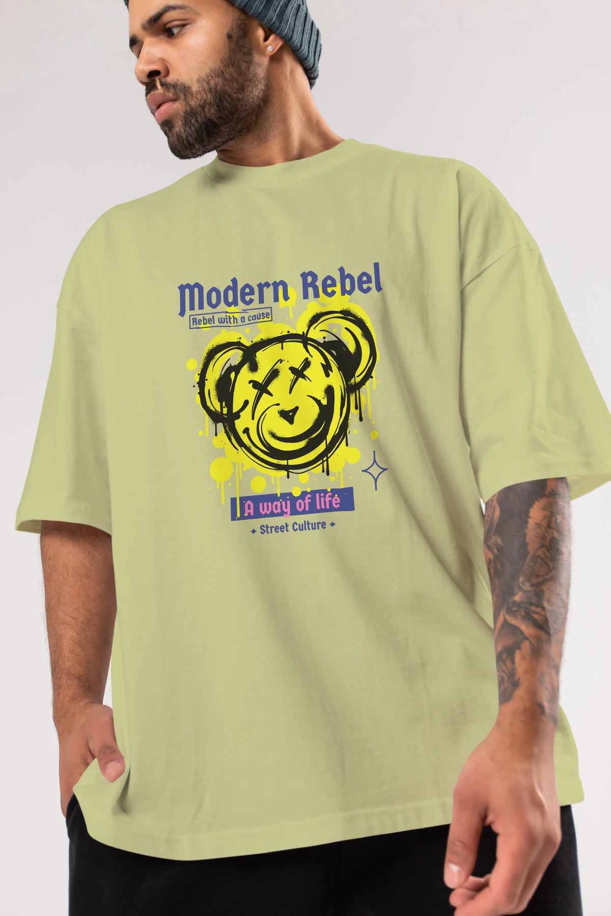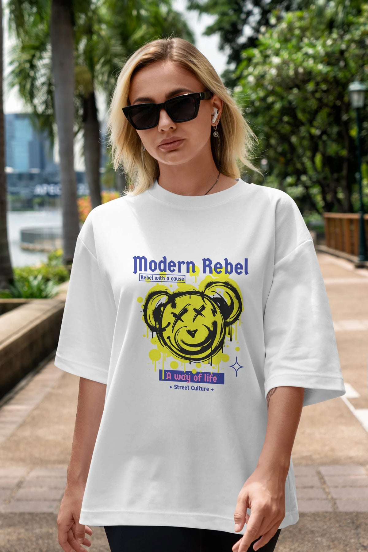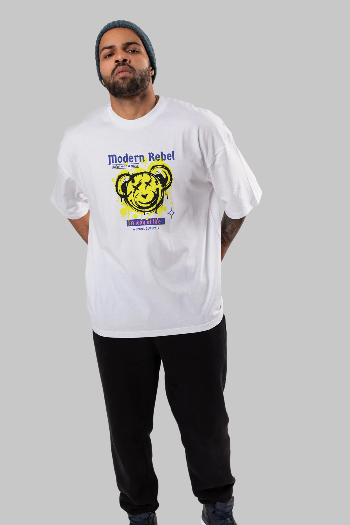 Modern Rebel Bear Ön Baskılı Oversize t-shirt Erkek Kadın Unisex