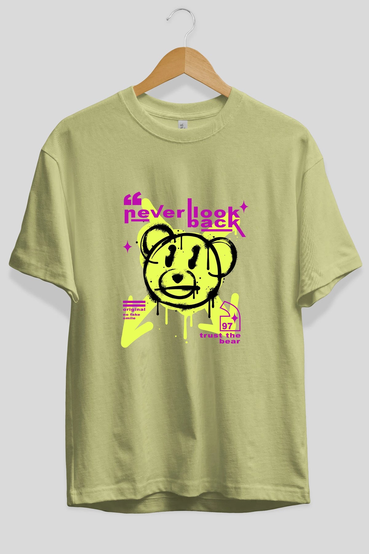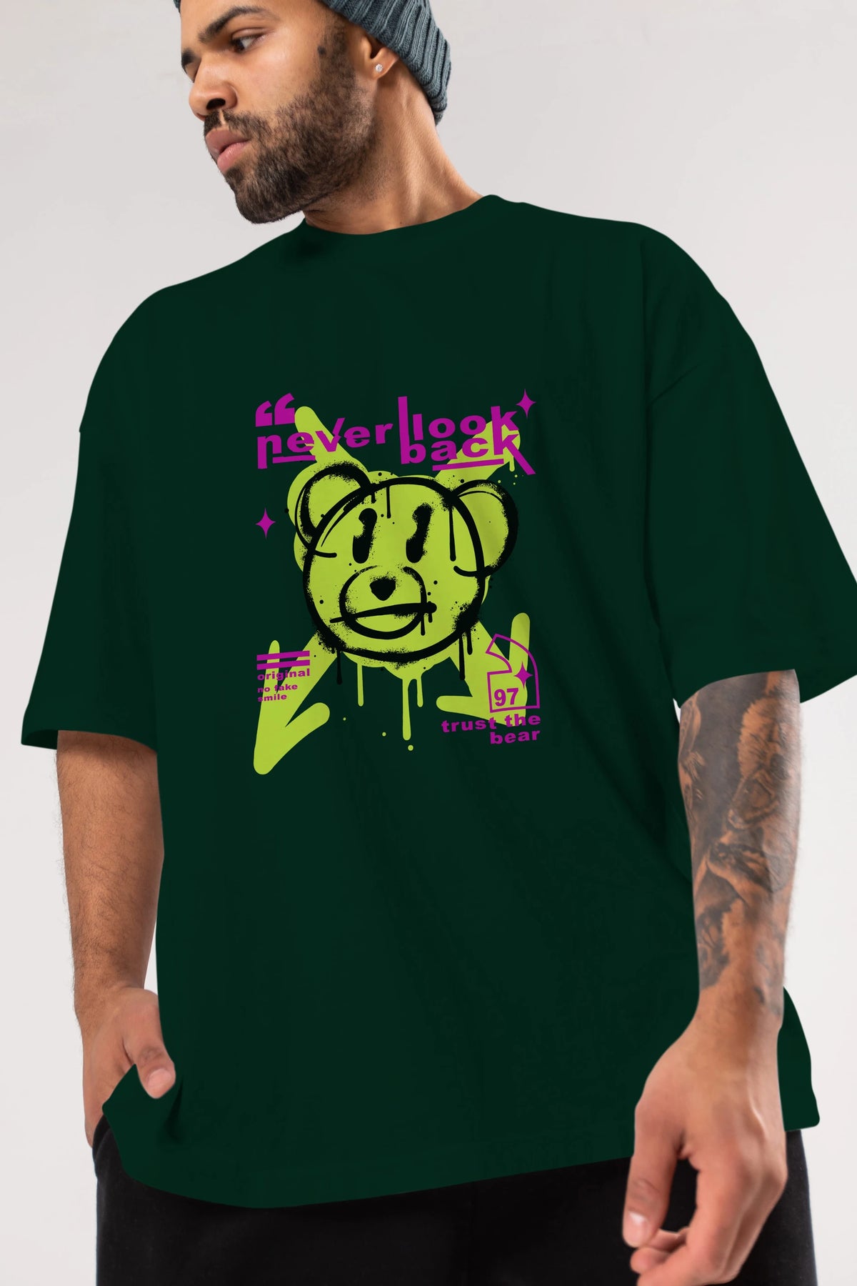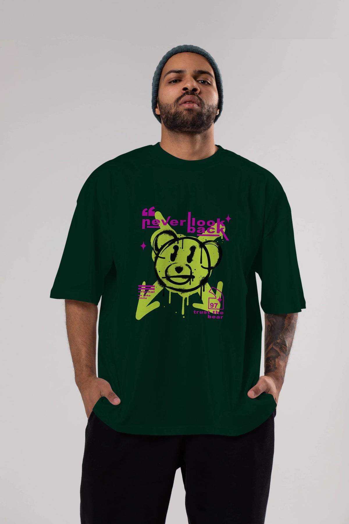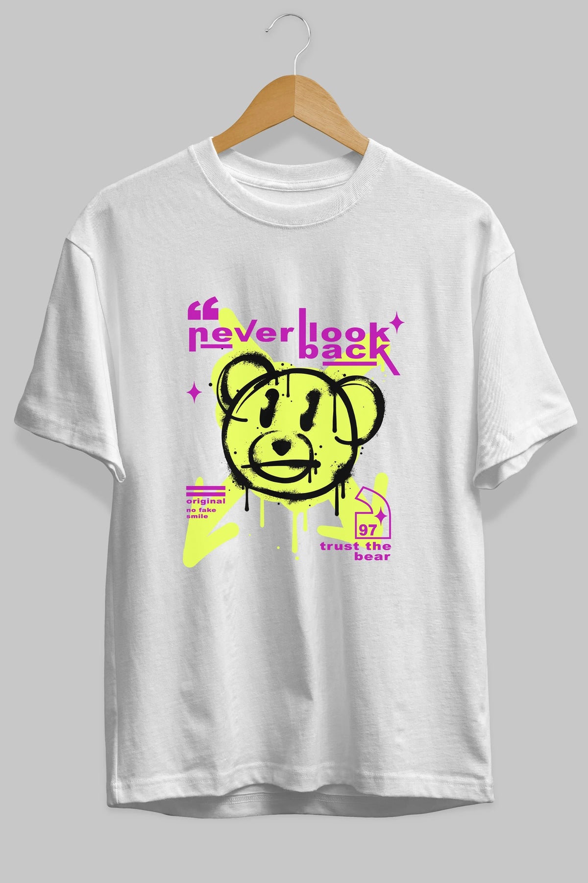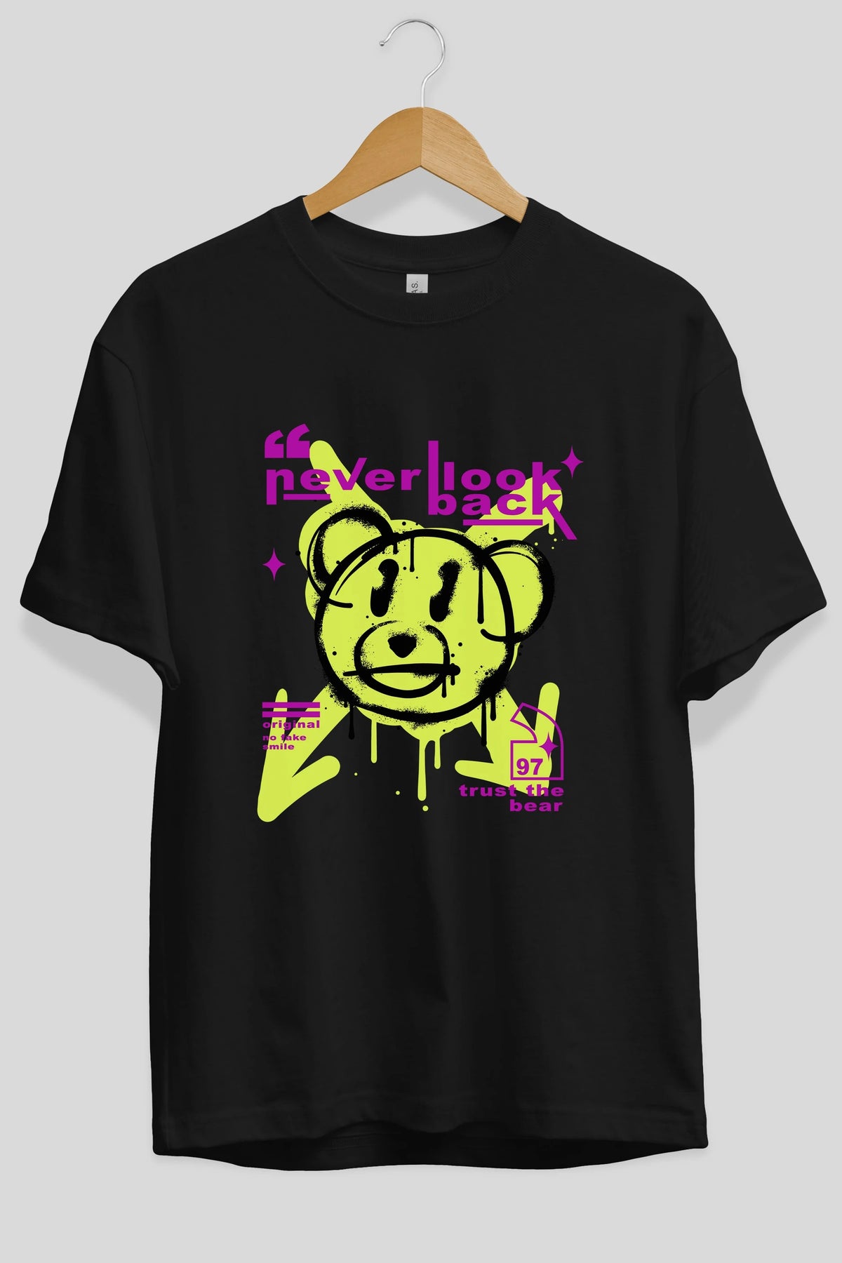 Never Look Back Bear Ön Baskılı Oversize t-shirt Erkek Kadın Unisex