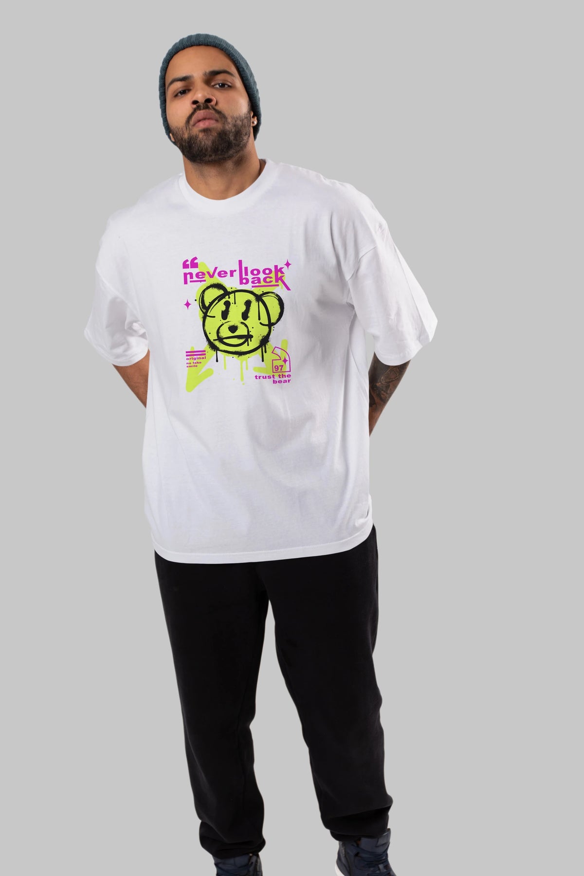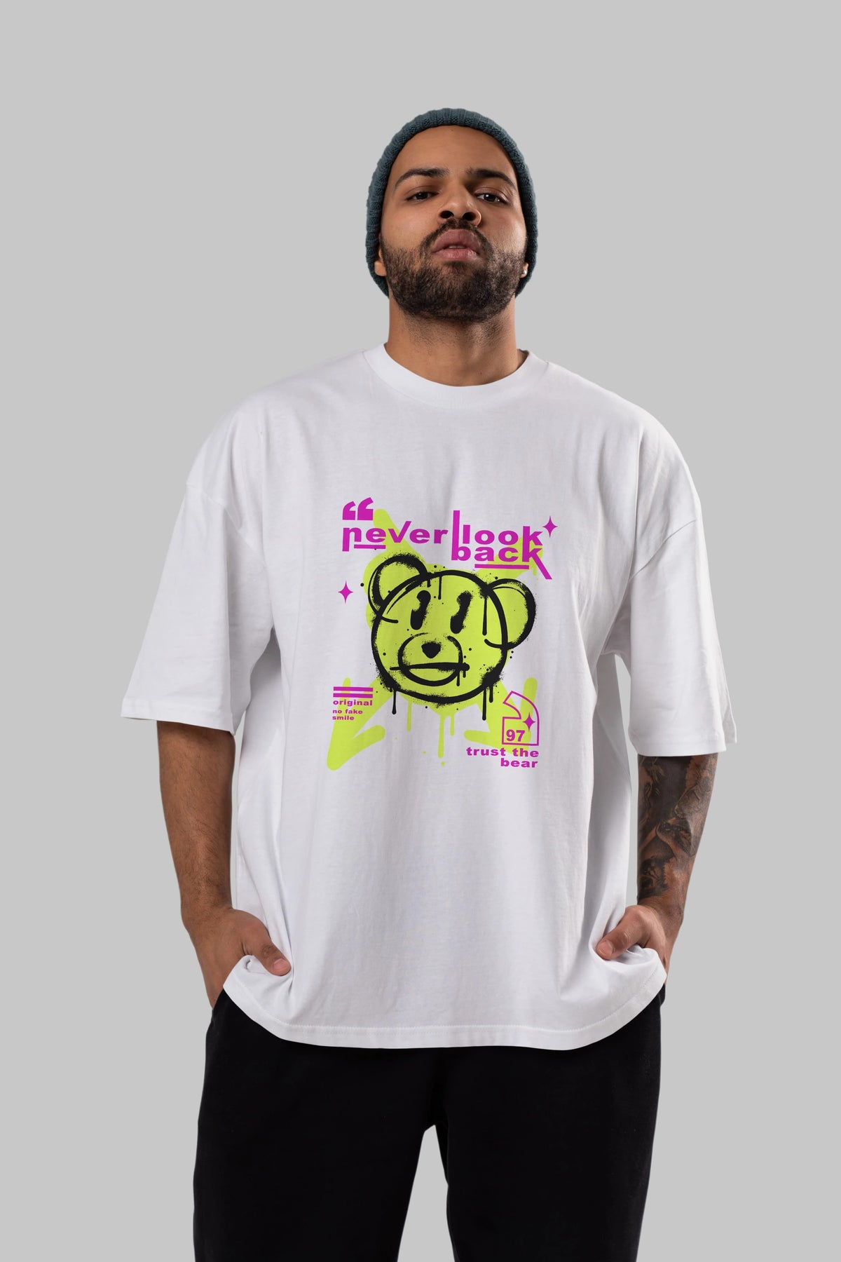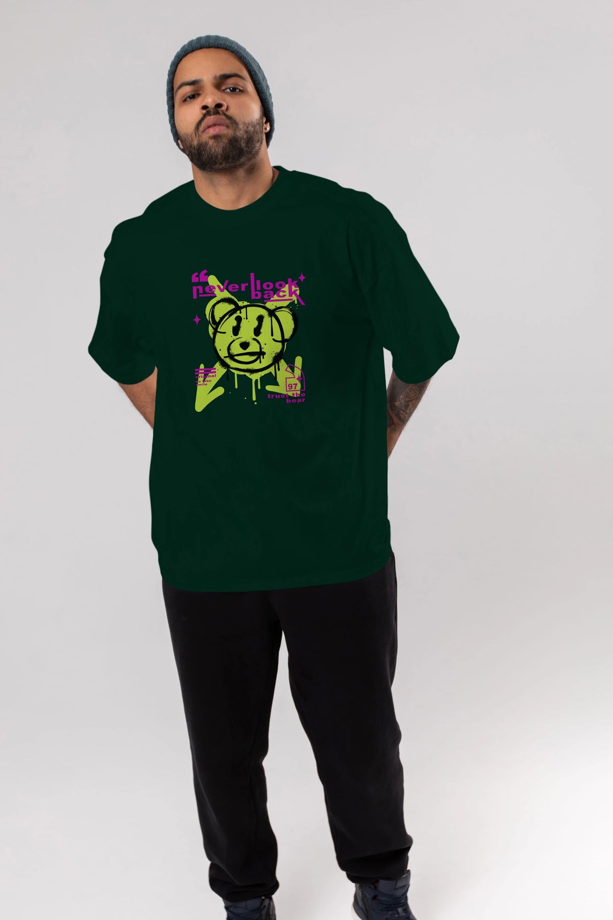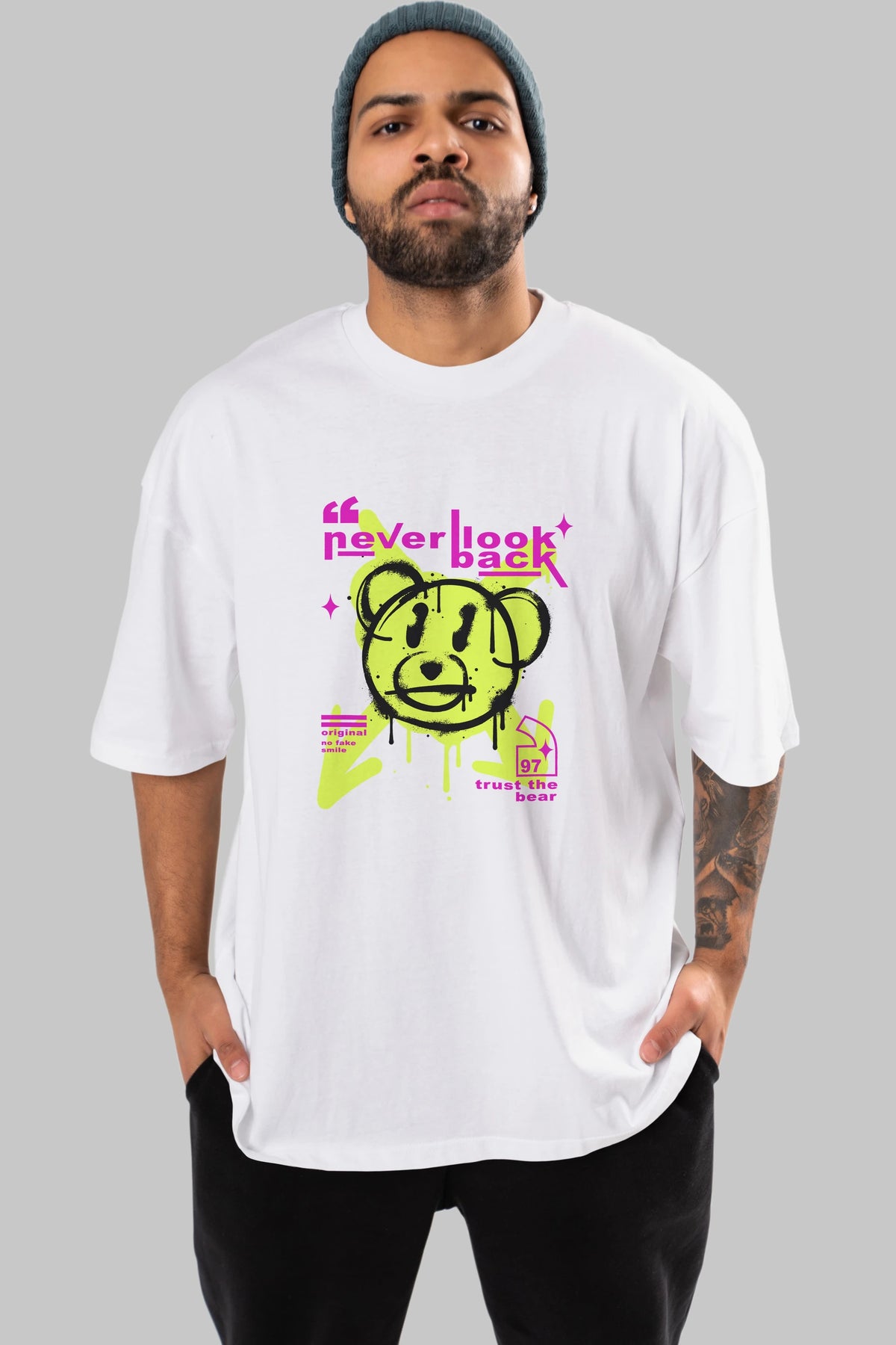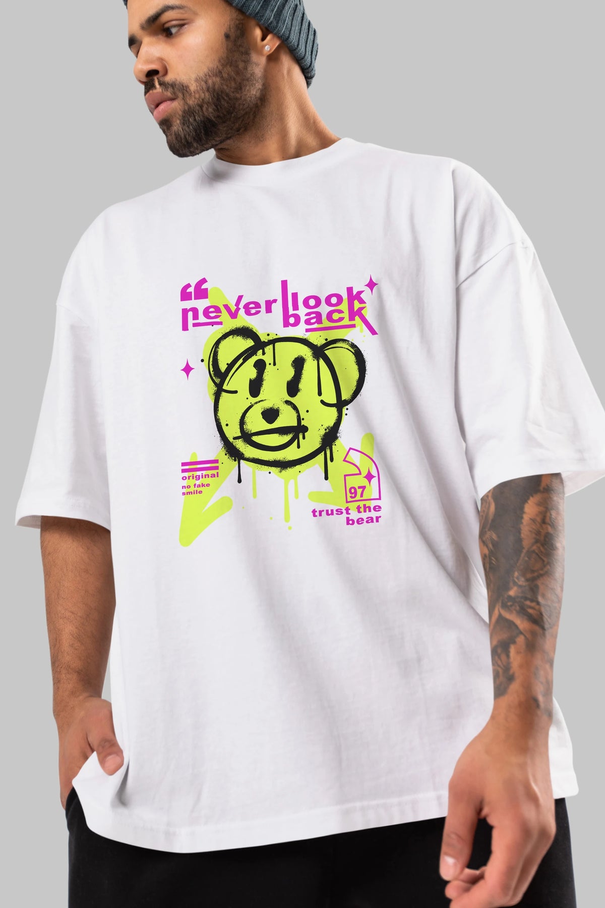 Never Look Back Bear Ön Baskılı Oversize t-shirt Erkek Kadın Unisex