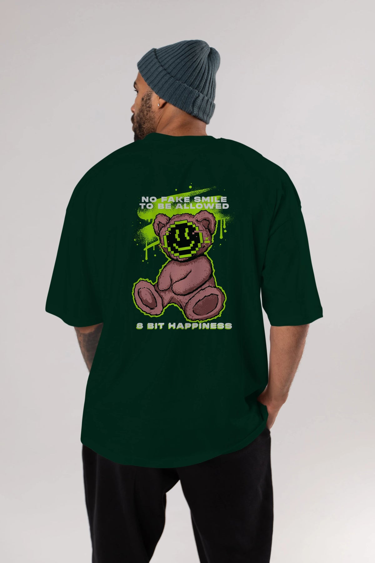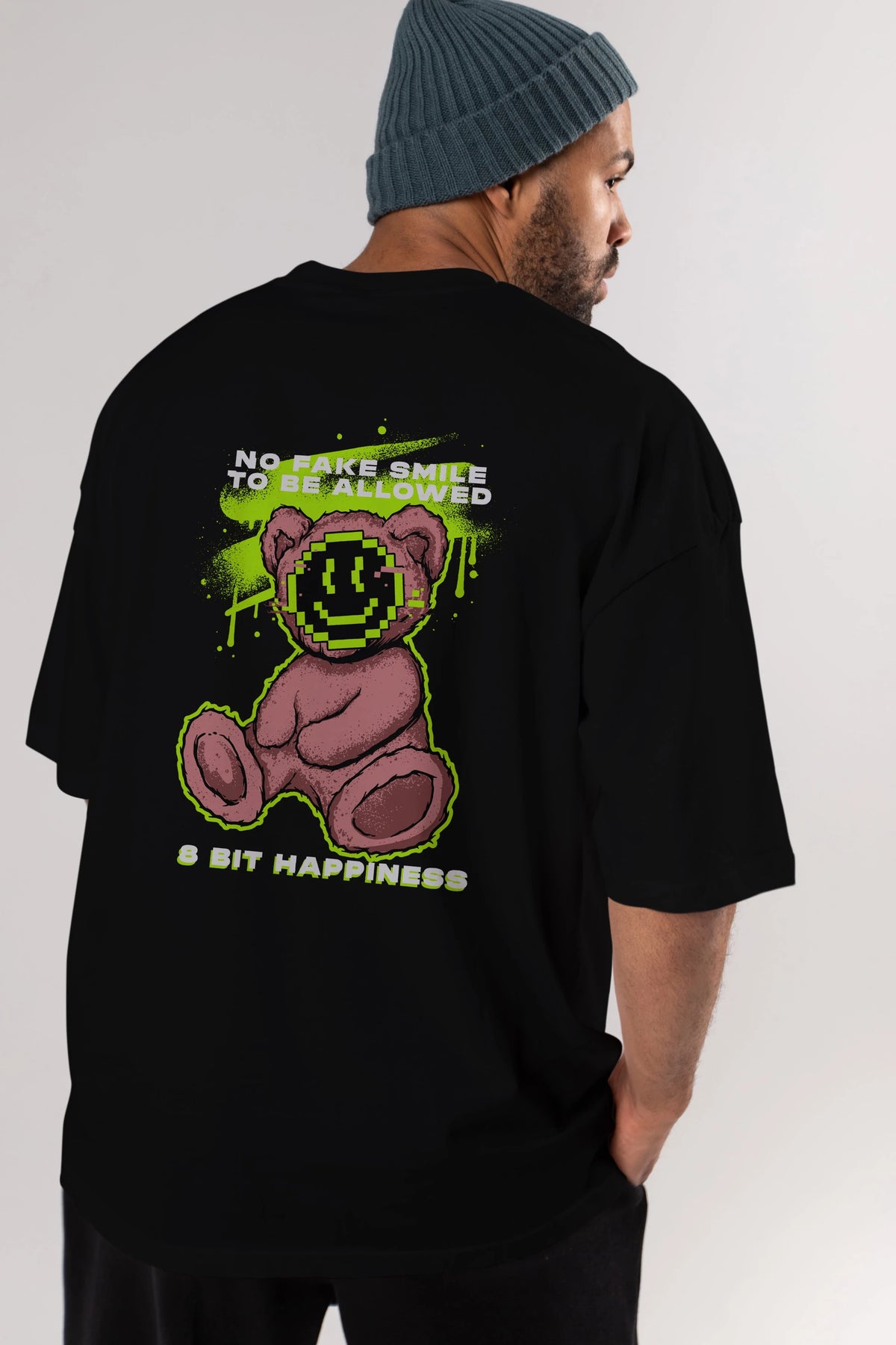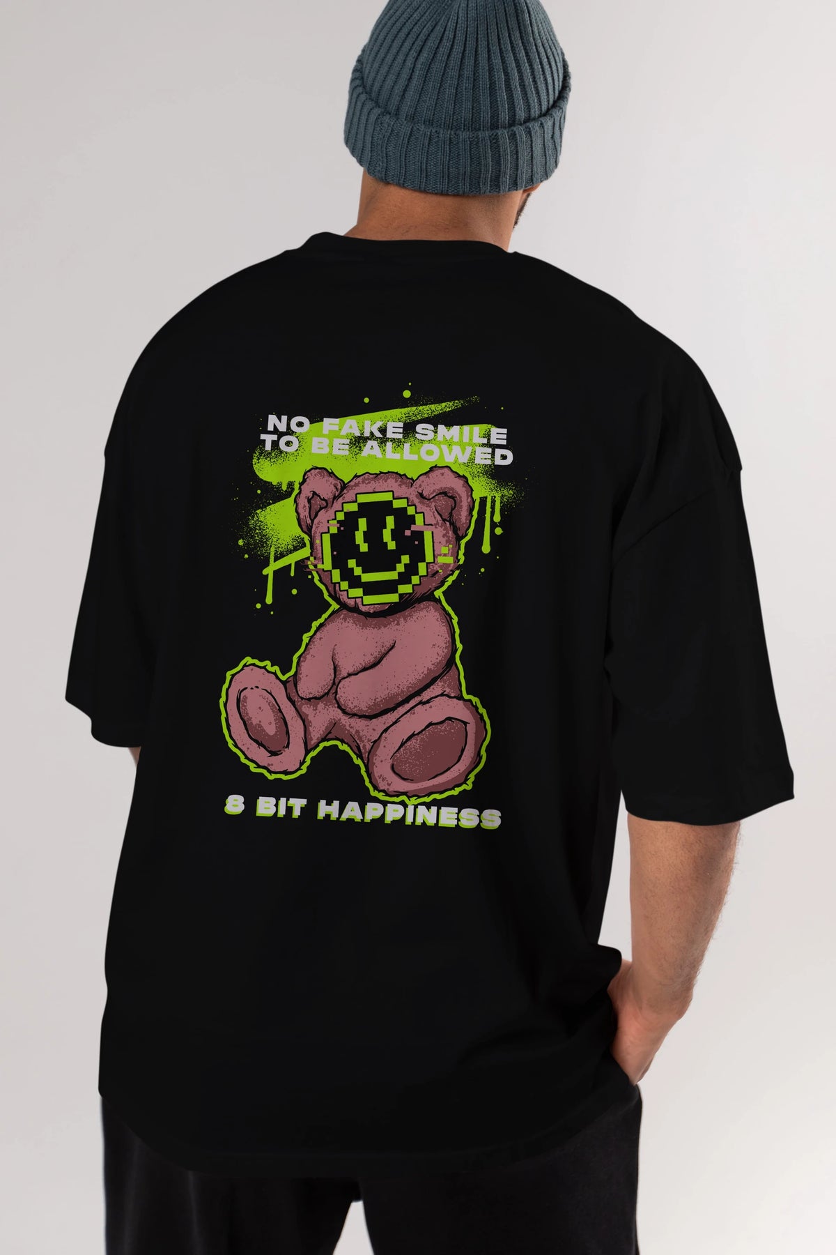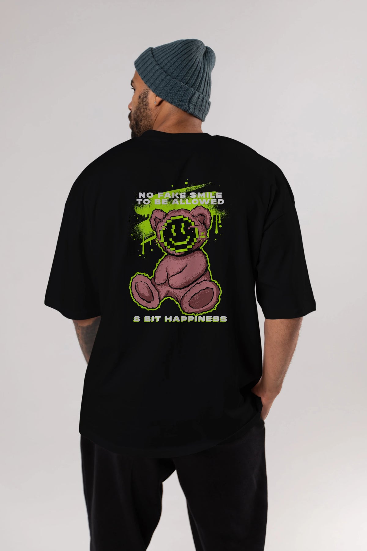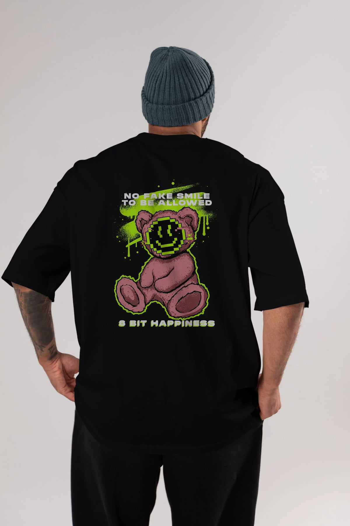 No Fake Smile Bear Arka Baskılı Oversize t-shirt Erkek Kadın Unisex