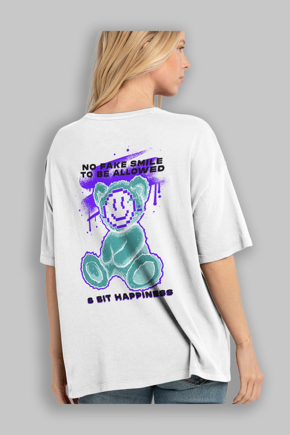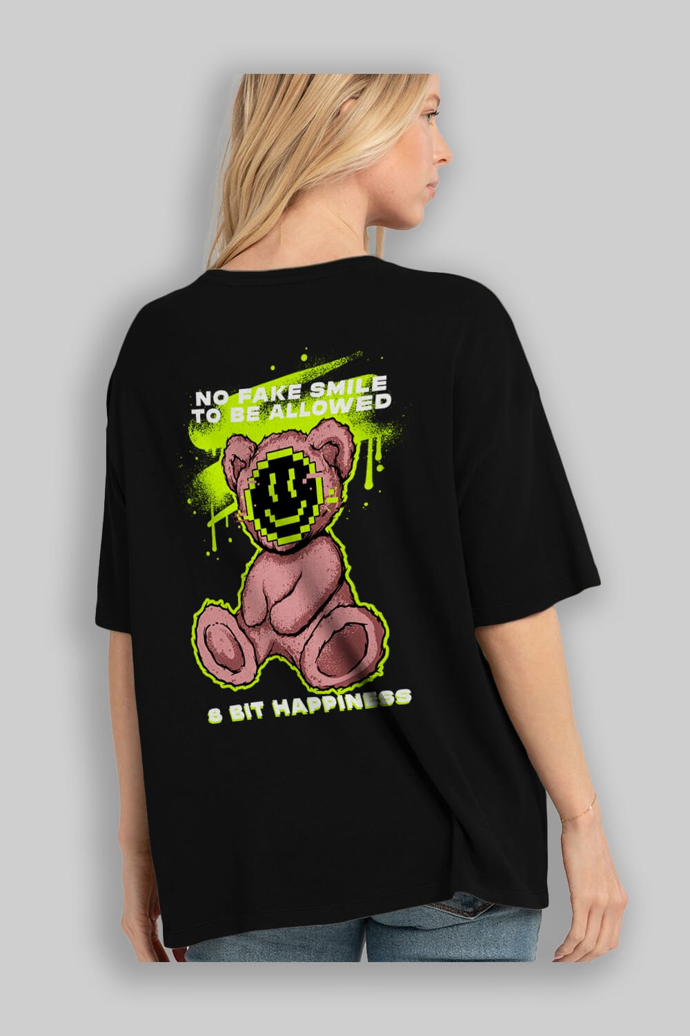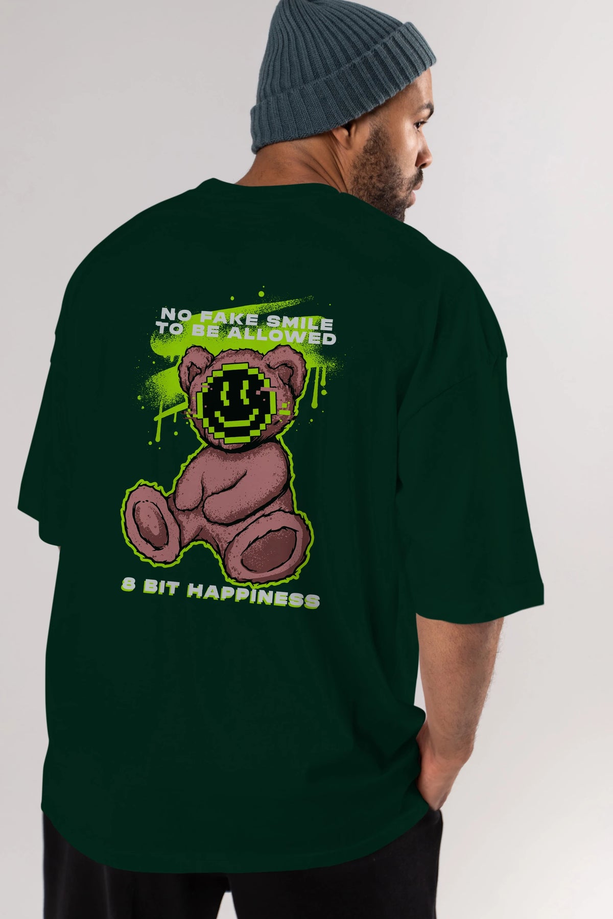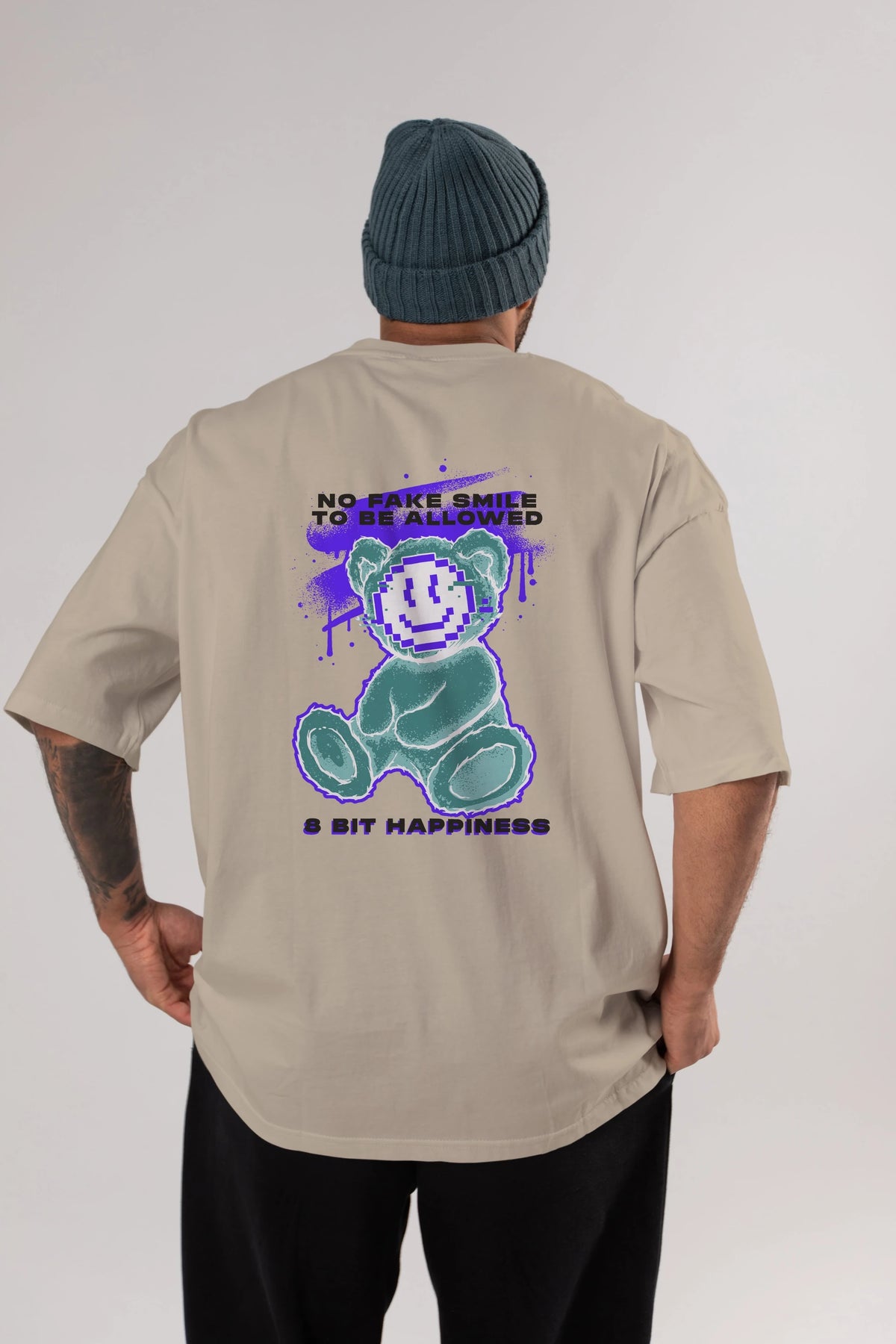 No Fake Smile Bear Arka Baskılı Oversize t-shirt Erkek Kadın Unisex