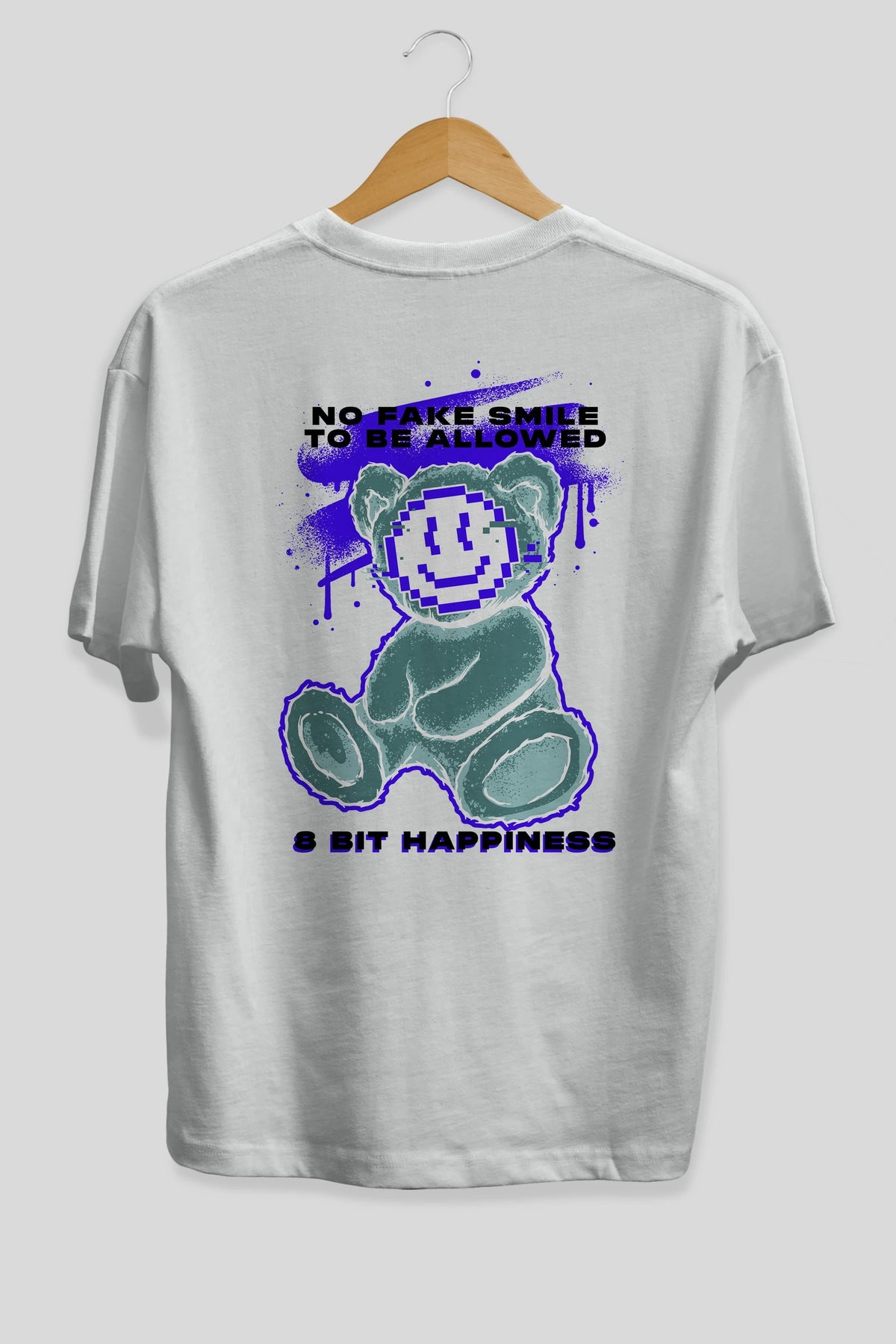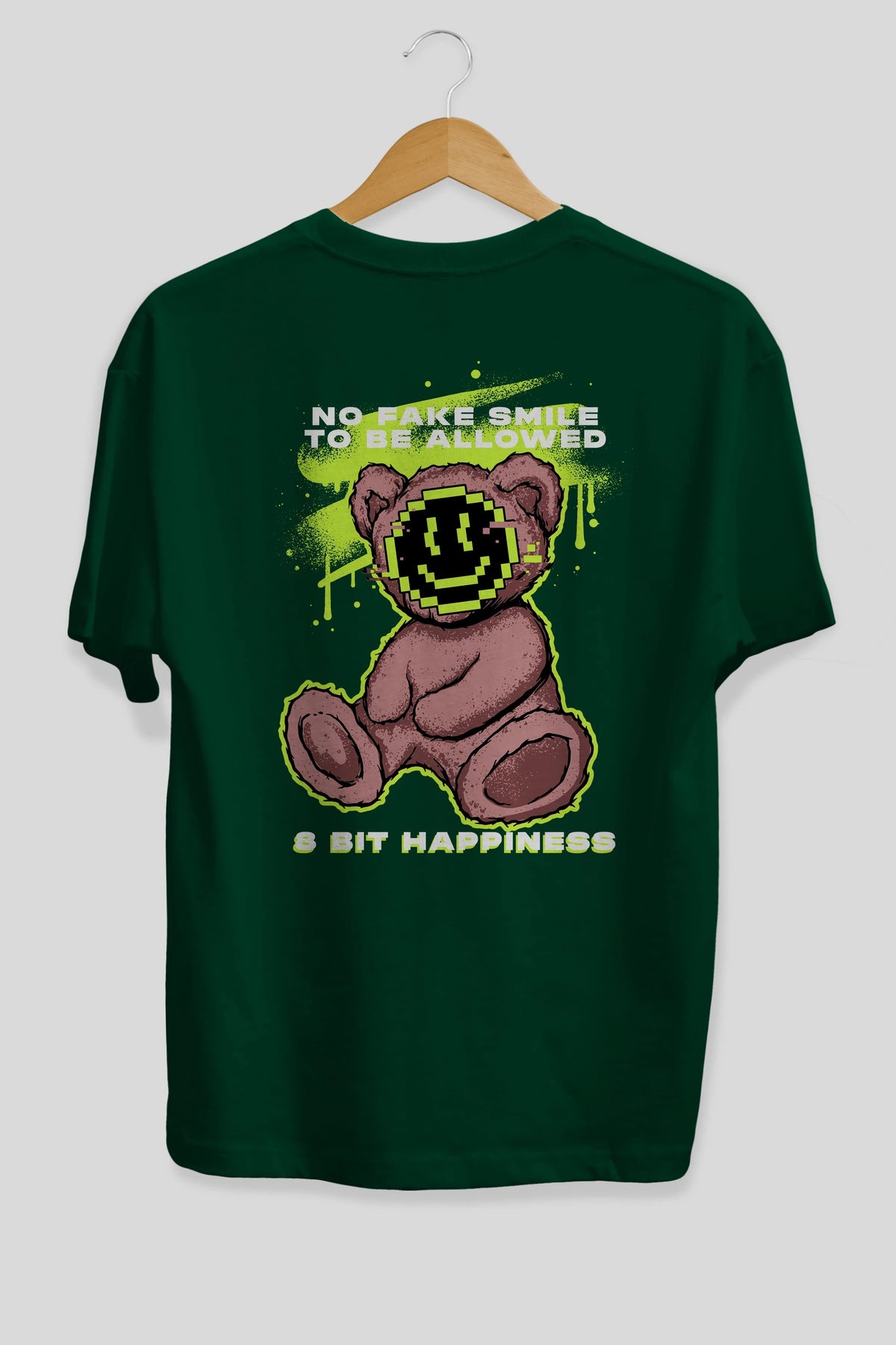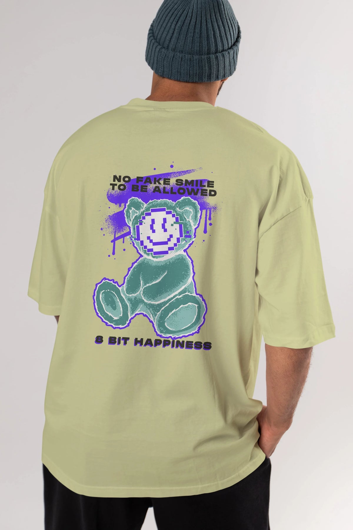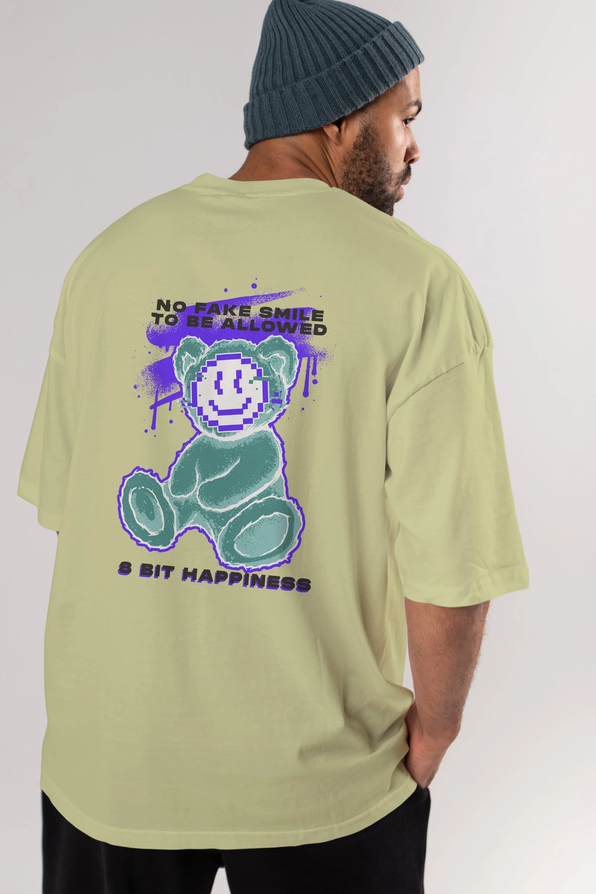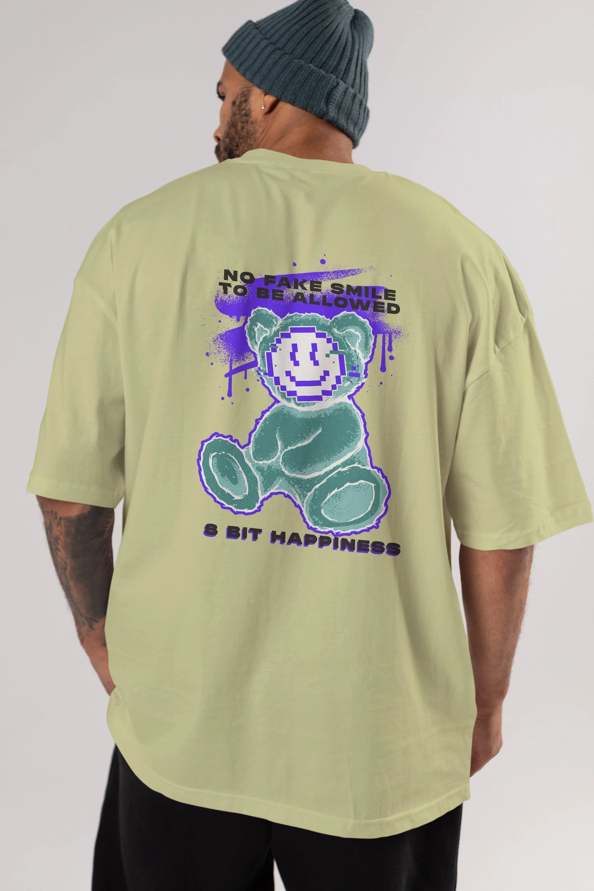 No Fake Smile Bear Arka Baskılı Oversize t-shirt Erkek Kadın Unisex