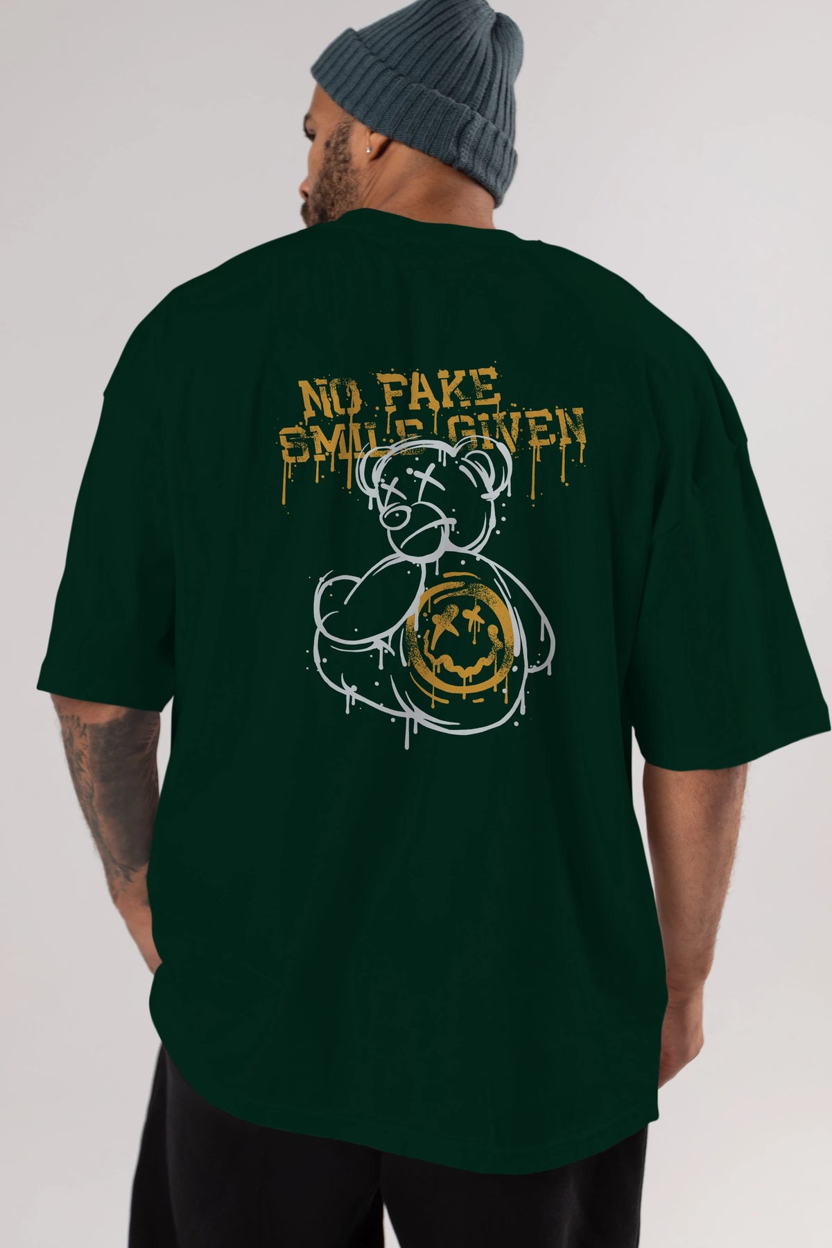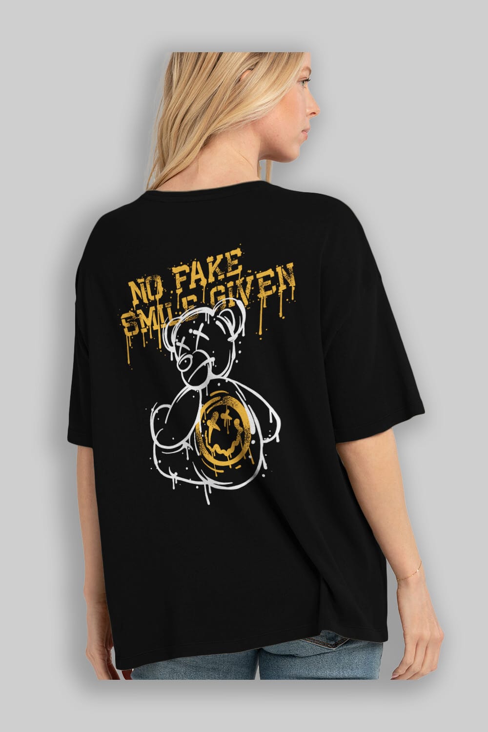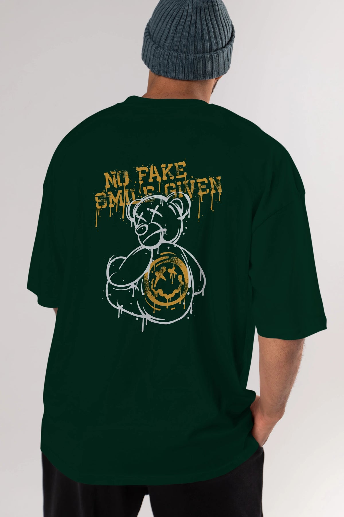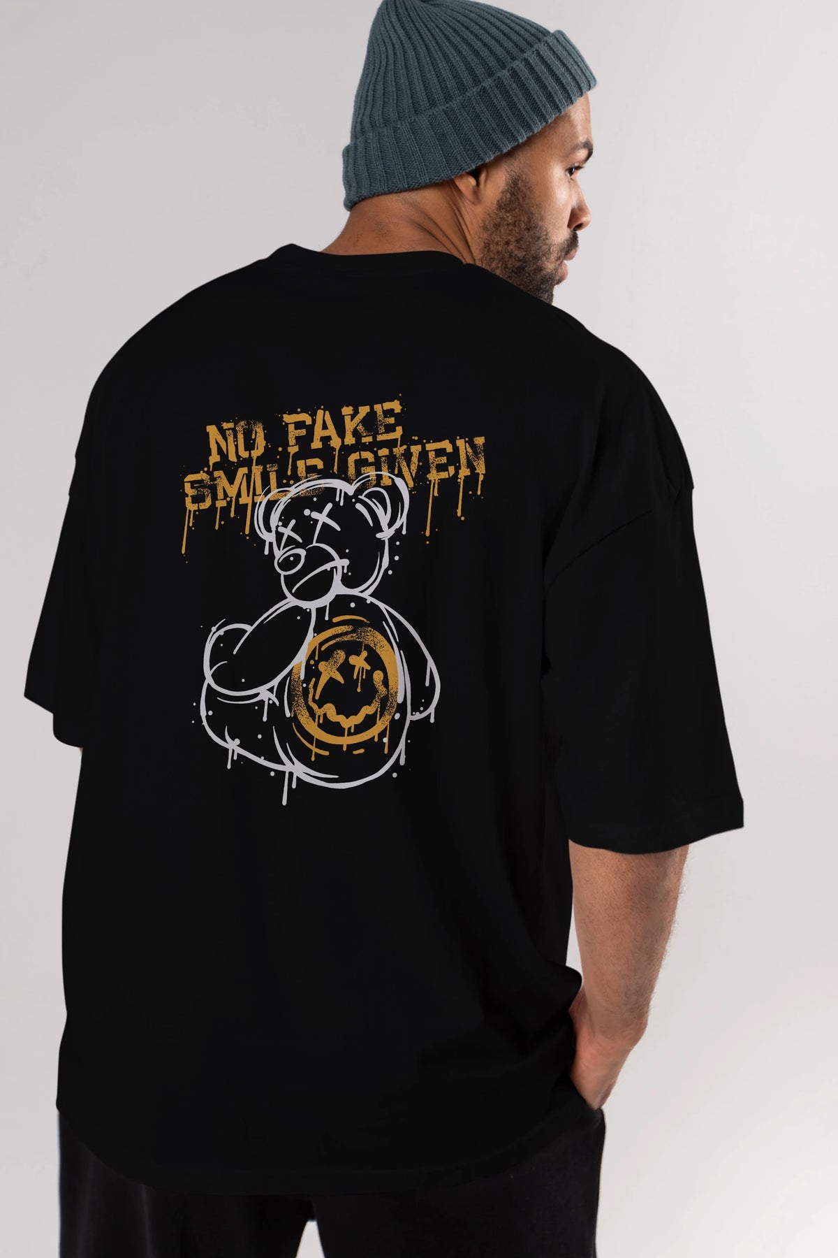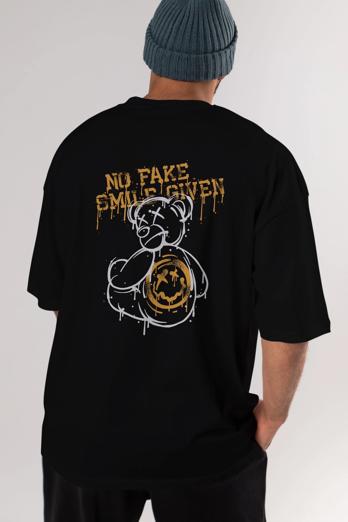 No Fake Smile Given Bear Arka Baskılı Oversize t-shirt Erkek Kadın Unisex