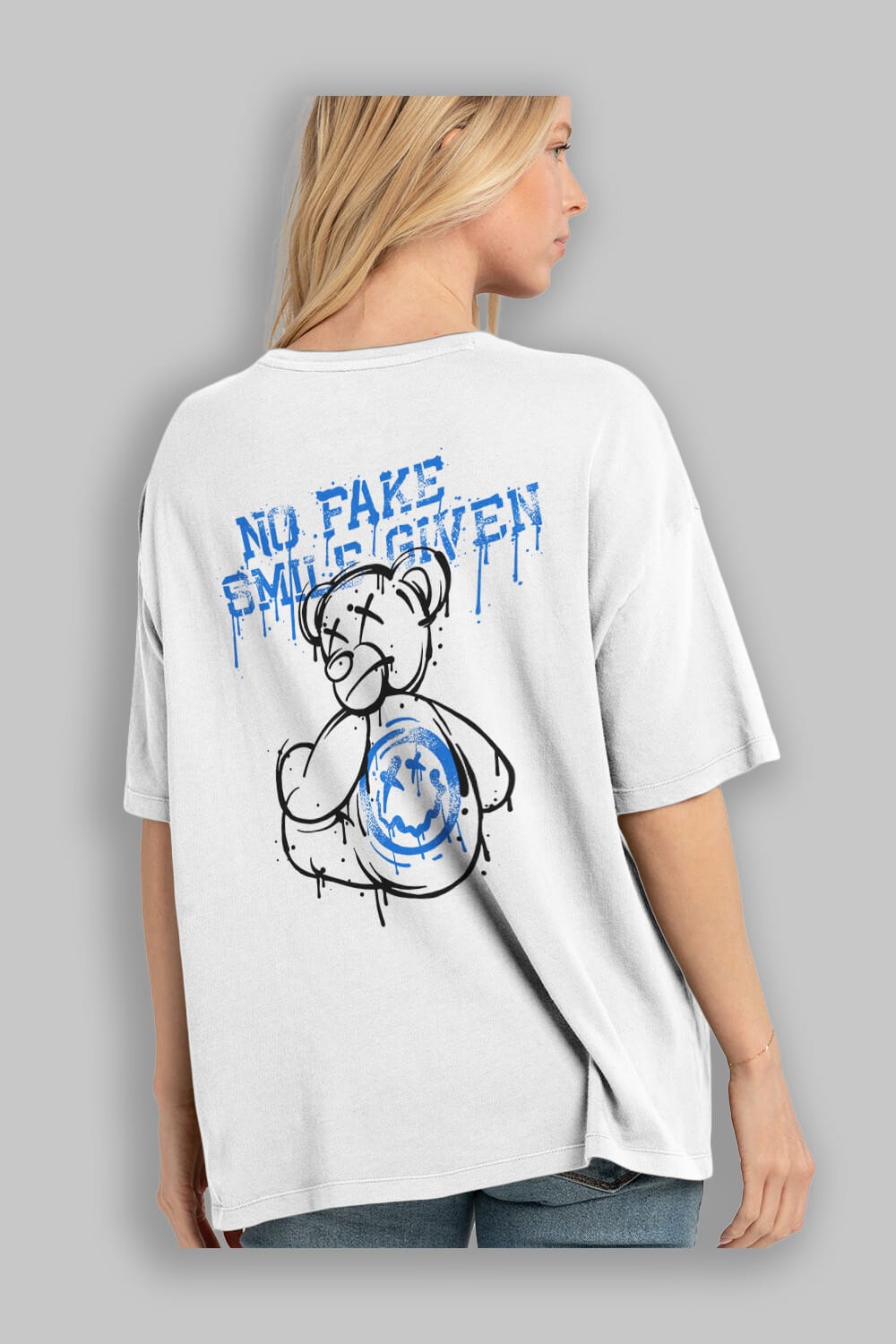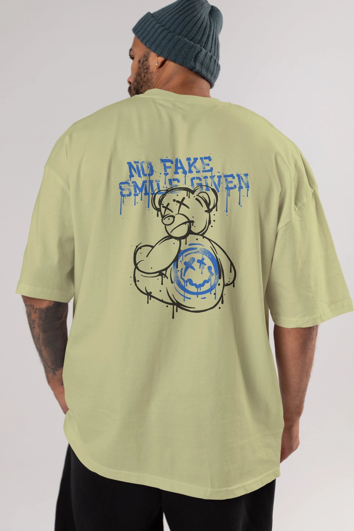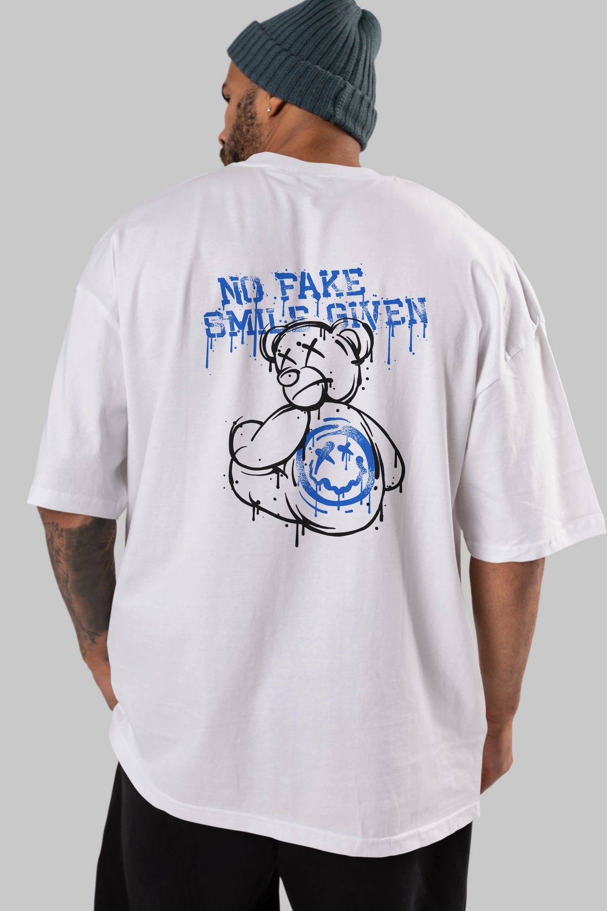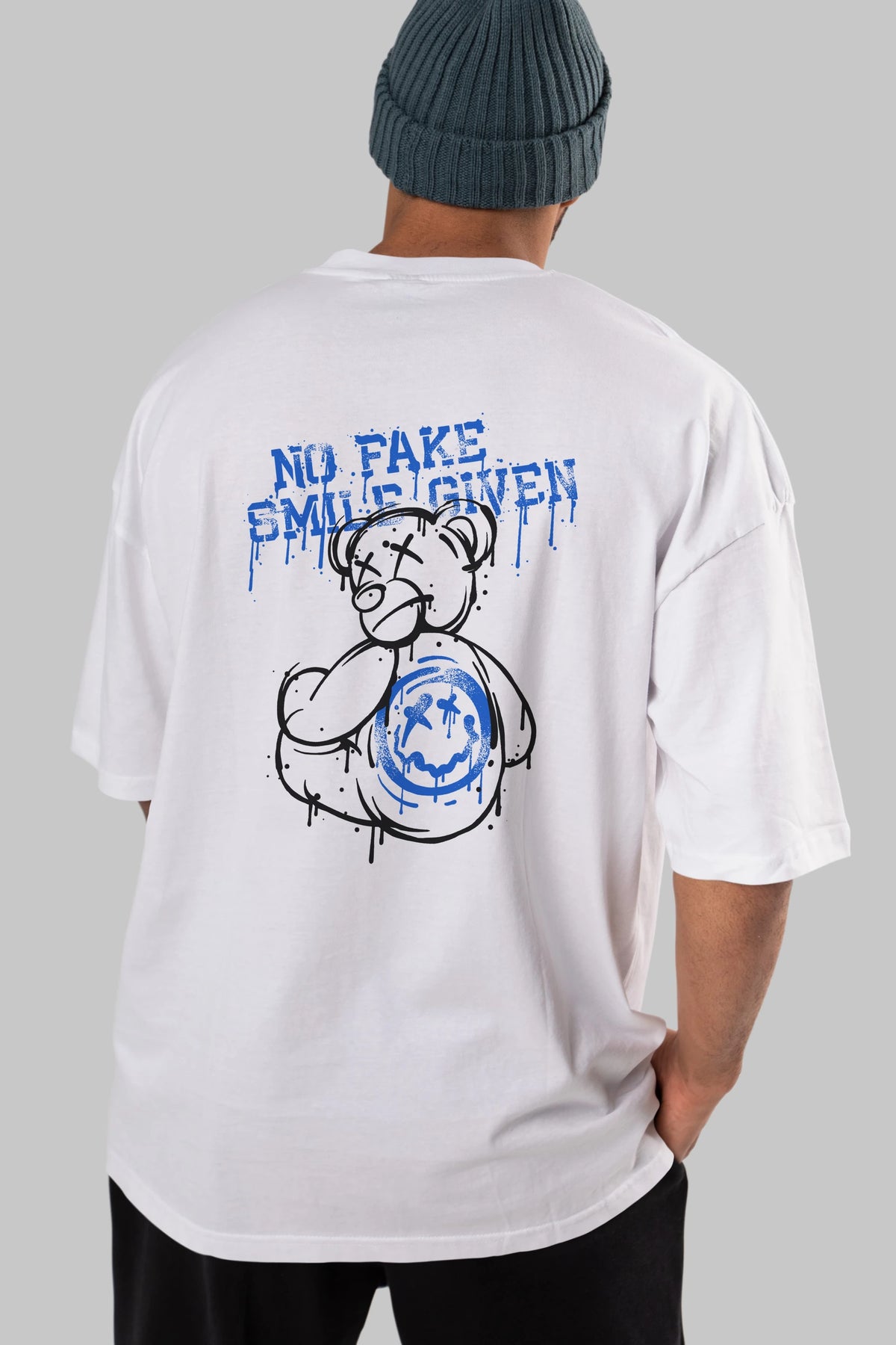 No Fake Smile Given Bear Arka Baskılı Oversize t-shirt Erkek Kadın Unisex