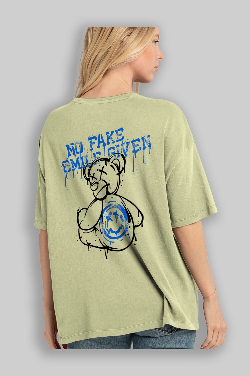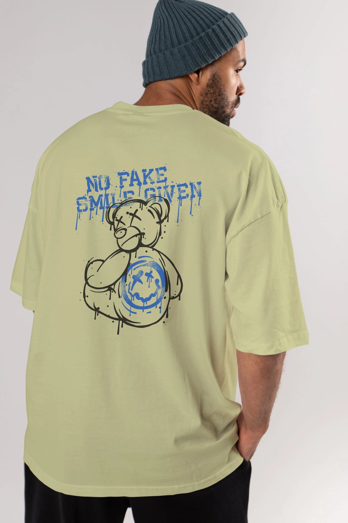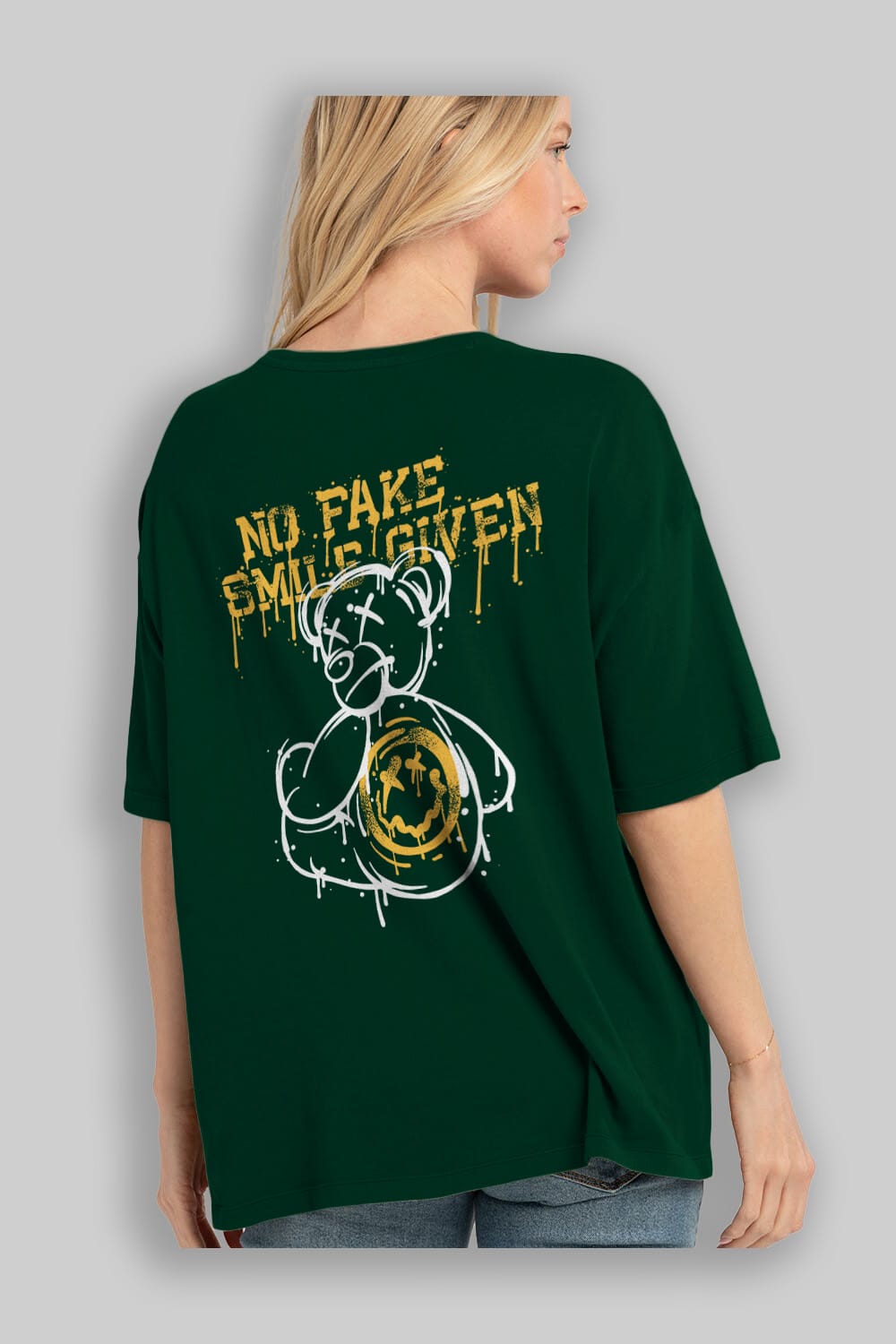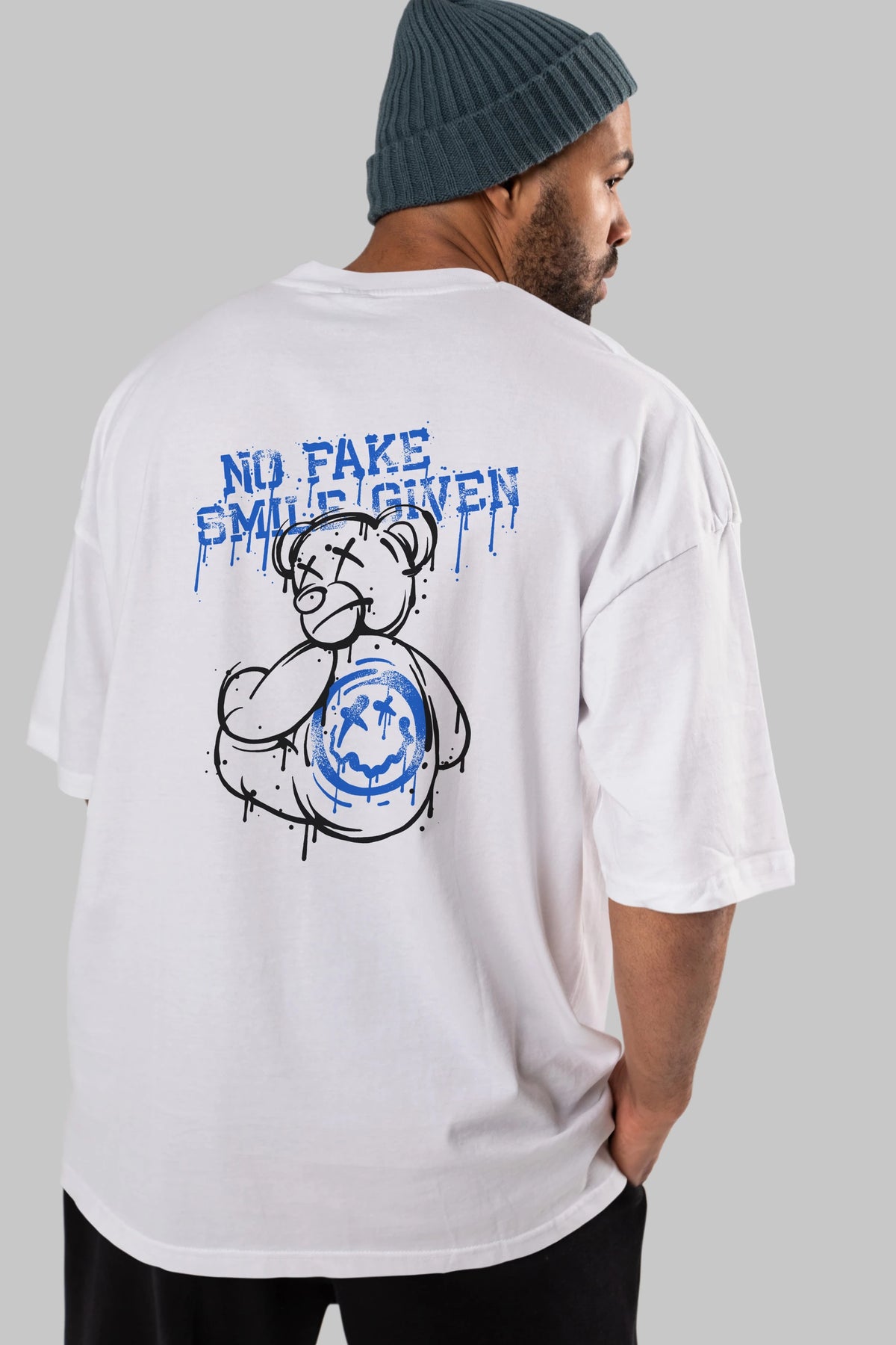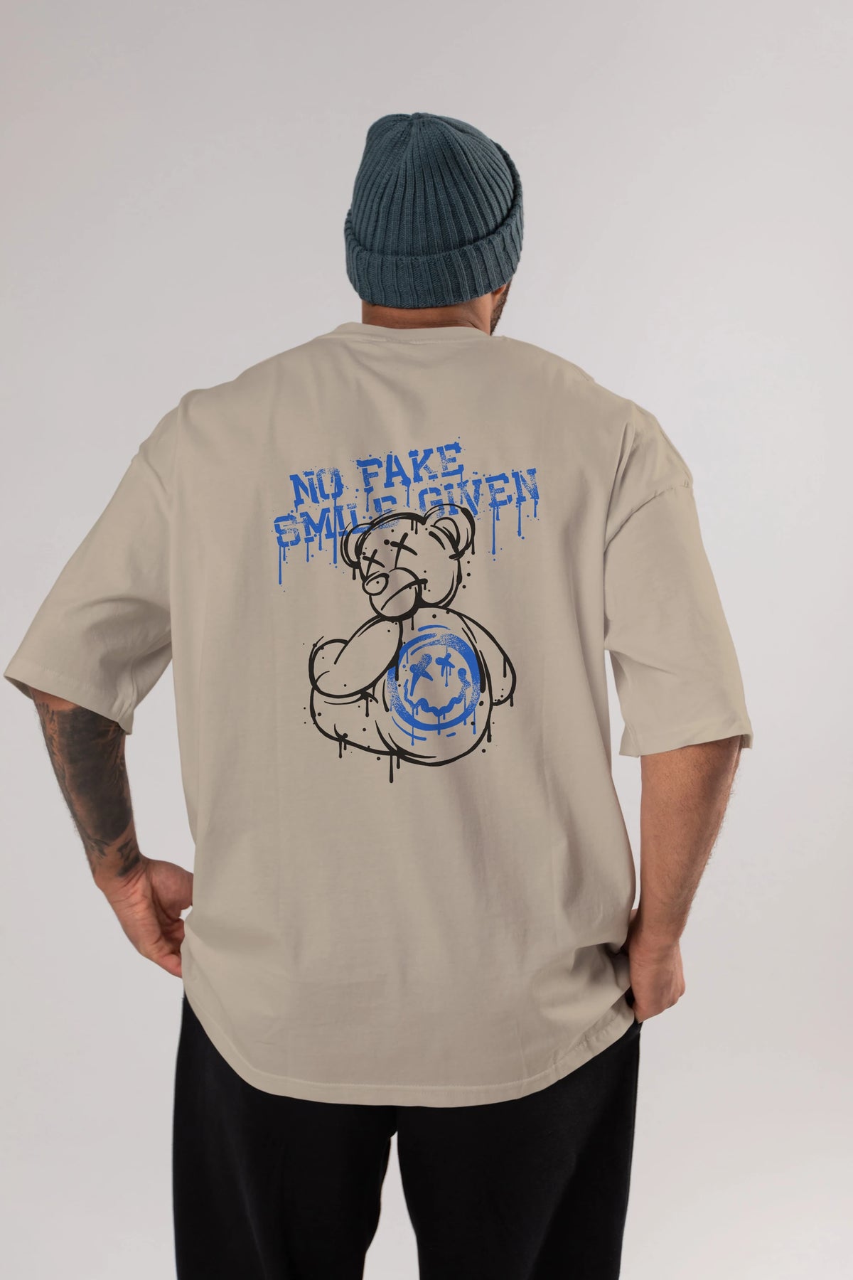 No Fake Smile Given Bear Arka Baskılı Oversize t-shirt Erkek Kadın Unisex