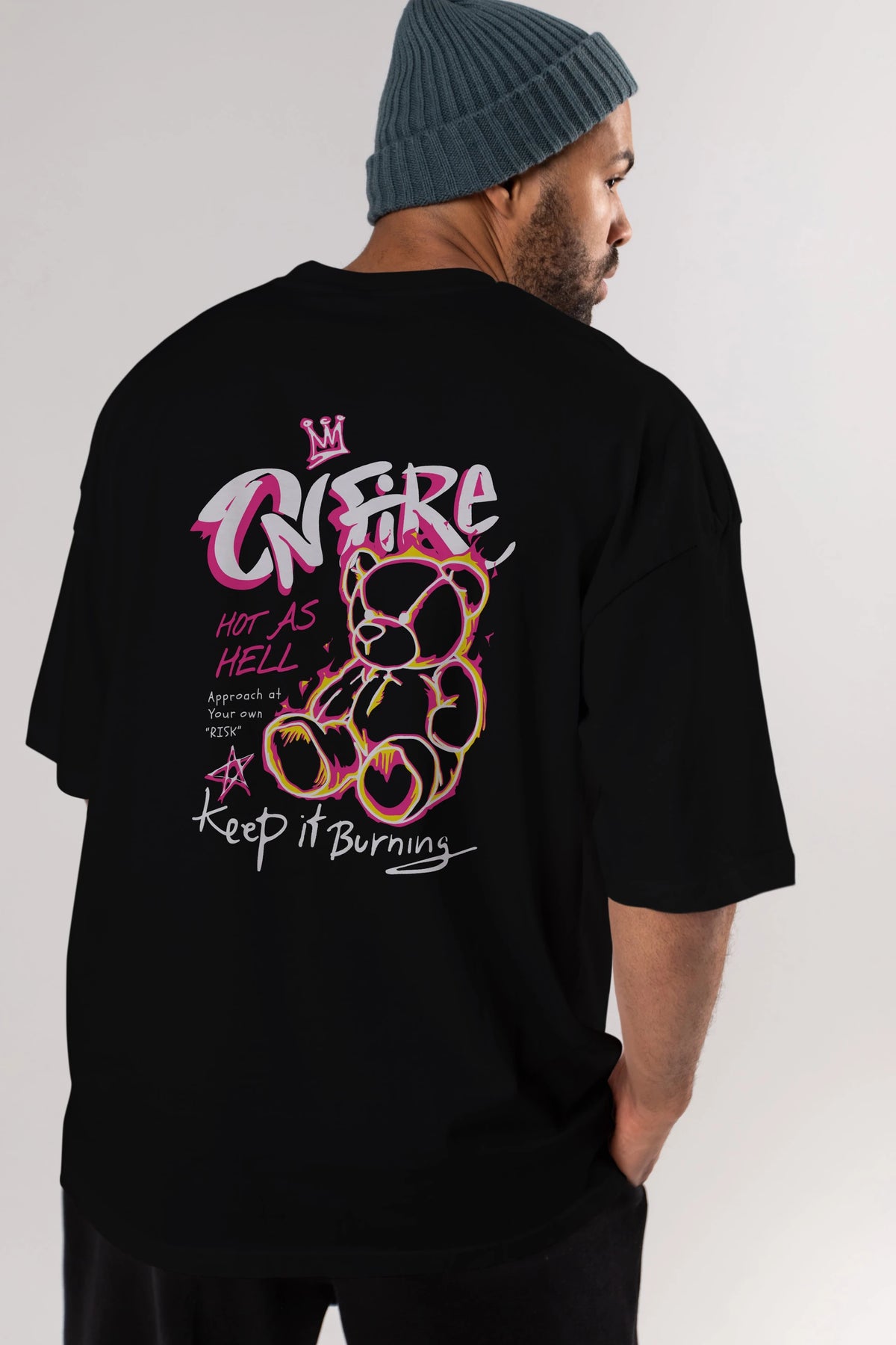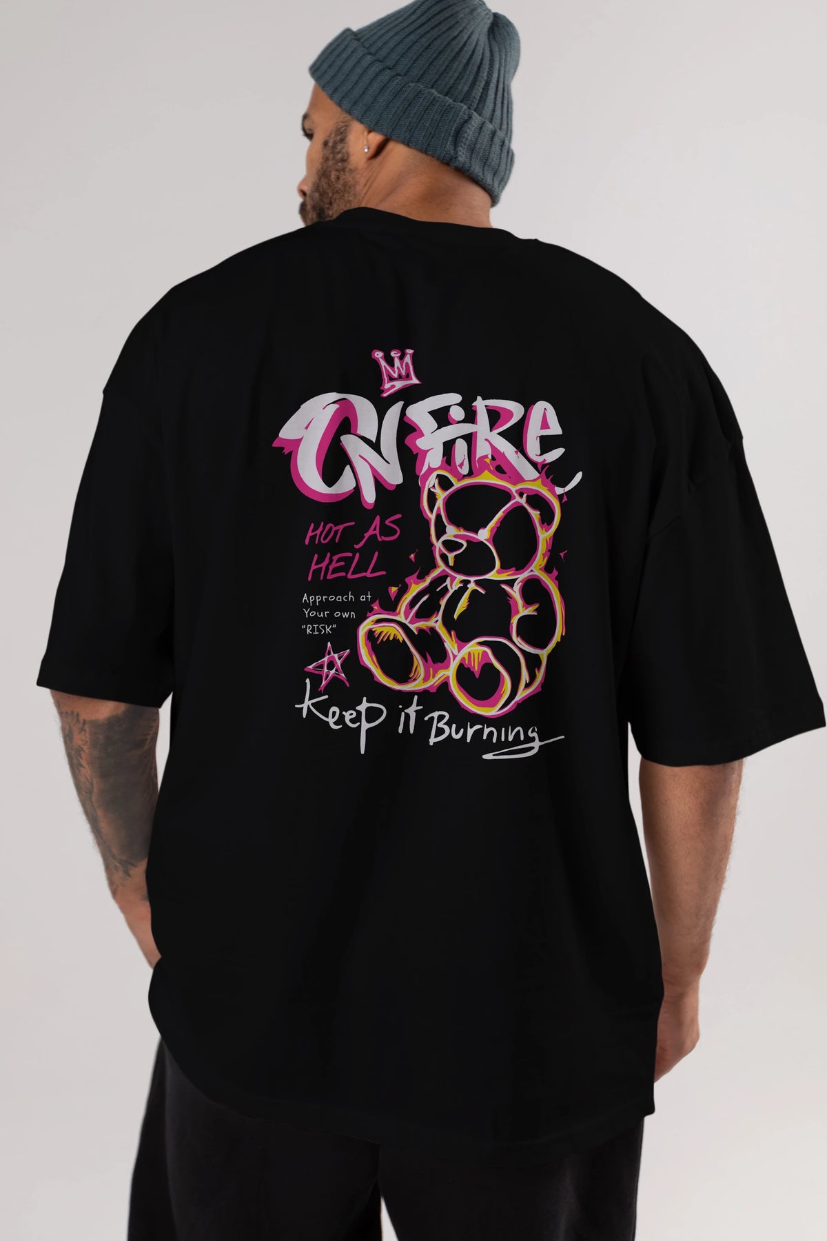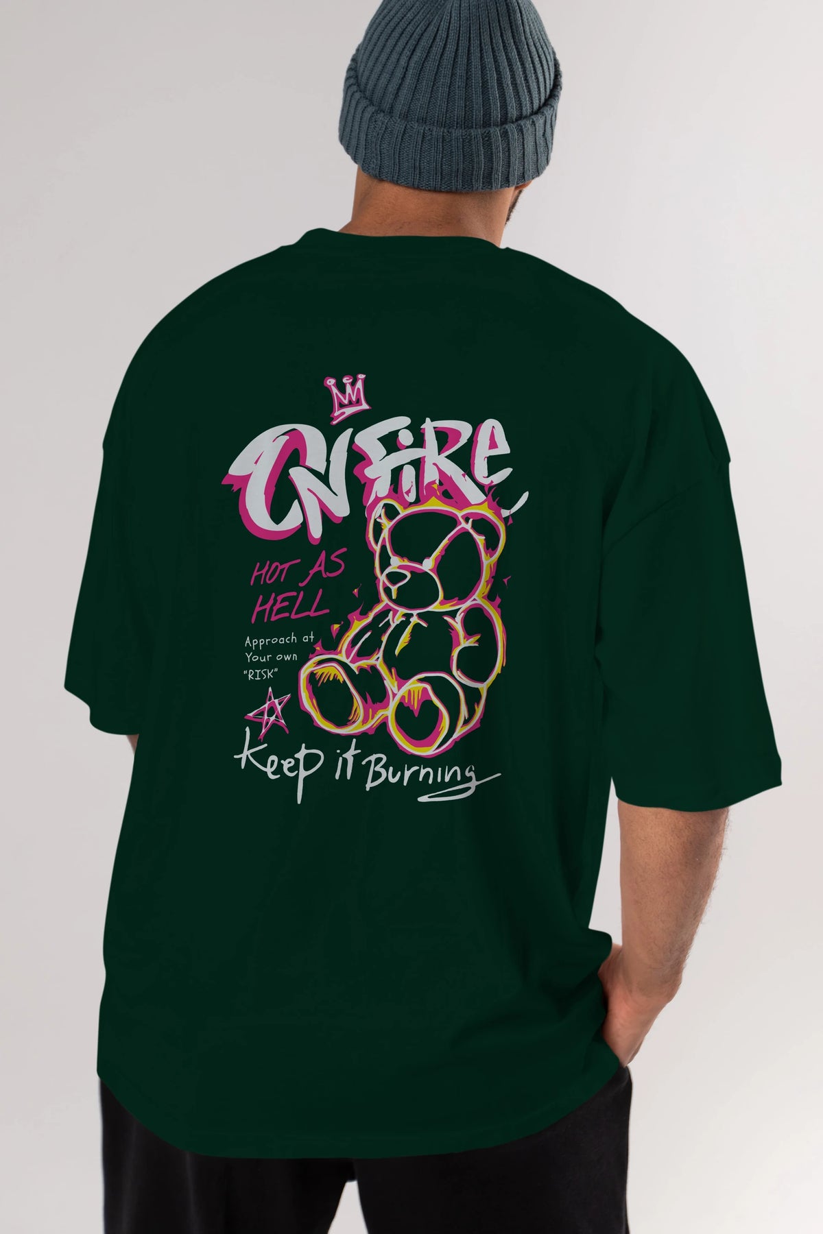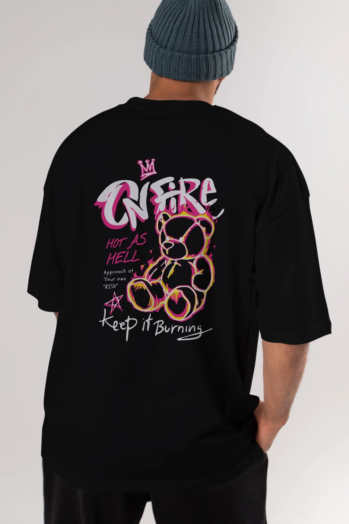 On Fire Bear Arka Baskılı Oversize t-shirt Erkek Kadın Unisex