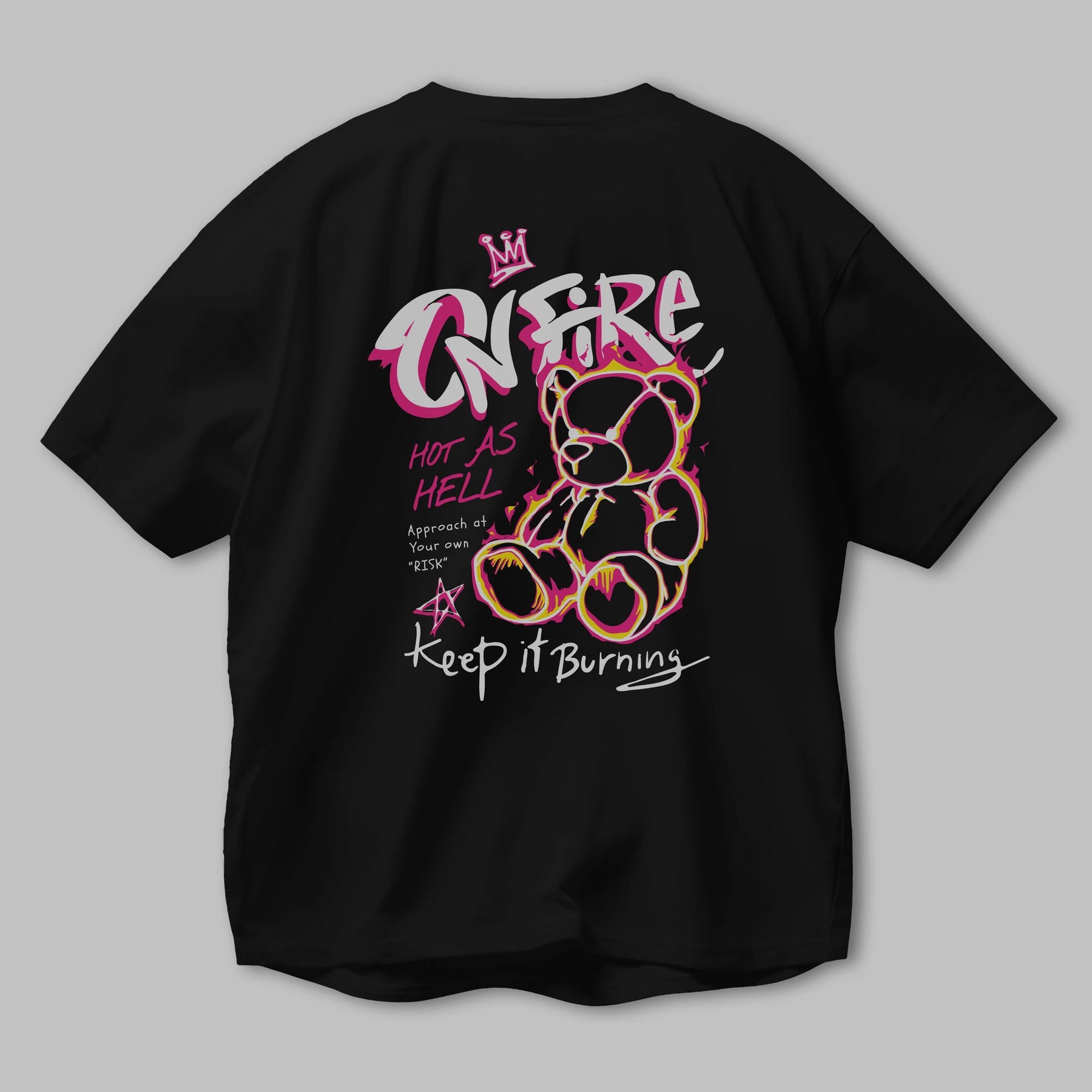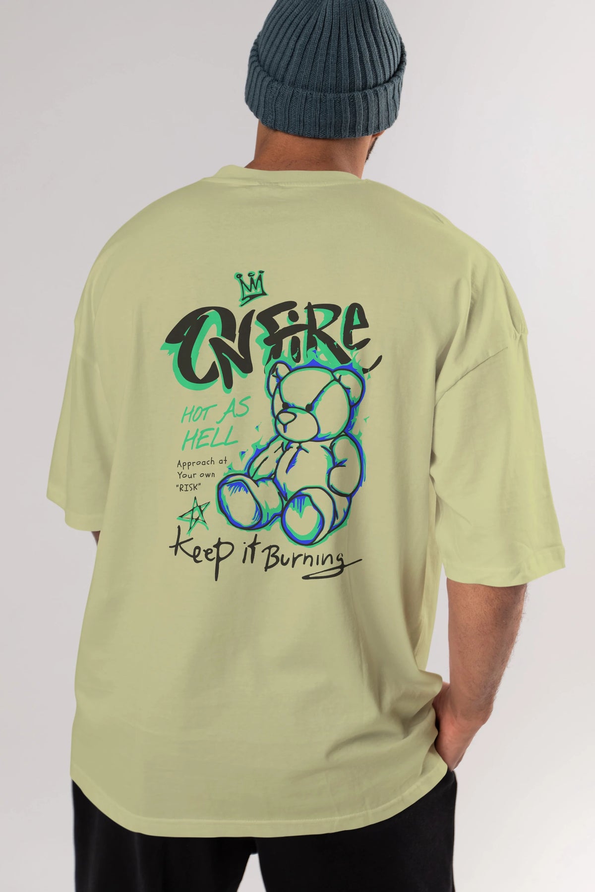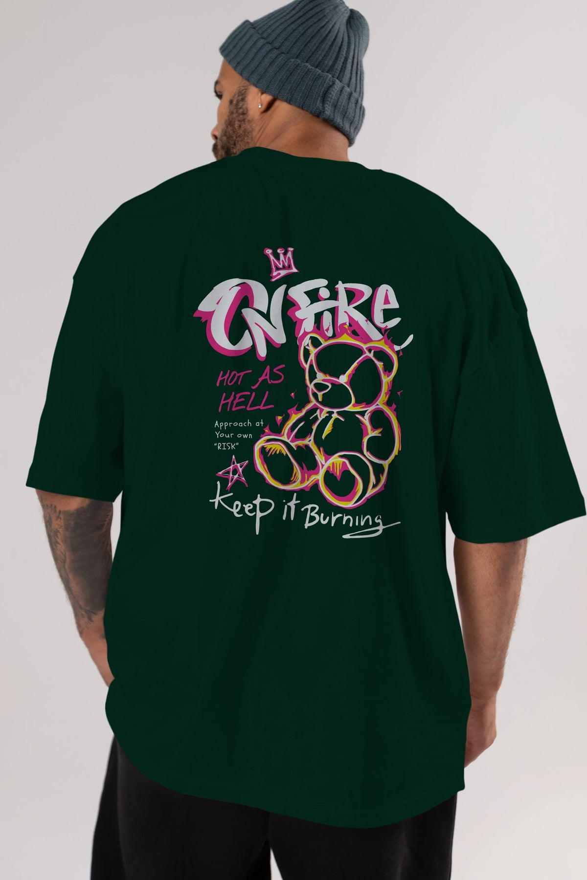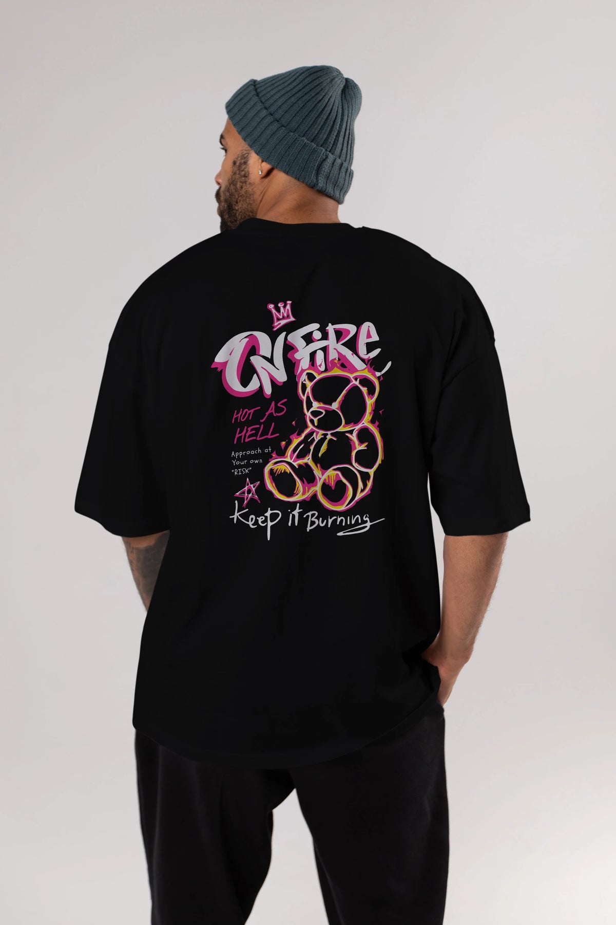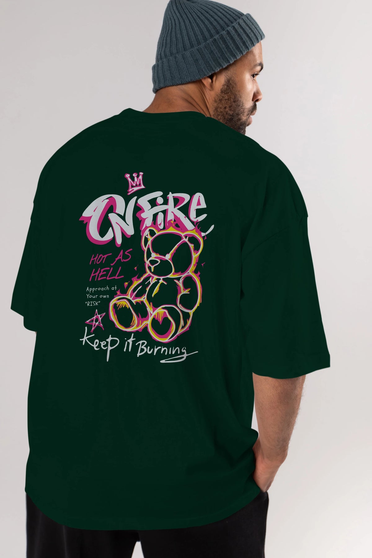 On Fire Bear Arka Baskılı Oversize t-shirt Erkek Kadın Unisex