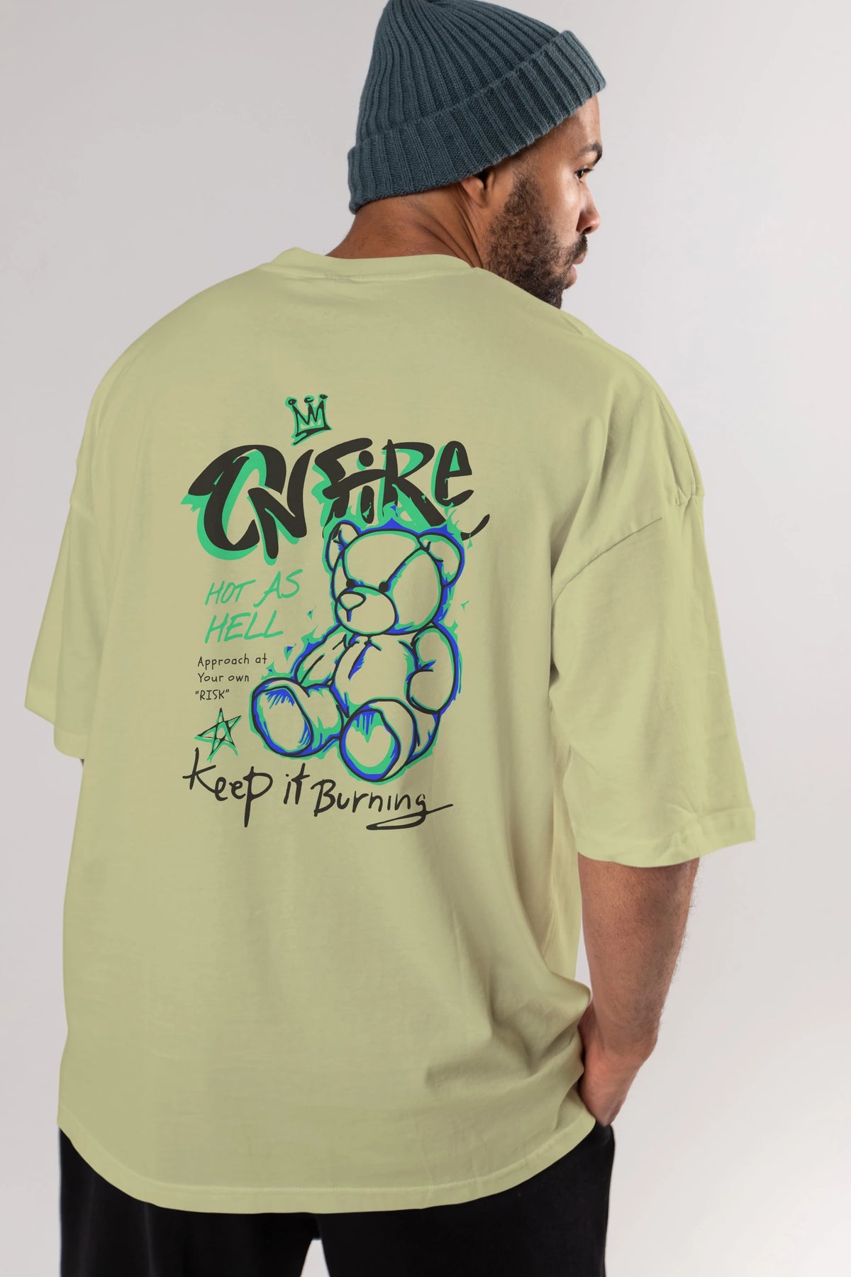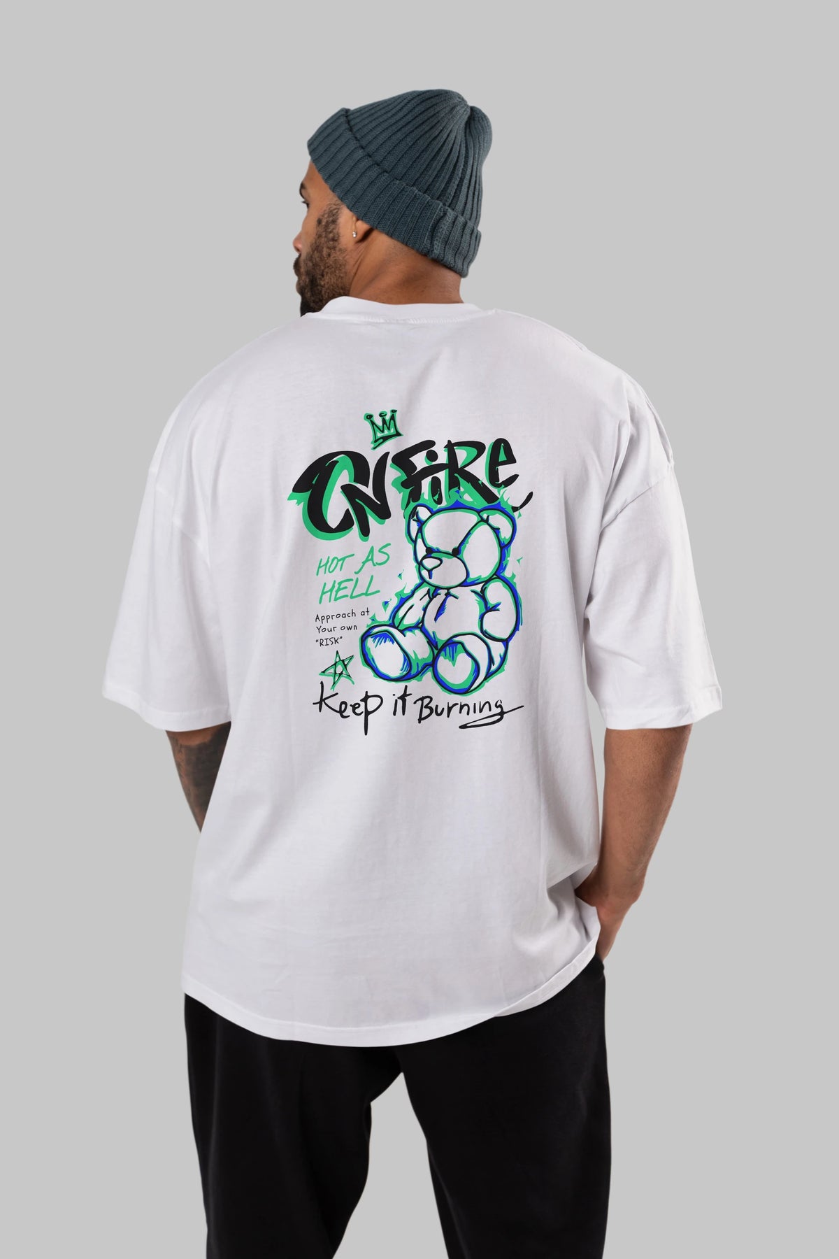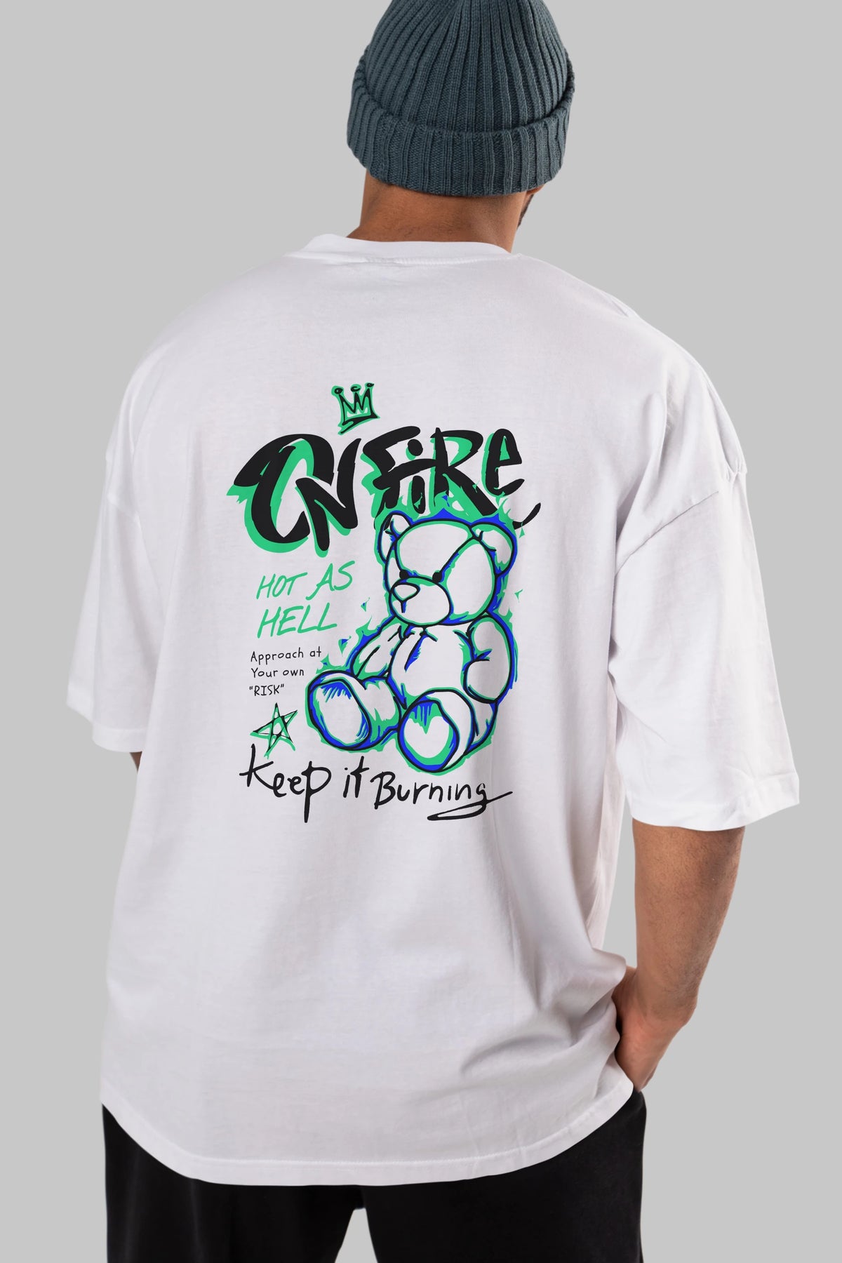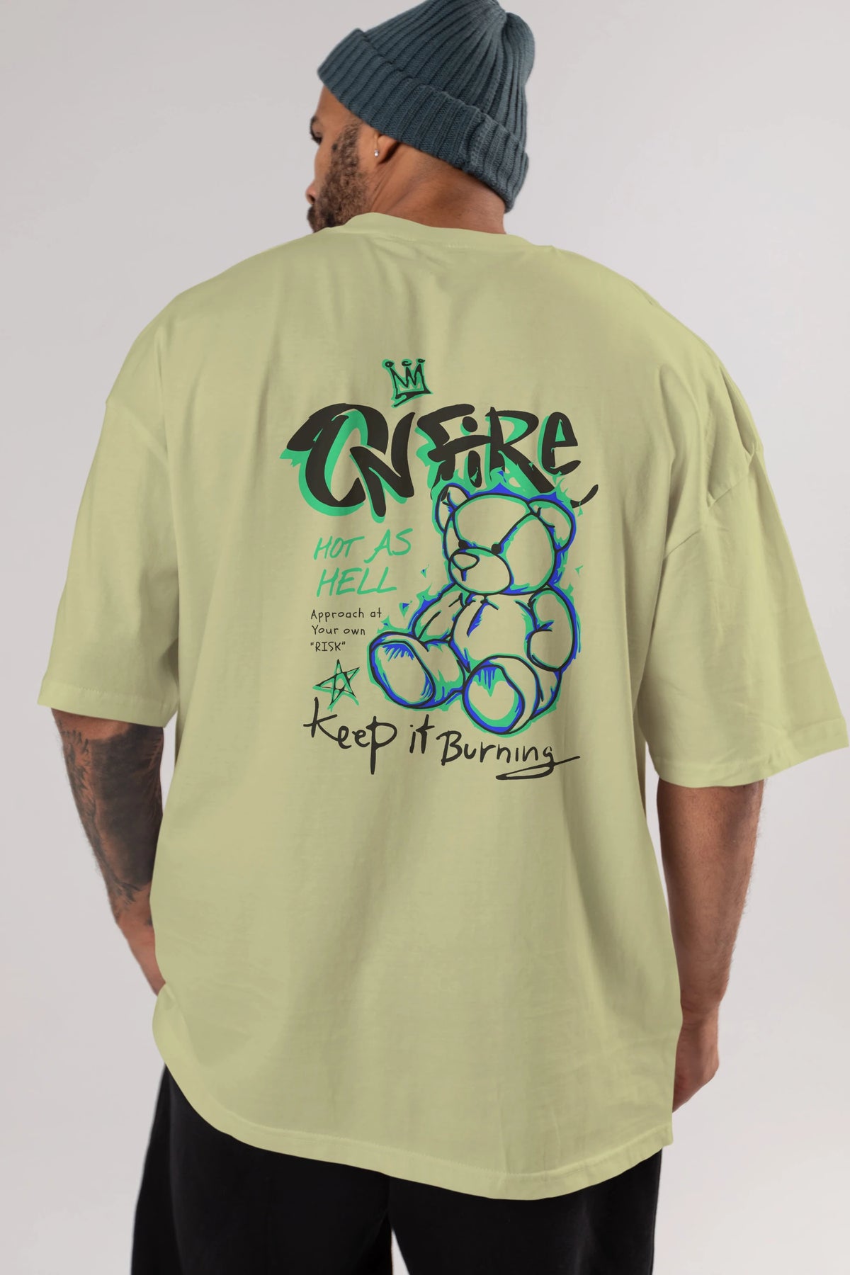 On Fire Bear Arka Baskılı Oversize t-shirt Erkek Kadın Unisex