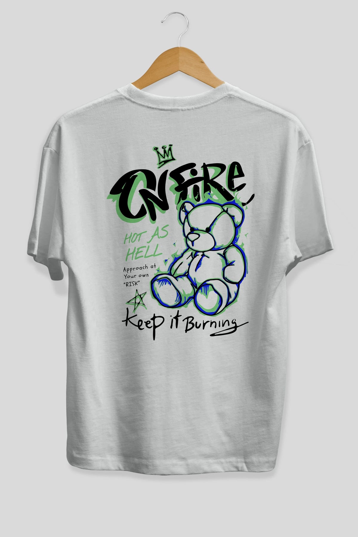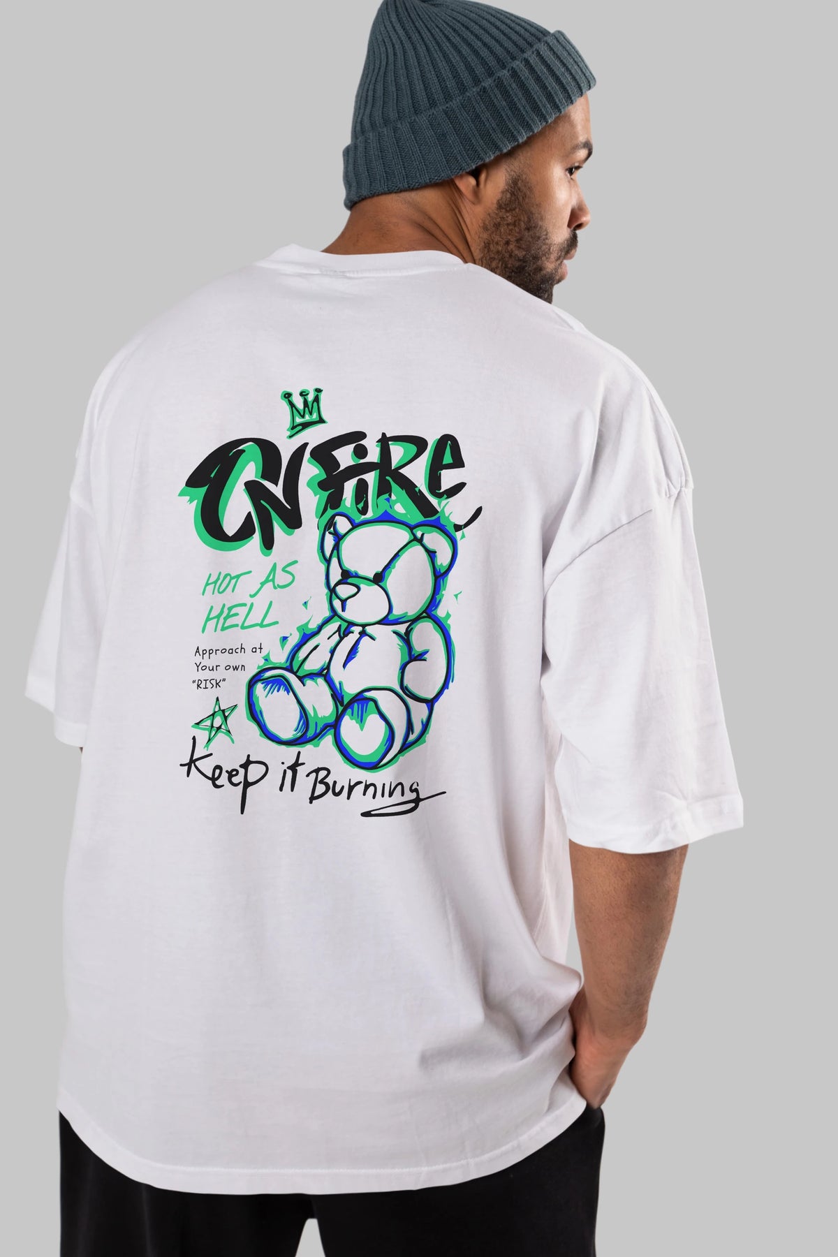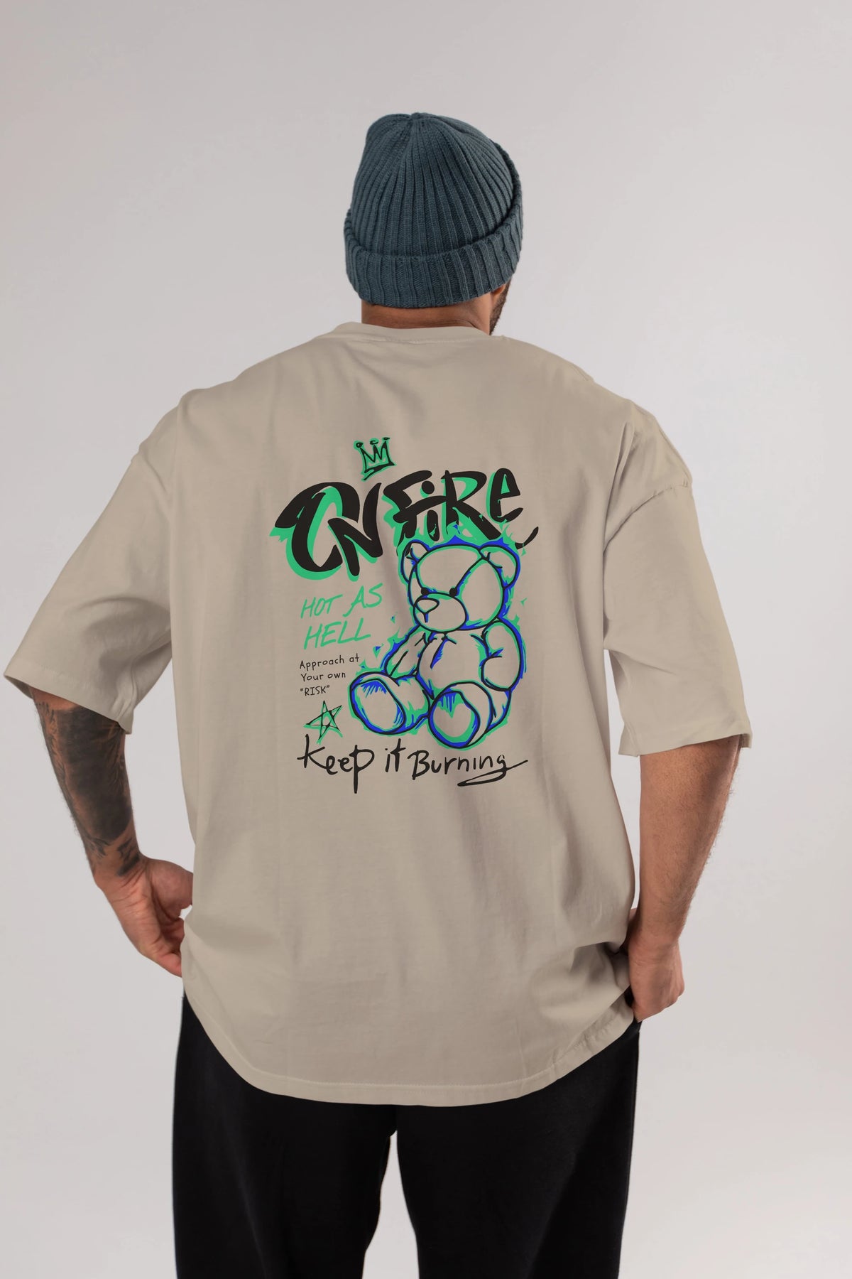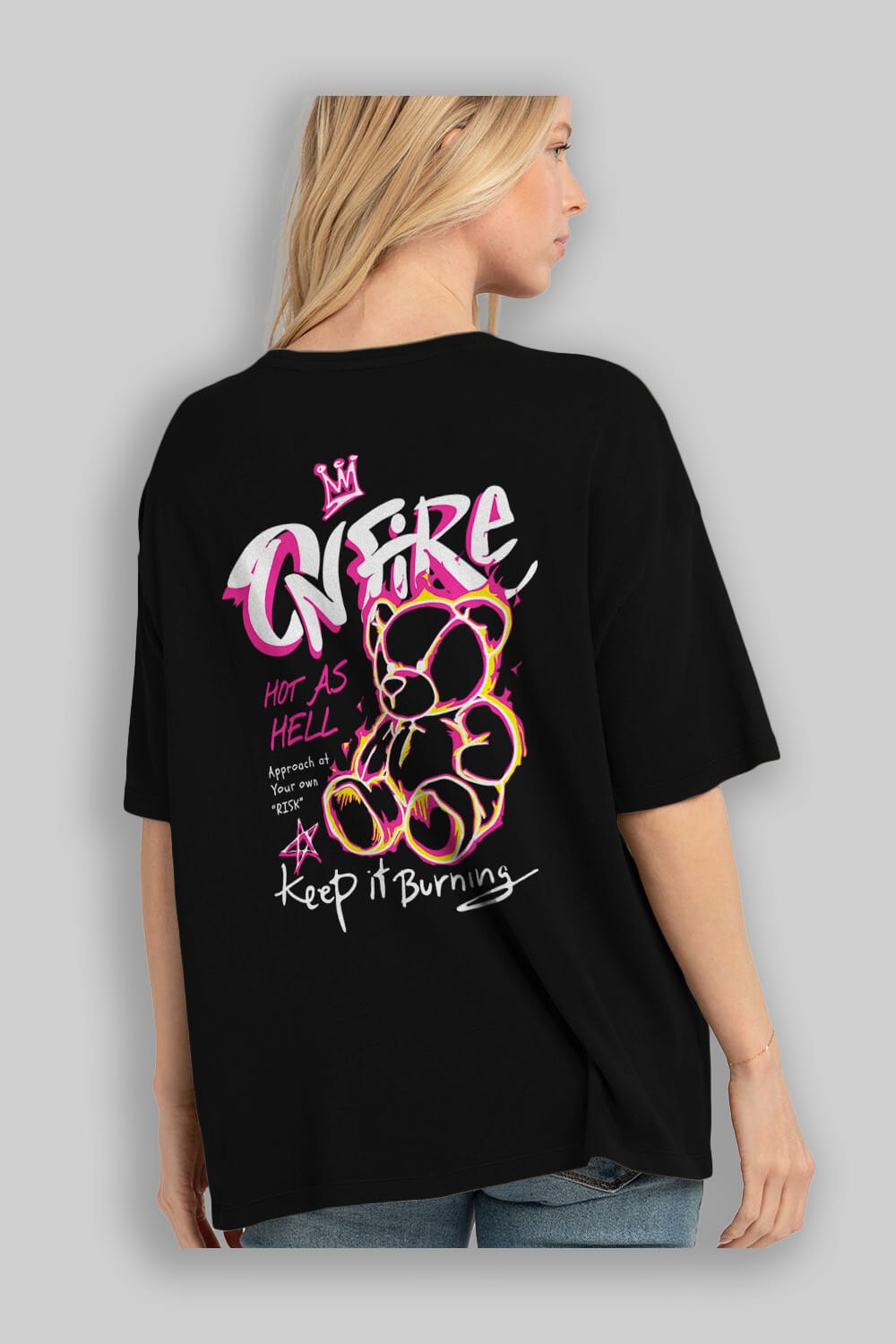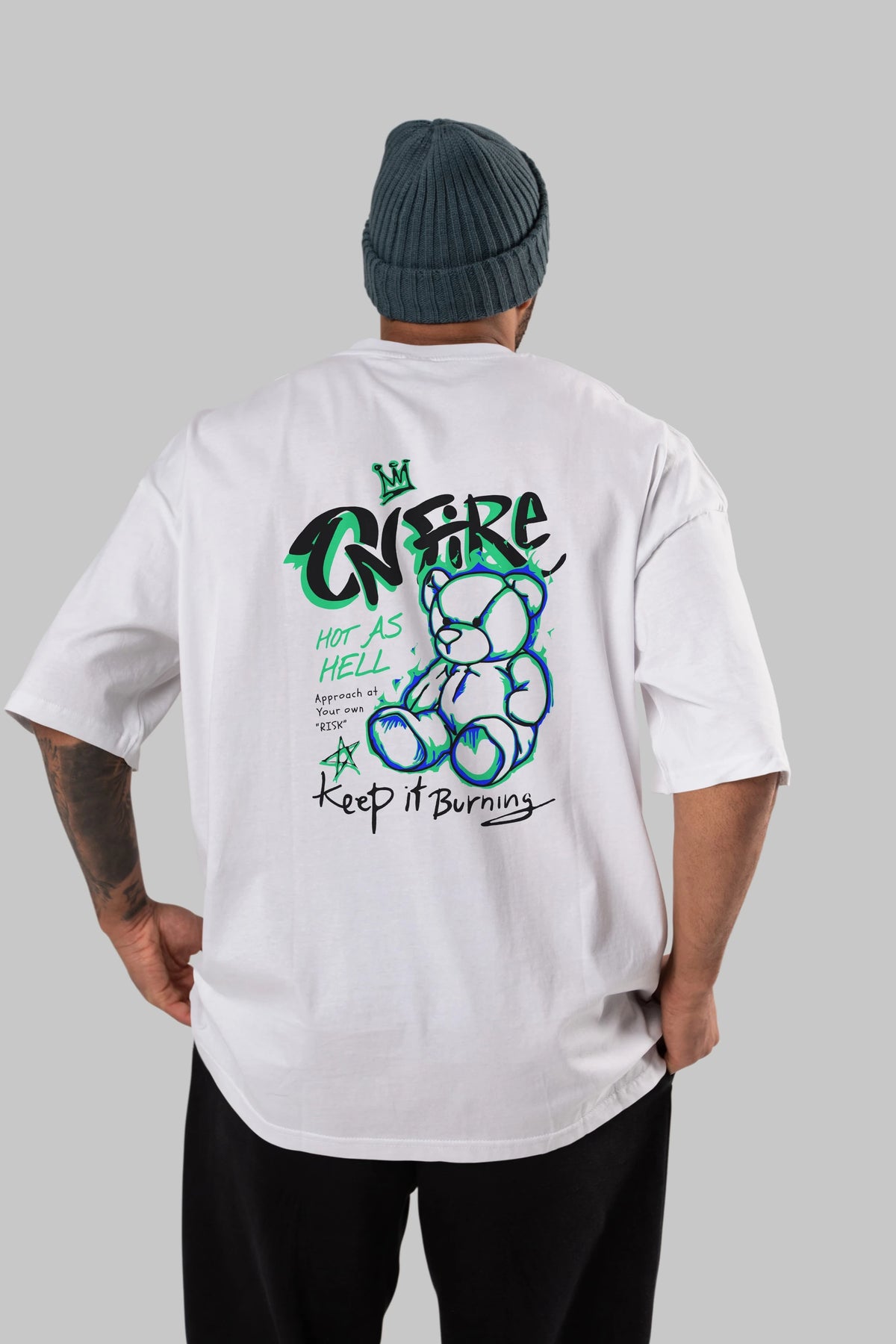 On Fire Bear Arka Baskılı Oversize t-shirt Erkek Kadın Unisex