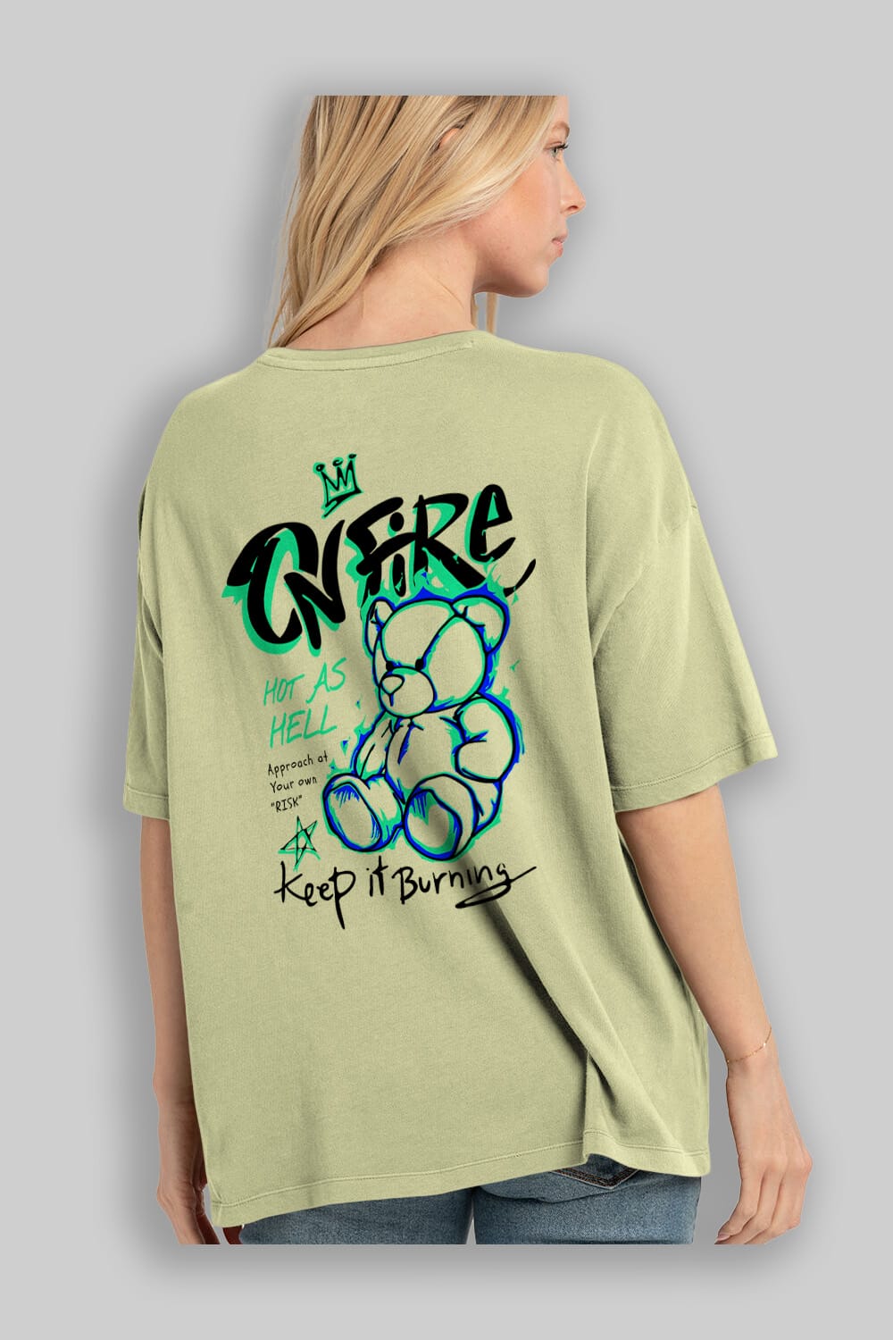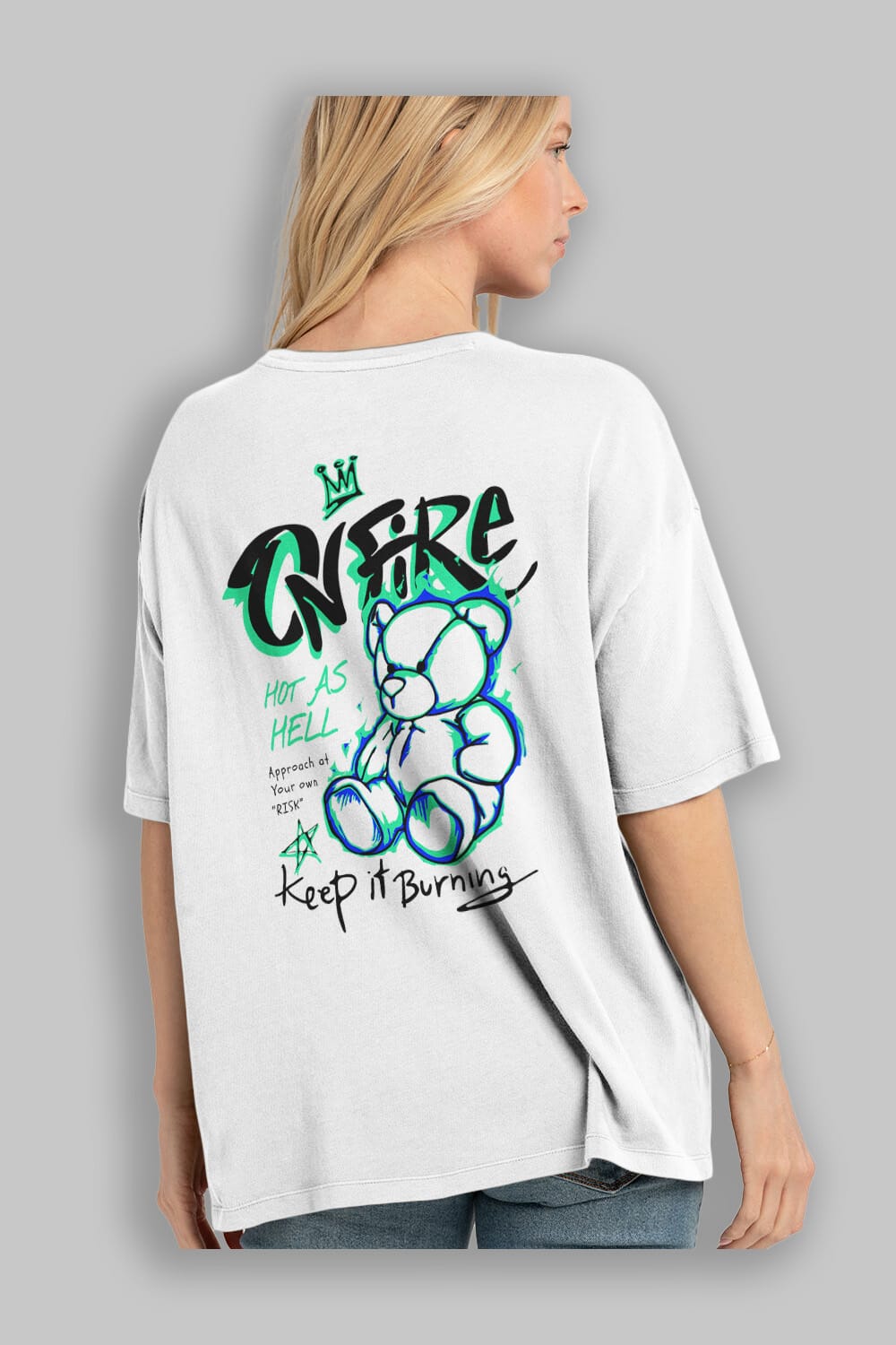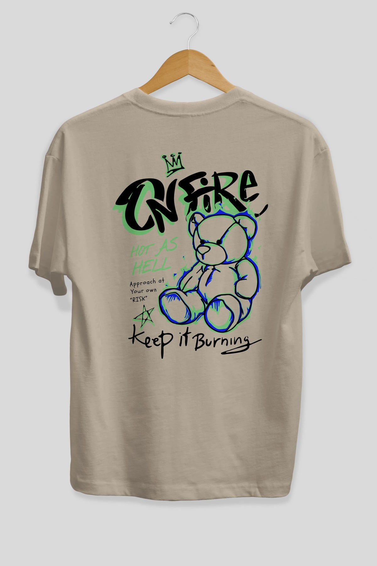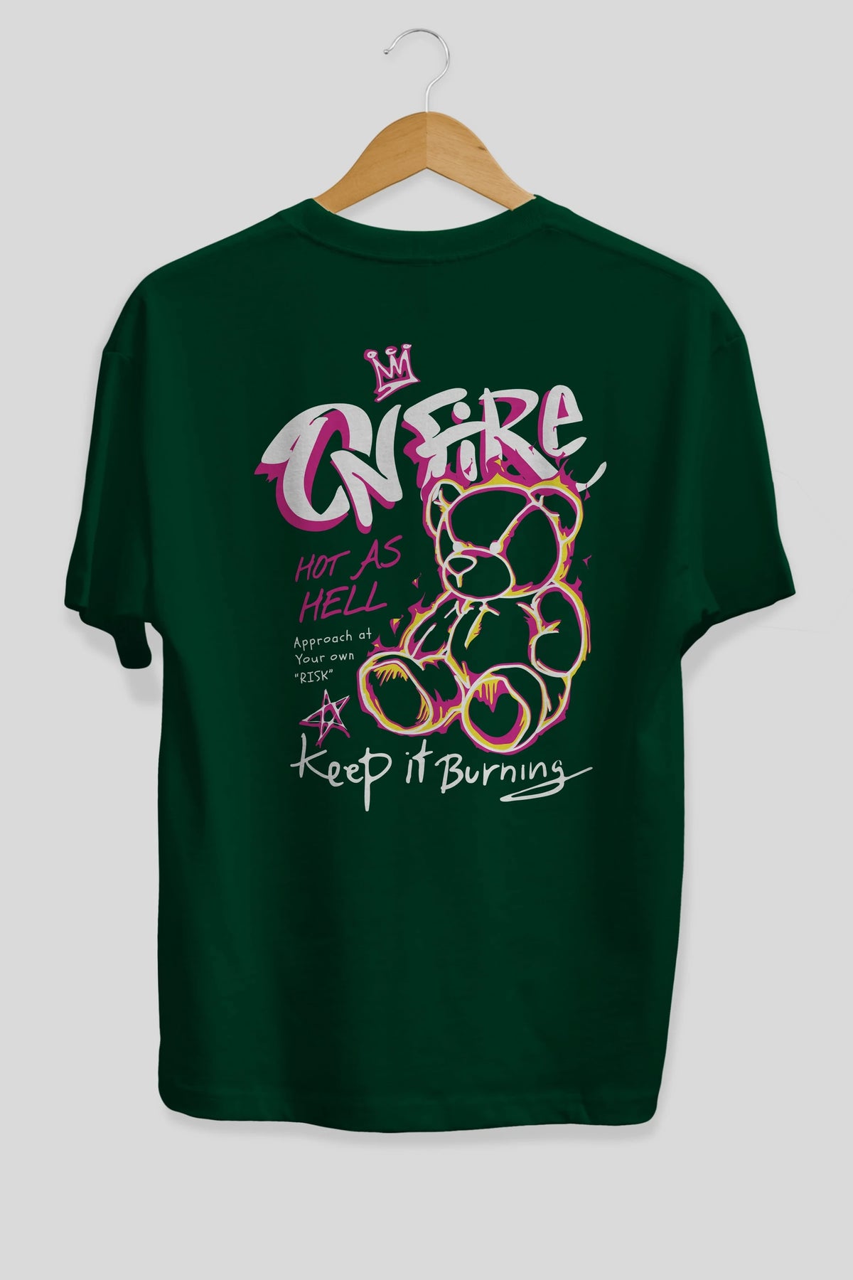 On Fire Bear Arka Baskılı Oversize t-shirt Erkek Kadın Unisex