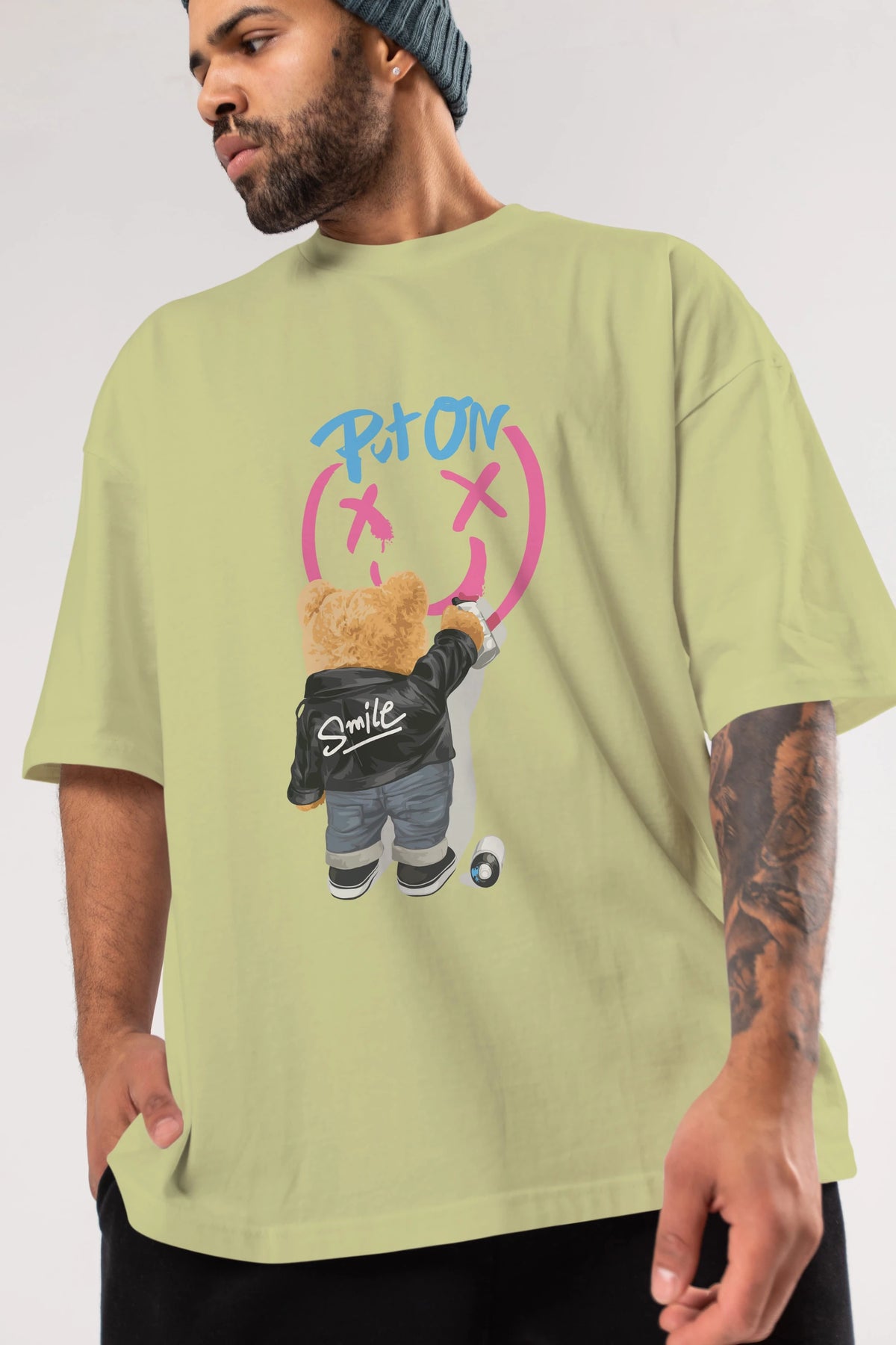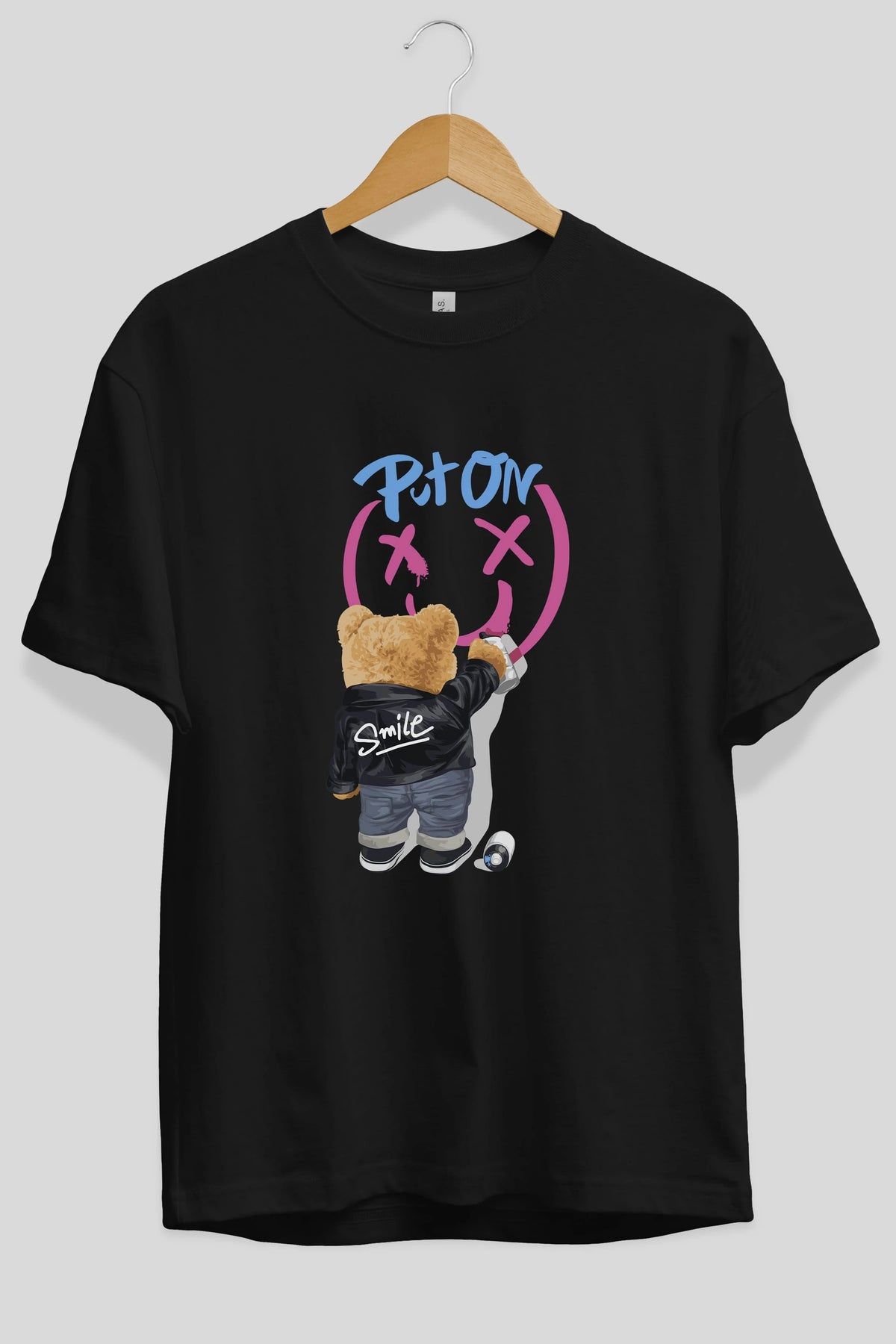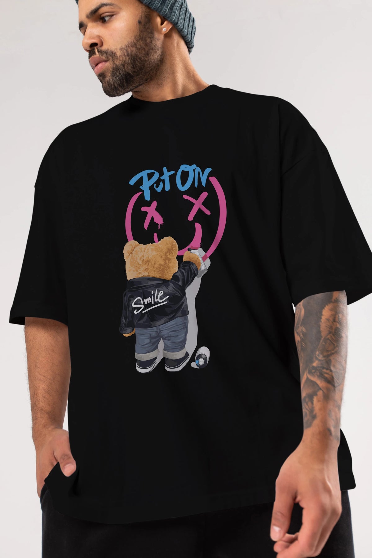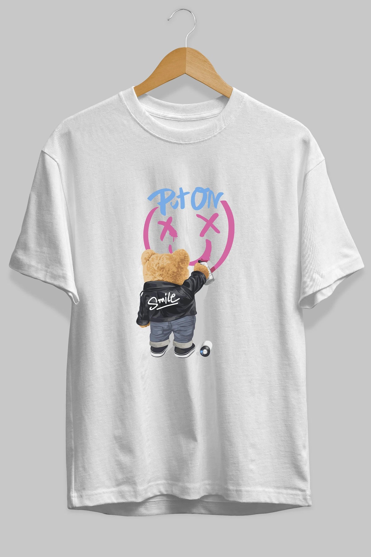 Put on Smile Bear Ön Baskılı Oversize t-shirt Erkek Kadın Unisex
