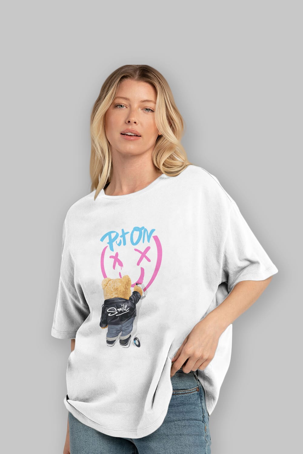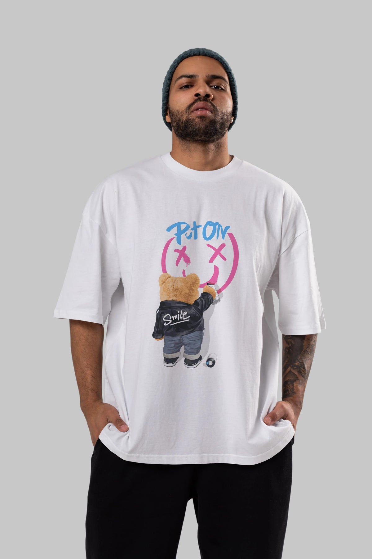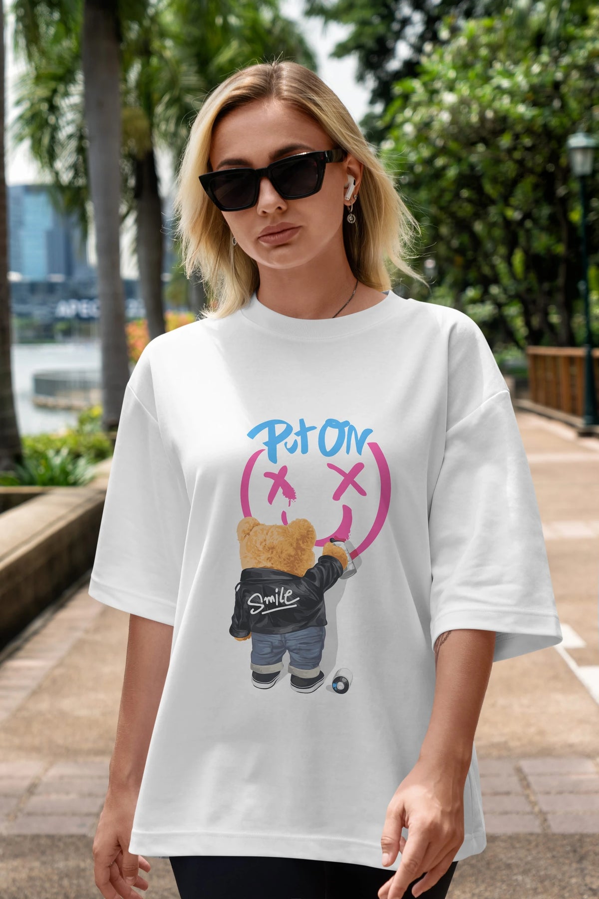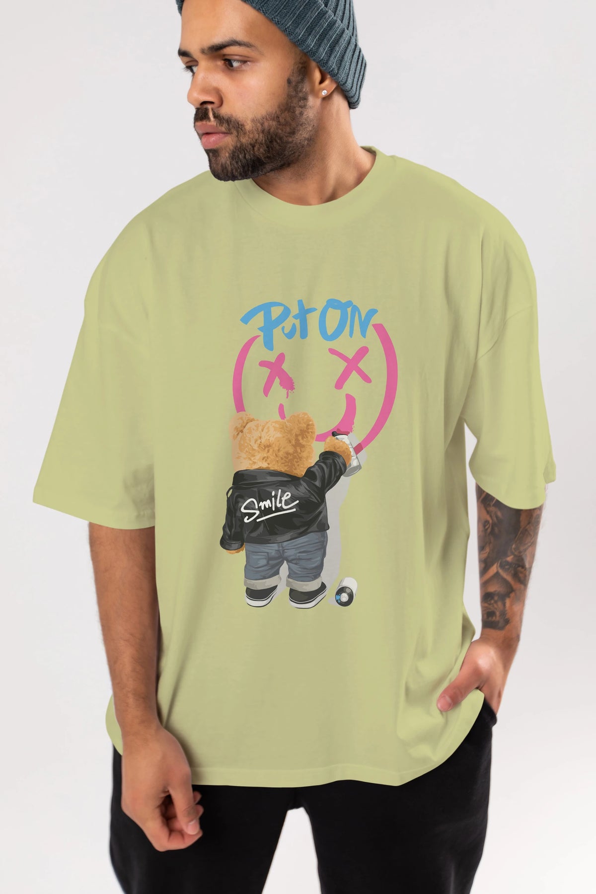 Put on Smile Bear Ön Baskılı Oversize t-shirt Erkek Kadın Unisex