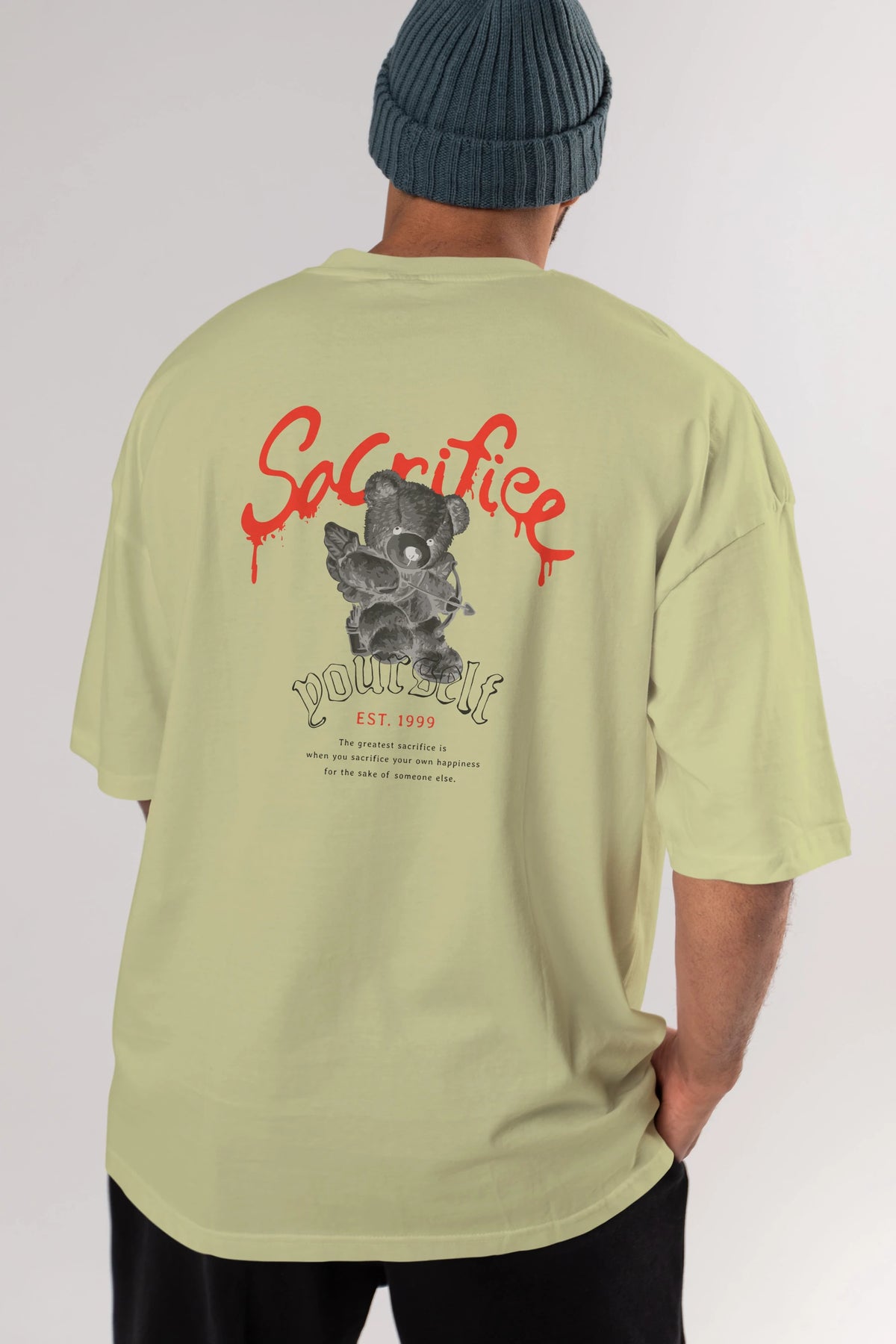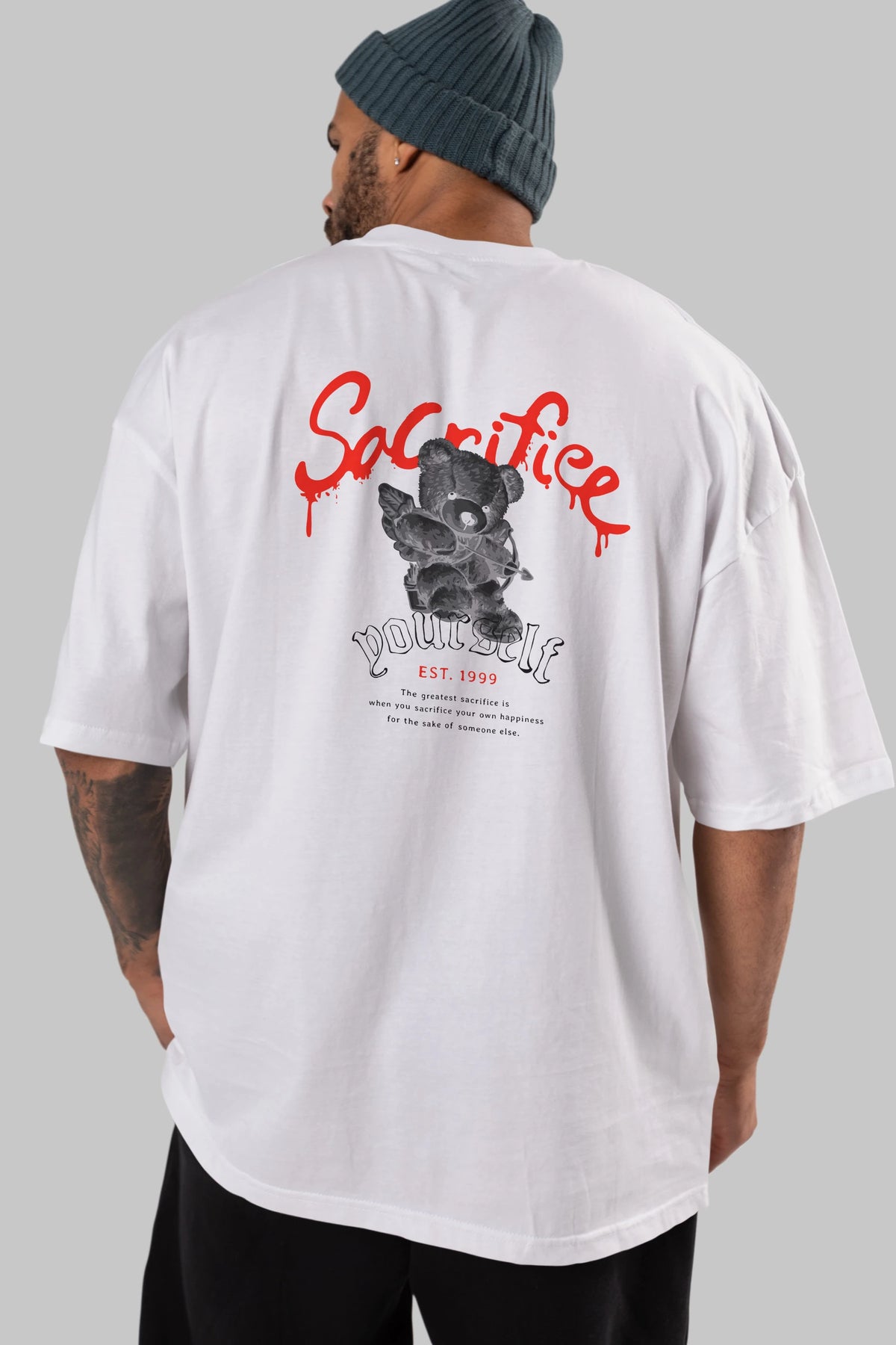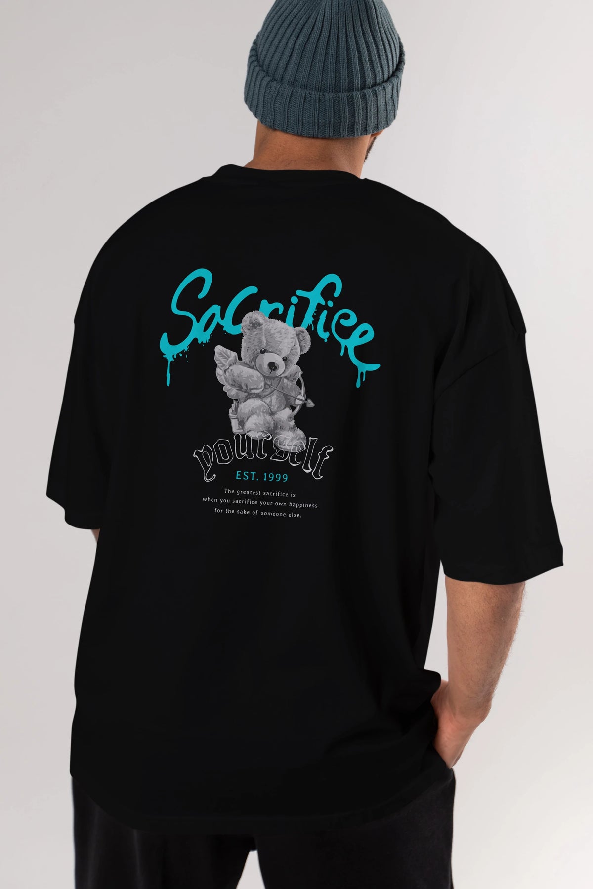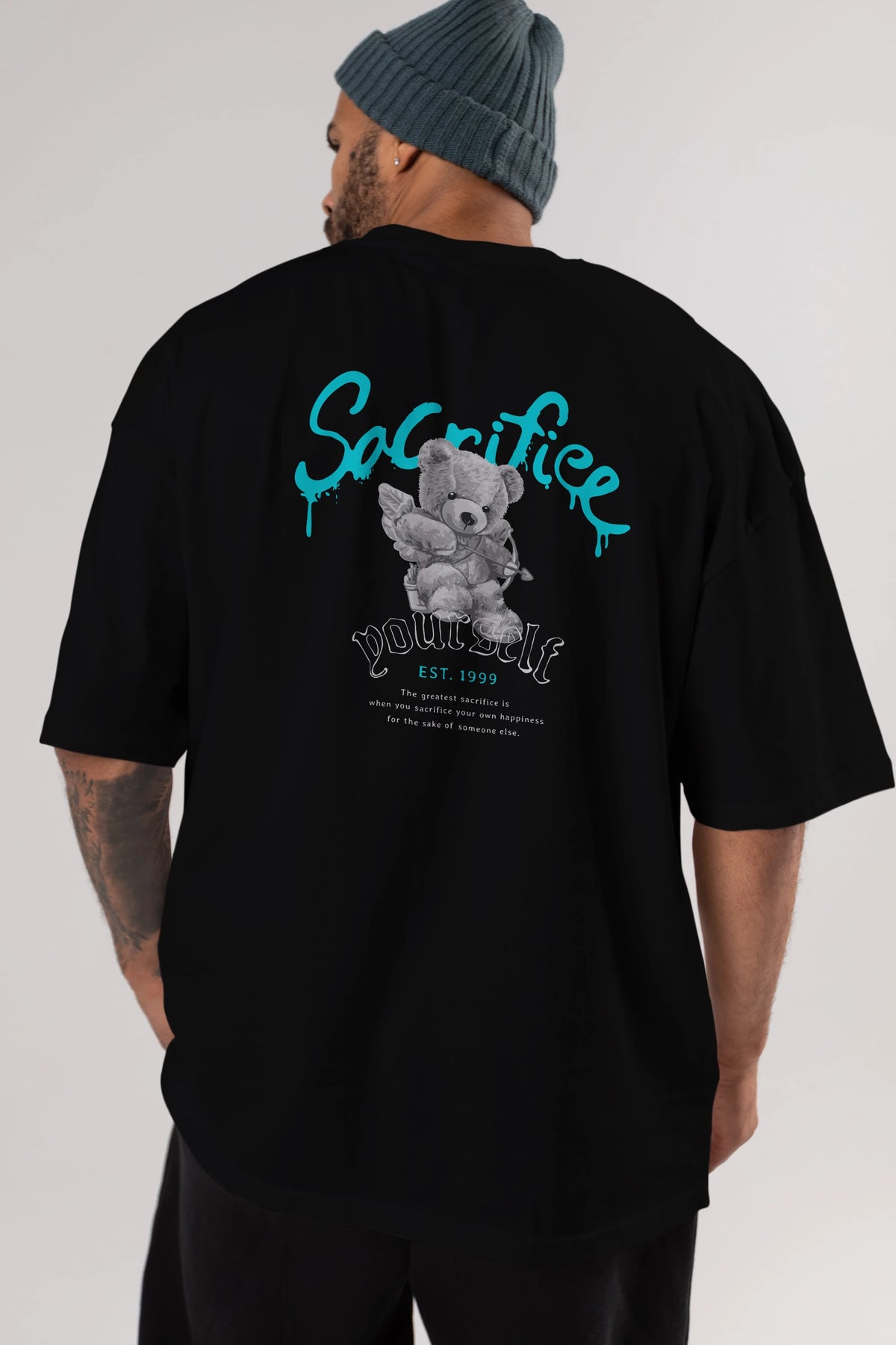 Sacrifice Yourself Bear Arka Baskılı Oversize t-shirt Erkek Kadın Unisex
