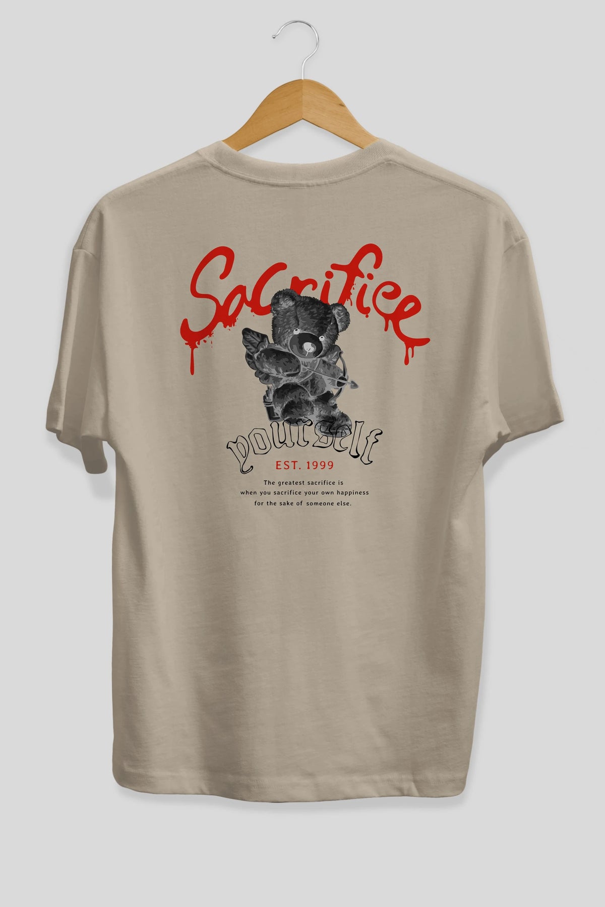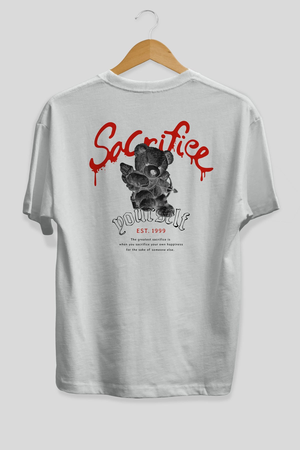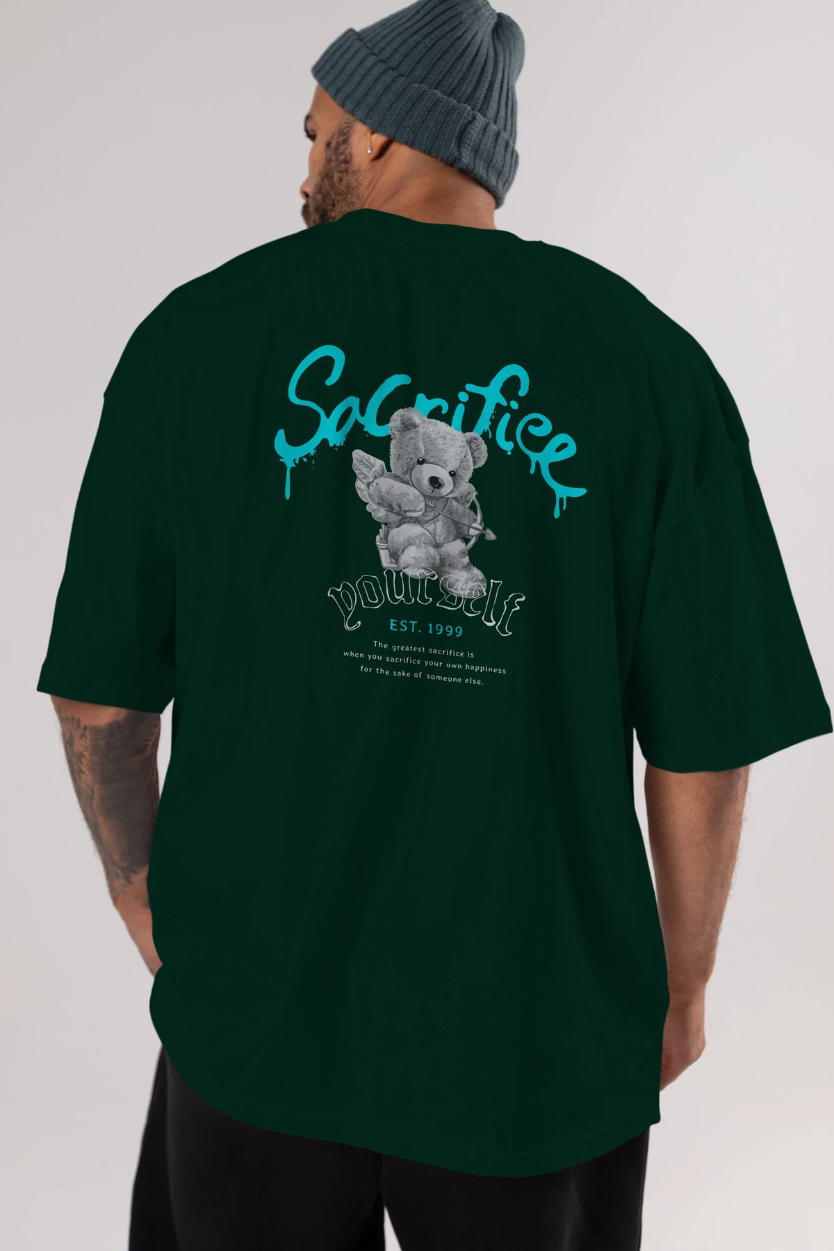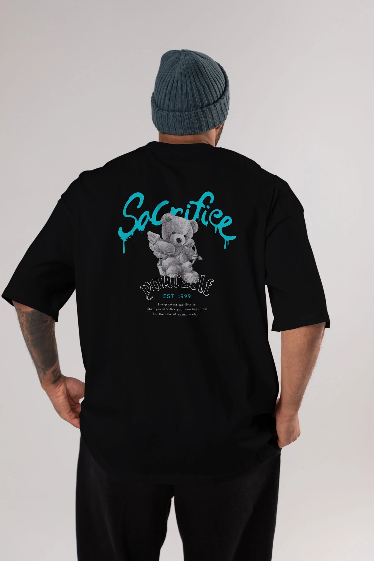 Sacrifice Yourself Bear Arka Baskılı Oversize t-shirt Erkek Kadın Unisex