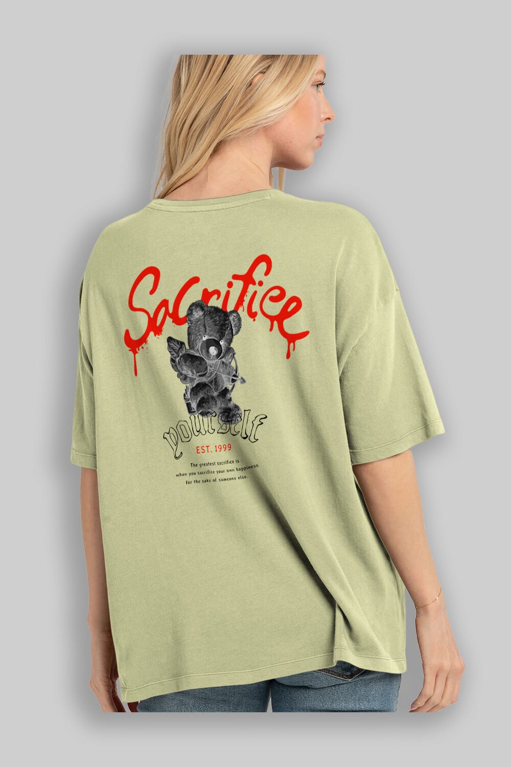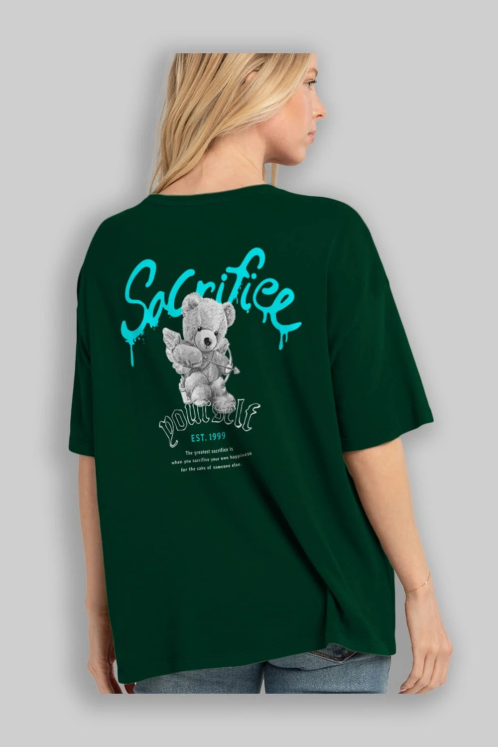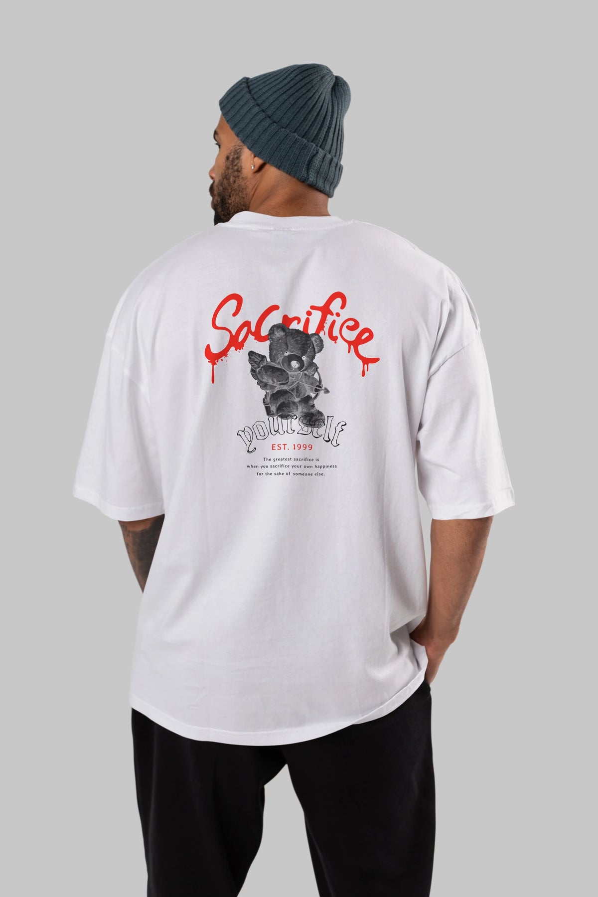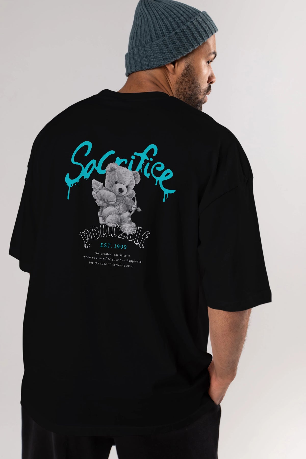 Sacrifice Yourself Bear Arka Baskılı Oversize t-shirt Erkek Kadın Unisex