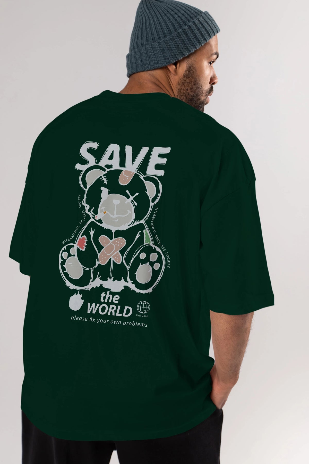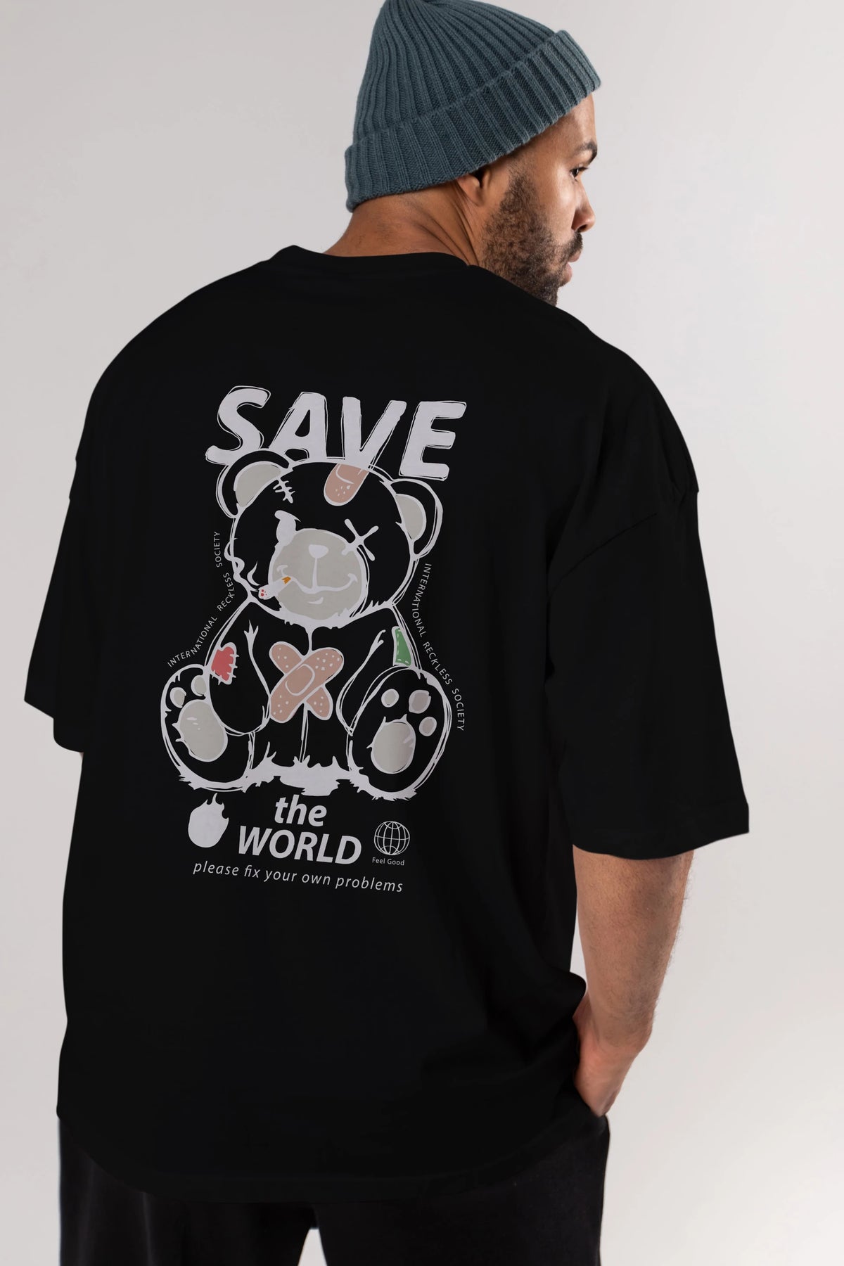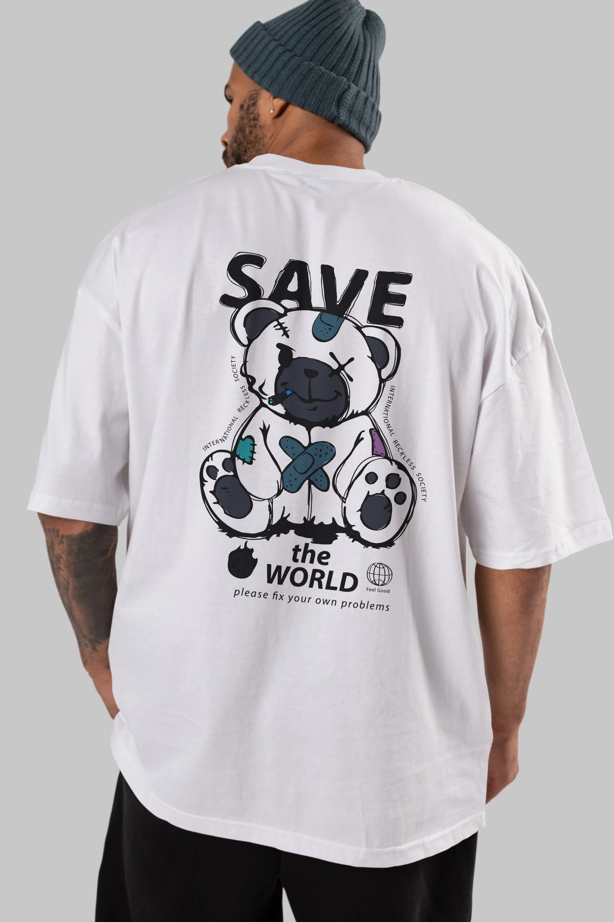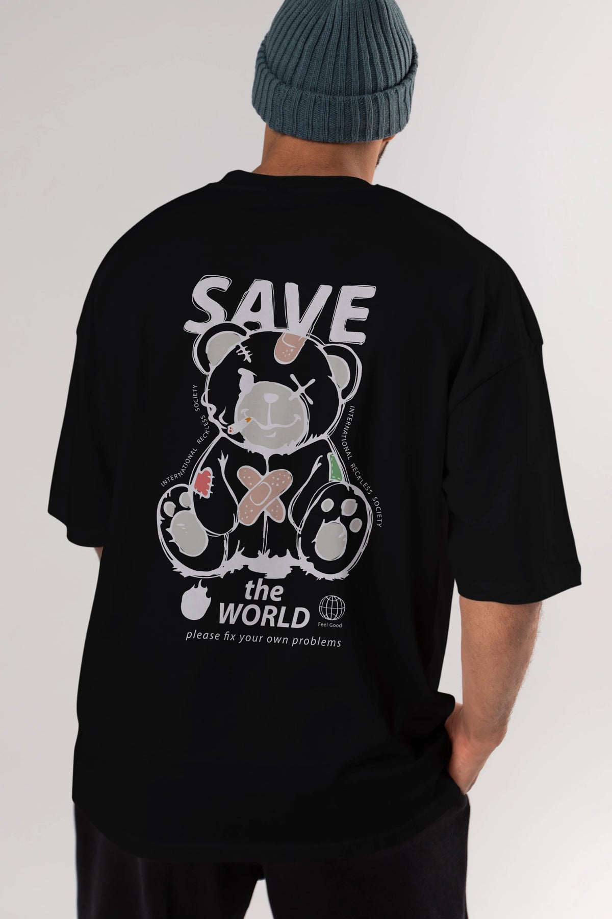 Save the World Bear Arka Baskılı Oversize t-shirt Erkek Kadın Unisex