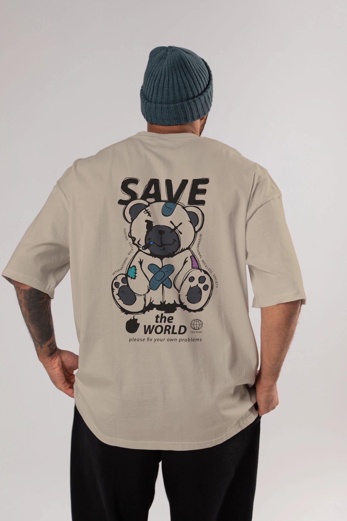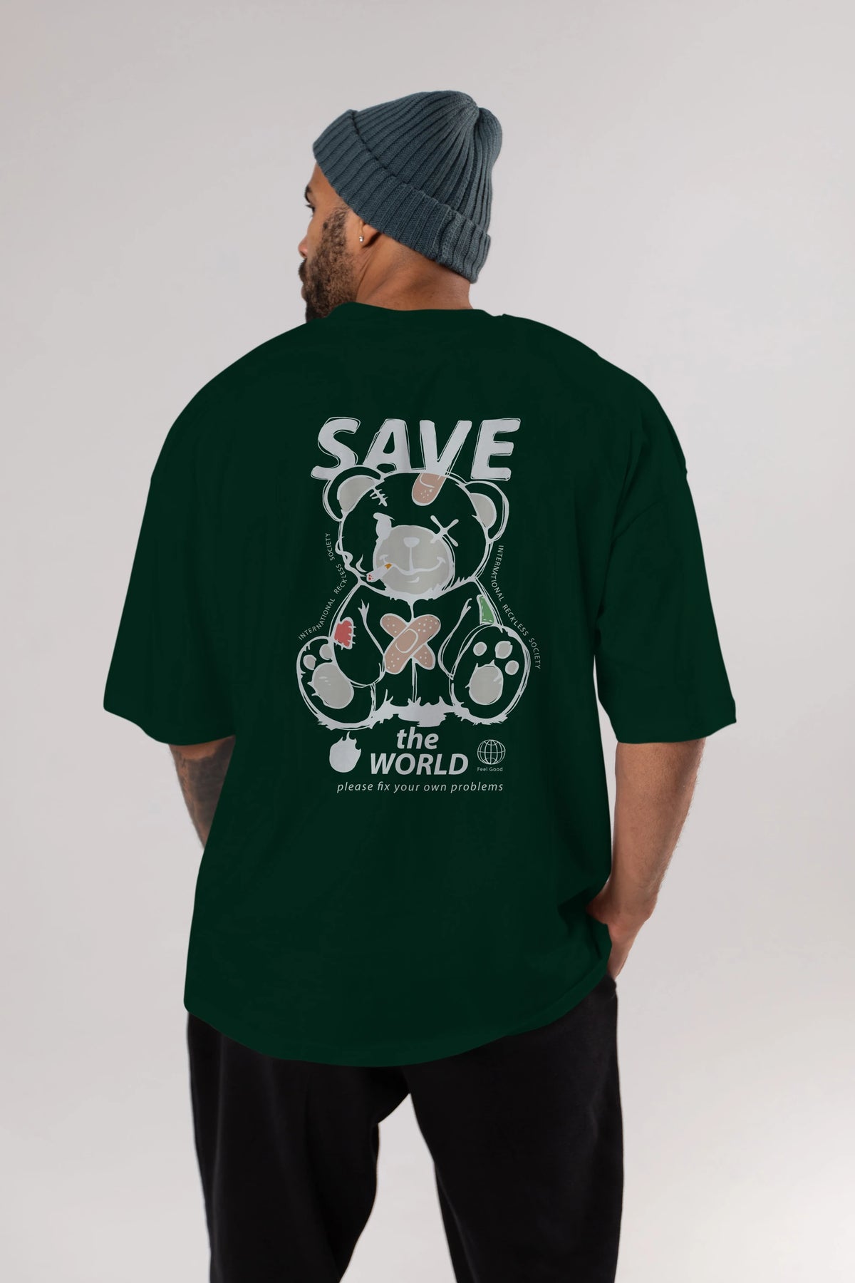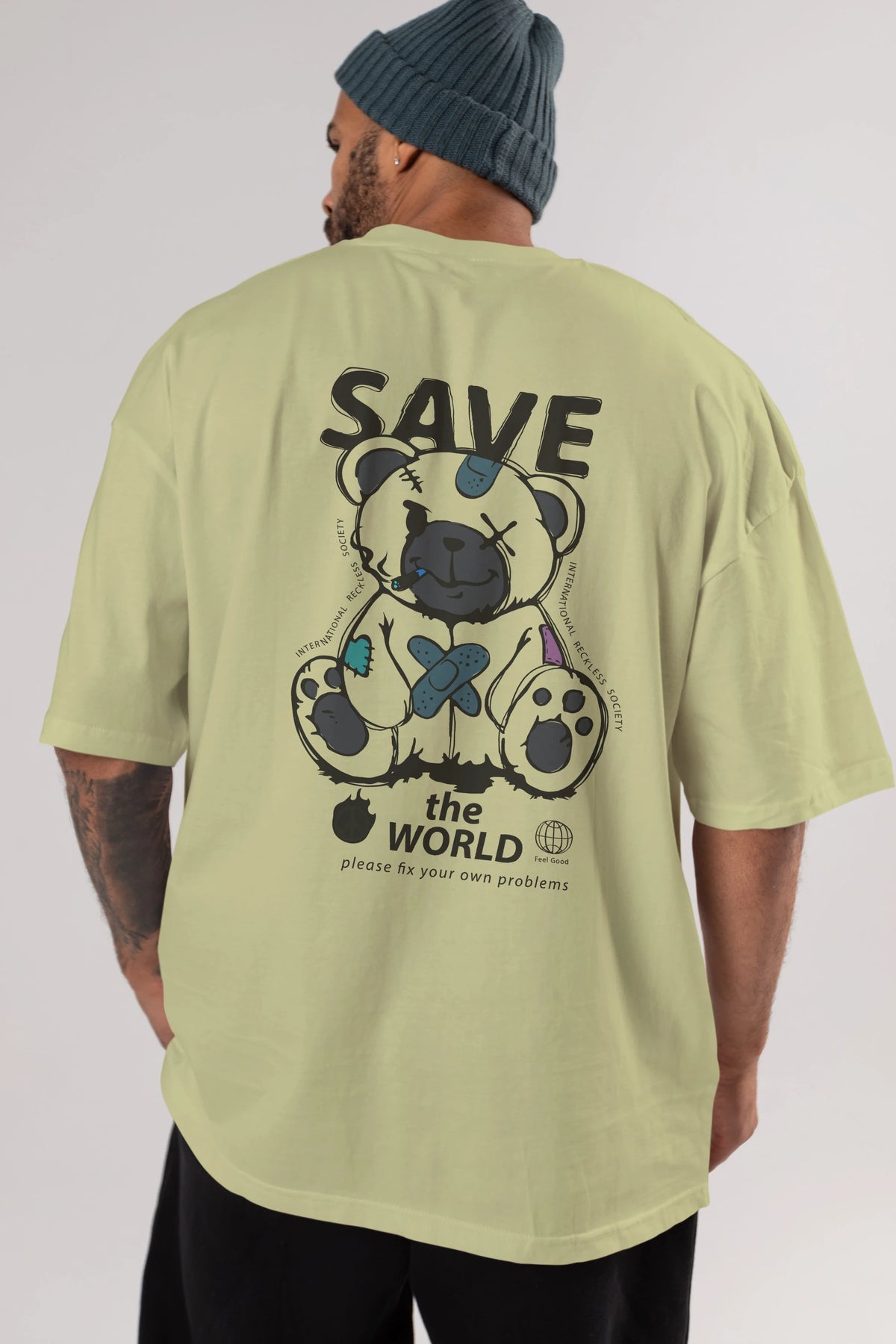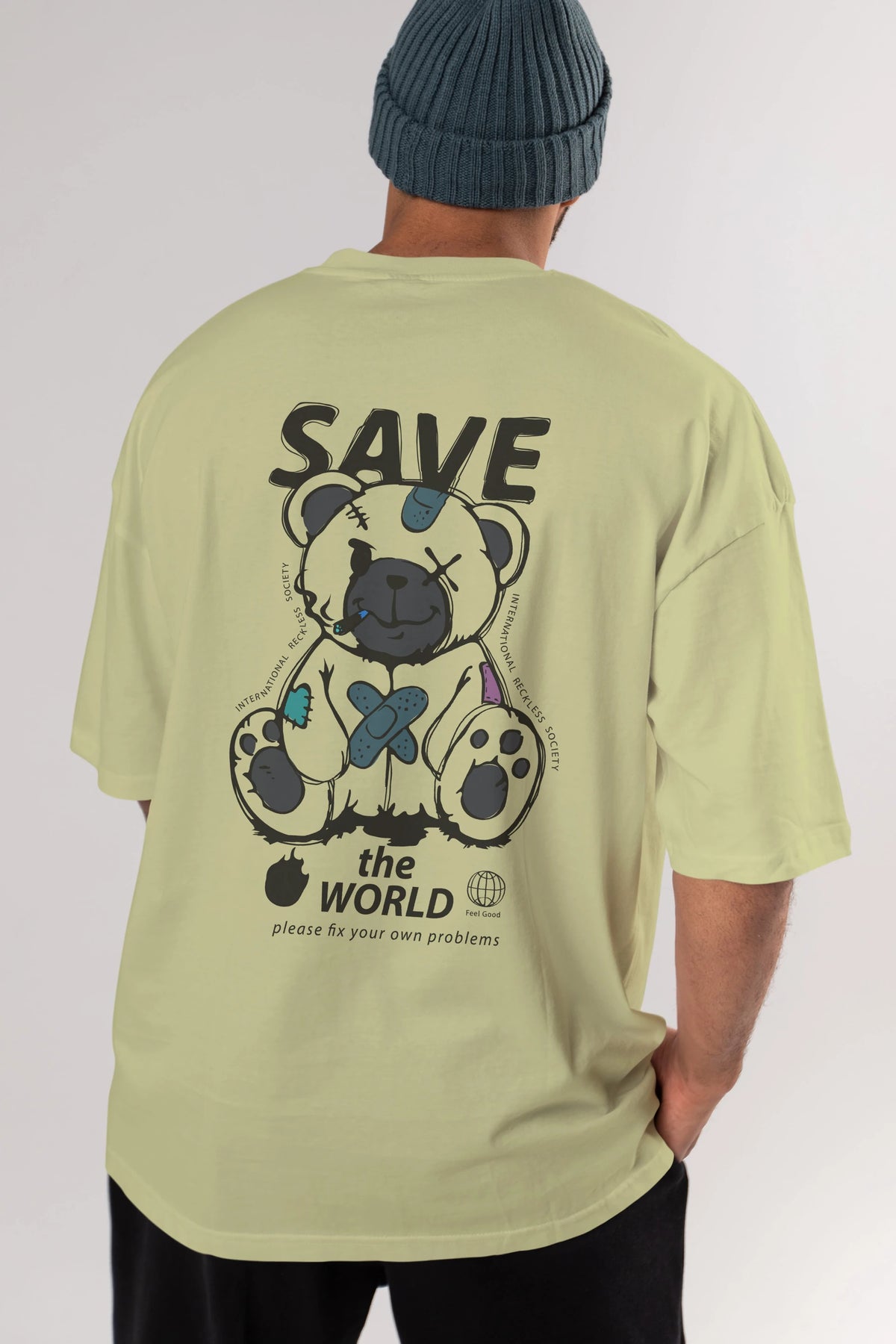 Save the World Bear Arka Baskılı Oversize t-shirt Erkek Kadın Unisex