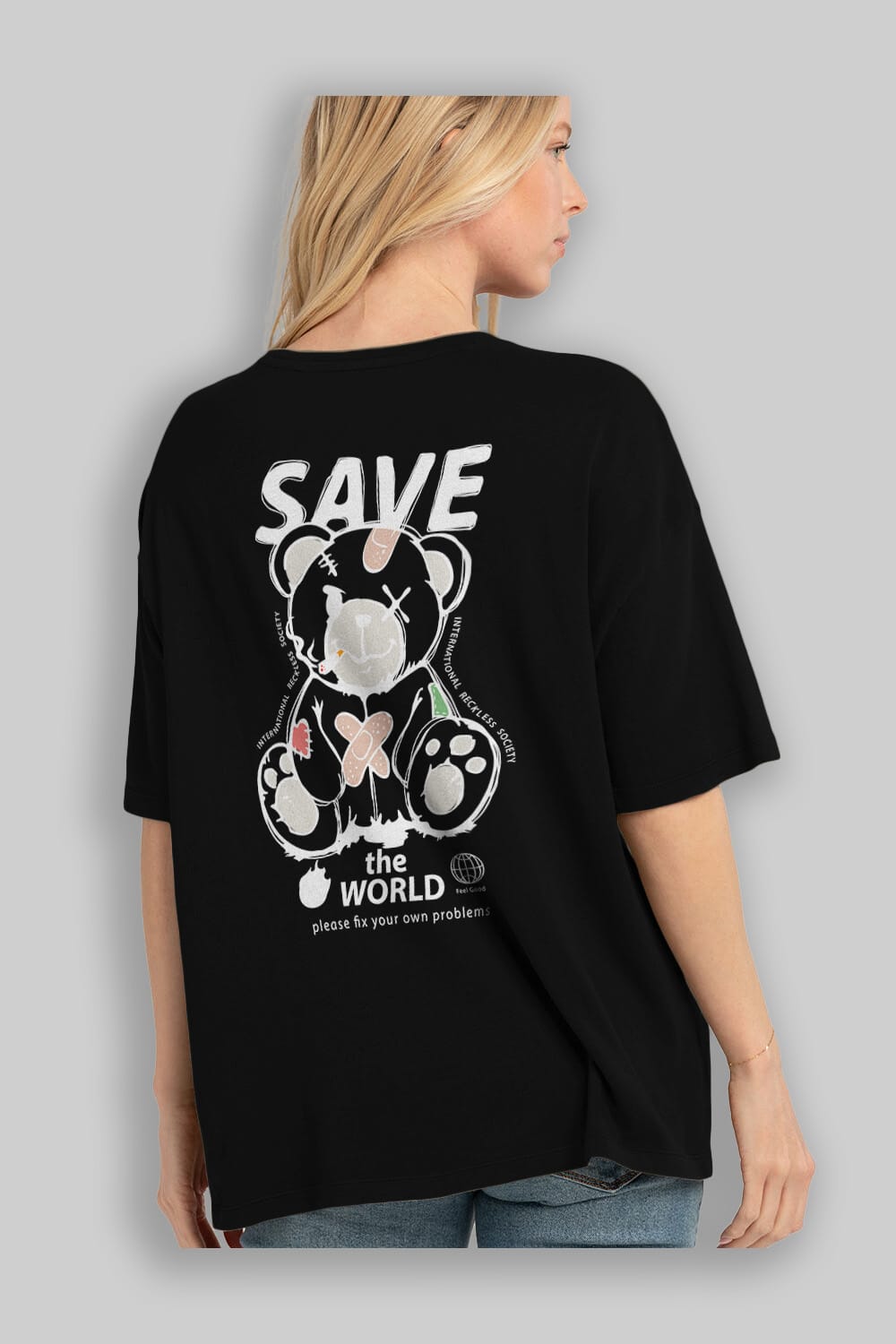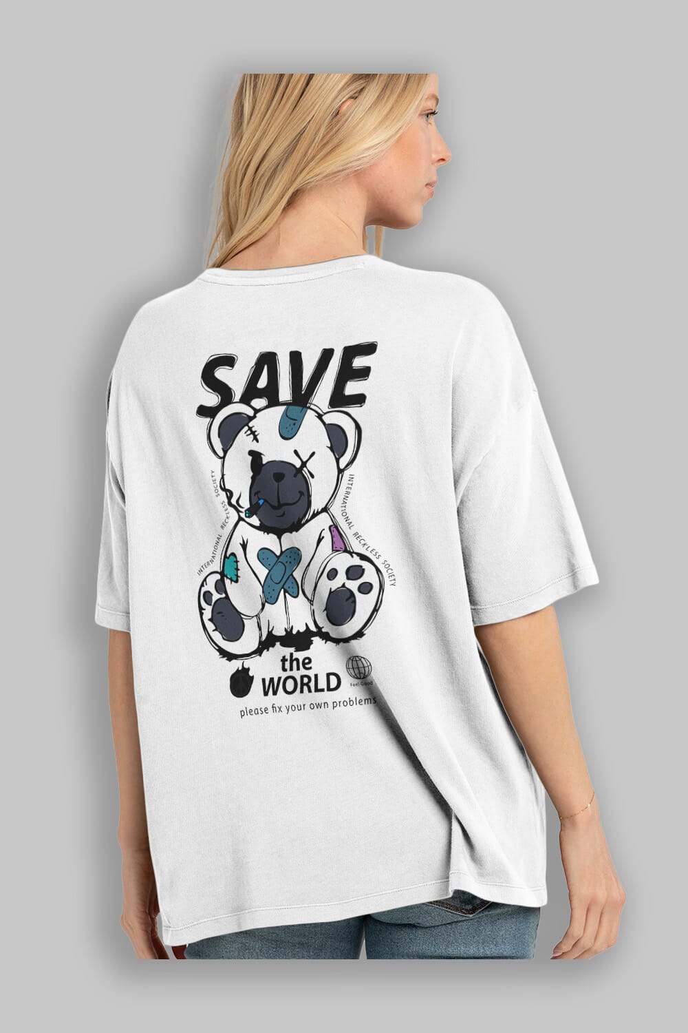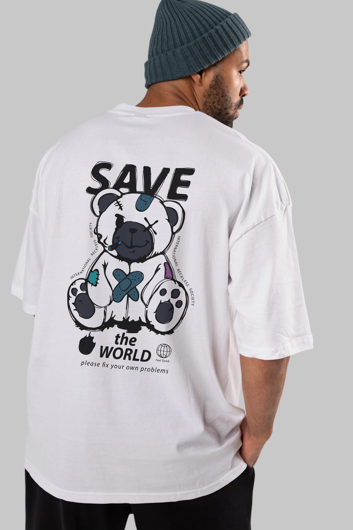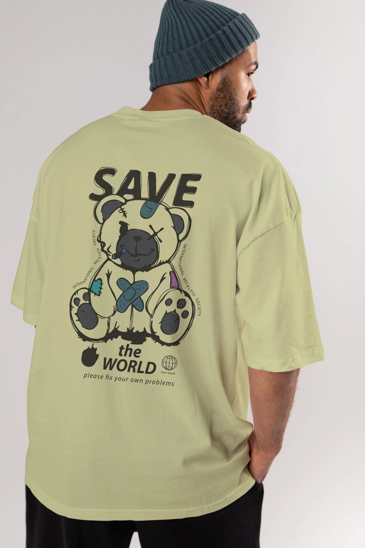 Save the World Bear Arka Baskılı Oversize t-shirt Erkek Kadın Unisex