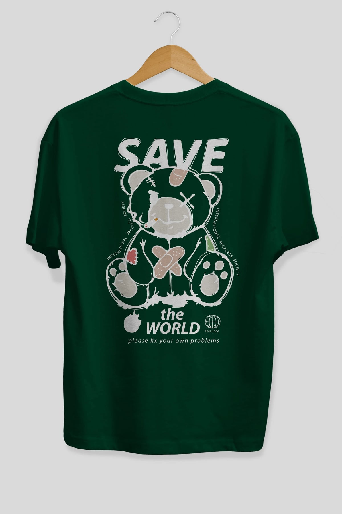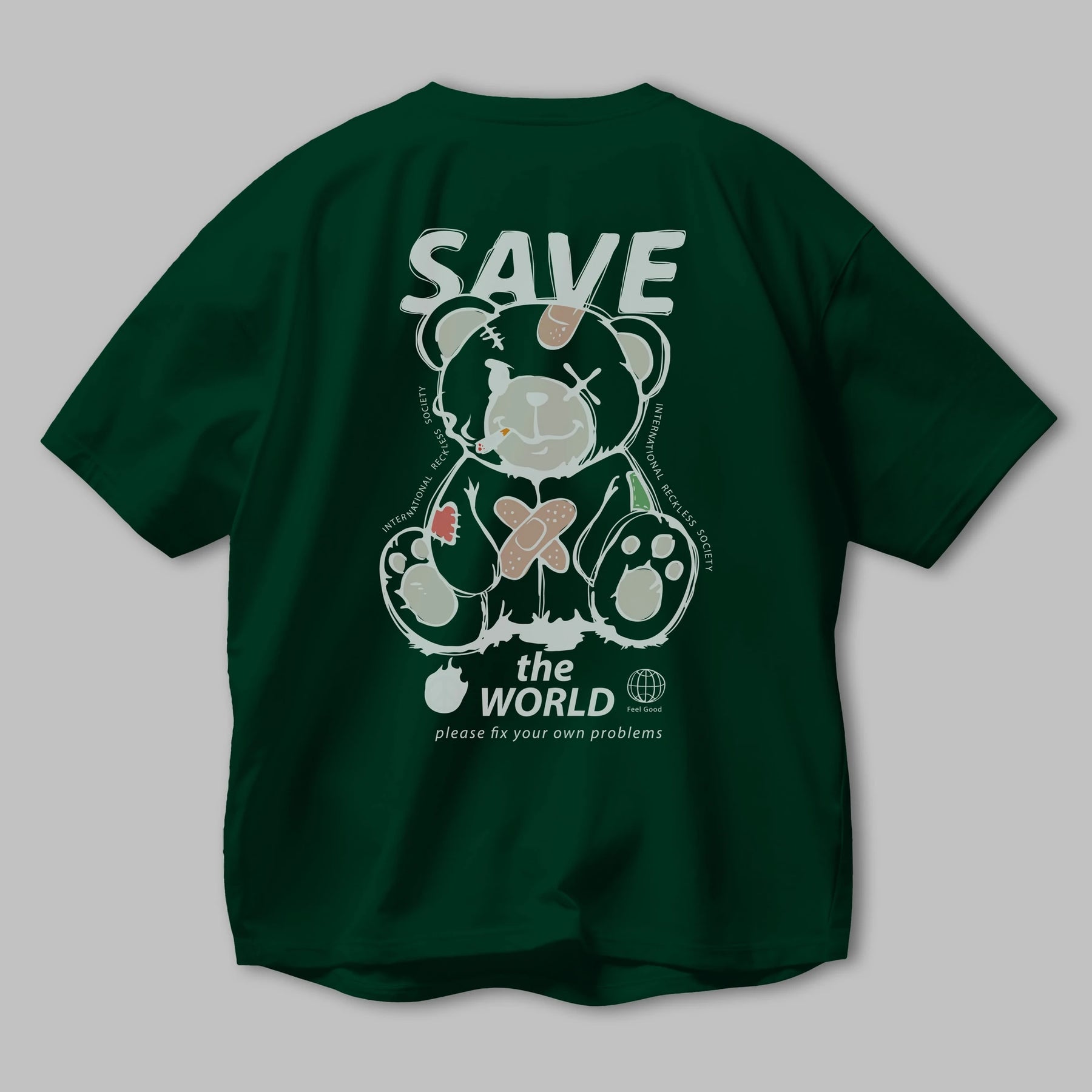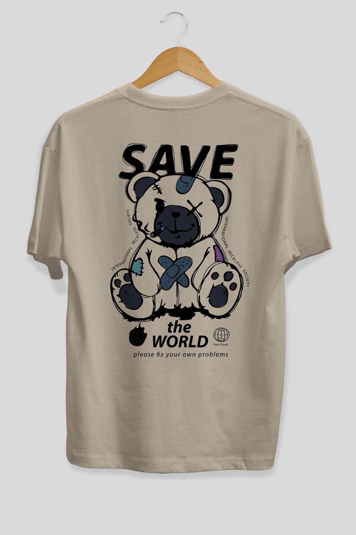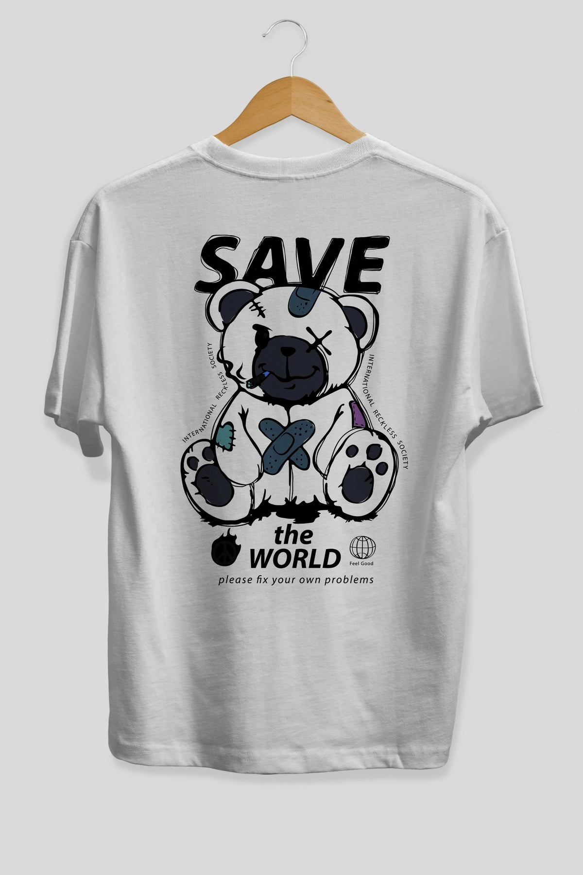 Save the World Bear Arka Baskılı Oversize t-shirt Erkek Kadın Unisex