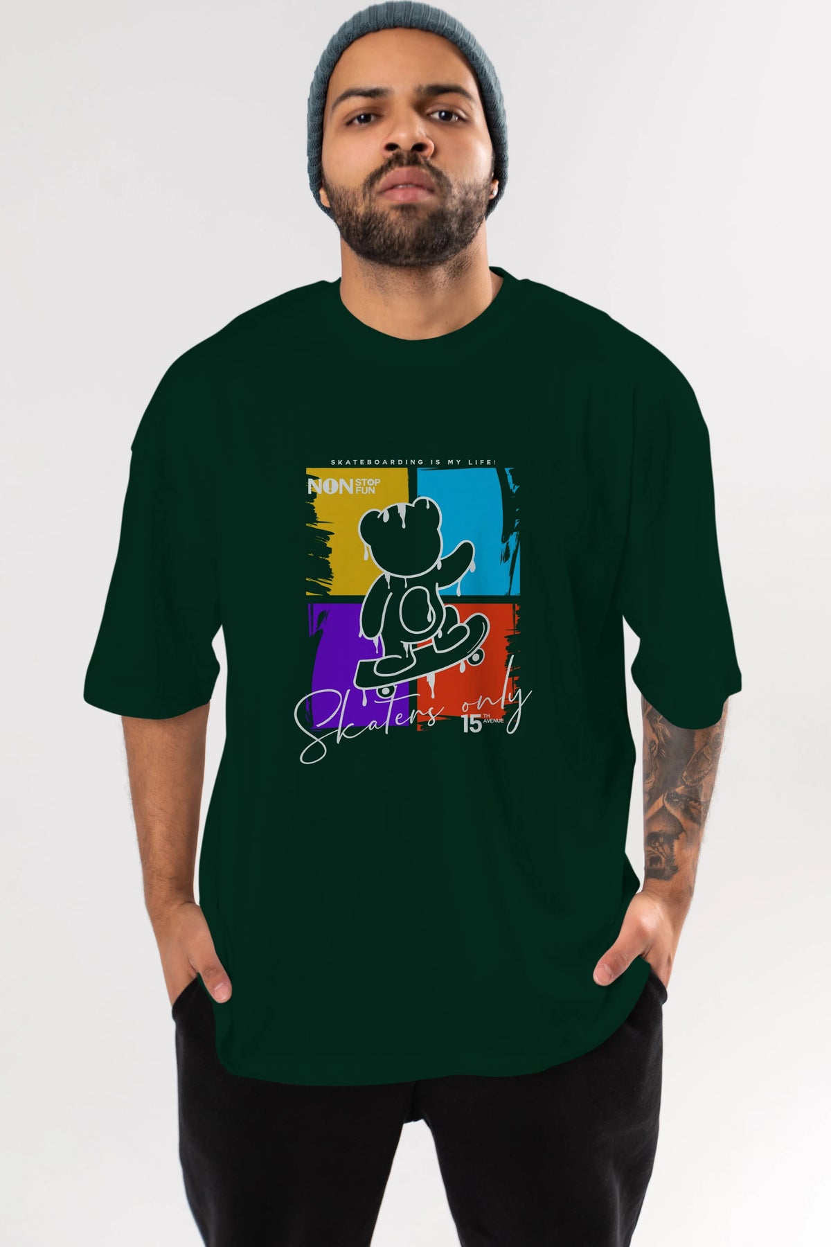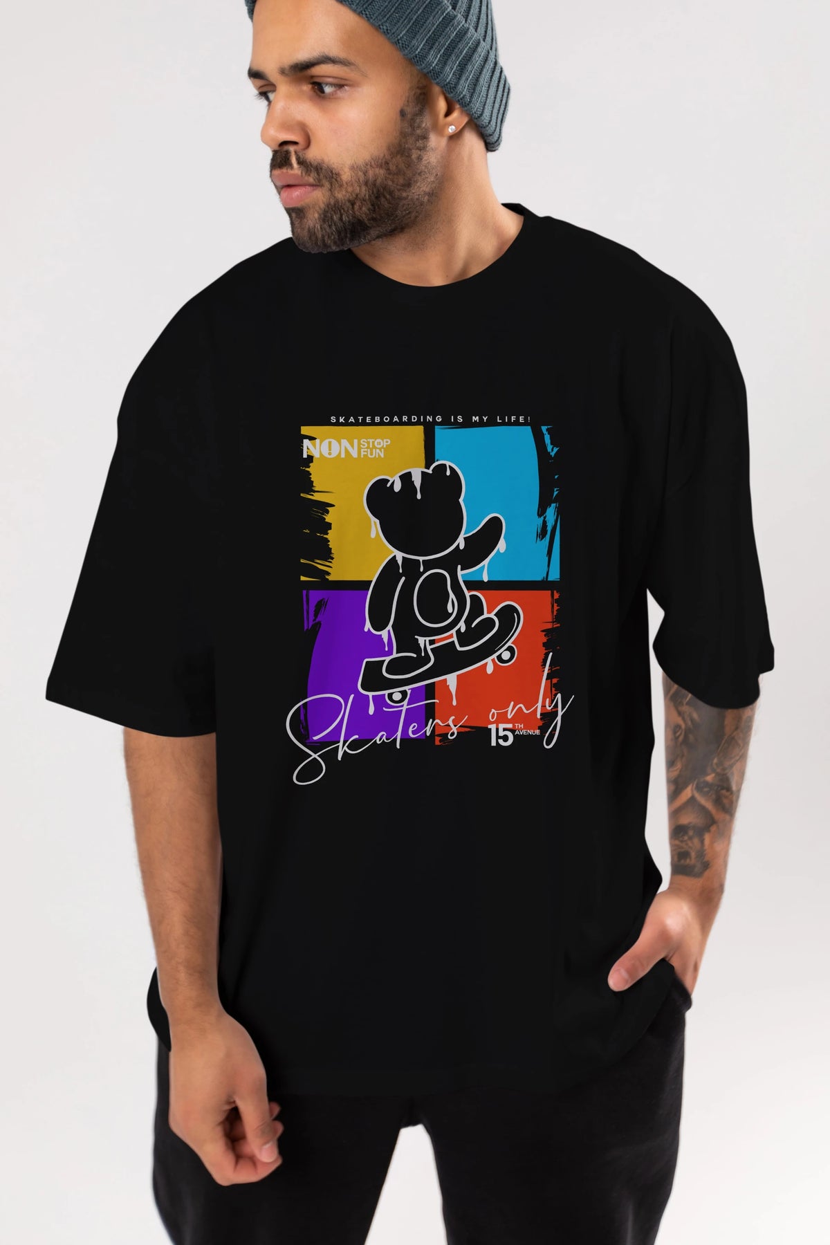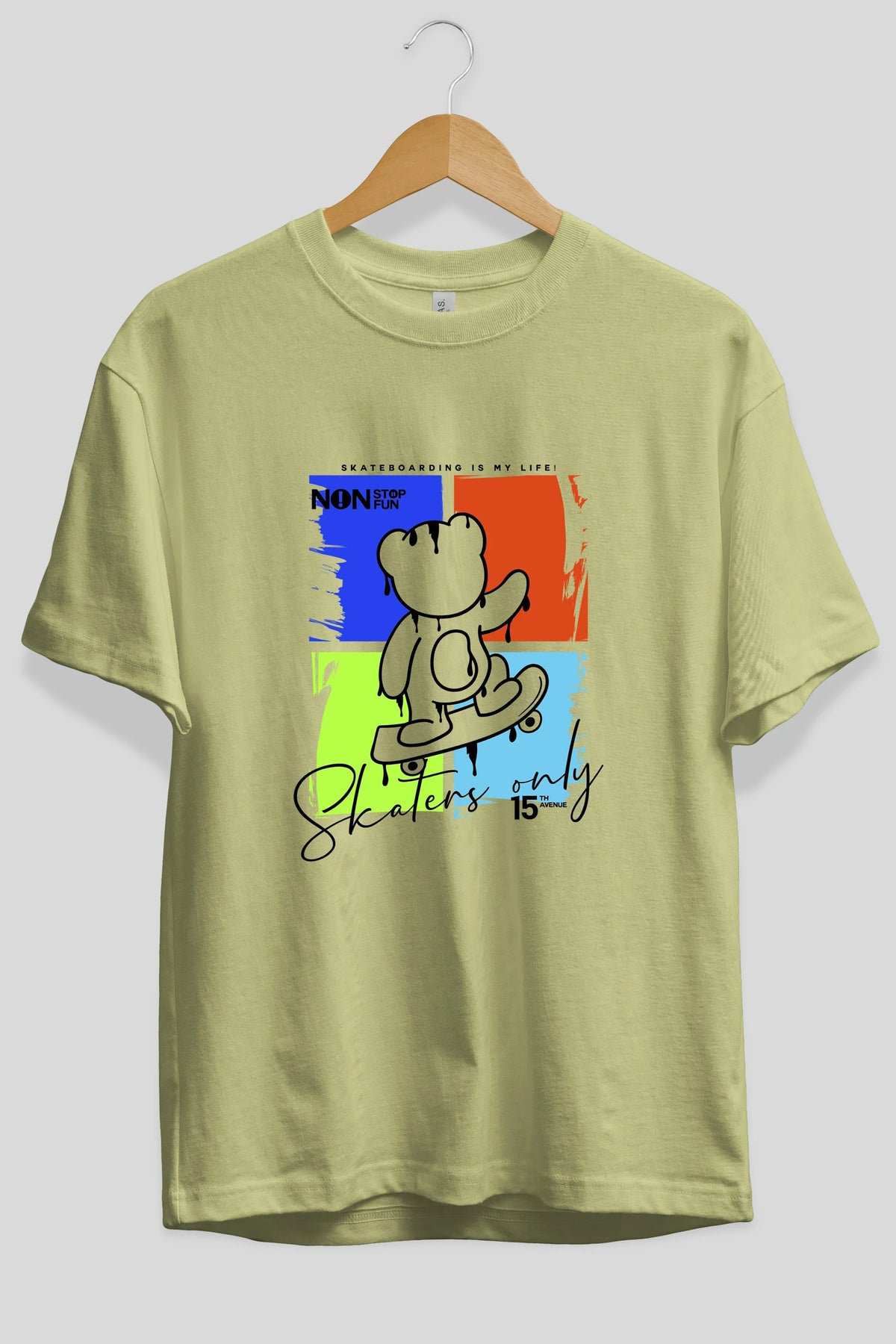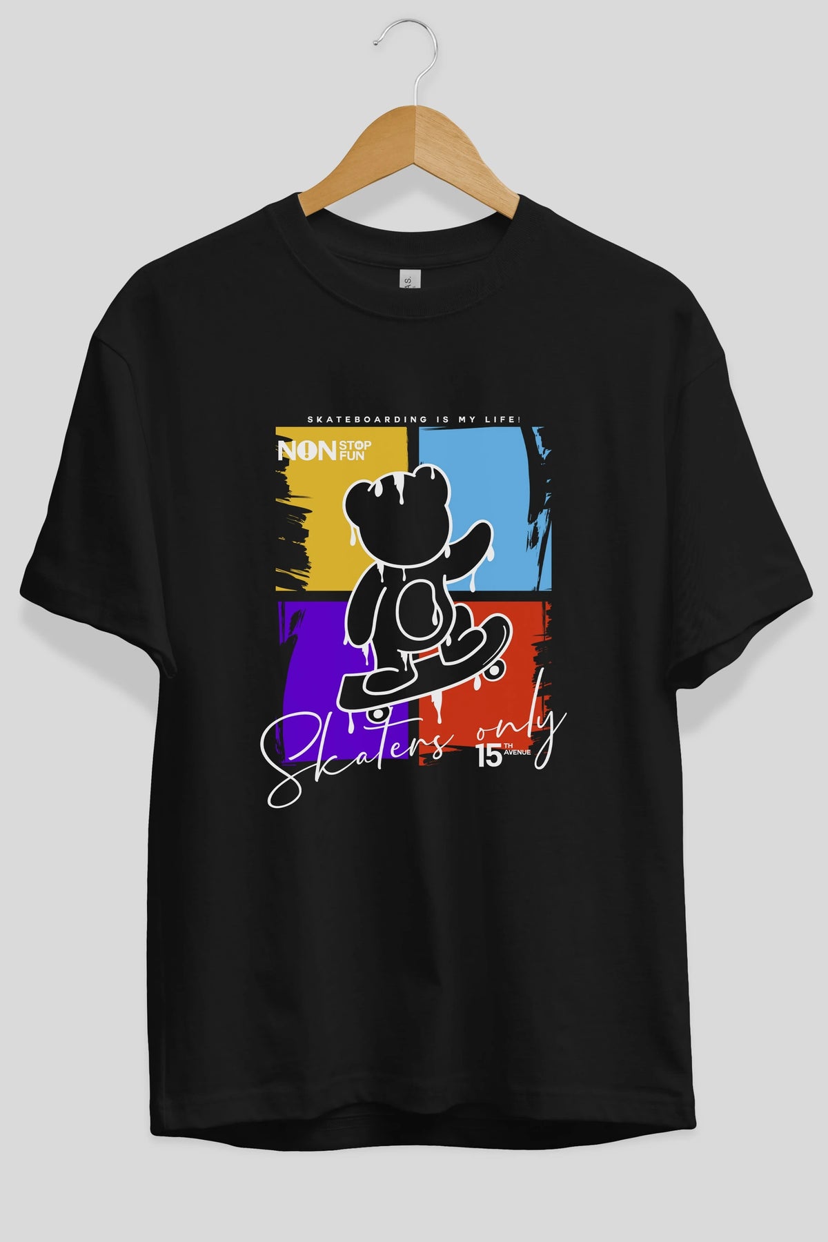 Skaters Only Bear Ön Baskılı Oversize t-shirt Erkek Kadın Unisex