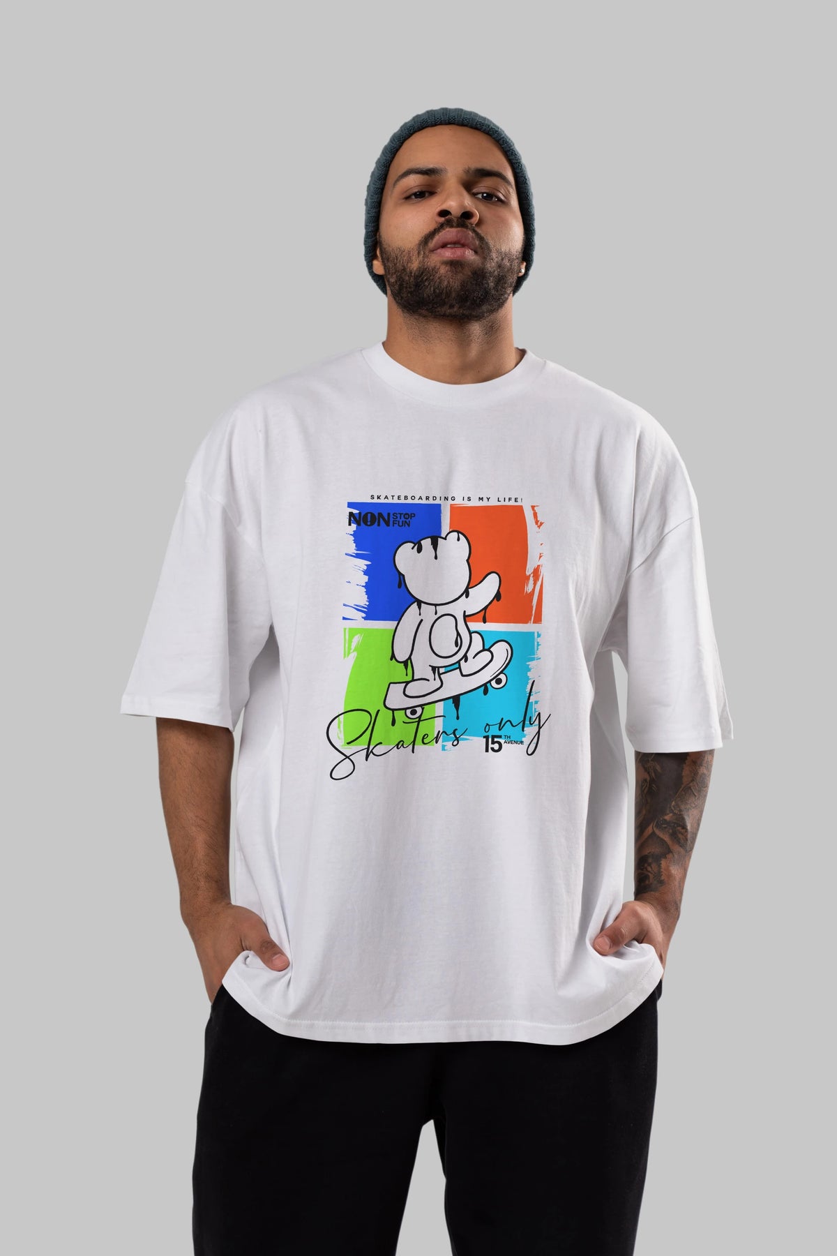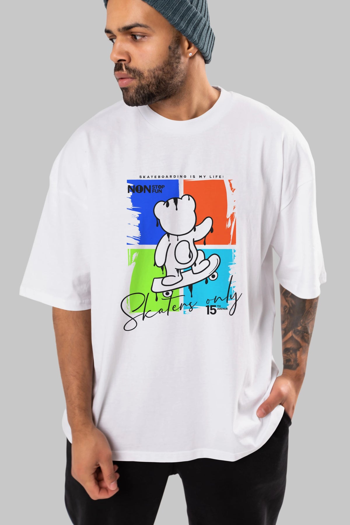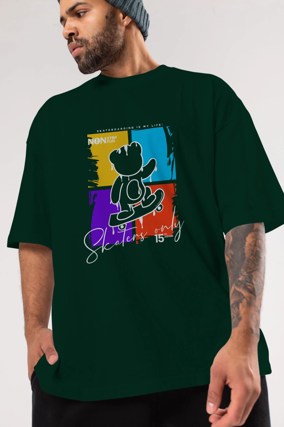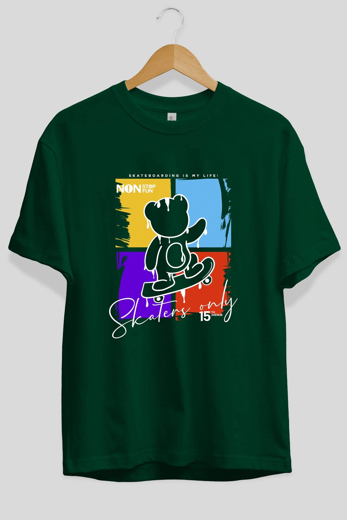 Skaters Only Bear Ön Baskılı Oversize t-shirt Erkek Kadın Unisex