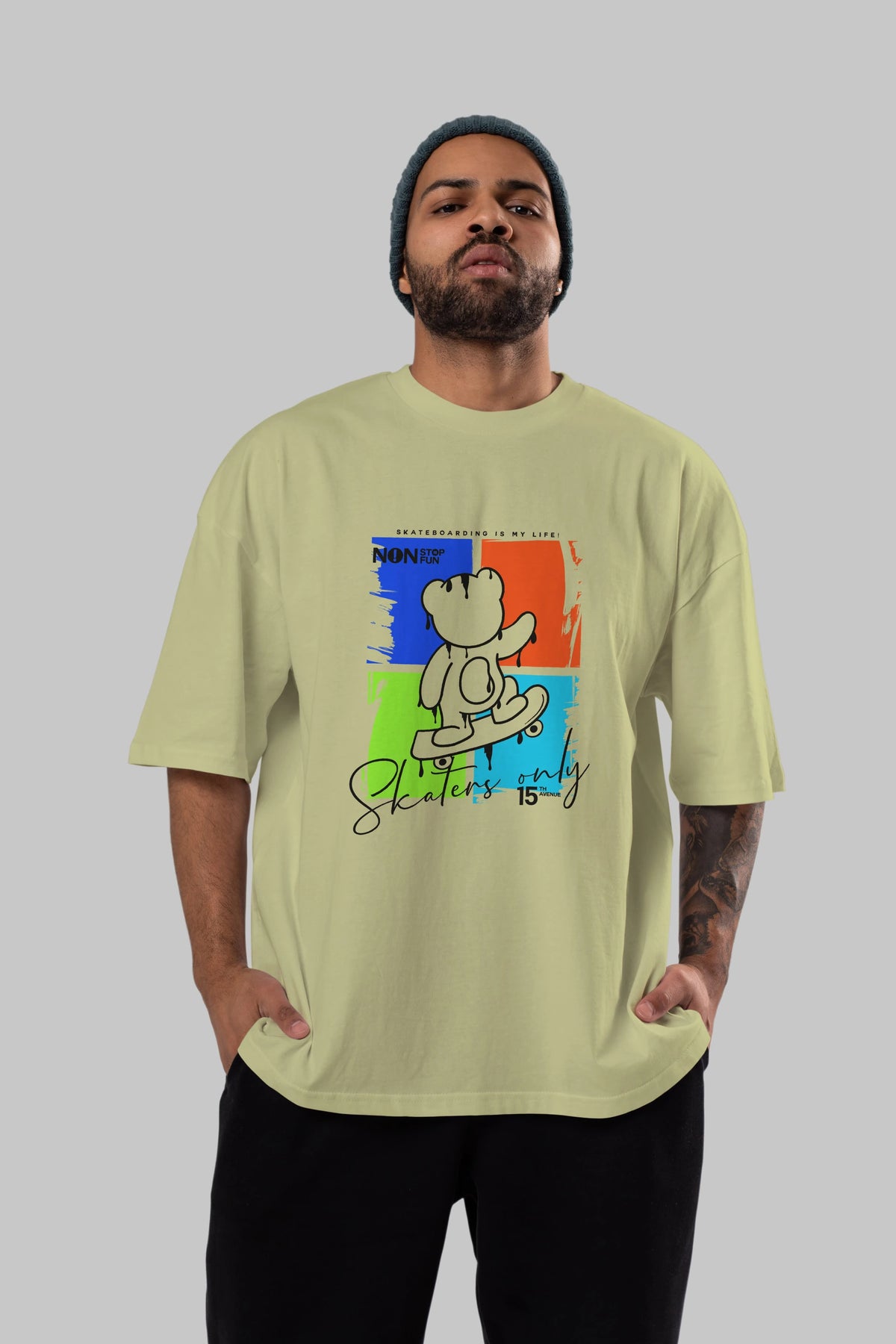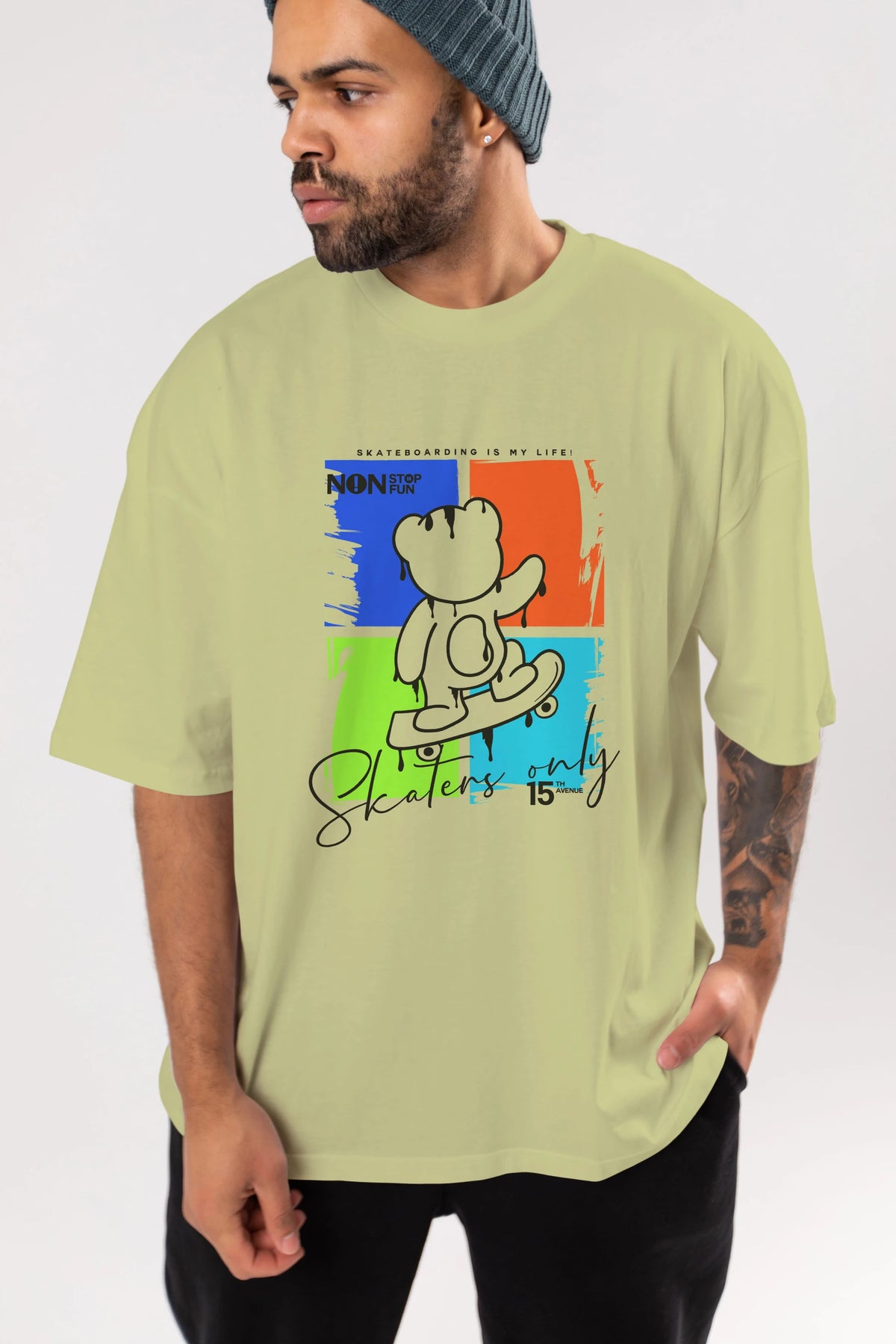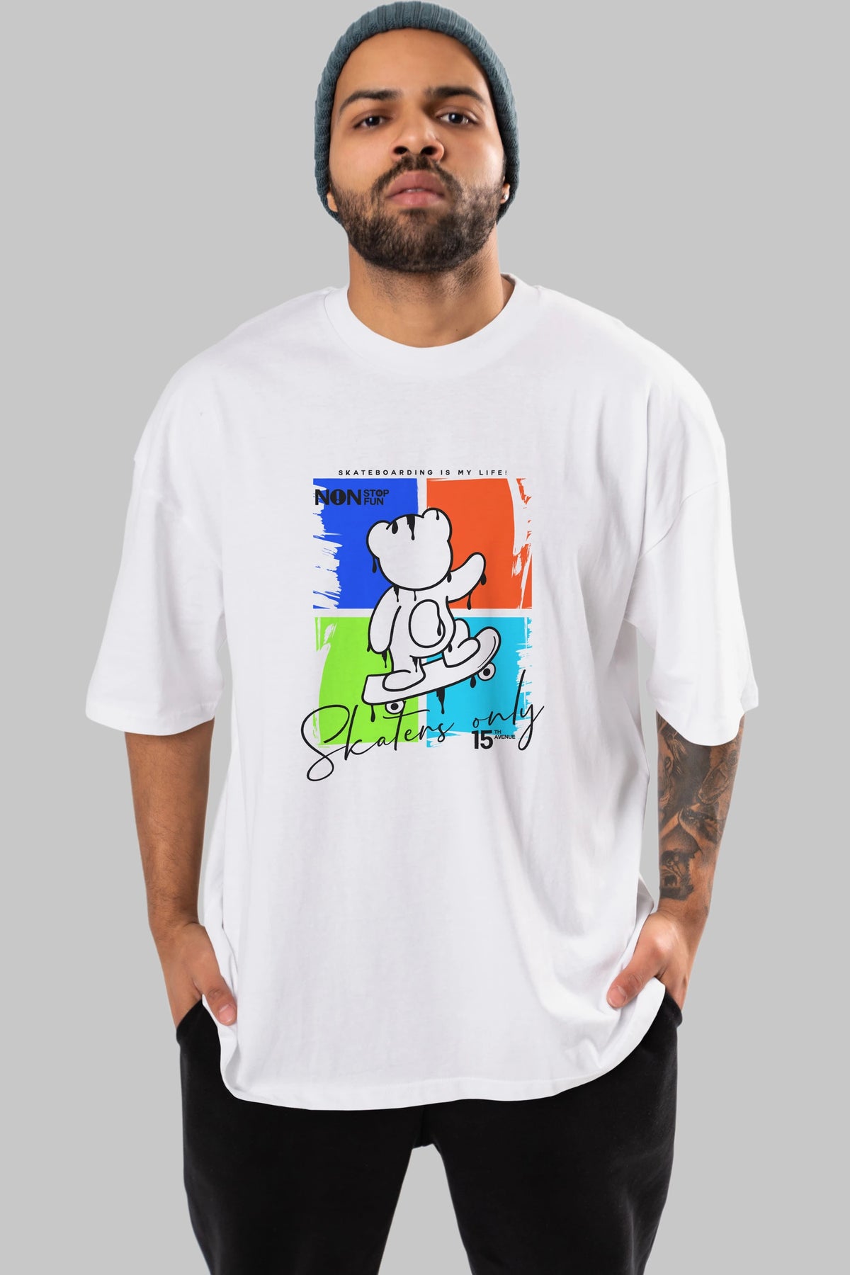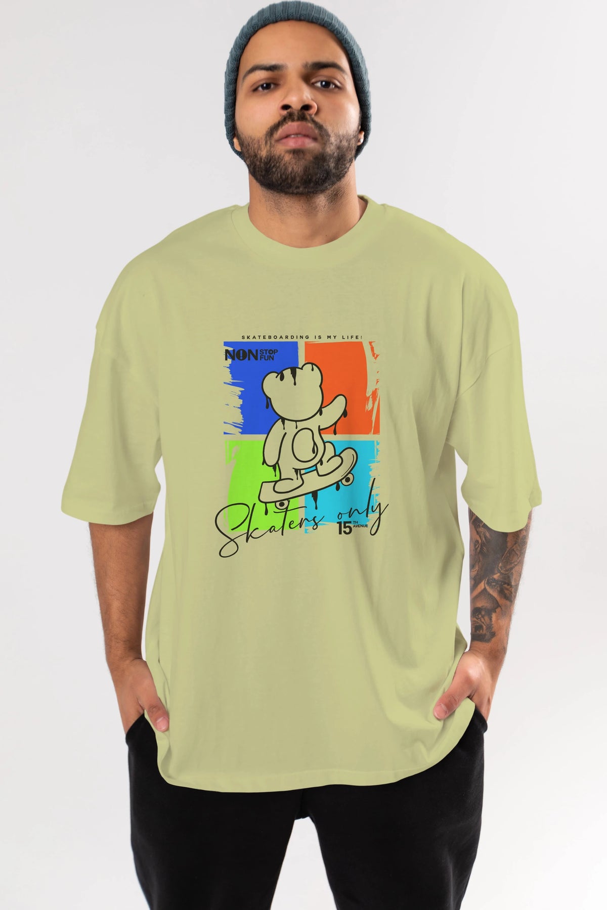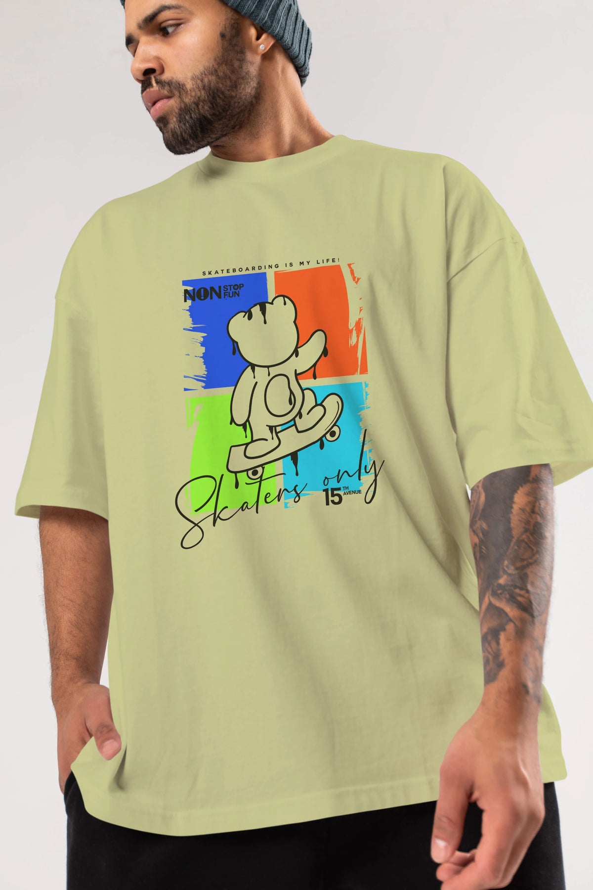 Skaters Only Bear Ön Baskılı Oversize t-shirt Erkek Kadın Unisex