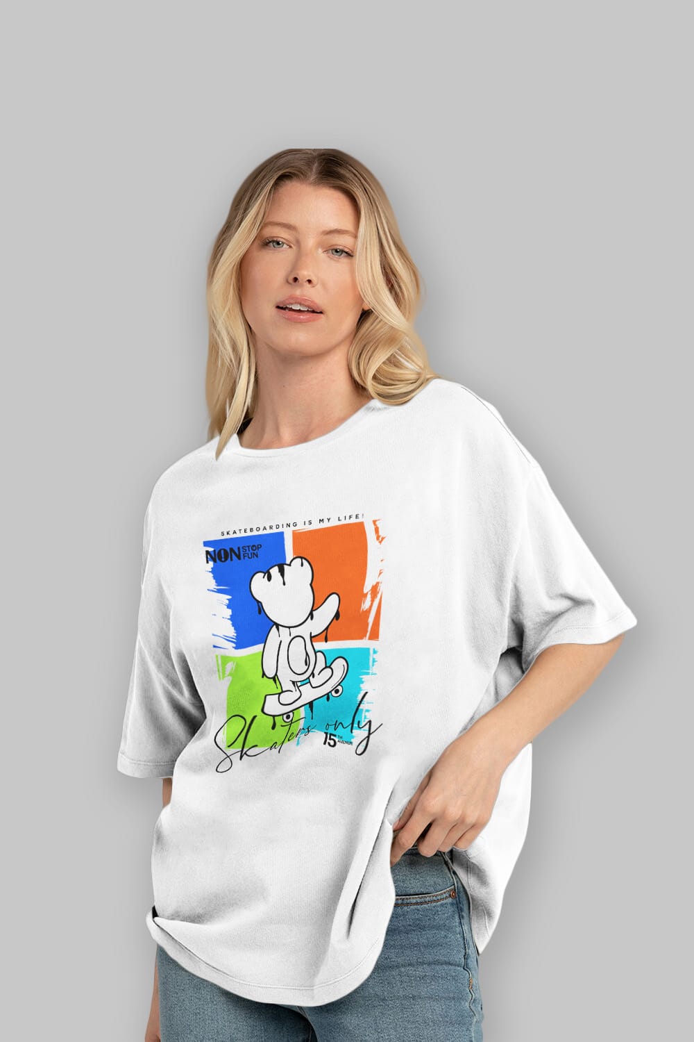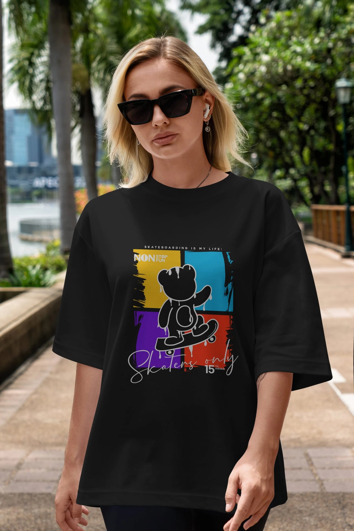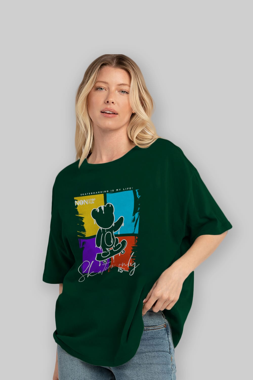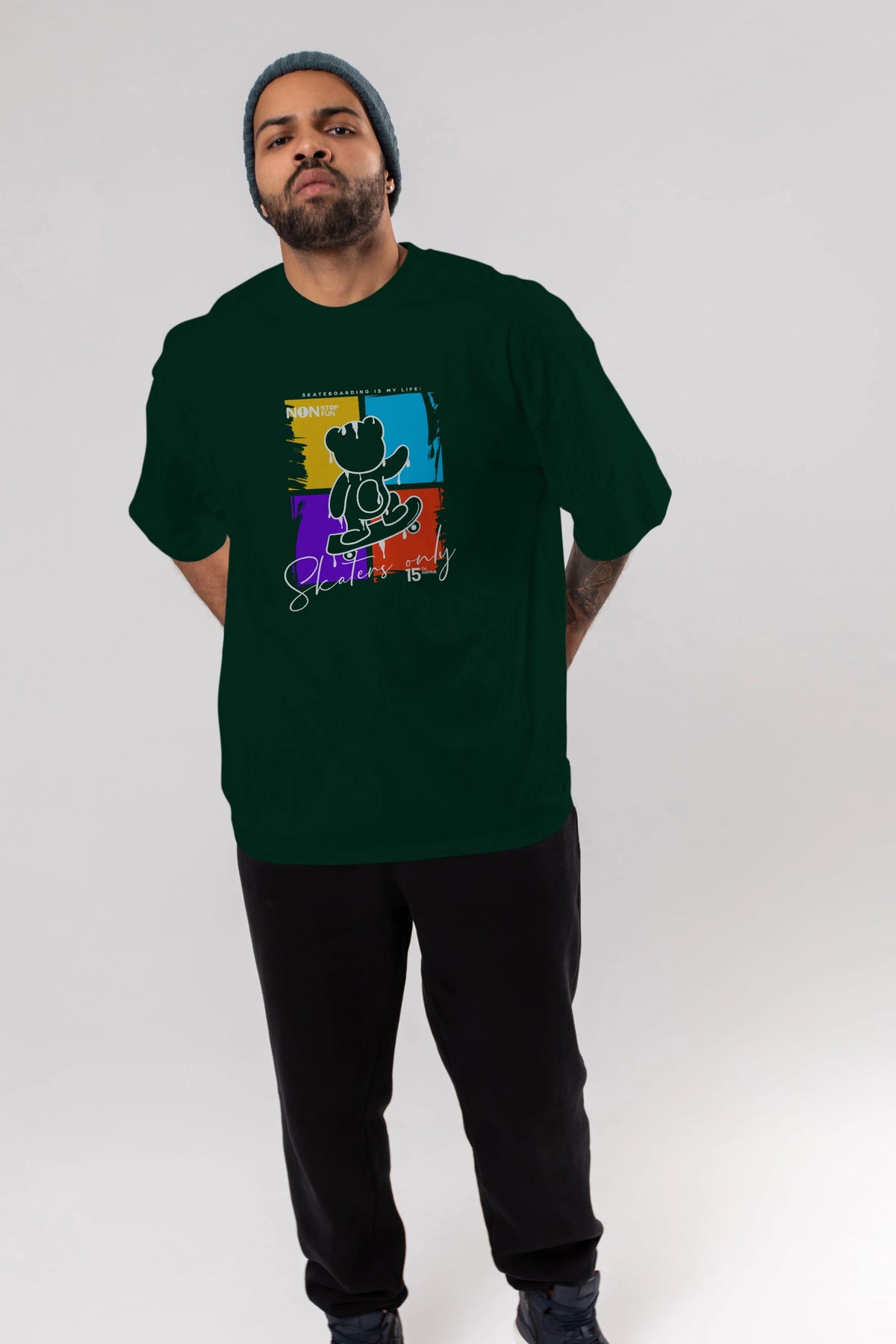 Skaters Only Bear Ön Baskılı Oversize t-shirt Erkek Kadın Unisex