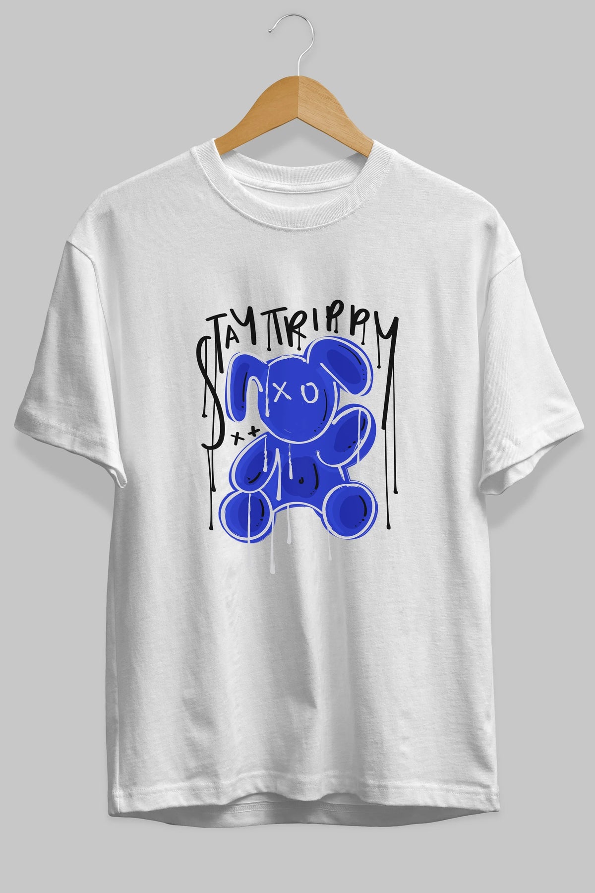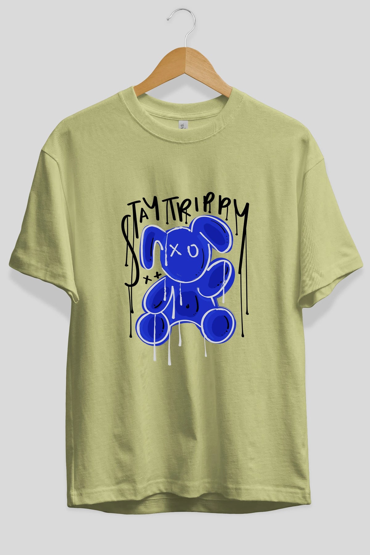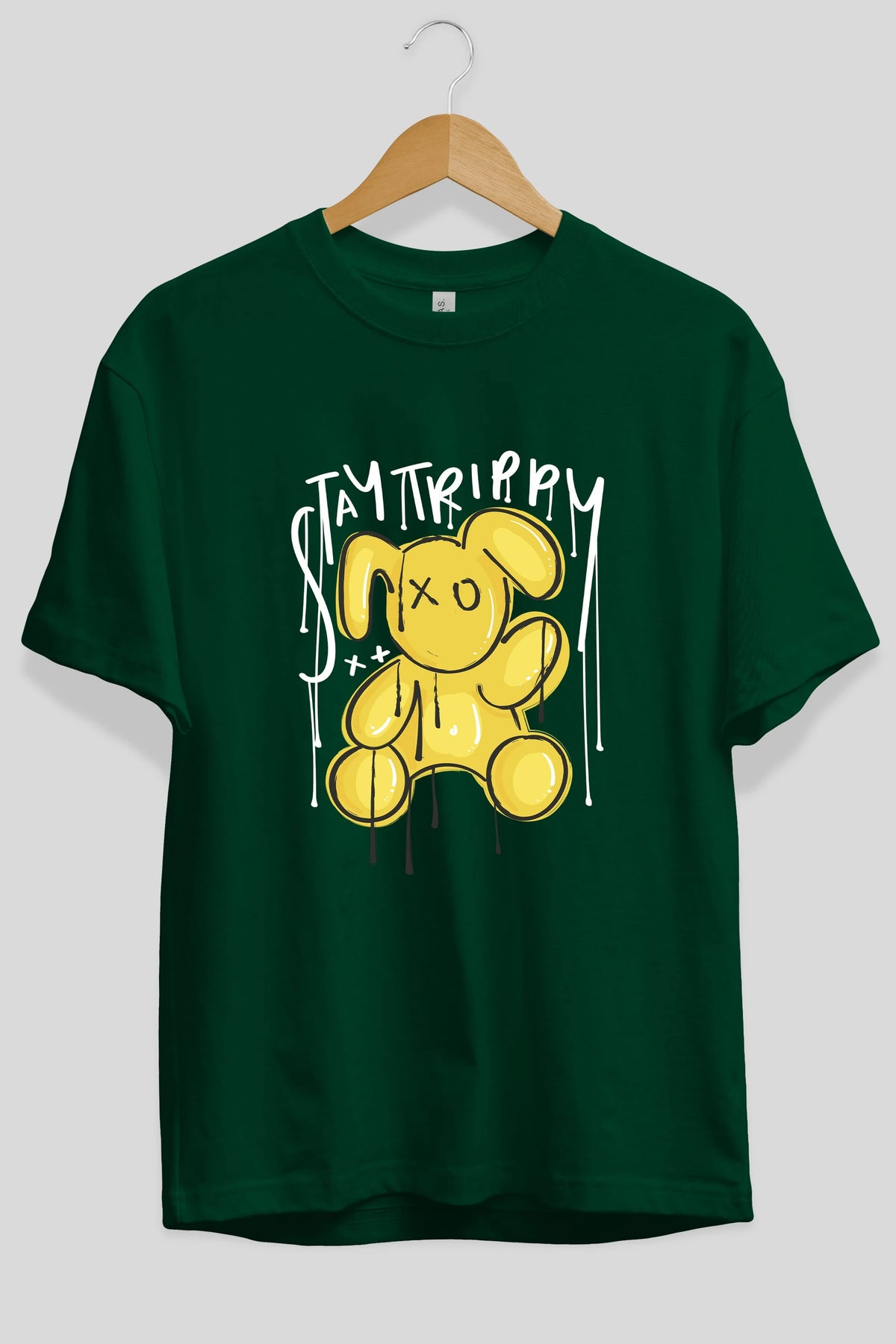 Stay Trippy Bear Ön Baskılı Oversize t-shirt Erkek Kadın Unisex