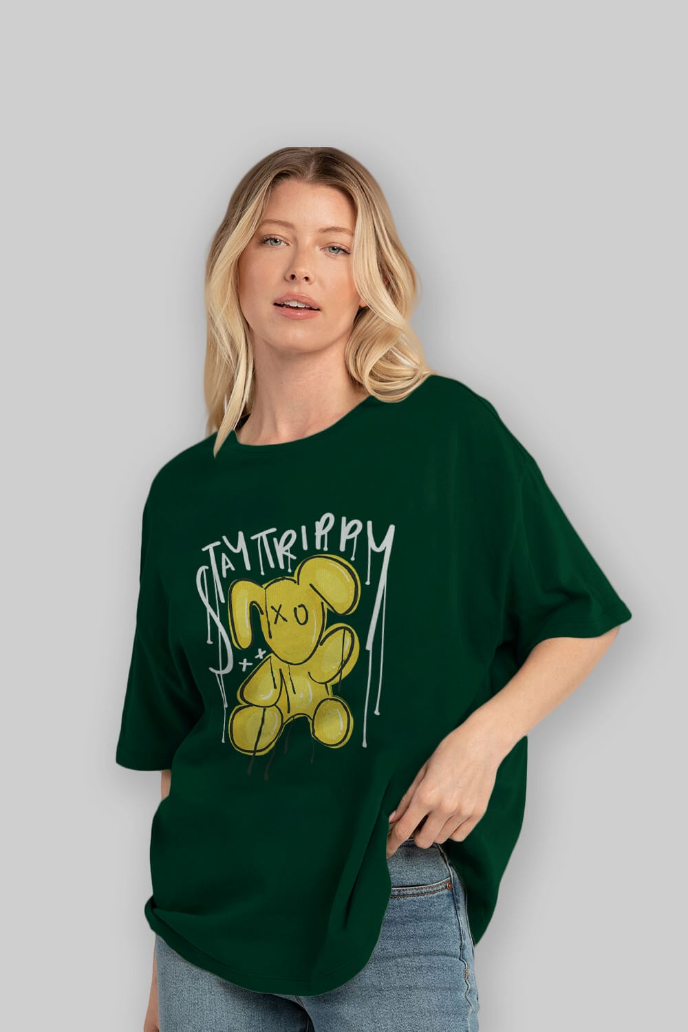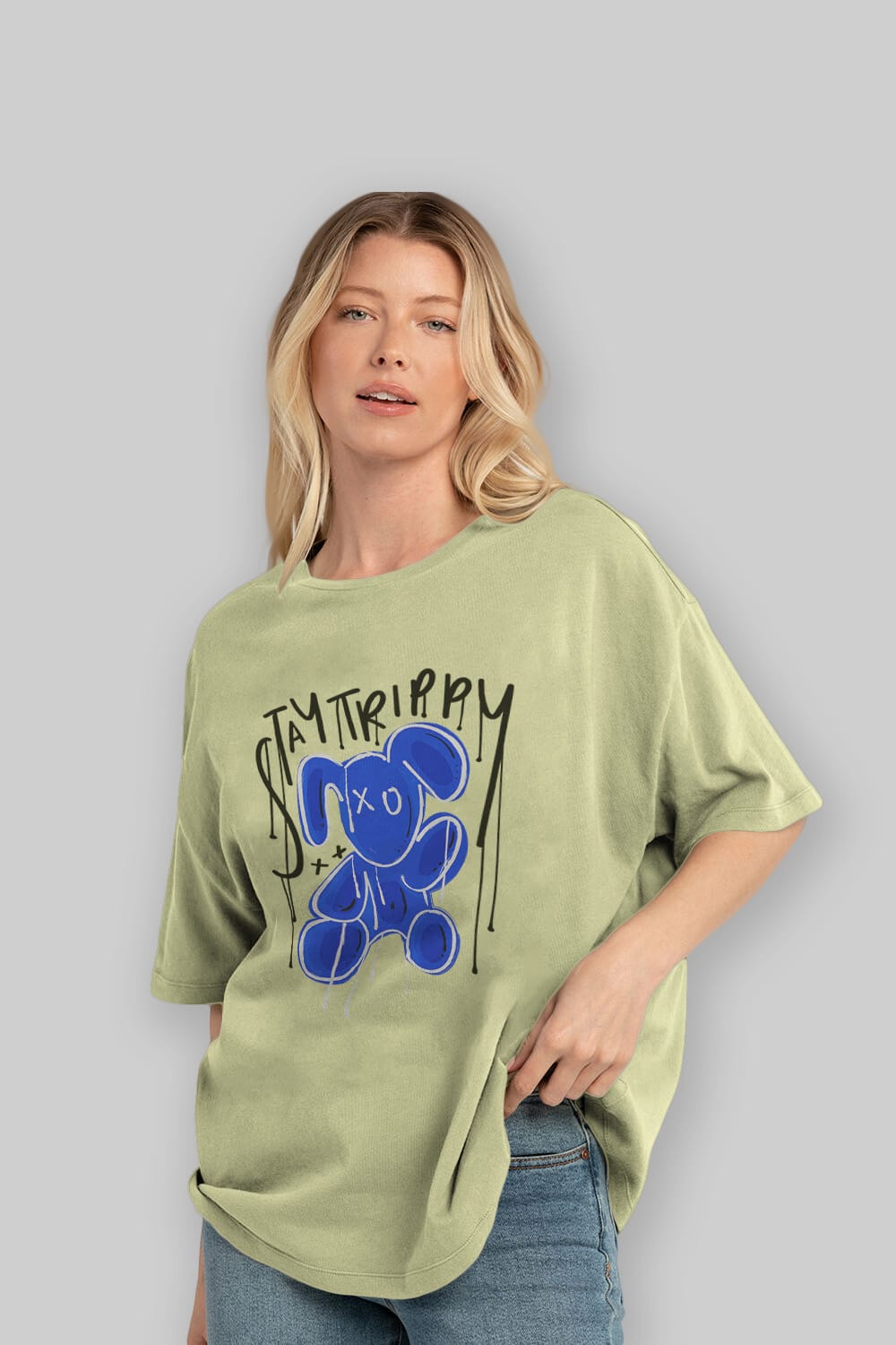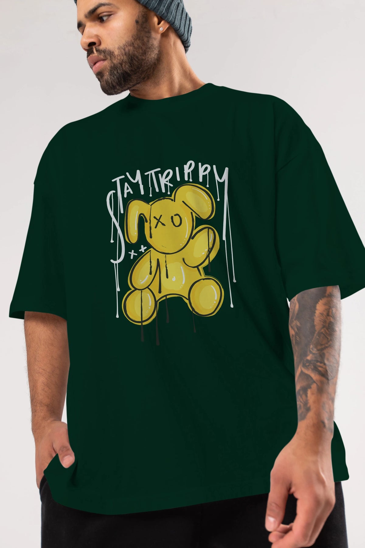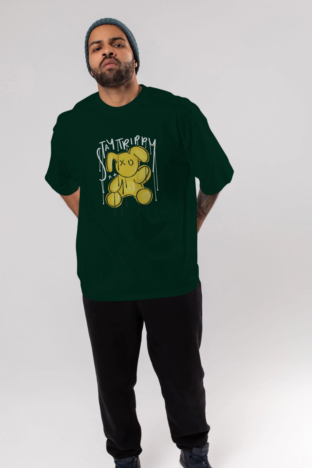 Stay Trippy Bear Ön Baskılı Oversize t-shirt Erkek Kadın Unisex
