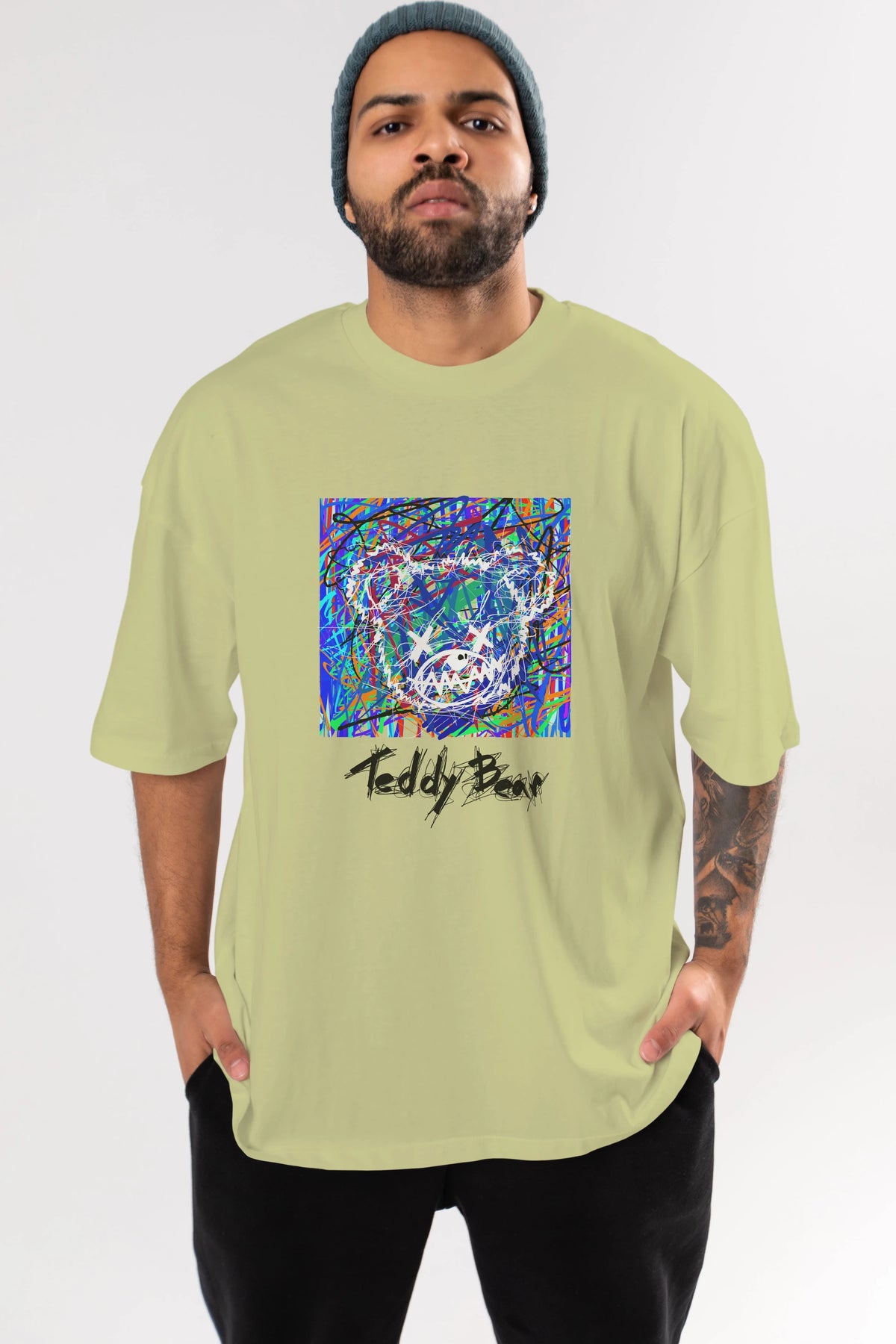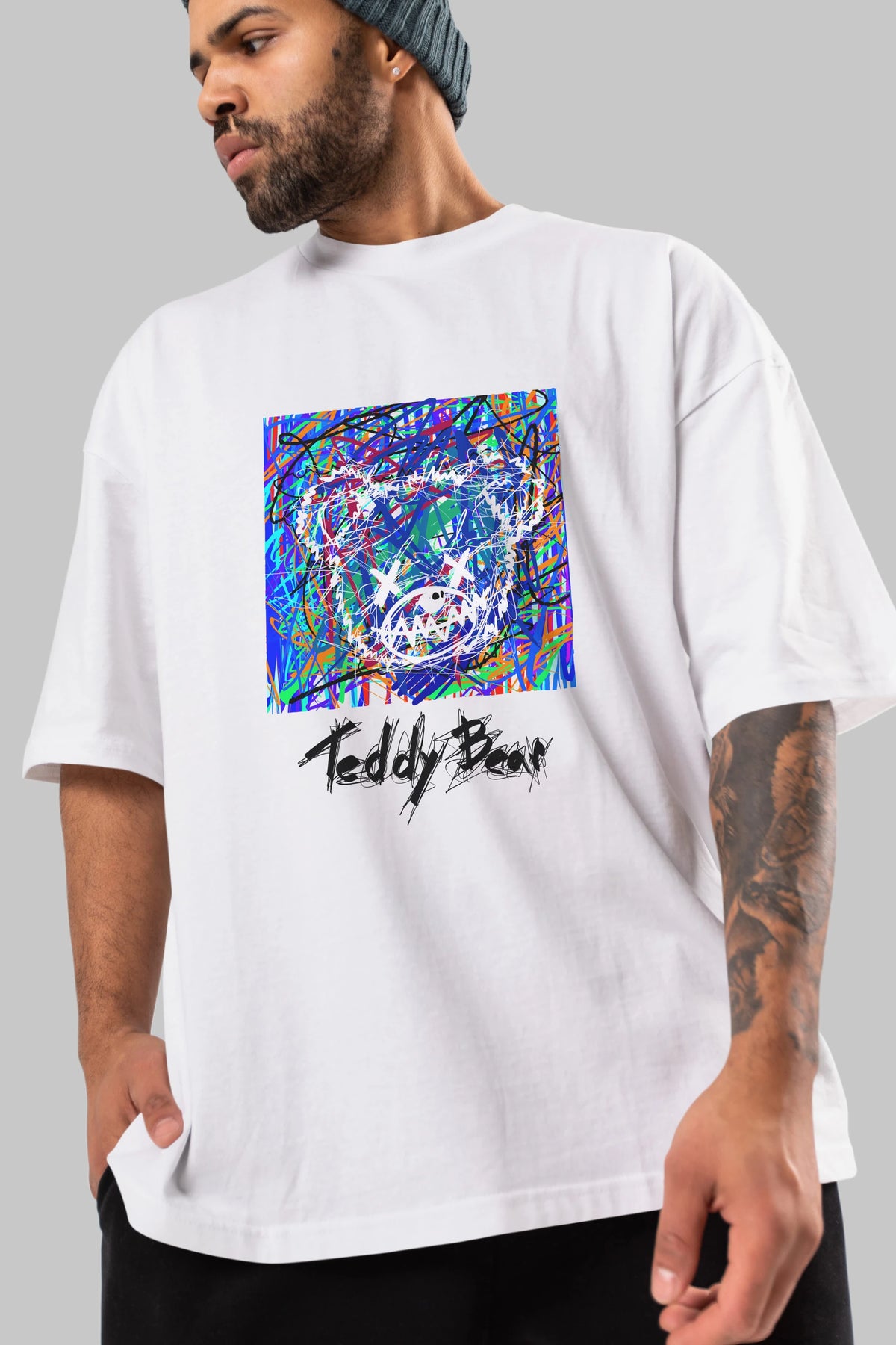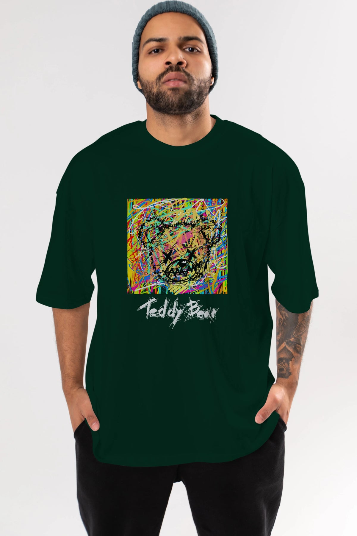 Teddy Bear 3 Ön Baskılı Oversize t-shirt Erkek Kadın Unisex