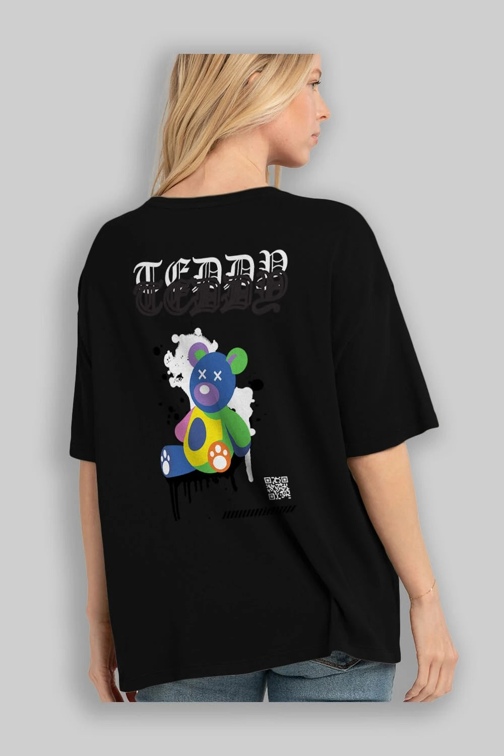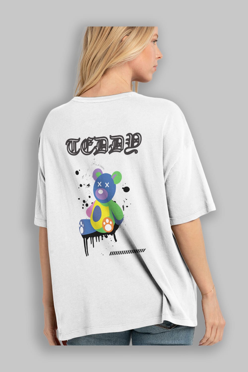 Teddy Bear Arka Baskılı Oversize t-shirt Erkek Kadın Unisex