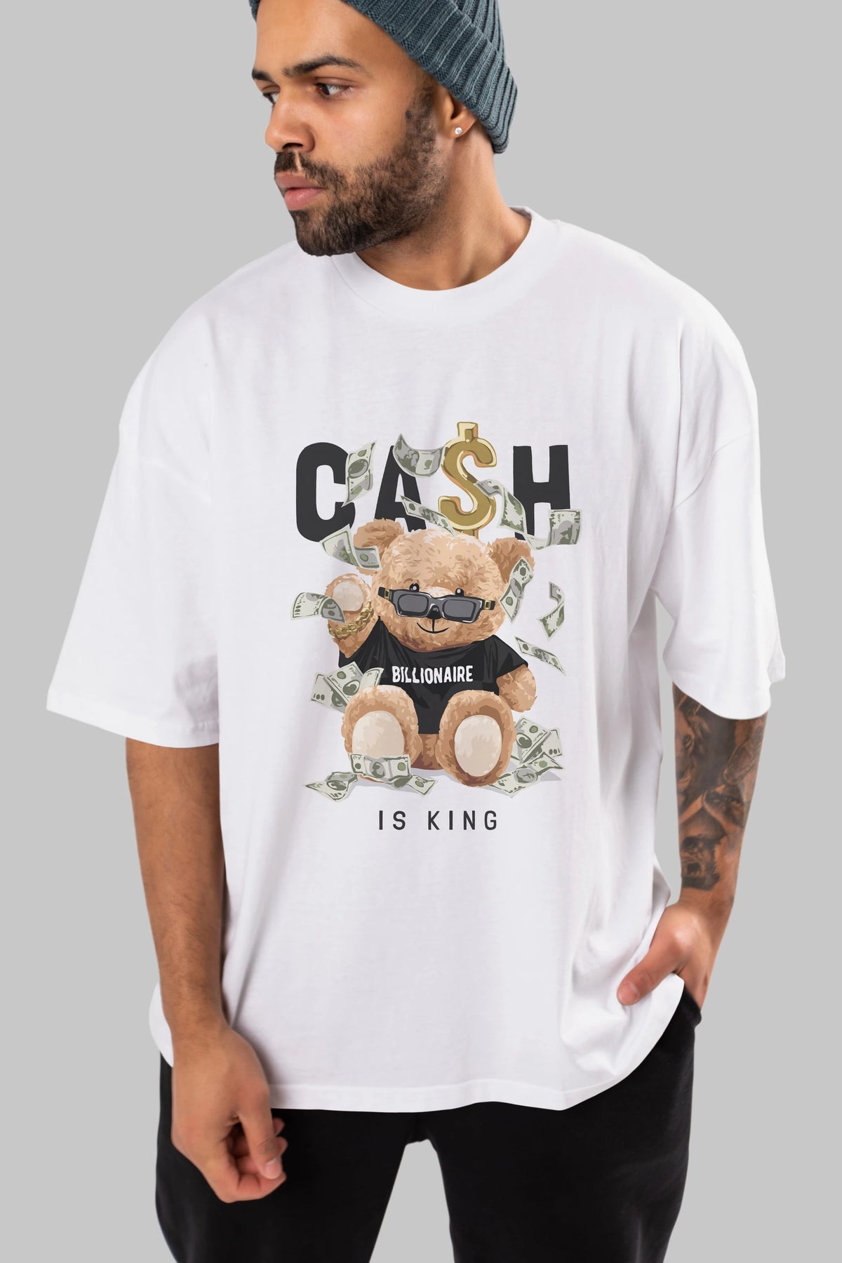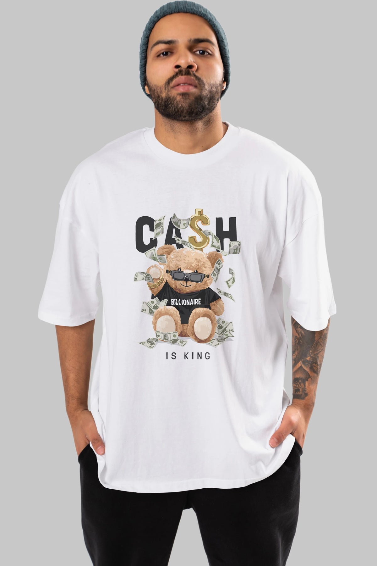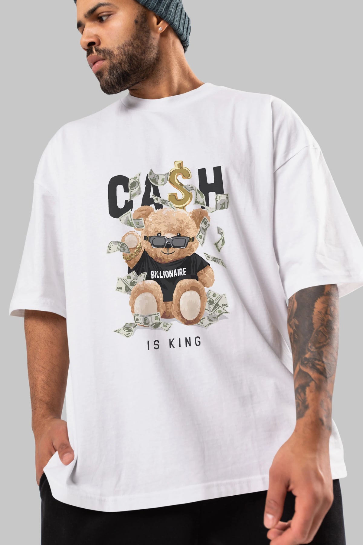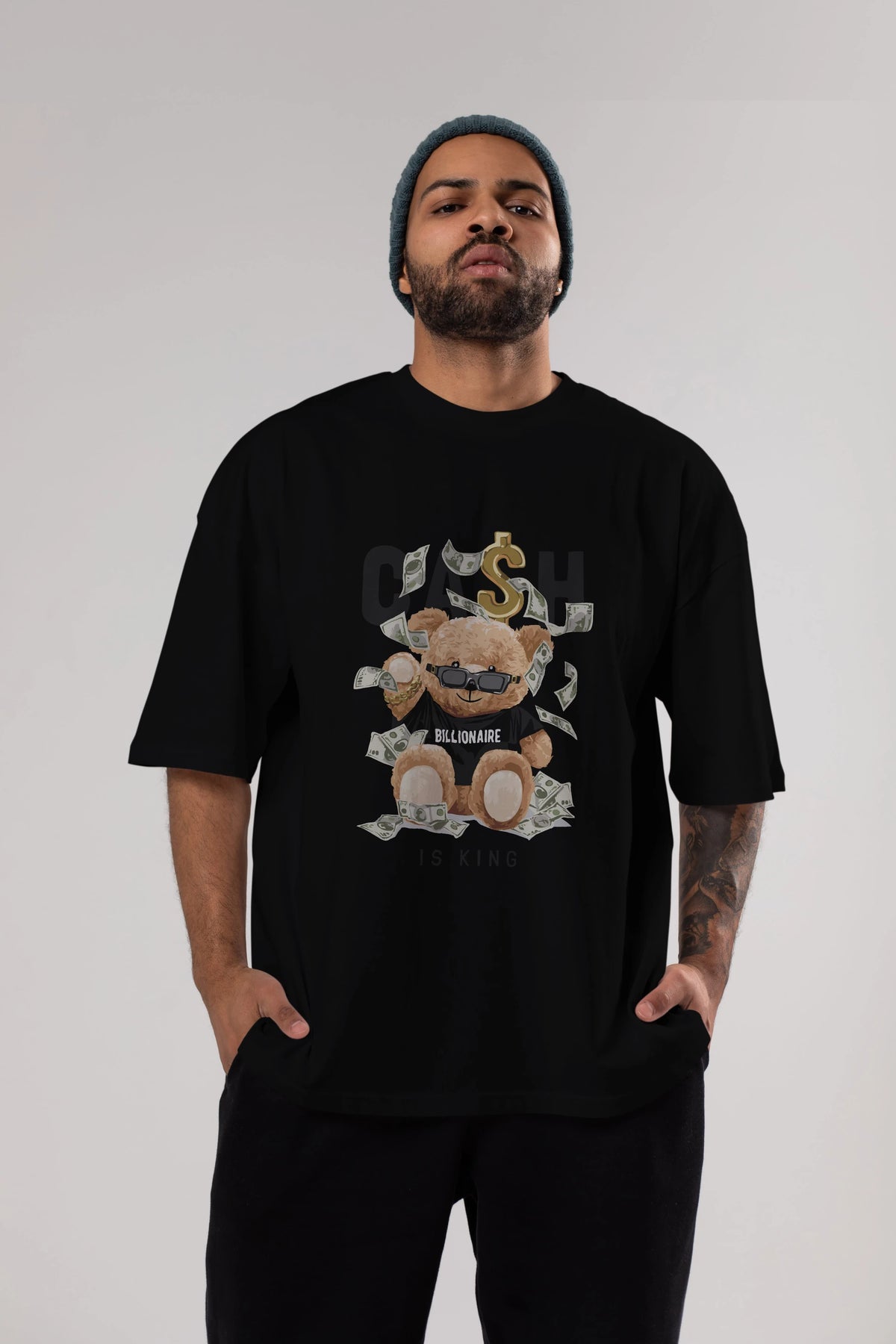 Teddy Bear Billionaire Ön Baskılı Oversize t-shirt Erkek Kadın Unisex %100 Pamuk