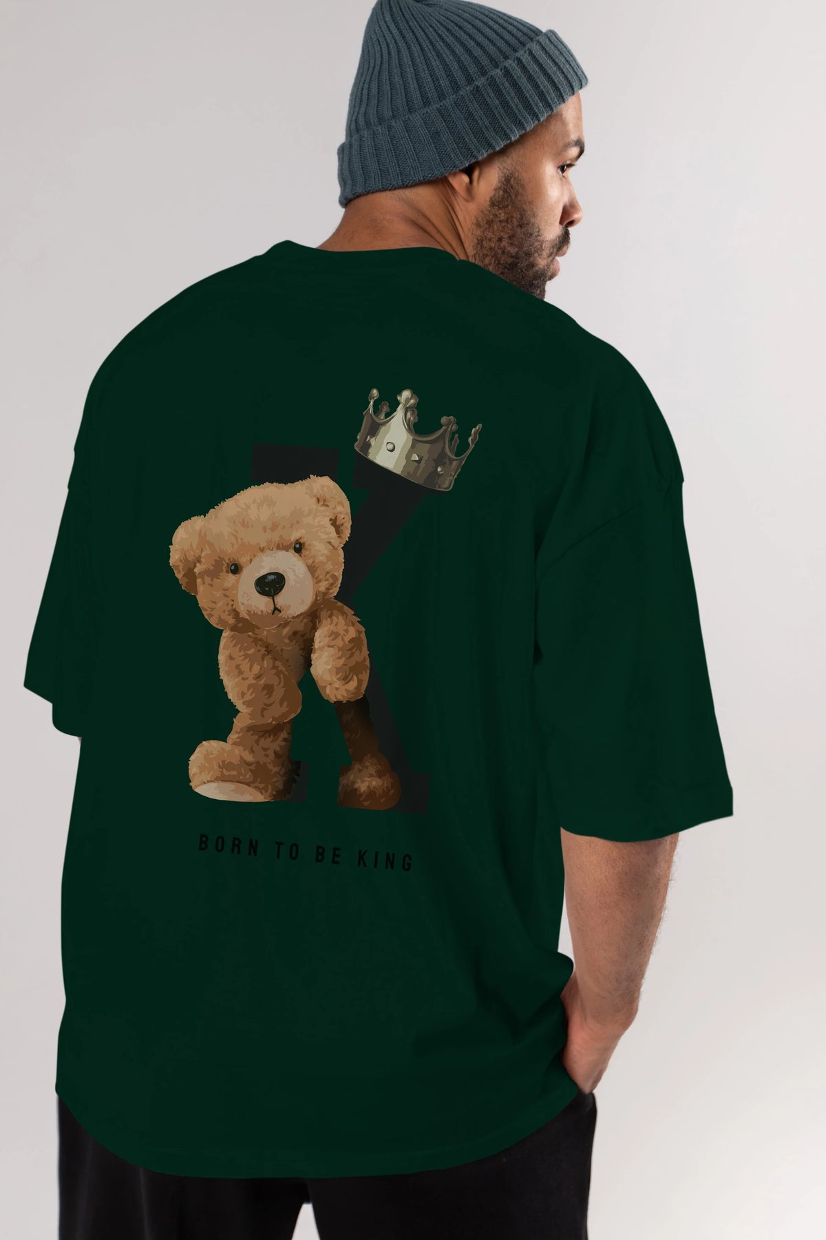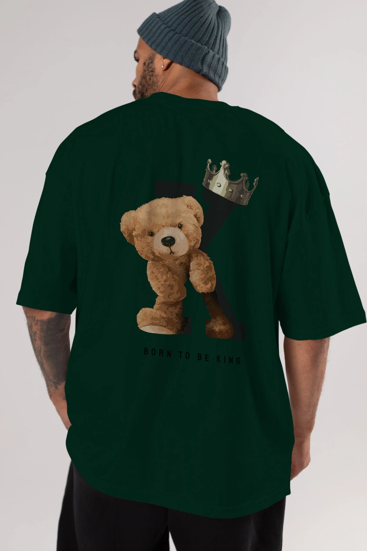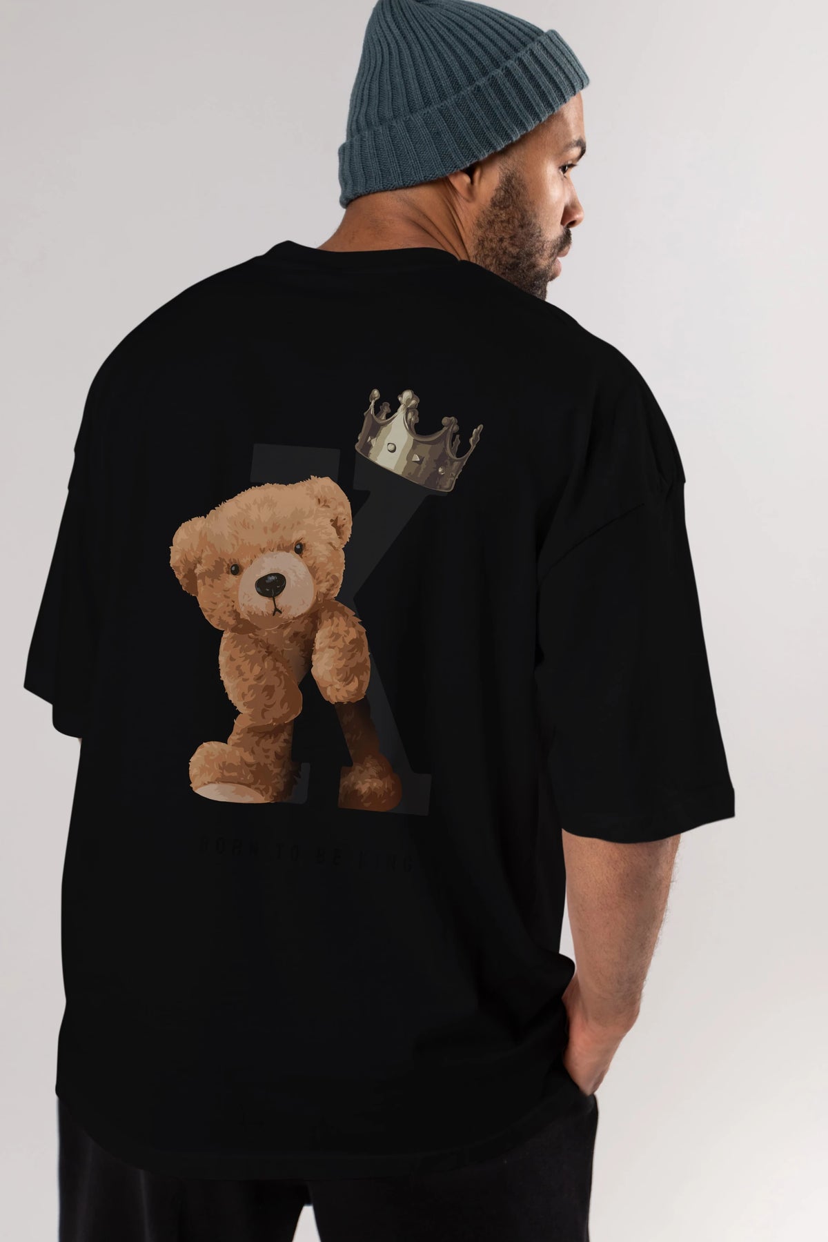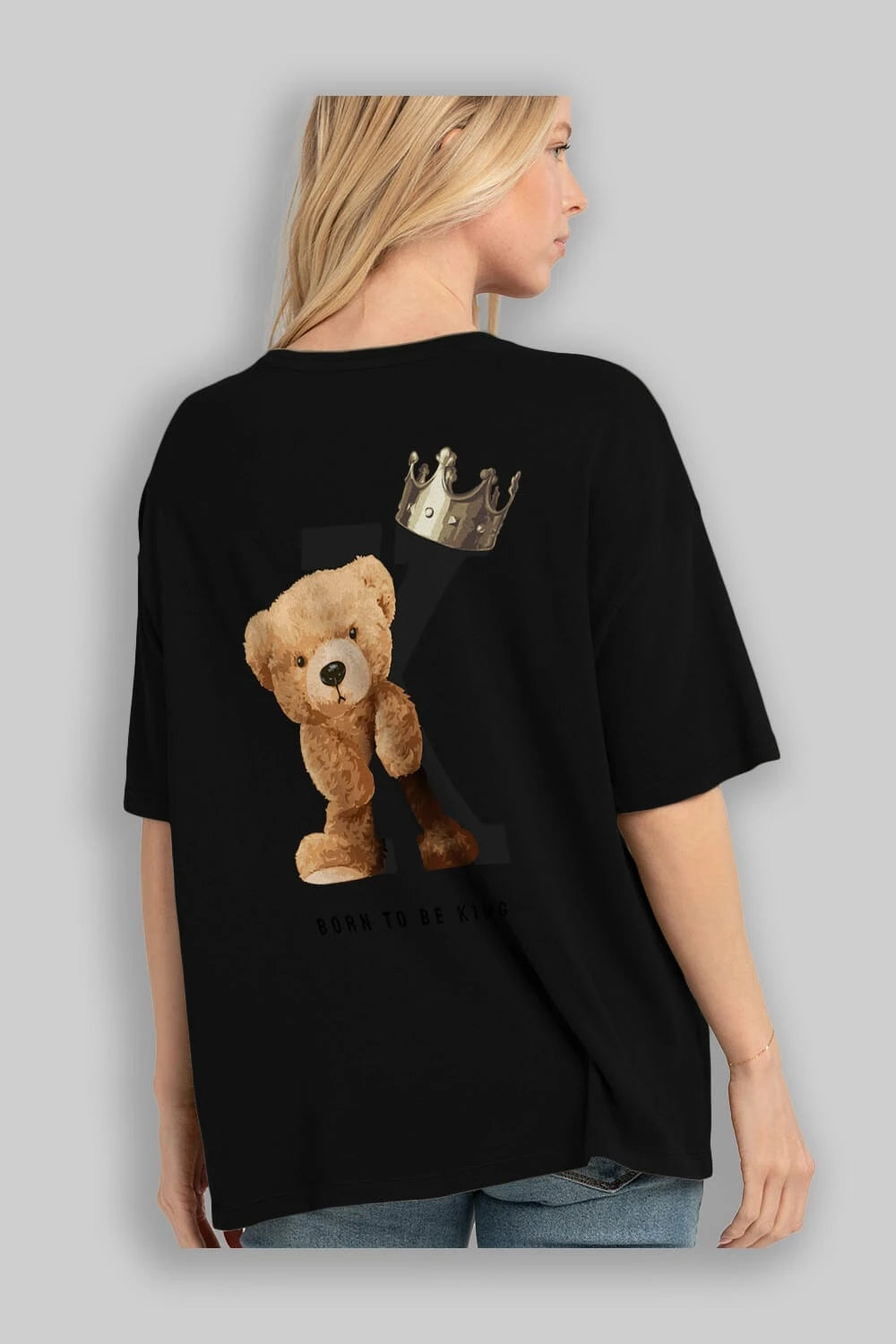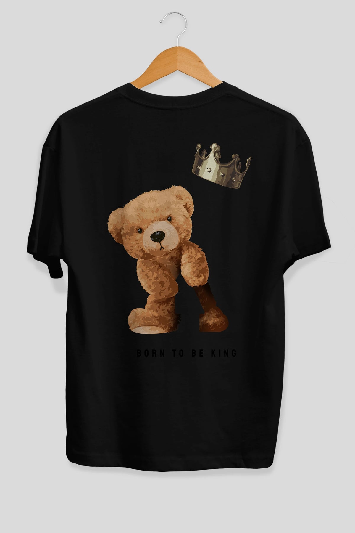 Teddy Bear Born To Be King Arka Baskılı Oversize t-shirt Erkek Kadın Unisex %100 Pamuk