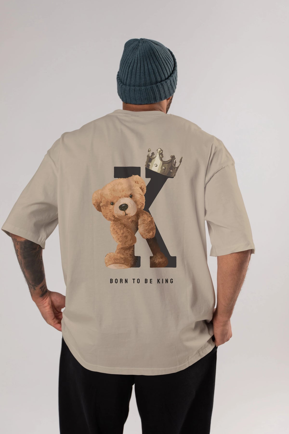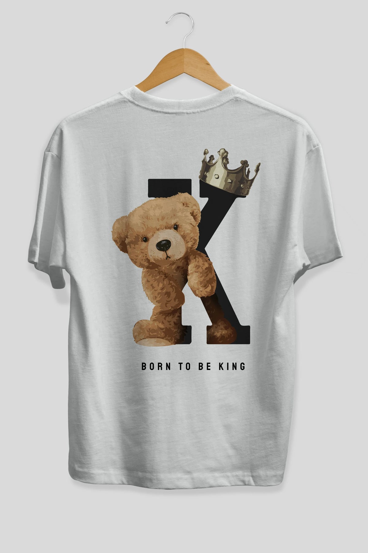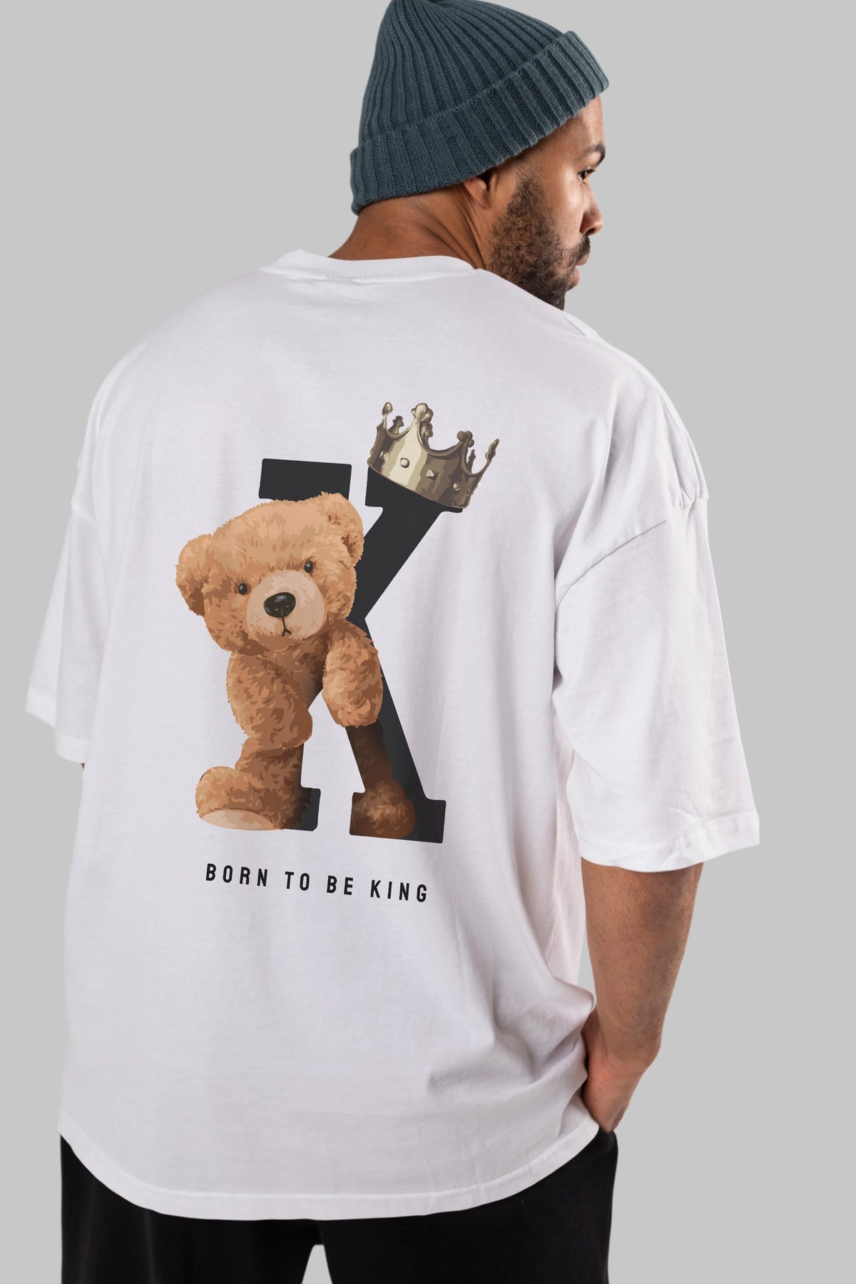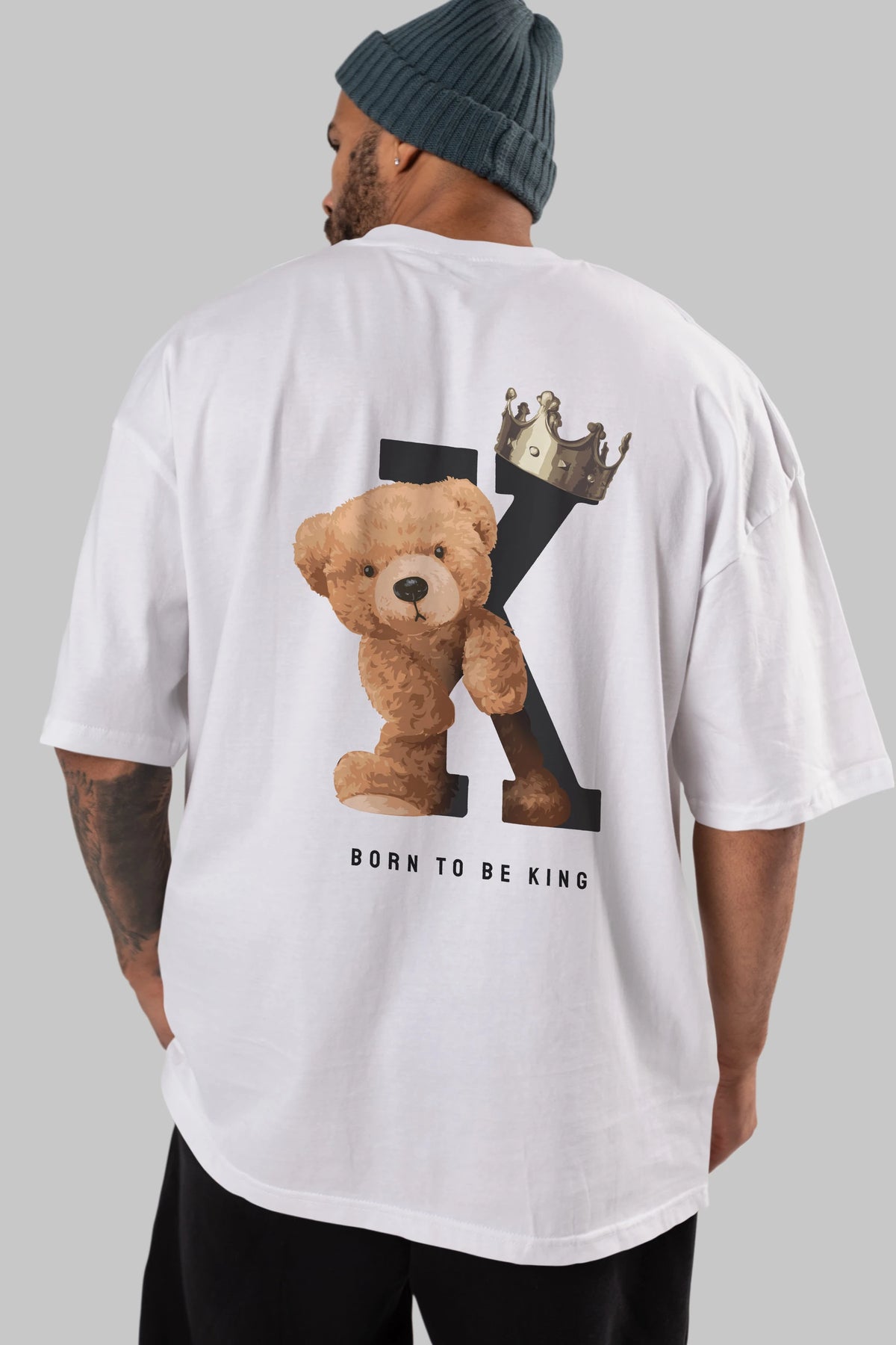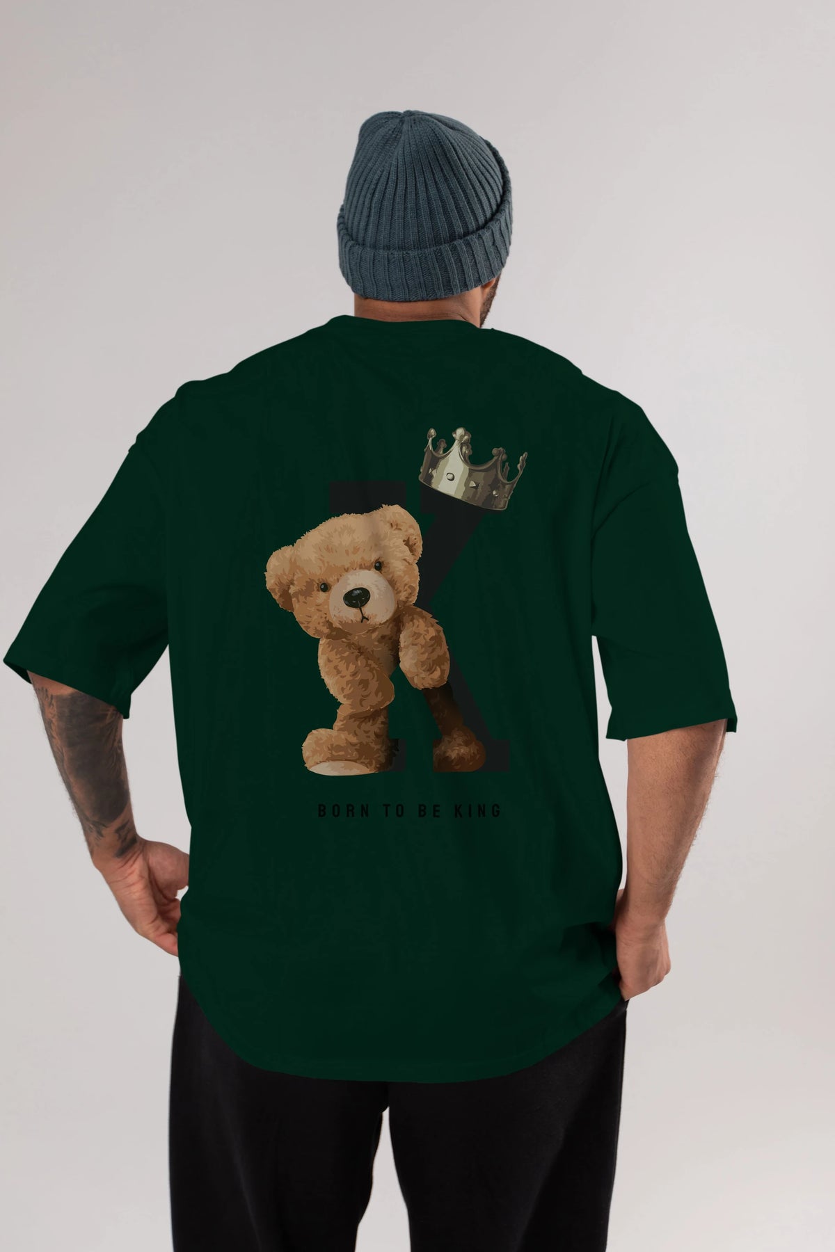 Teddy Bear Born To Be King Arka Baskılı Oversize t-shirt Erkek Kadın Unisex %100 Pamuk