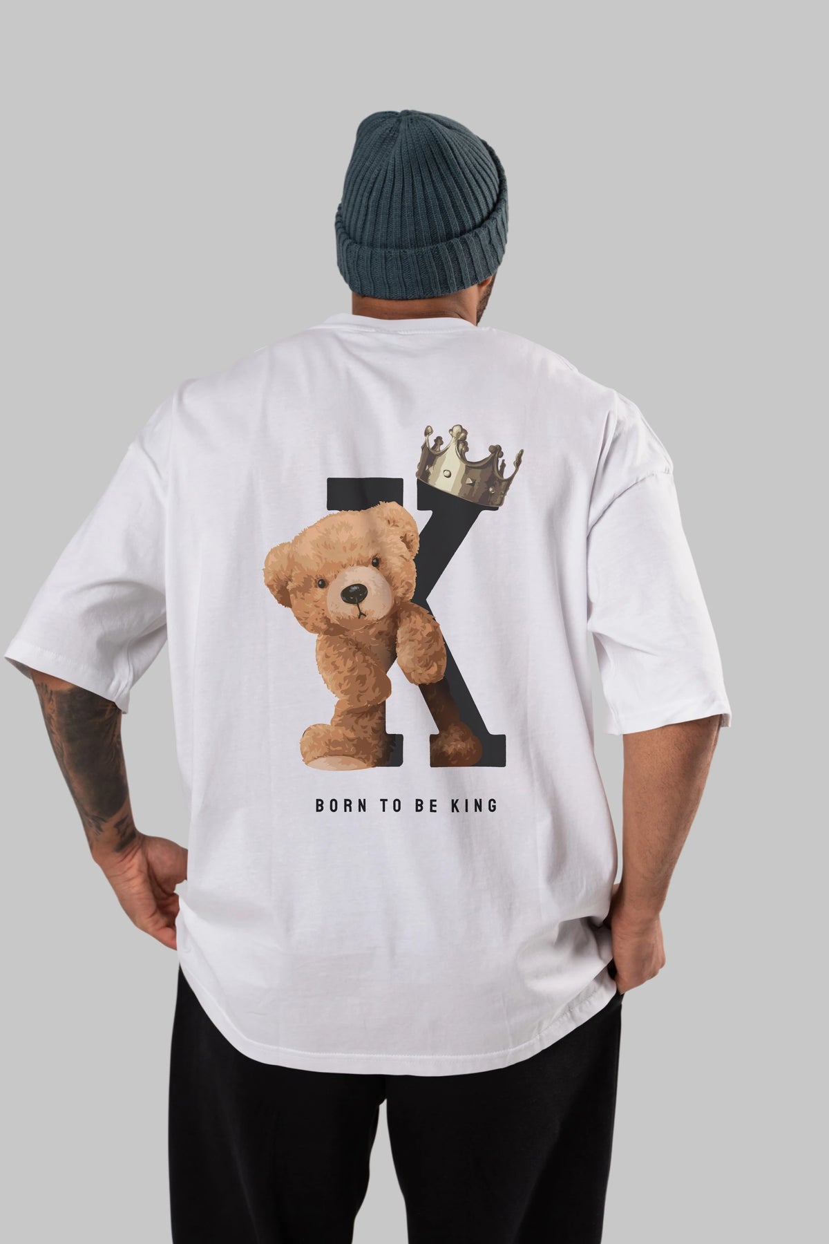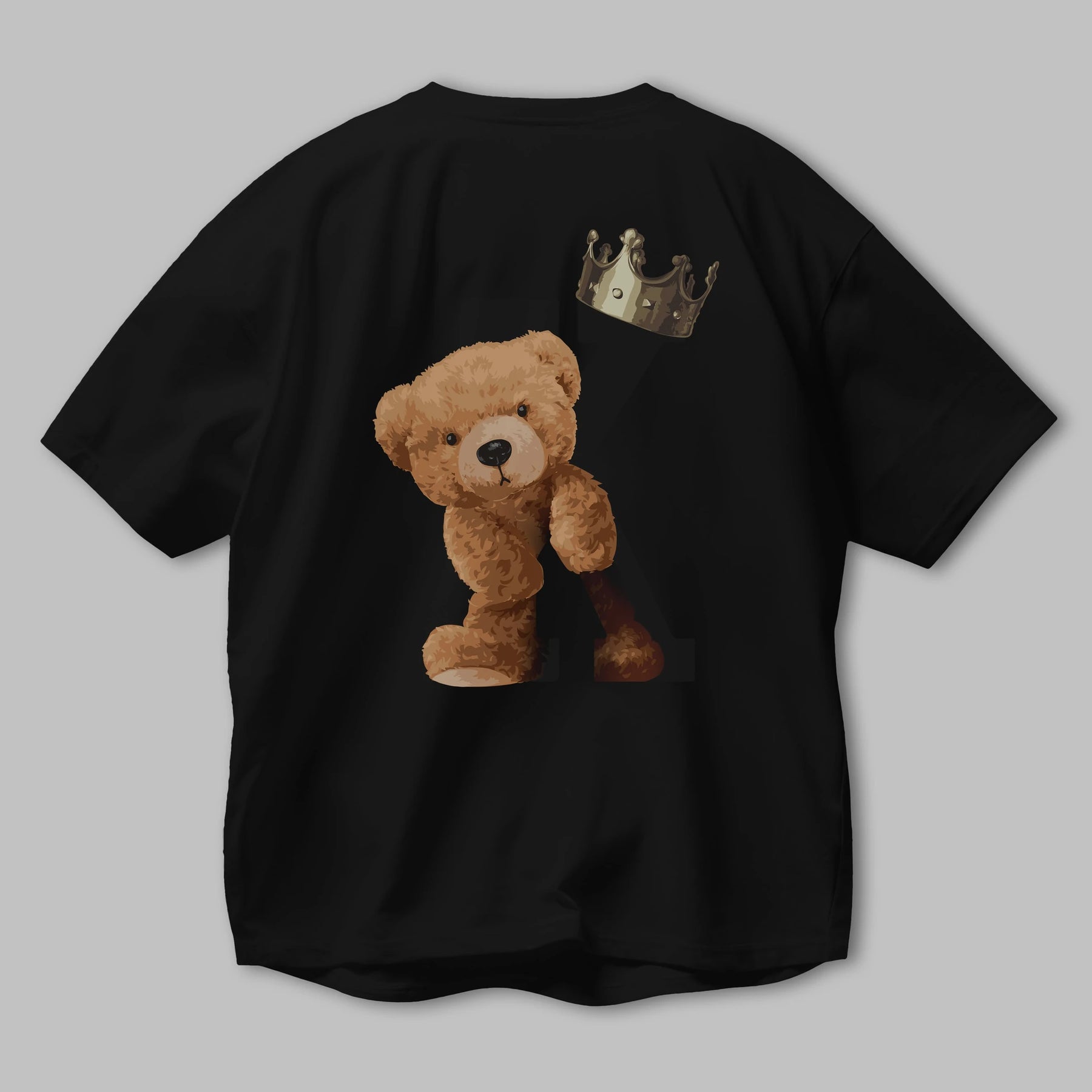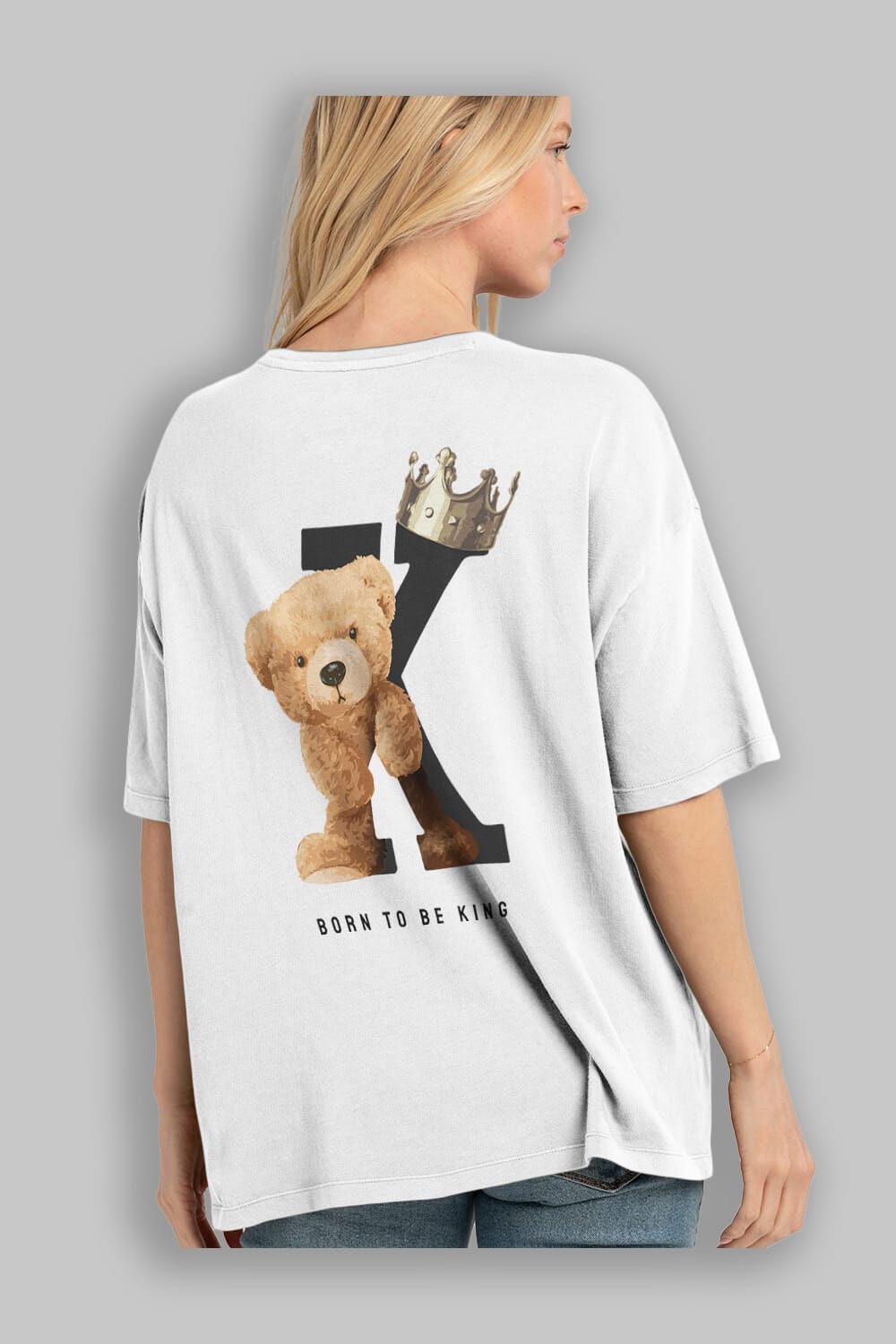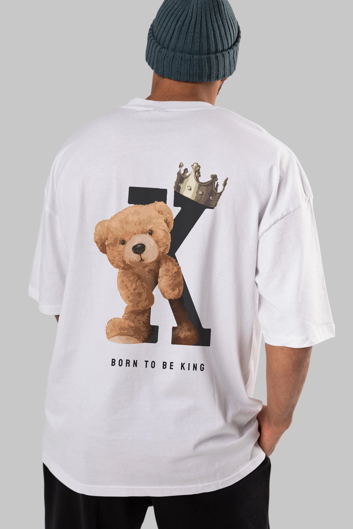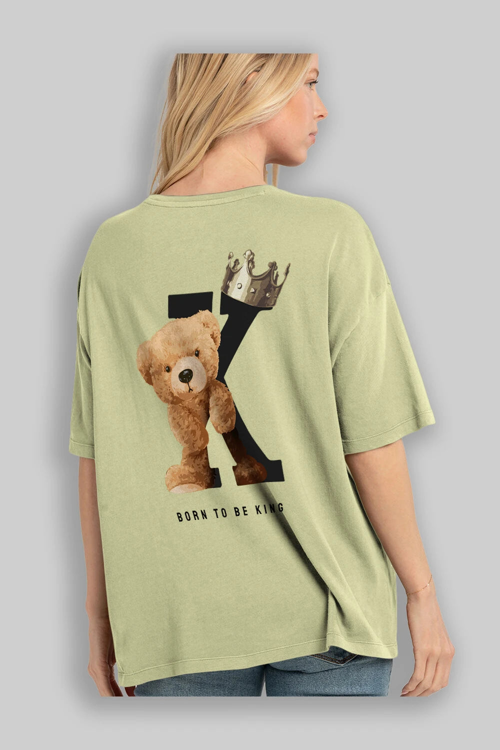 Teddy Bear Born To Be King Arka Baskılı Oversize t-shirt Erkek Kadın Unisex %100 Pamuk