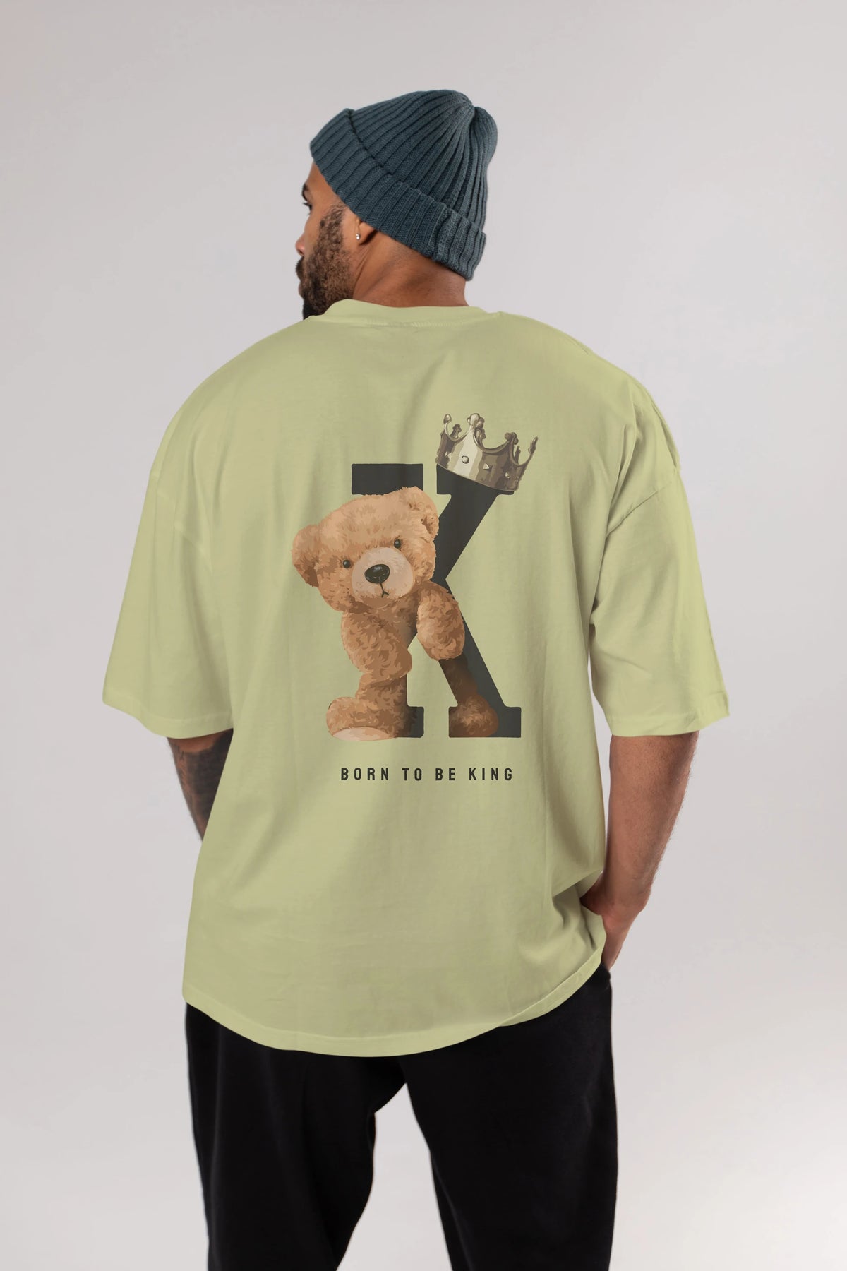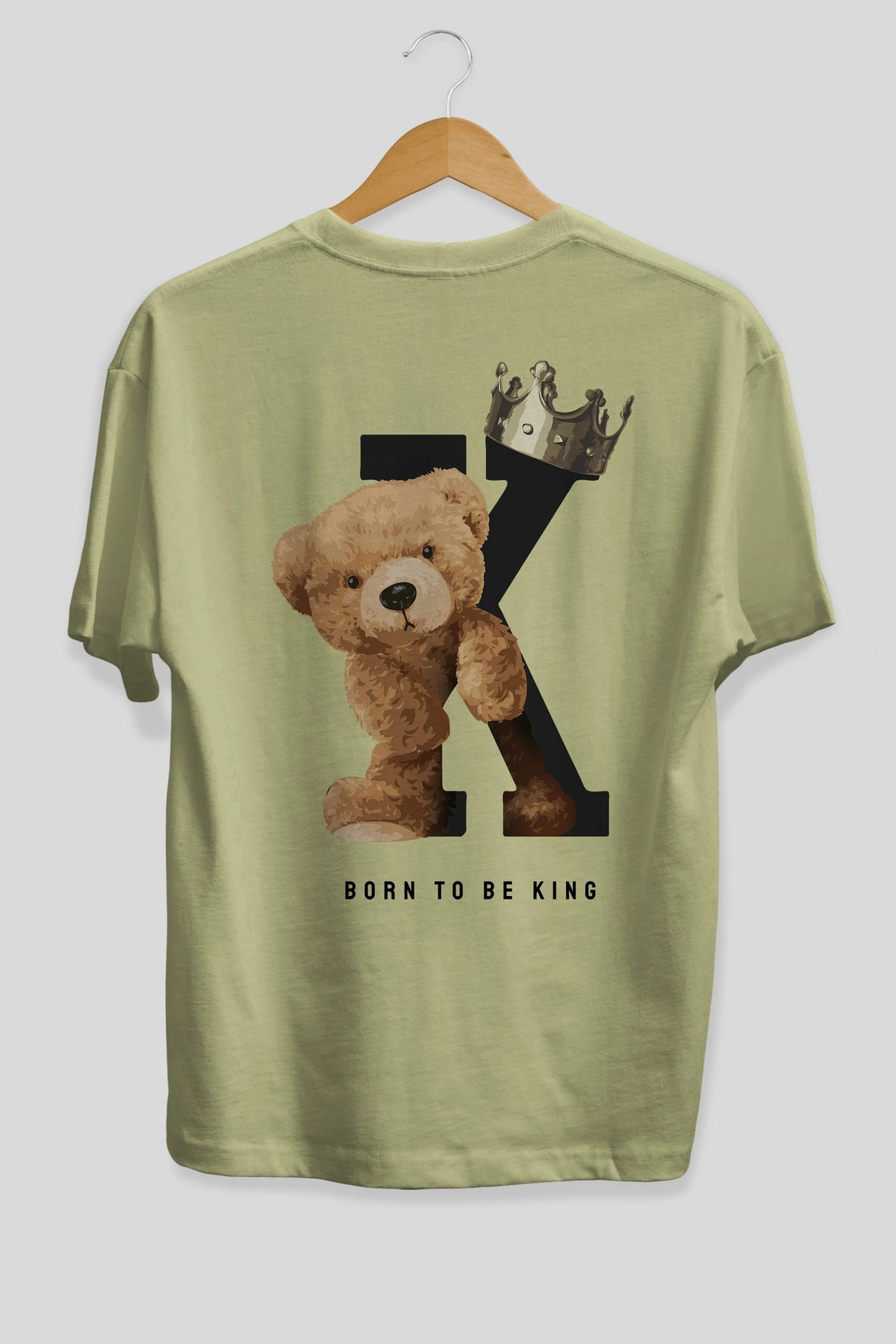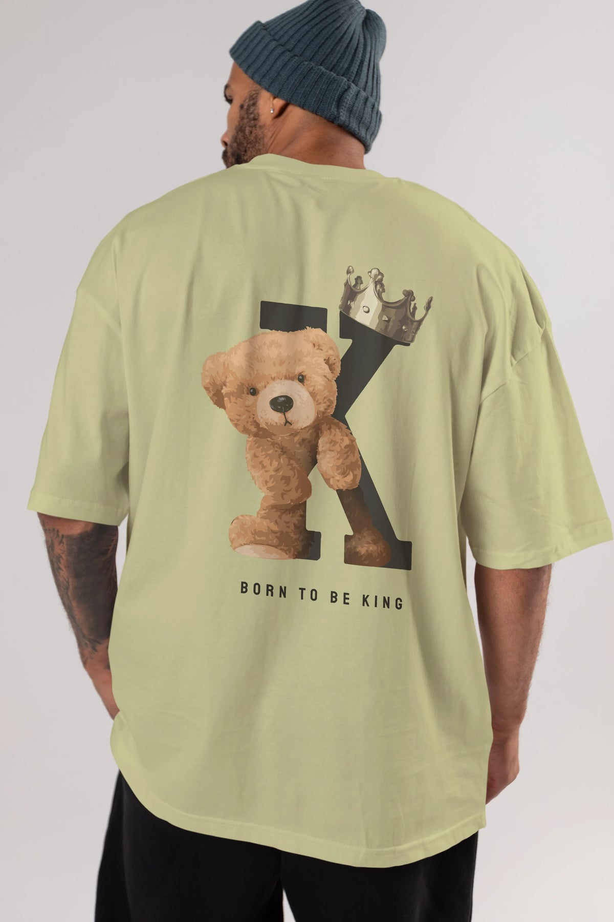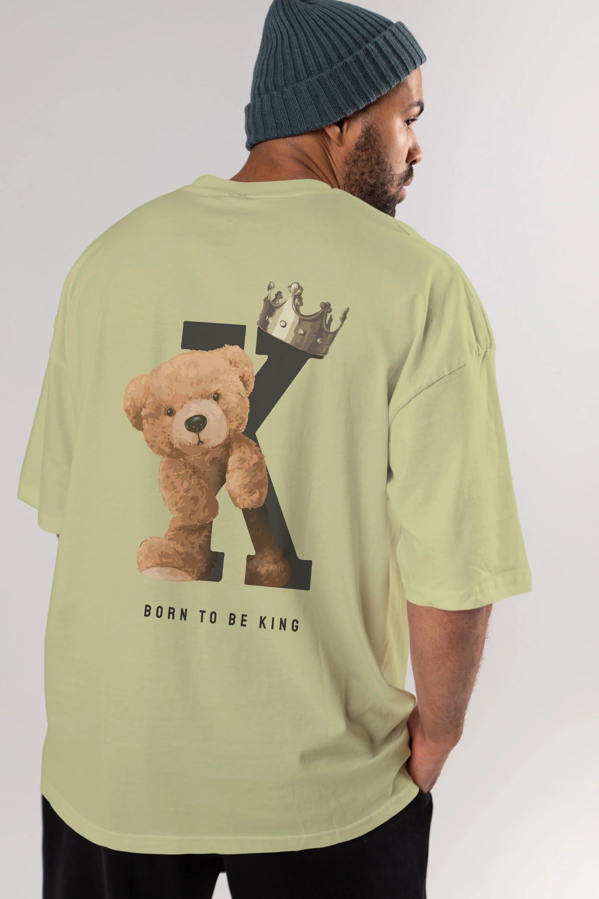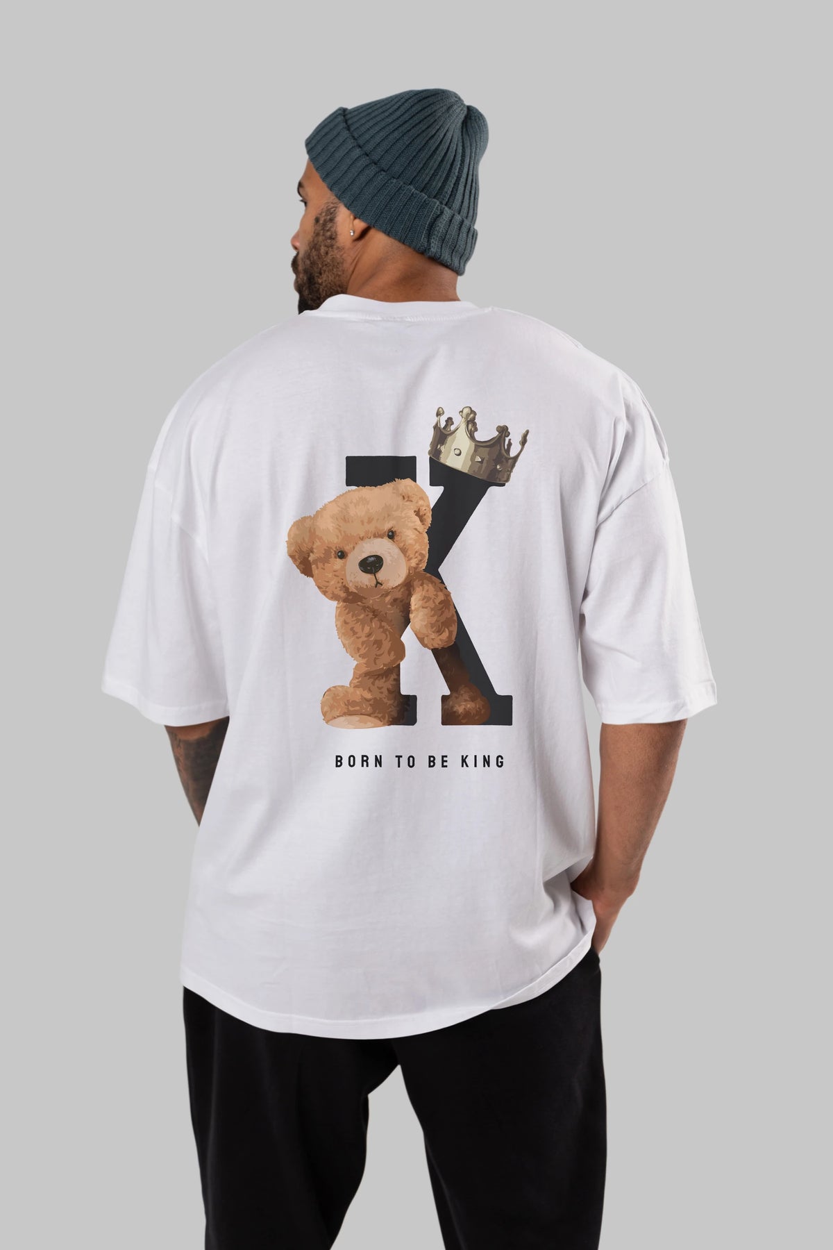 Teddy Bear Born To Be King Arka Baskılı Oversize t-shirt Erkek Kadın Unisex %100 Pamuk