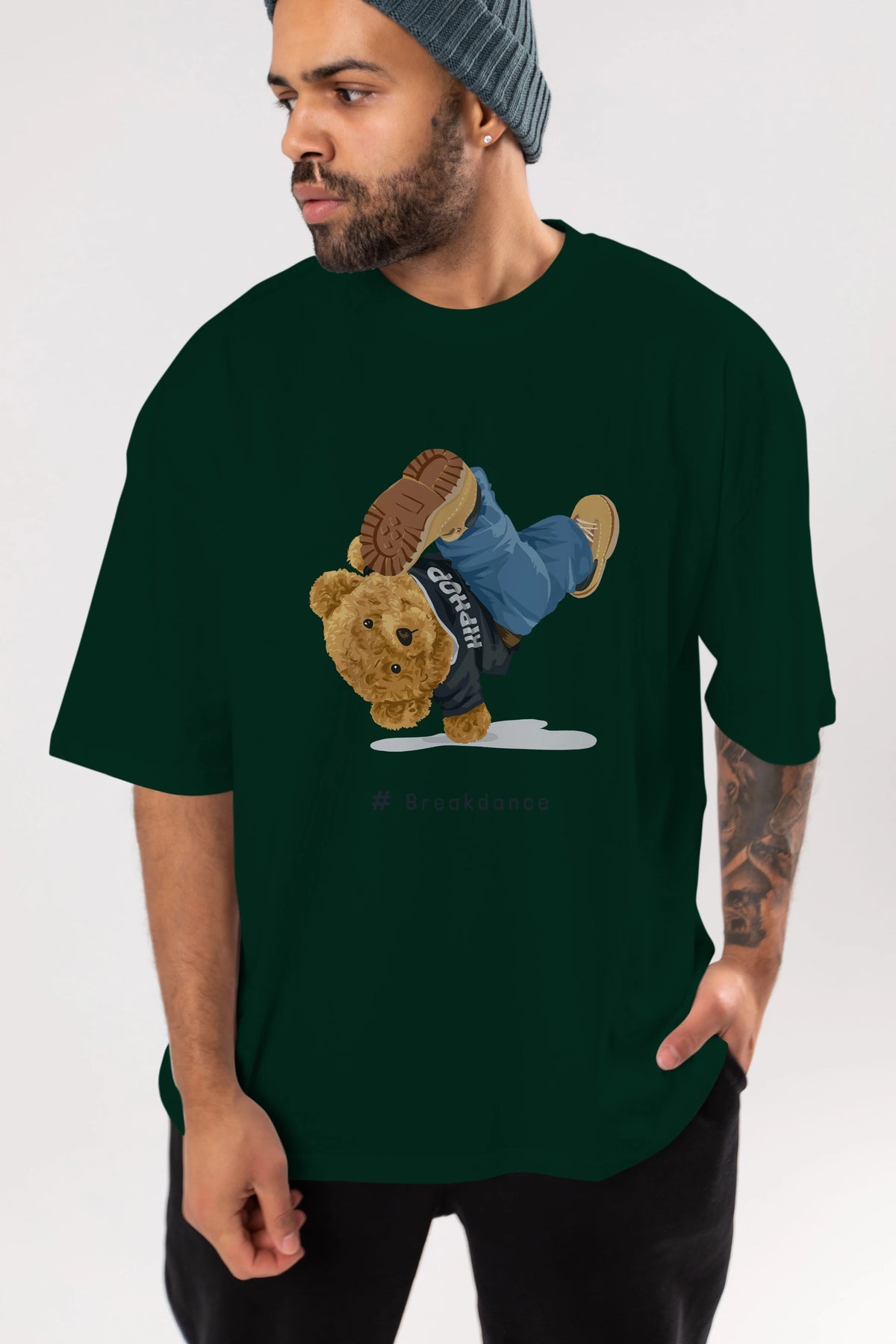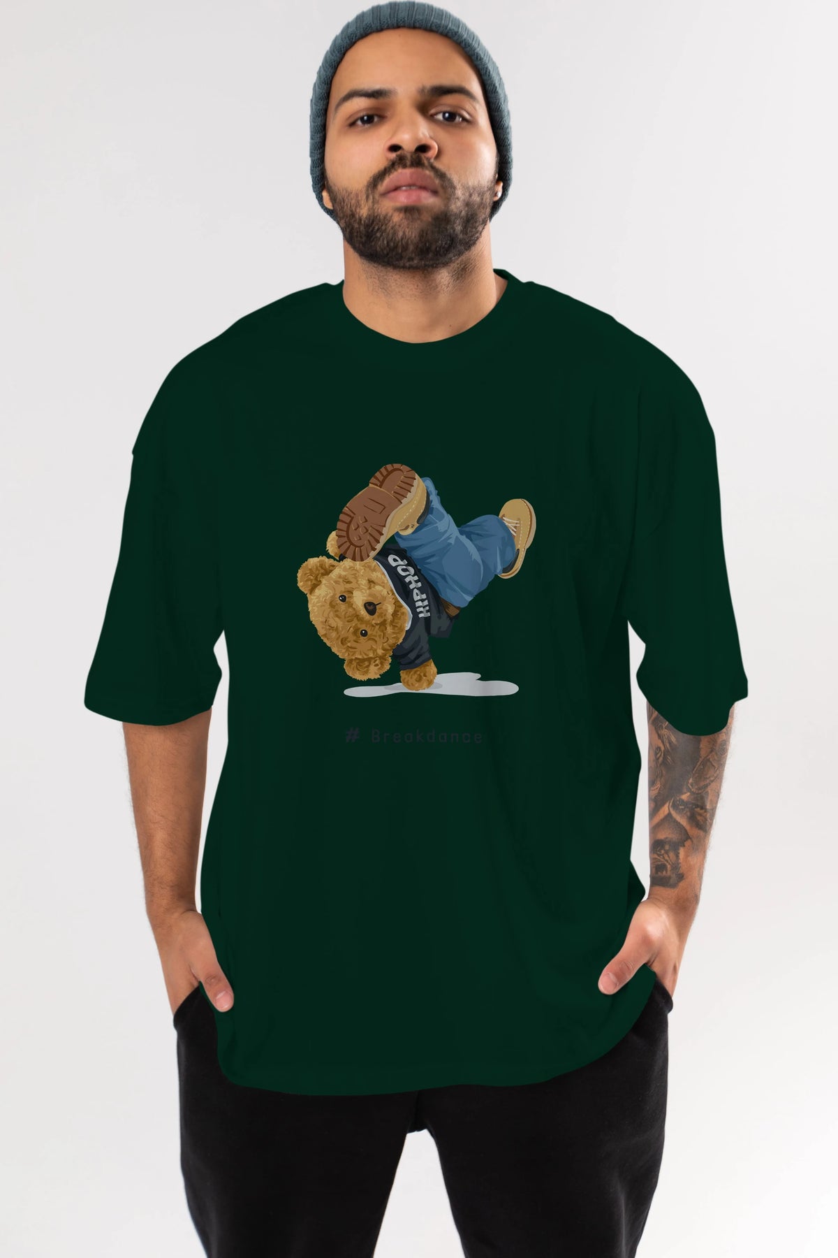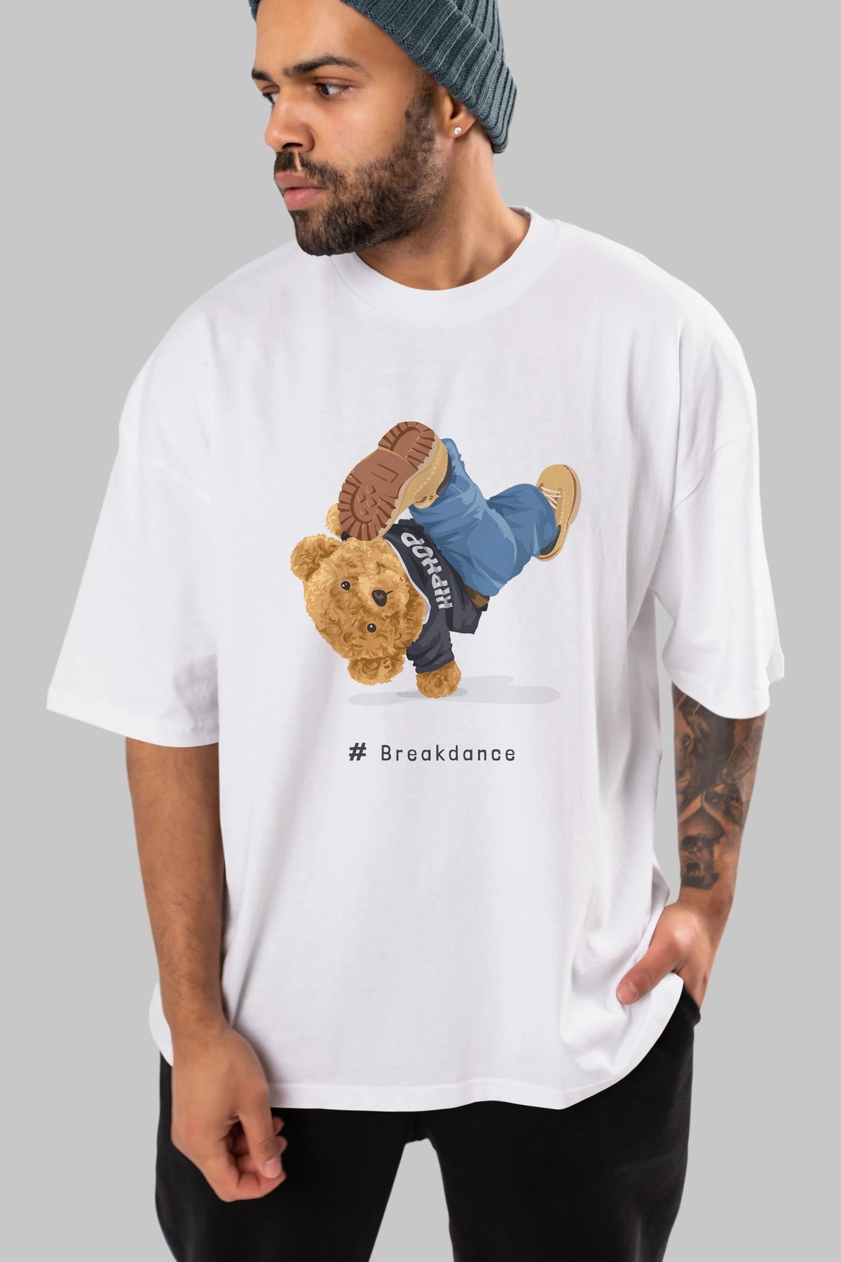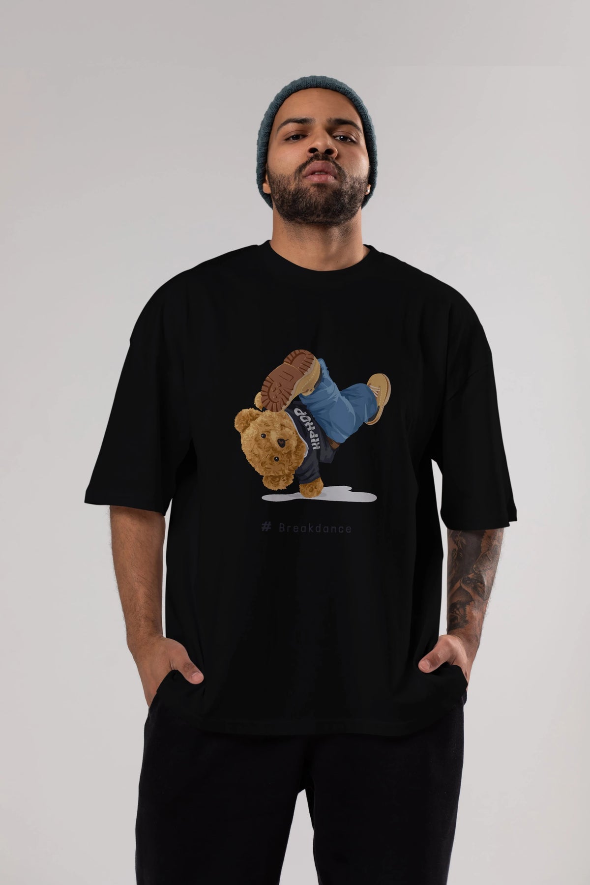 Teddy Bear Breakdance Ön Baskılı Oversize t-shirt Erkek Kadın Unisex %100 Pamuk