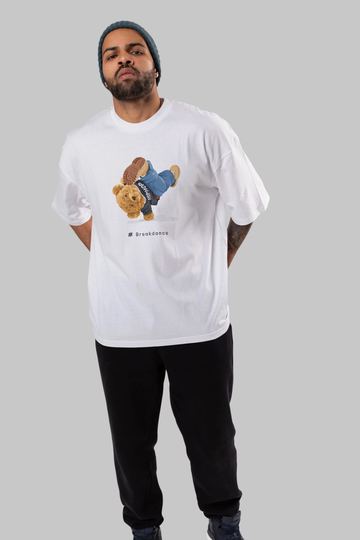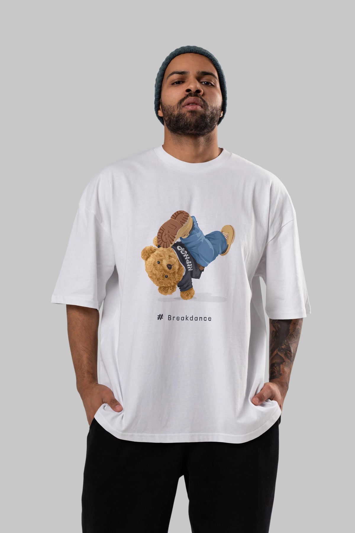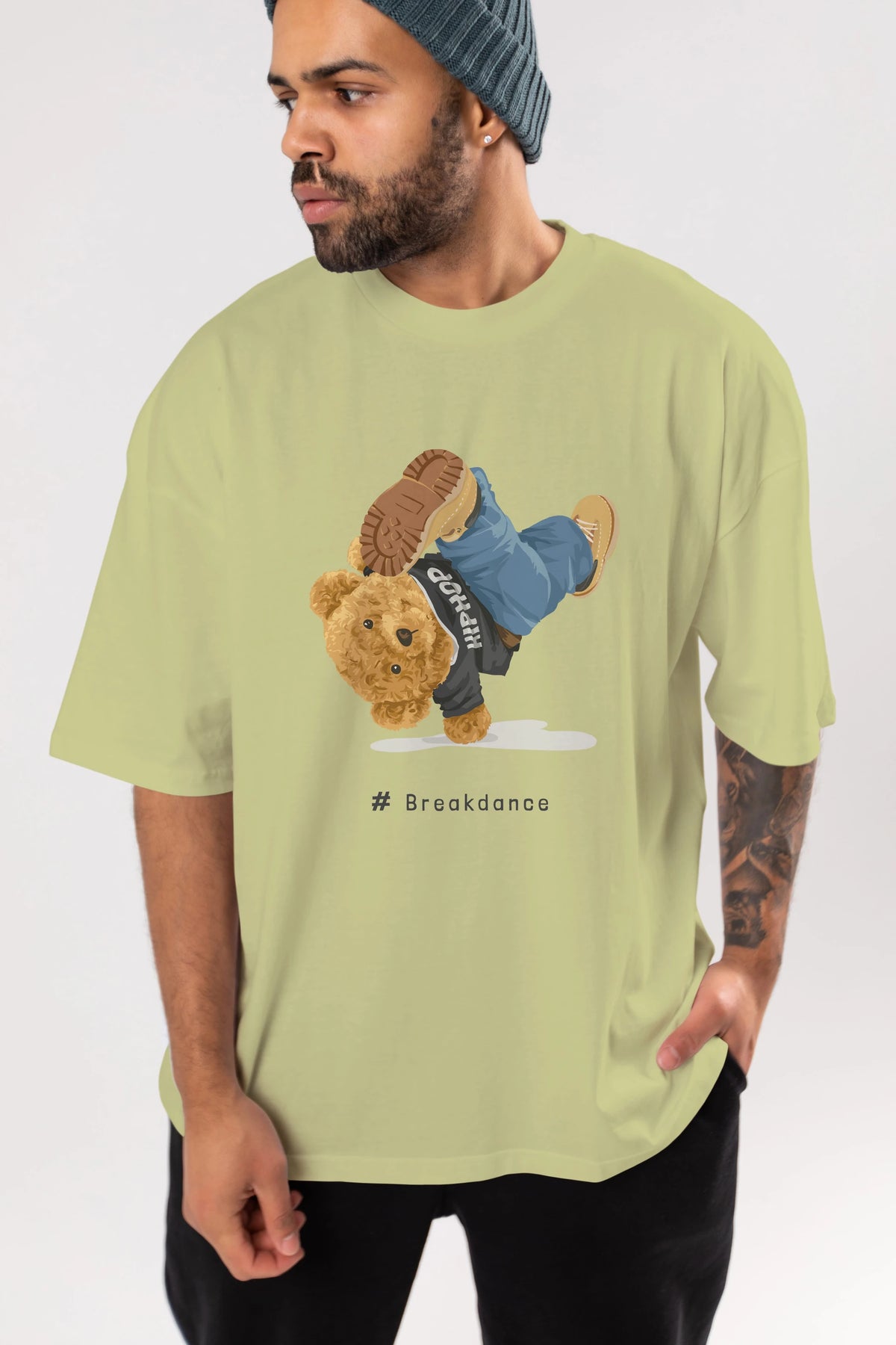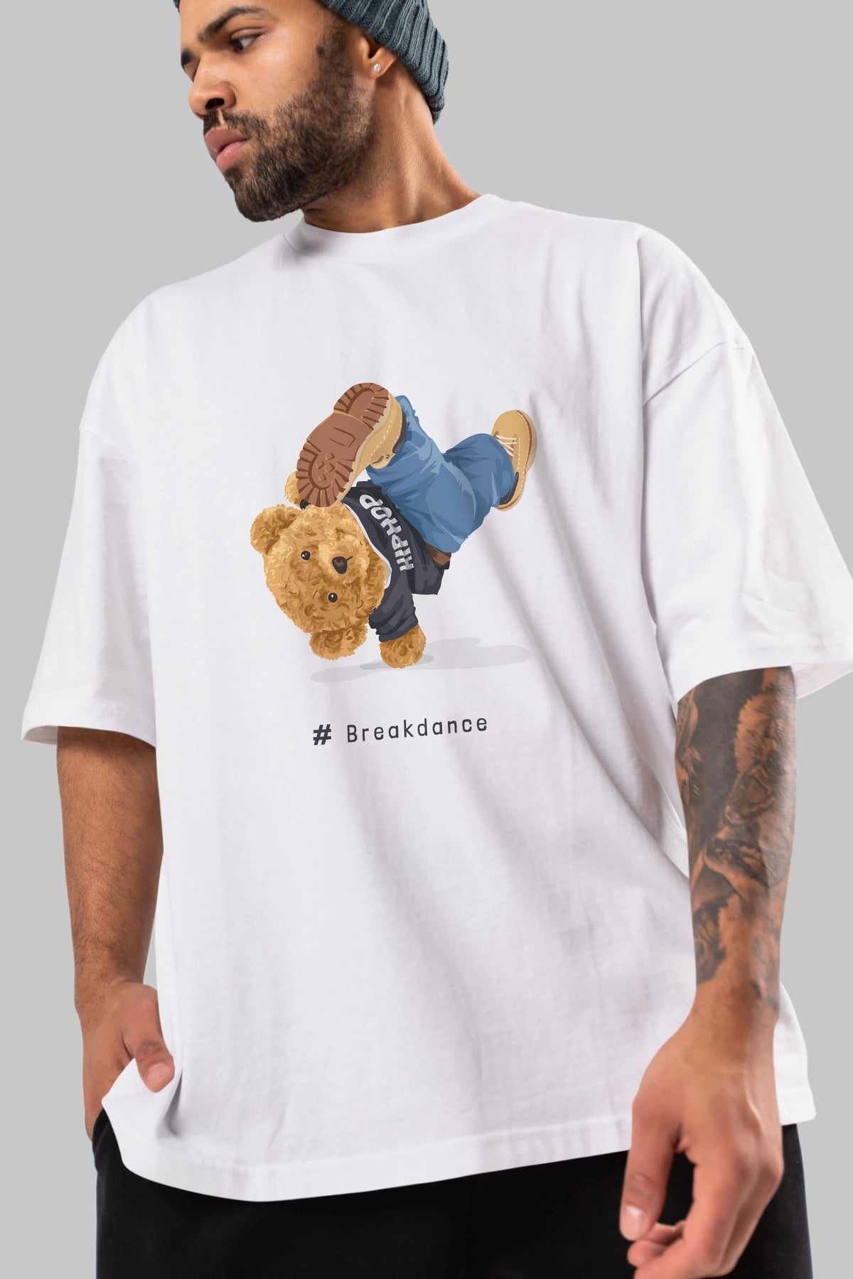 Teddy Bear Breakdance Ön Baskılı Oversize t-shirt Erkek Kadın Unisex %100 Pamuk
