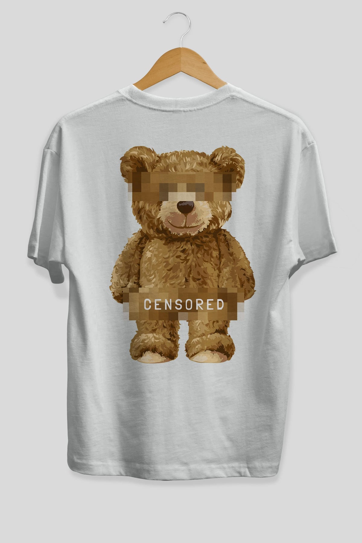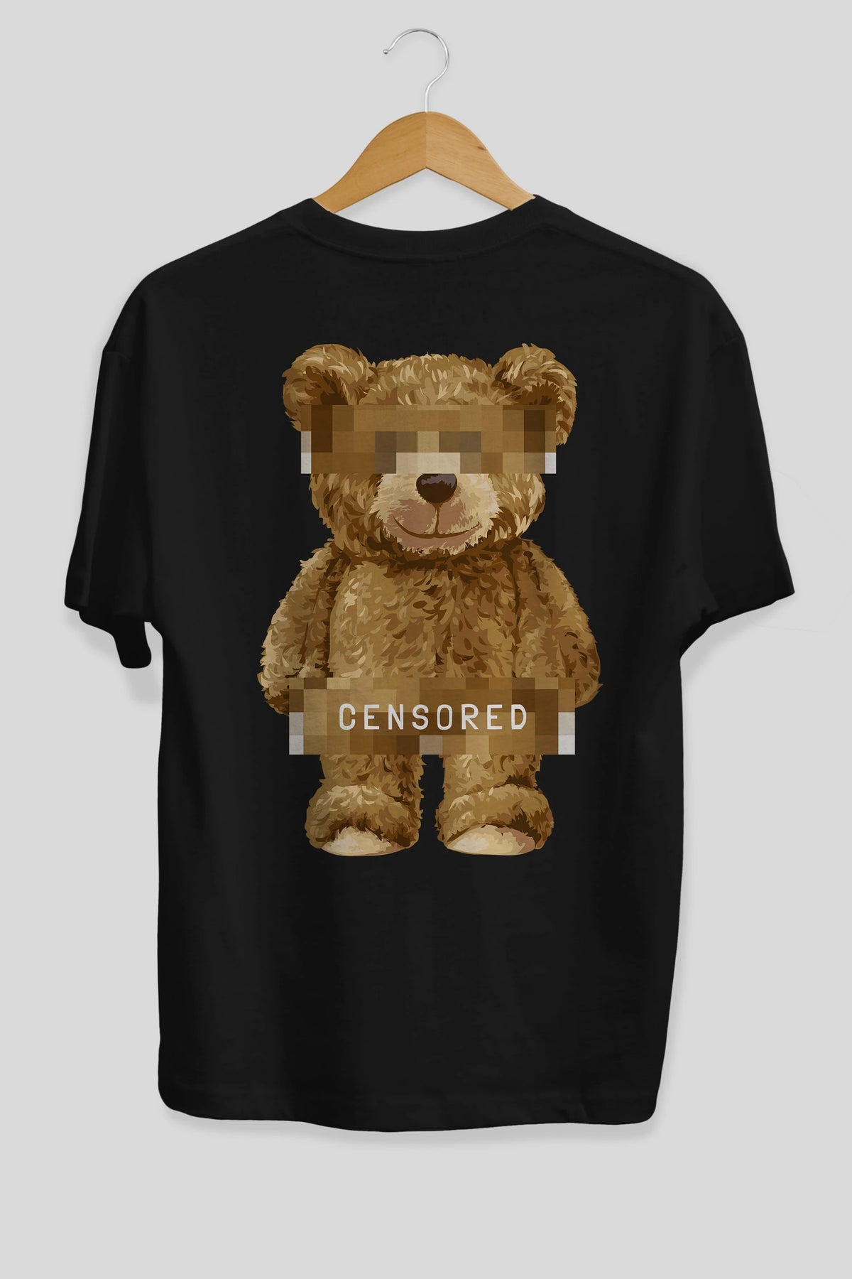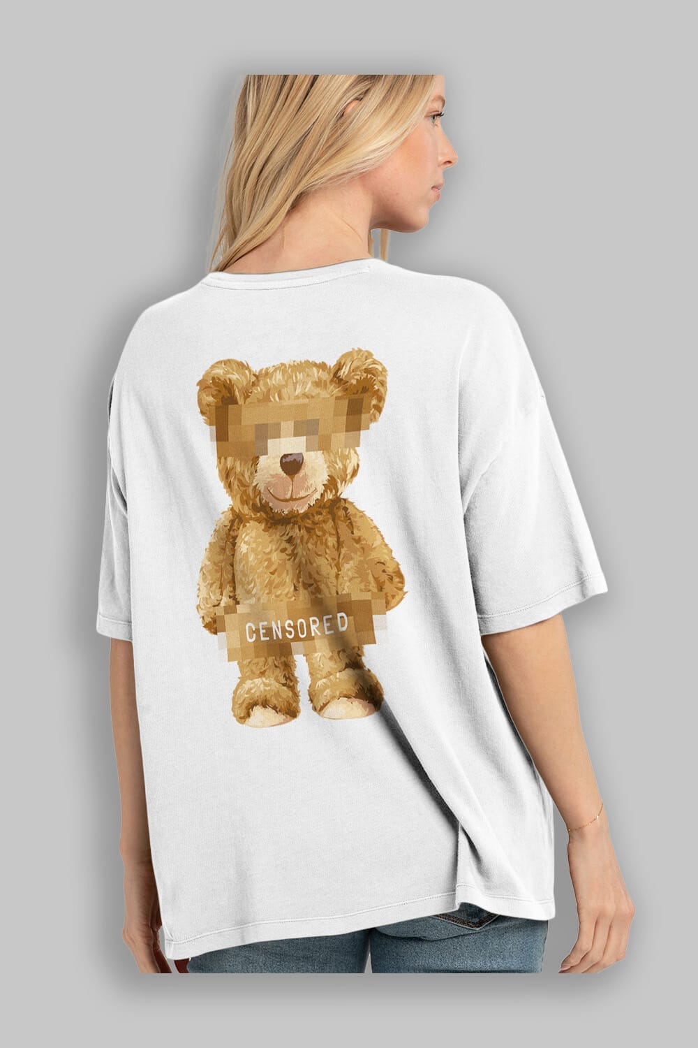 Teddy Bear Censored Arka Baskılı Oversize t-shirt Erkek Kadın Unisex %100 Pamuk