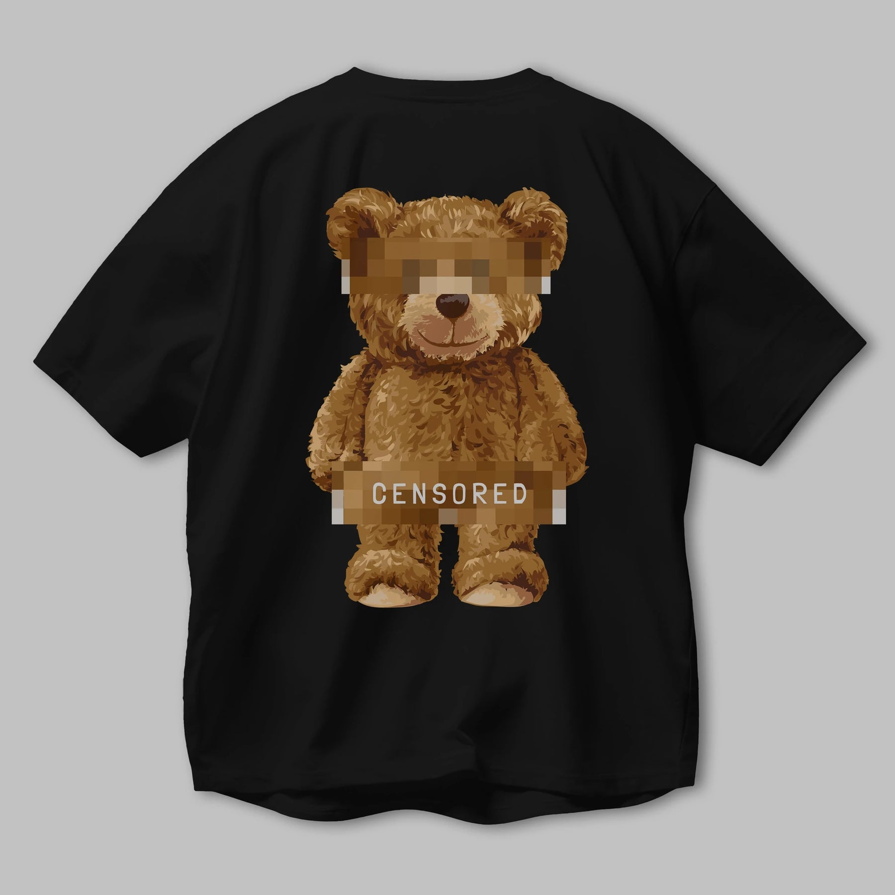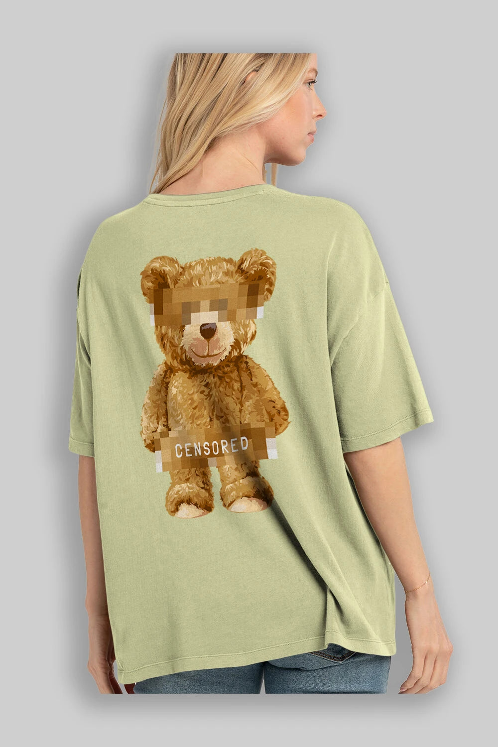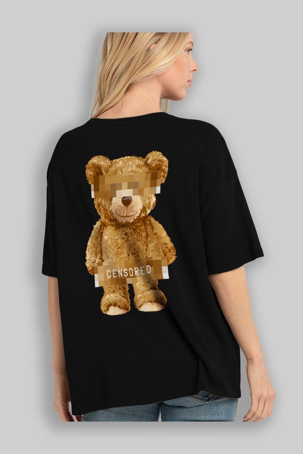 Teddy Bear Censored Arka Baskılı Oversize t-shirt Erkek Kadın Unisex %100 Pamuk
