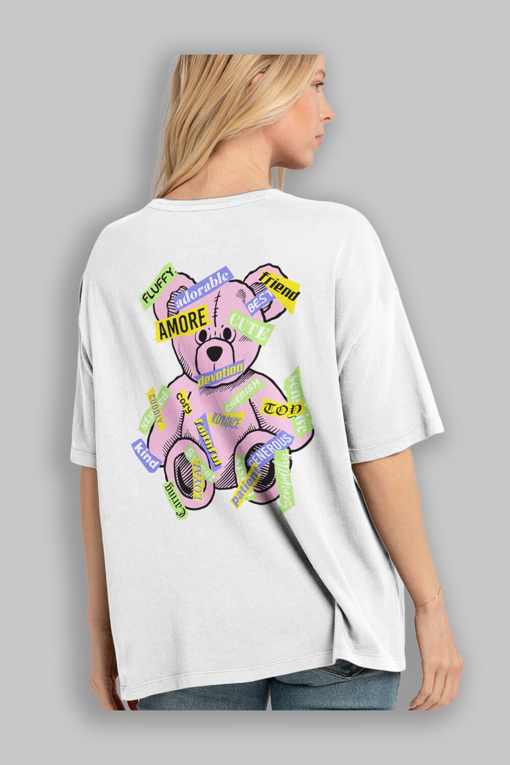 Teddy Bear Cute Arka Baskılı Oversize t-shirt Erkek Kadın Unisex