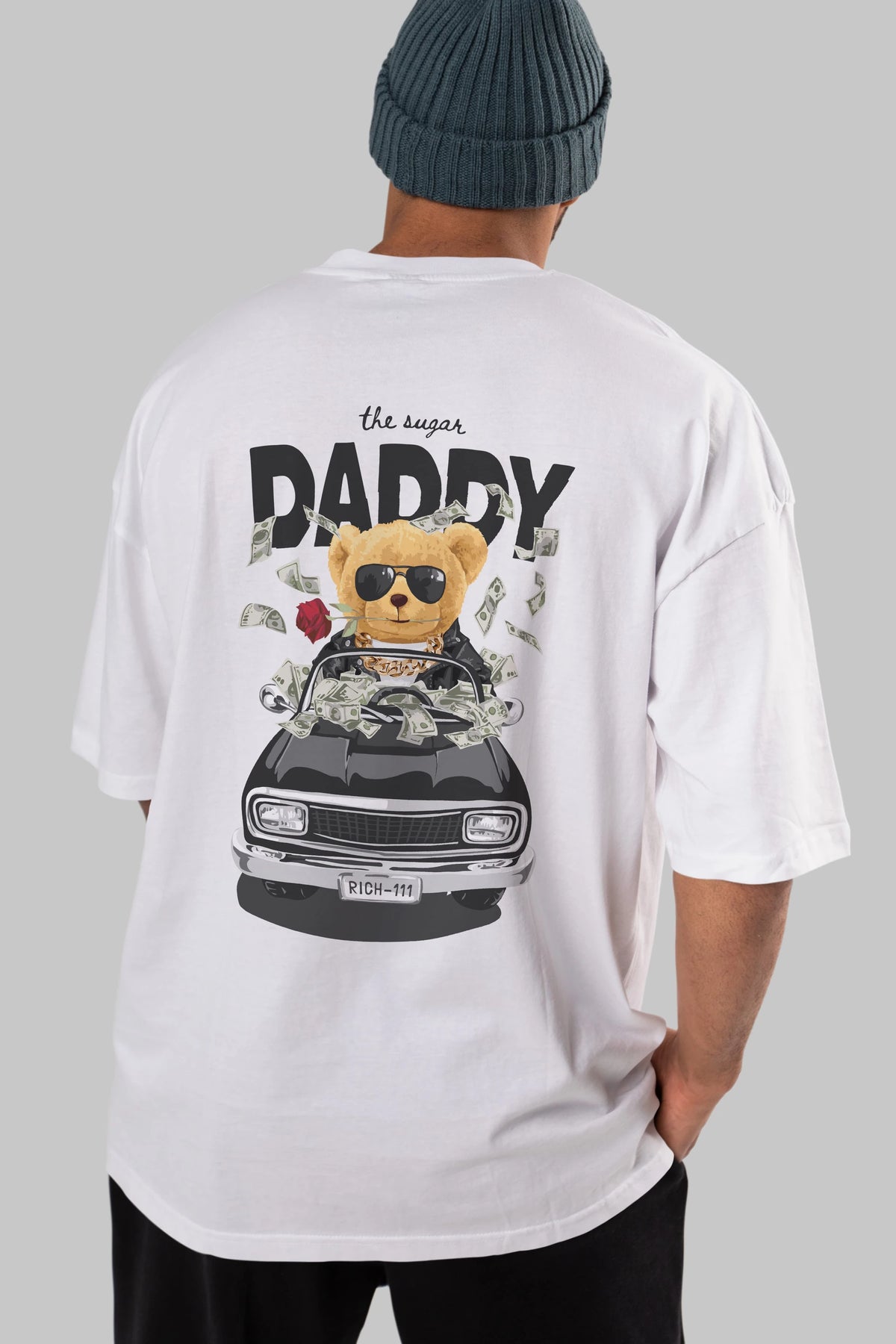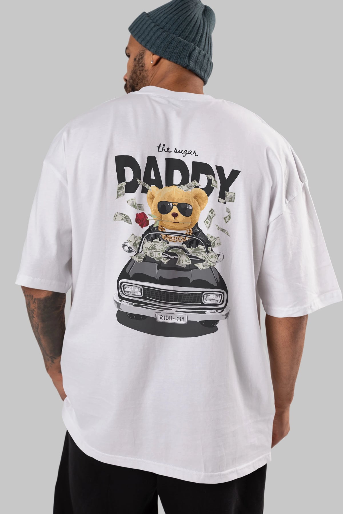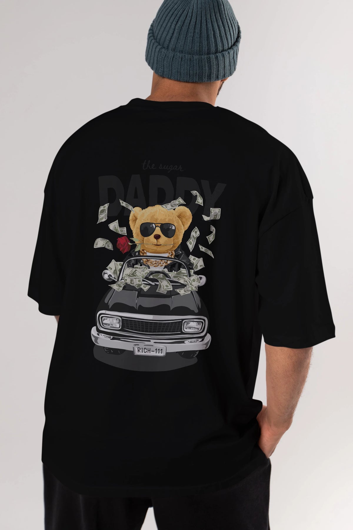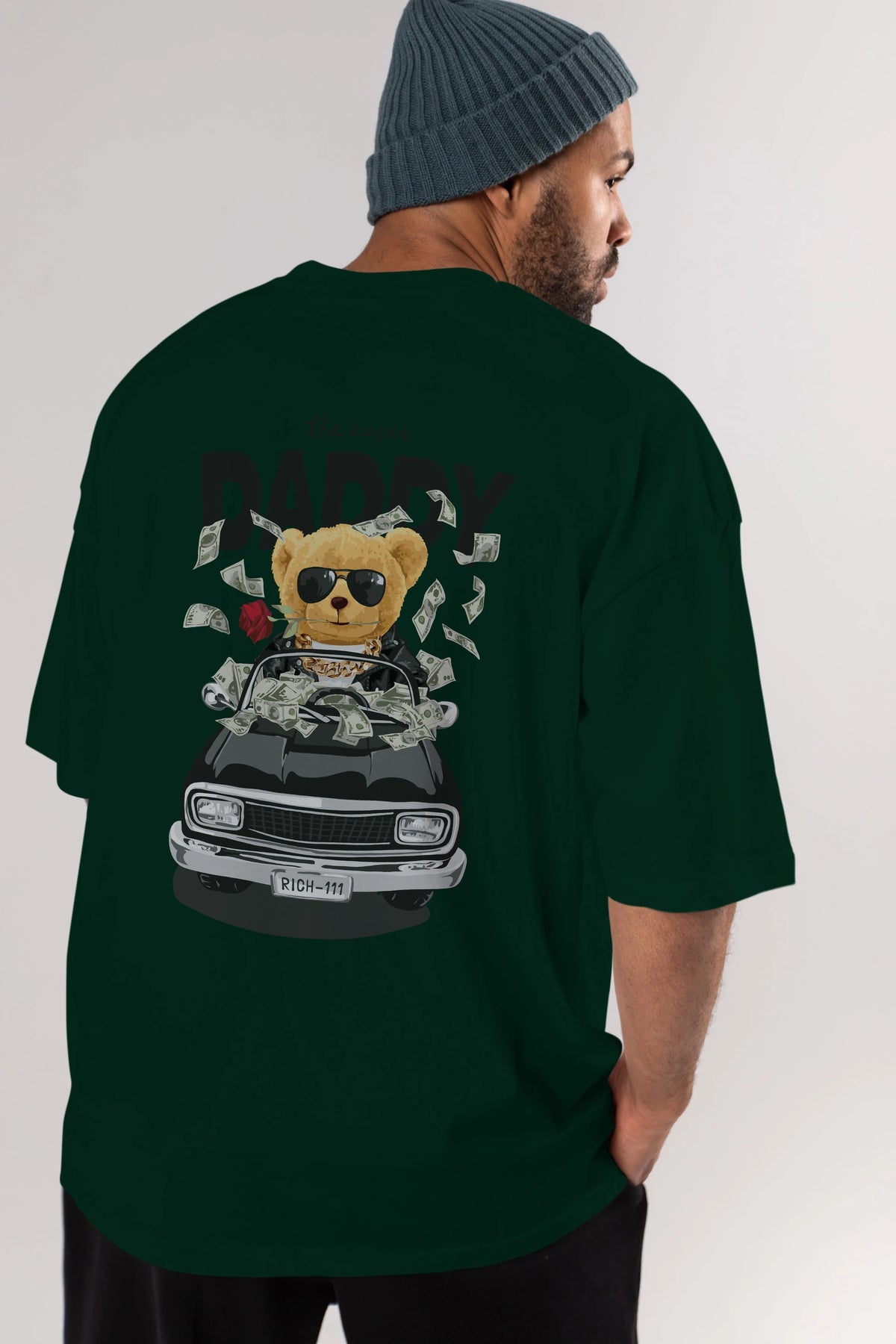 Teddy Bear Daddy Arka Baskılı Oversize t-shirt Erkek Kadın Unisex %100 Pamuk